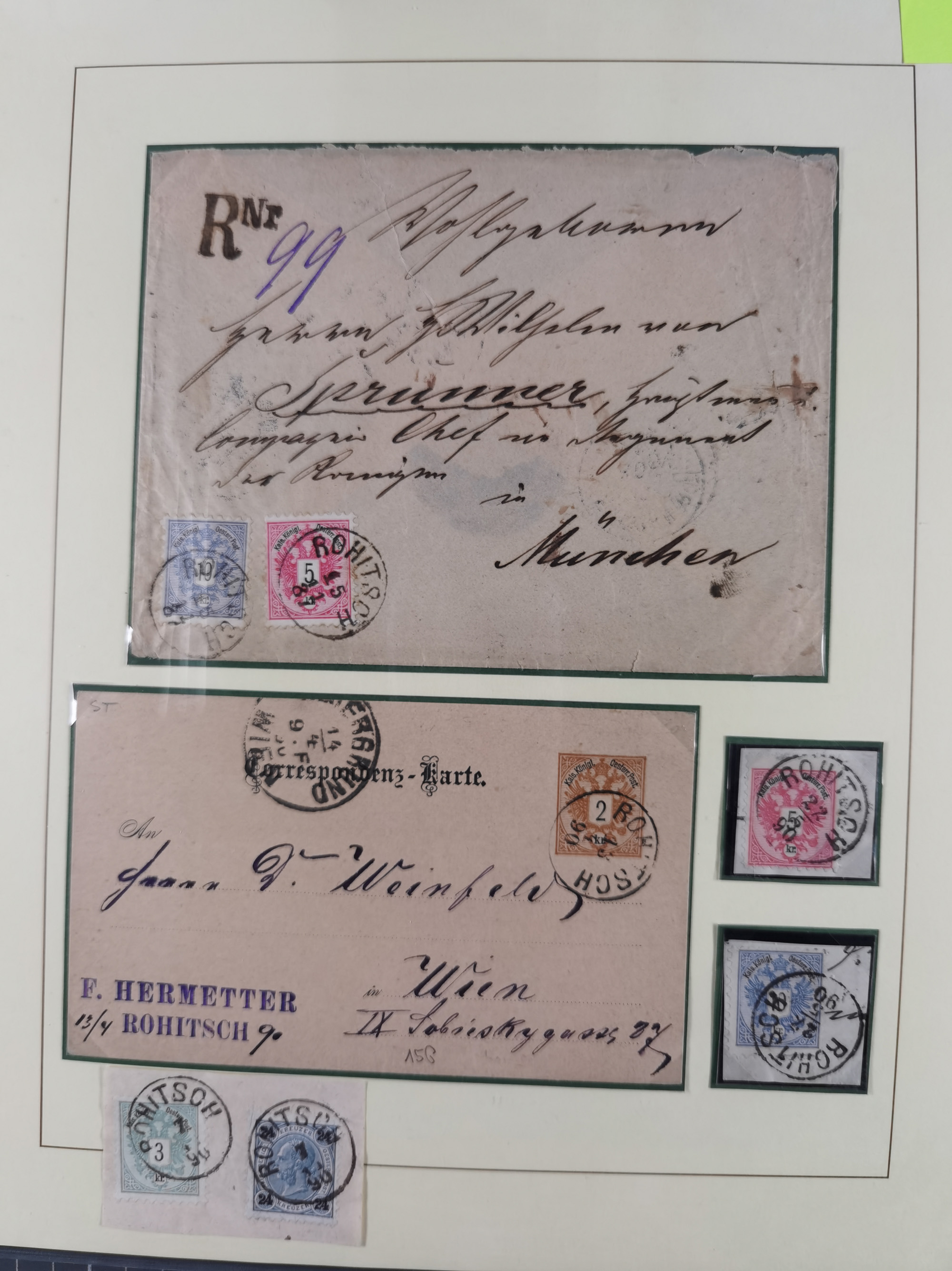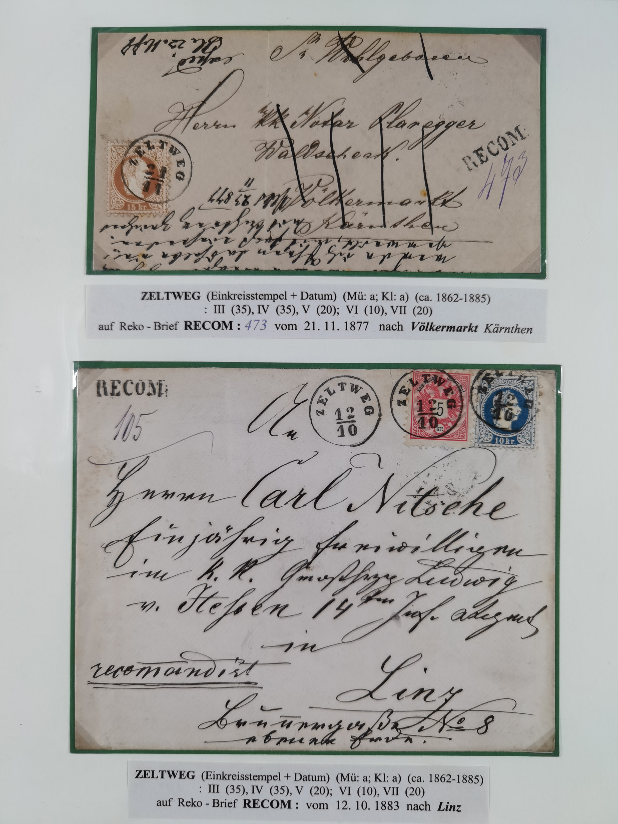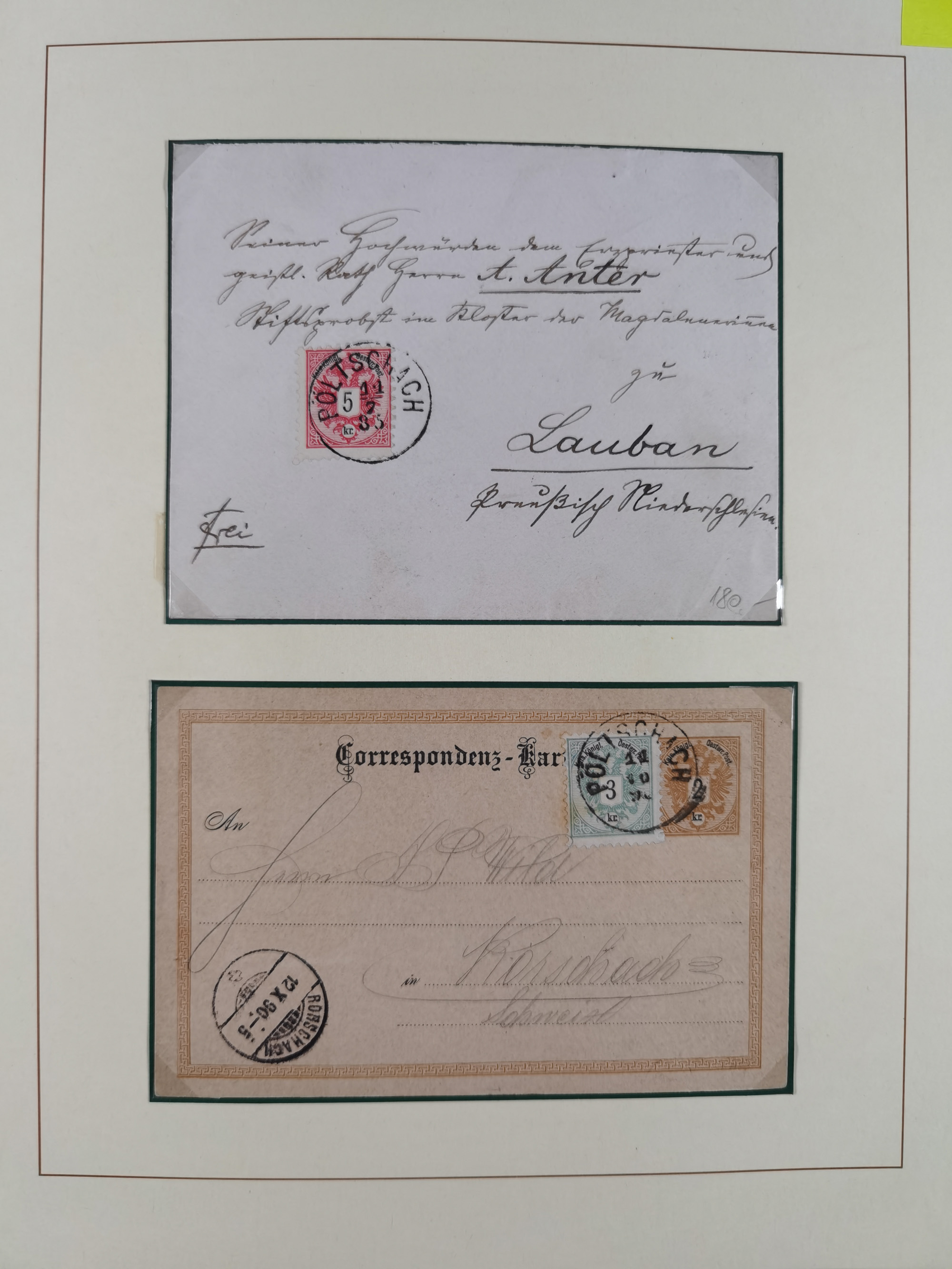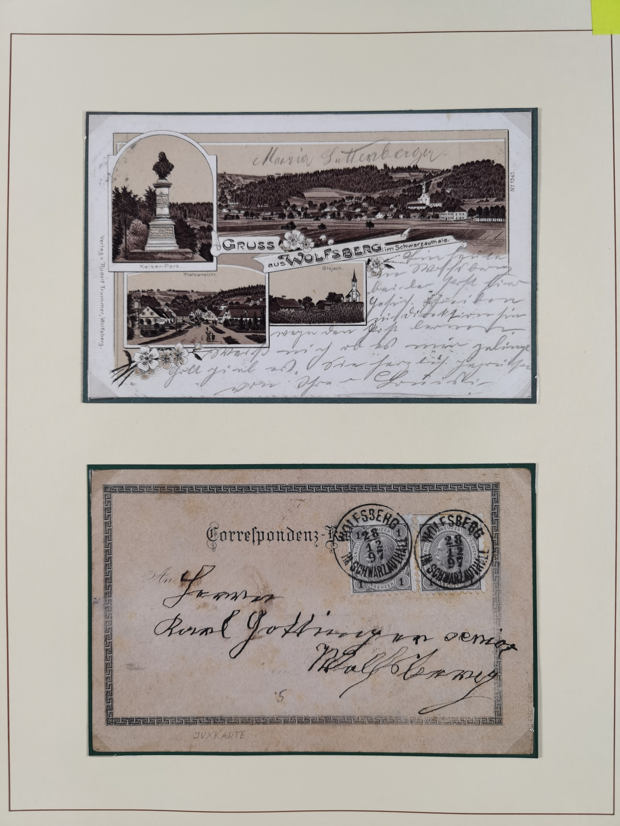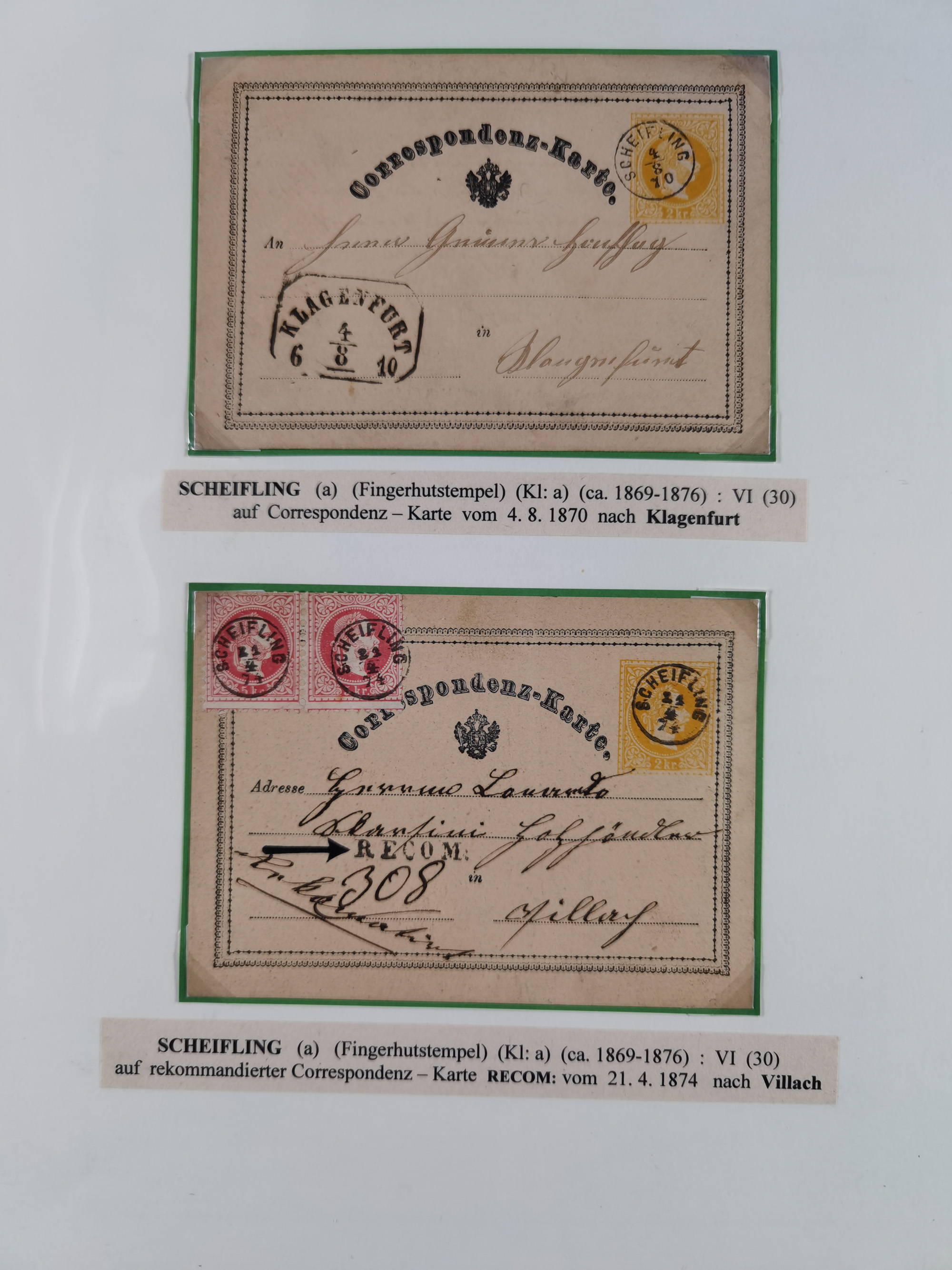 1870/1913 (ca.), umfangreiche aufgezogene Heimat-Sammlung “Herzogtum Steiermark (Styria)”, Bruck bis Windischgraz, mit über 1400 Briefen und Karten, bessere Frankaturen, Ansichtkarten und Illustriertenkarten mit Lithos, Paketkarten und Postscheine, R-Briefe, Ortsbriefe, Ganzsachenkarten- und Umschläge, etc., Schwerpunkt bei den Ausgaben 1883 bis 1899, schöne Auswahl an Poststempeln inkl. Fingerhutstempeln und handschriftlicher Entwertungen, dabei u.a. Express-Ganzsachekarte mit Zufrankatur aus “IRDNING 7 2 97” nach Wörschach, etc., sowie zahlreiche lose Marken und Briefstücke mit meist klaren Stempel-Abschlägen. Ein außerordentlich reichaltiges und interessantes Objekt, zusammen in 22 Alben