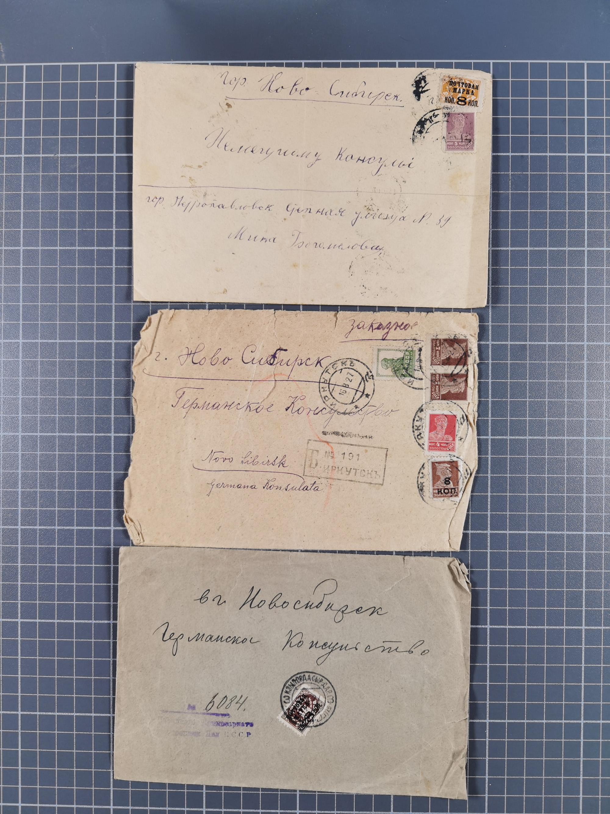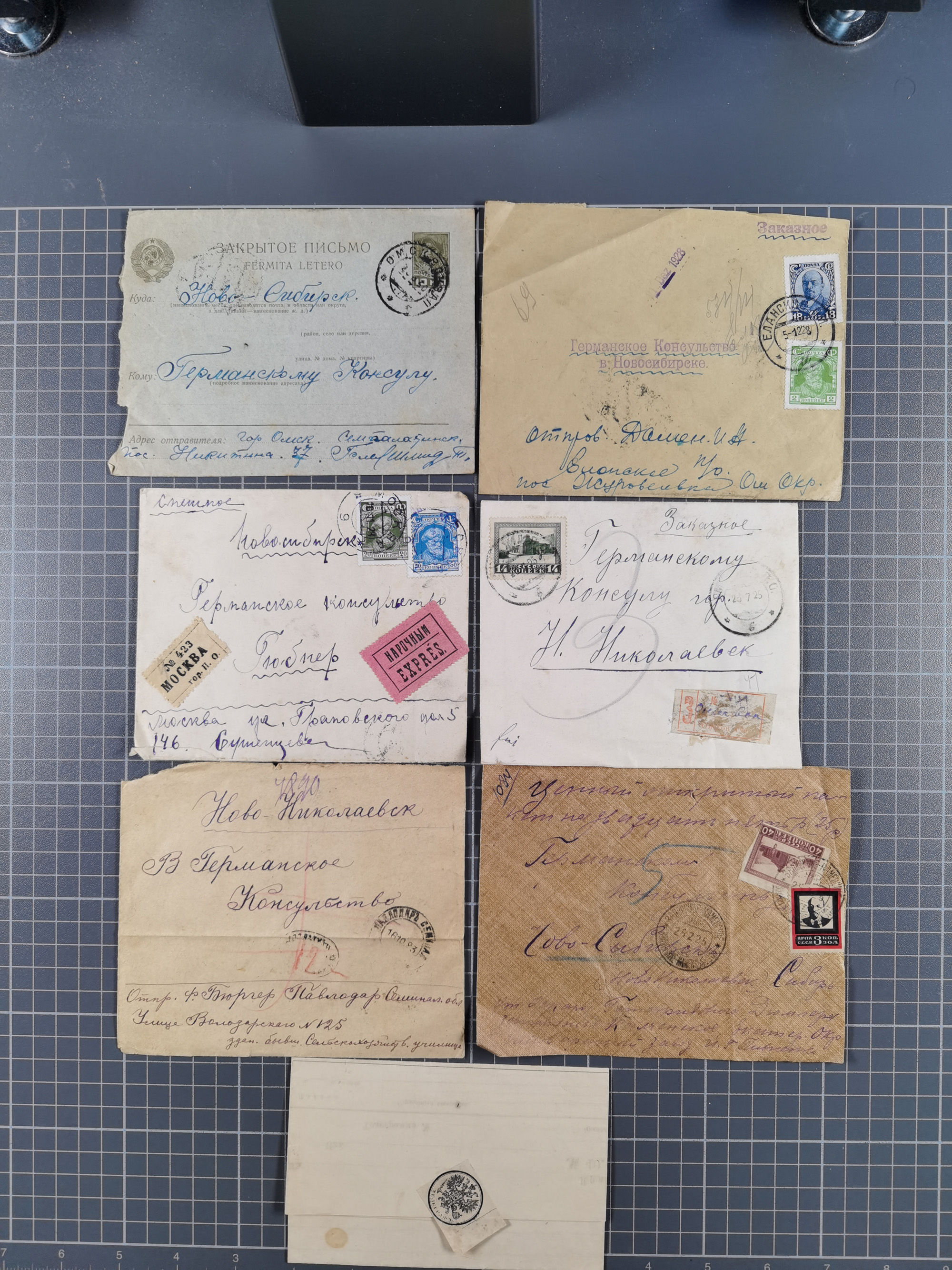 1860/1930, 25 covers & telegrams mainly from east Russia,including registered and sealed mail from Foreign Office, Express, air mails including “Mit Lufzpost befördert Königsberg (Pr.)1.”, some different.