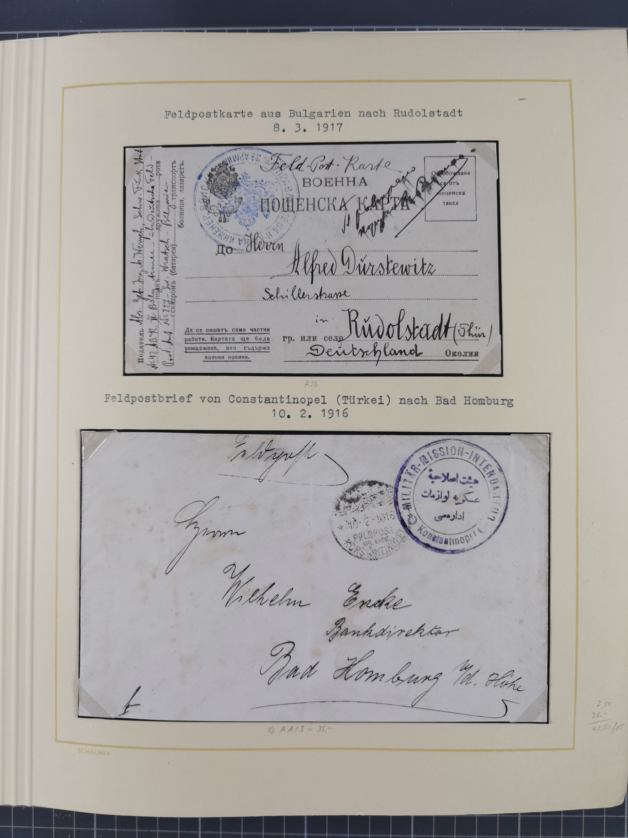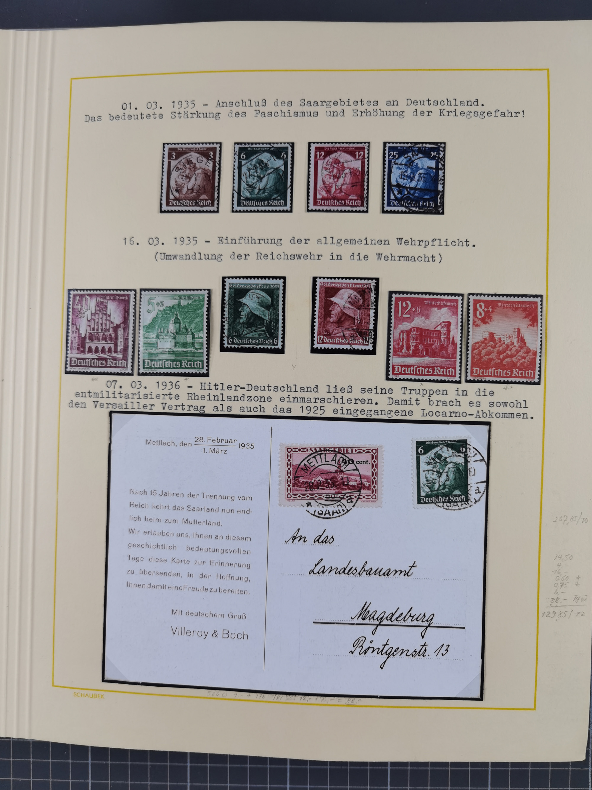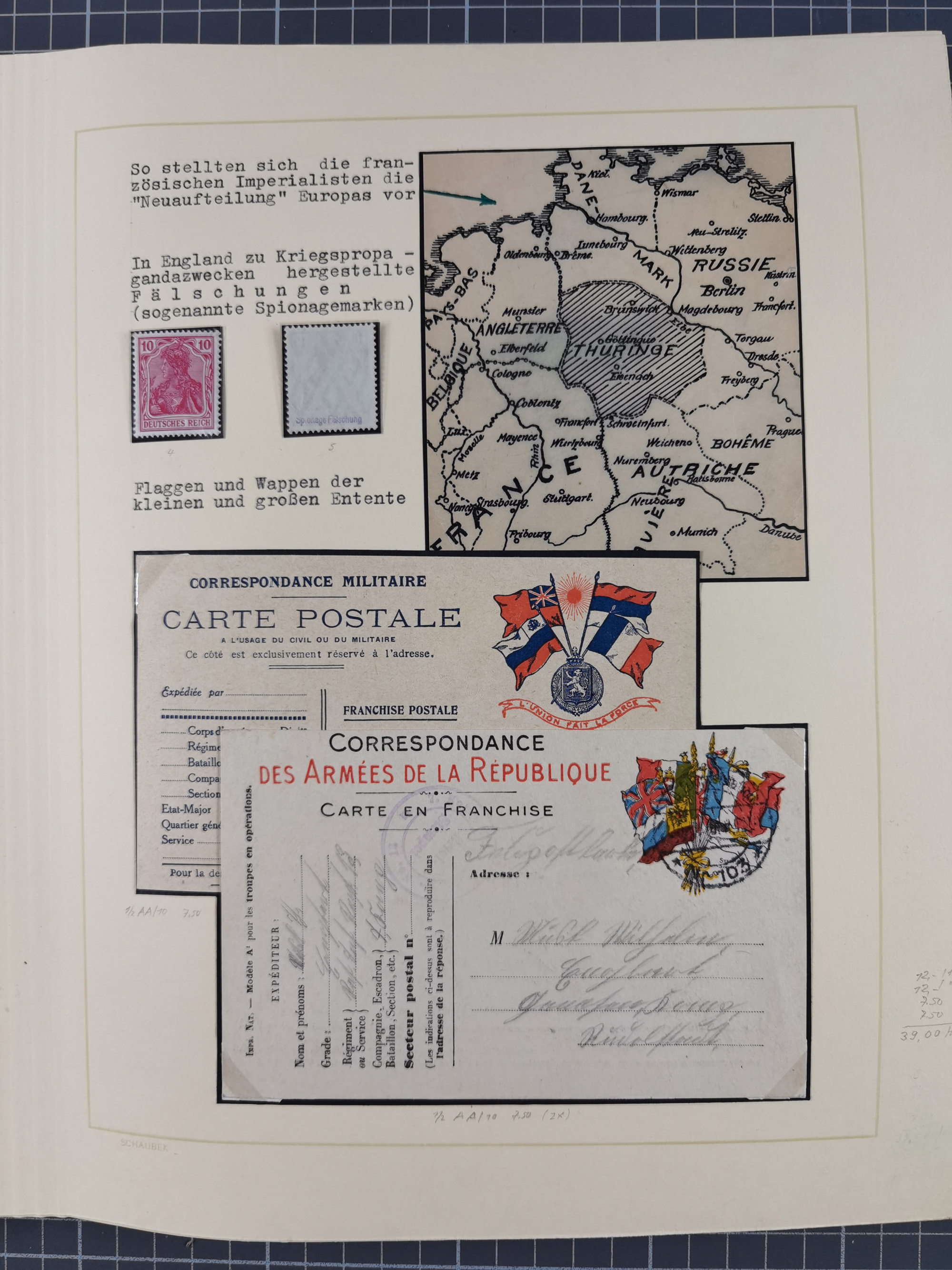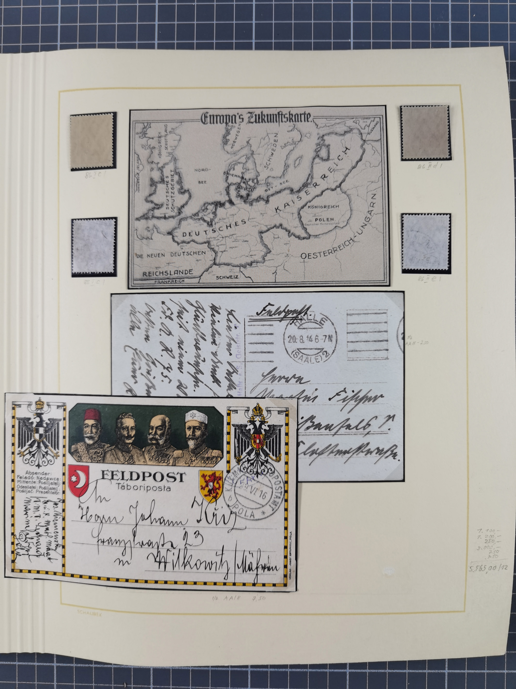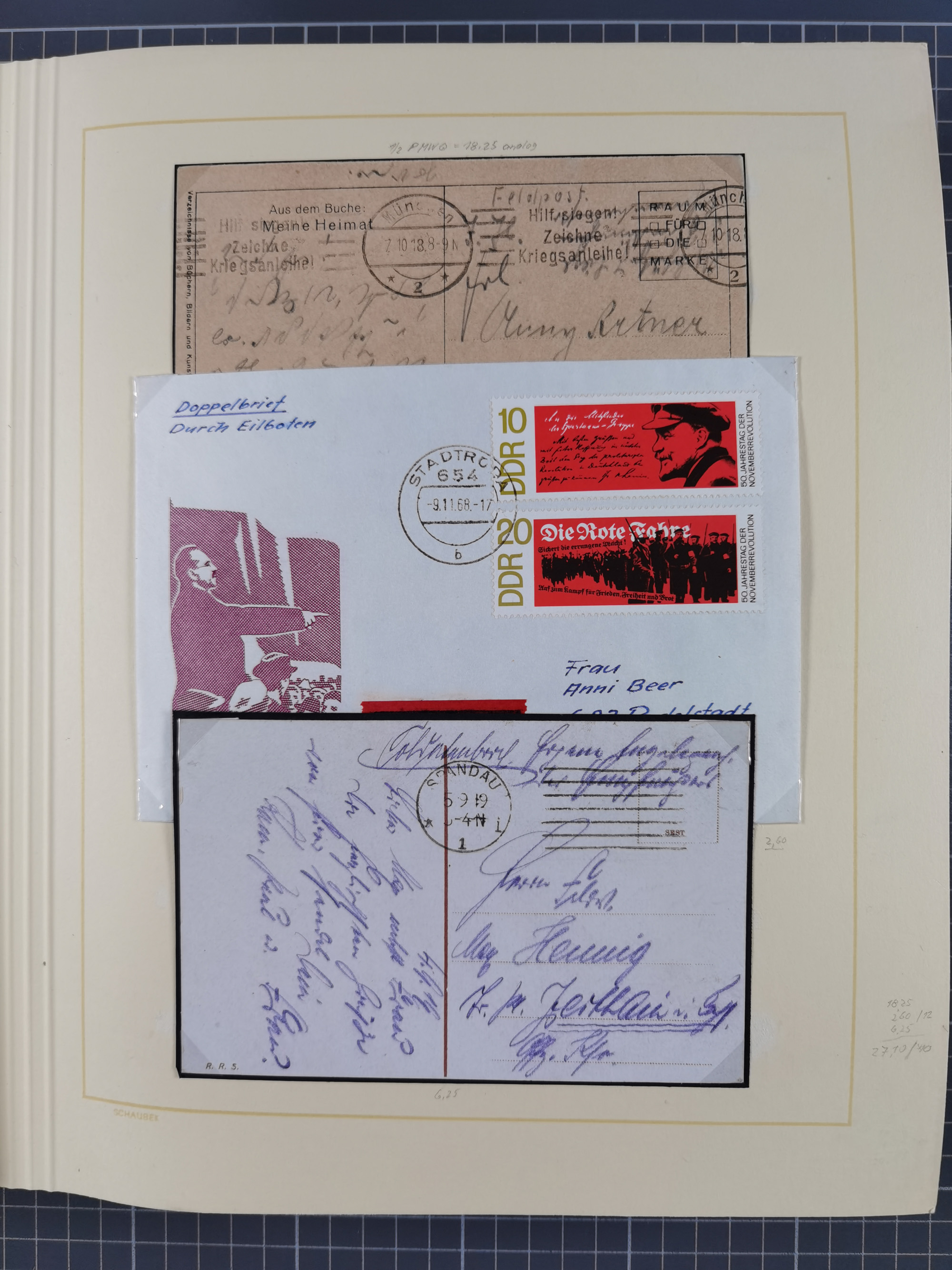 1859/1975 (ca.), postfrische/ungebrauchte und gestempelte Themensammlung “Der imperialistische Weltkrieg 1914/18”, inkl. Kolonien und Besatzungsausgaben mit vielen Belegen, zudem eine postfrische/ungebrauchte und gestempelte Themensammlung “Vorbereitung und Durchführung des zweiten Weltkrieges sowie seine Auswirkungen besonders in den Ländern Europas”, u.a. dabei Chicagofahrt gestempelt, Wagnersatz gestempelt, Blockausgabe Ostropa mit Sonderstempel, mit vielen Belegen, sowie ein Album mit portofreien Belegen, meist gute Erhaltung, in sieben Ordnern und einem Briefalbum