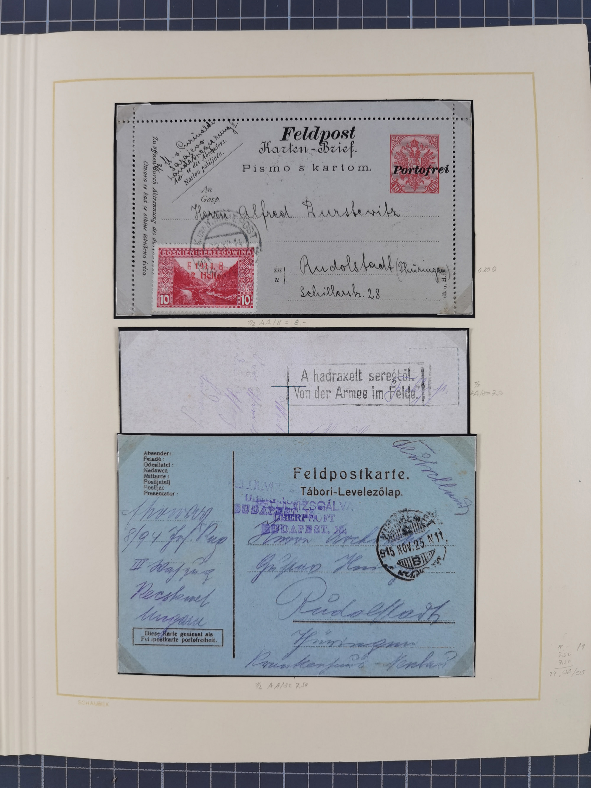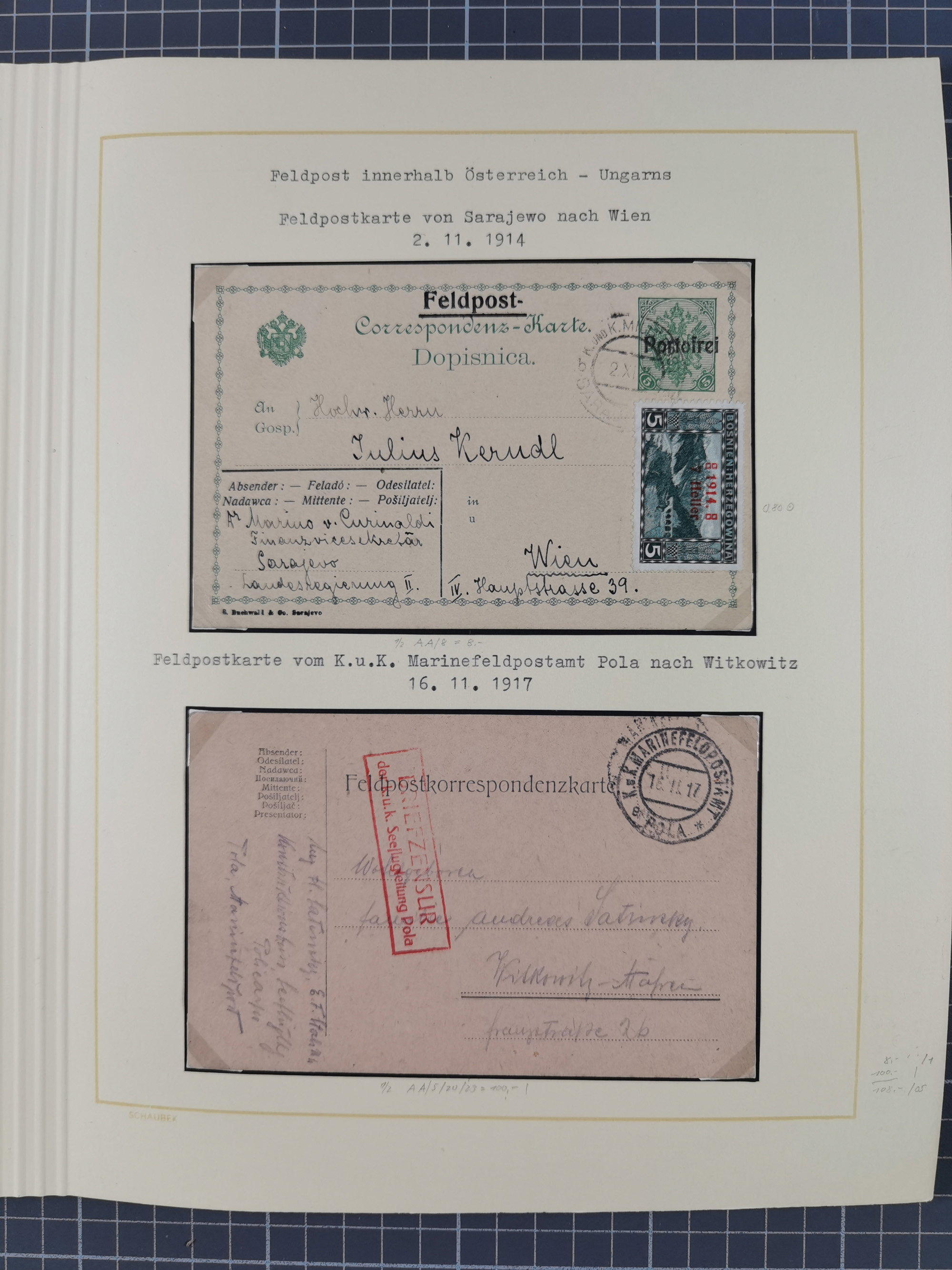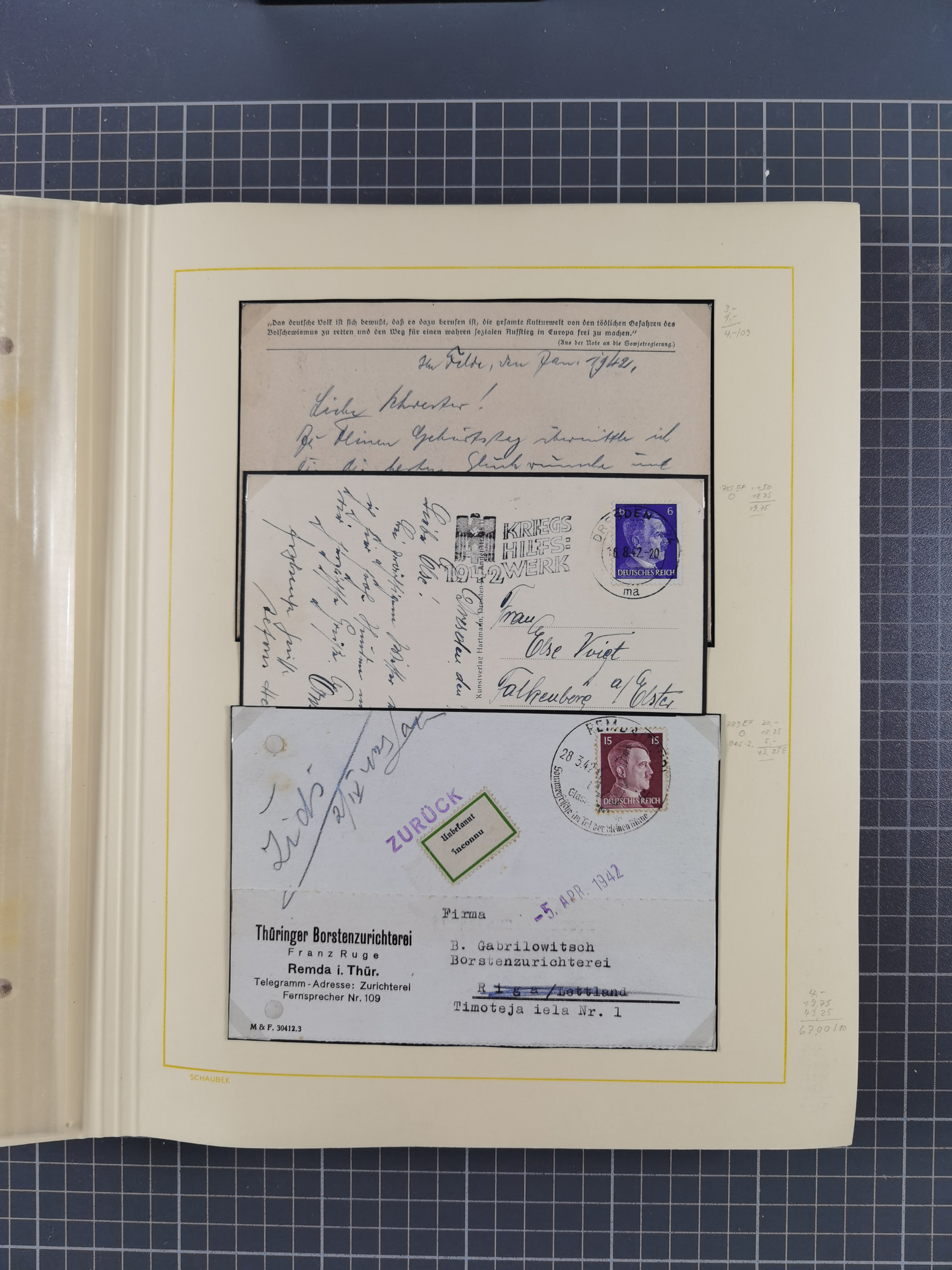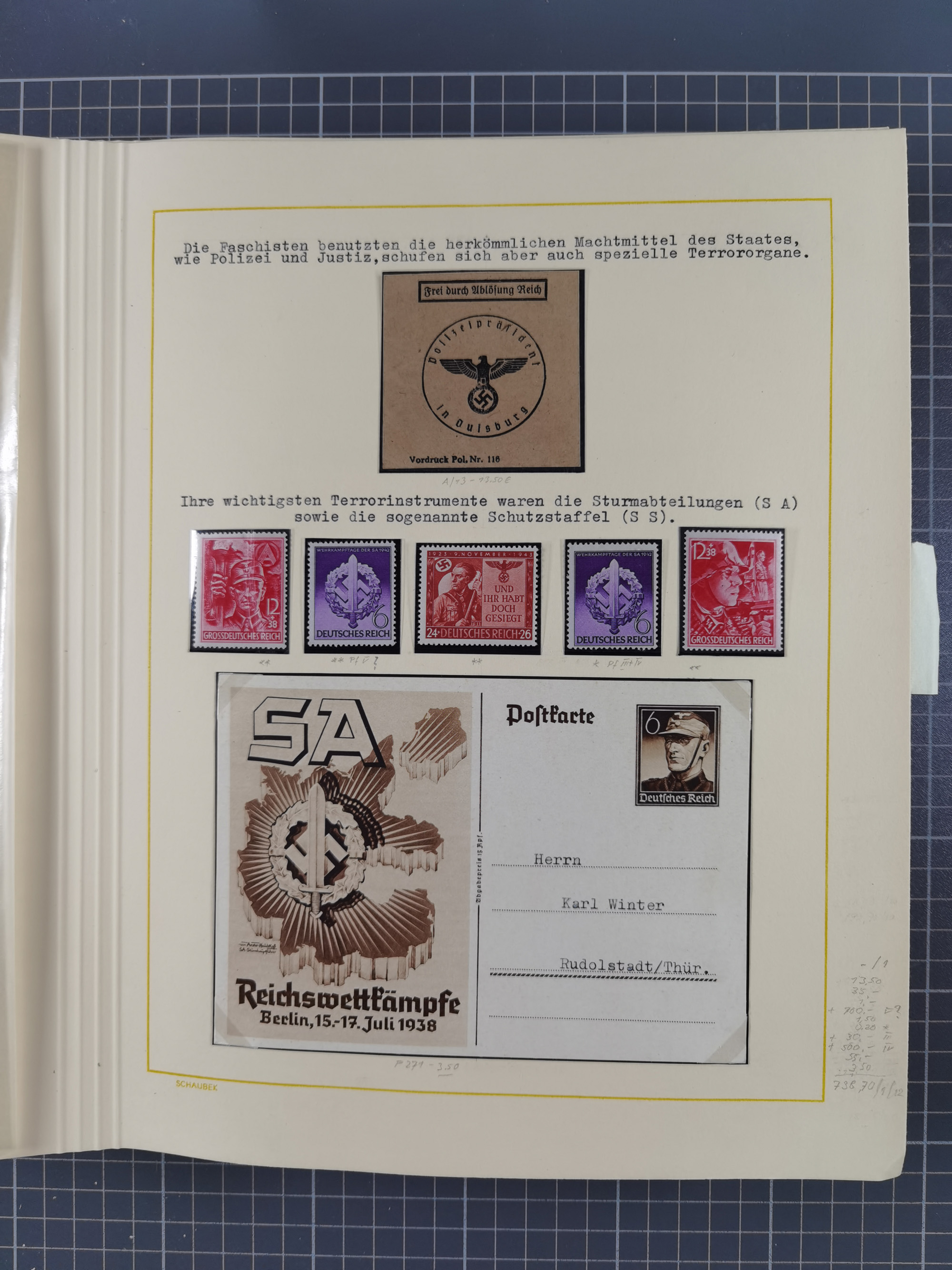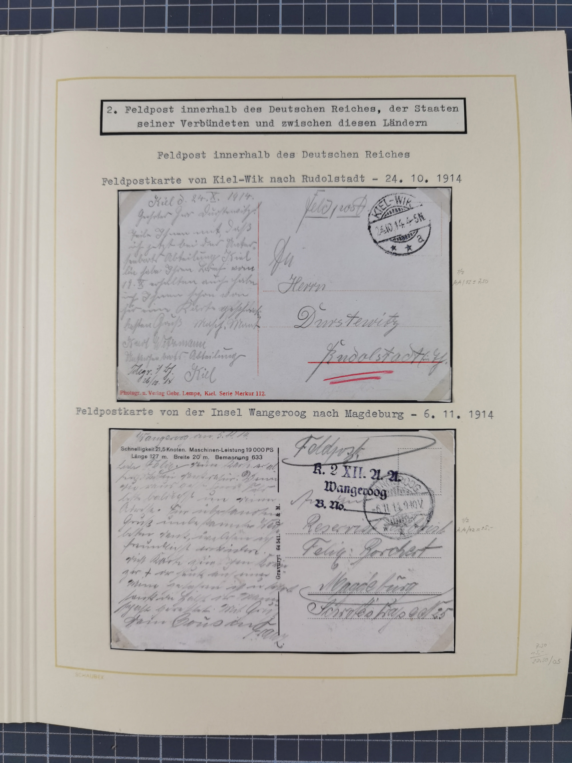 1859/1975 (ca.), postfrische/ungebrauchte und gestempelte Themensammlung “Der imperialistische Weltkrieg 1914/18”, inkl. Kolonien und Besatzungsausgaben mit vielen Belegen, zudem eine postfrische/ungebrauchte und gestempelte Themensammlung “Vorbereitung und Durchführung des zweiten Weltkrieges sowie seine Auswirkungen besonders in den Ländern Europas”, u.a. dabei Chicagofahrt gestempelt, Wagnersatz gestempelt, Blockausgabe Ostropa mit Sonderstempel, mit vielen Belegen, sowie ein Album mit portofreien Belegen, meist gute Erhaltung, in sieben Ordnern und einem Briefalbum