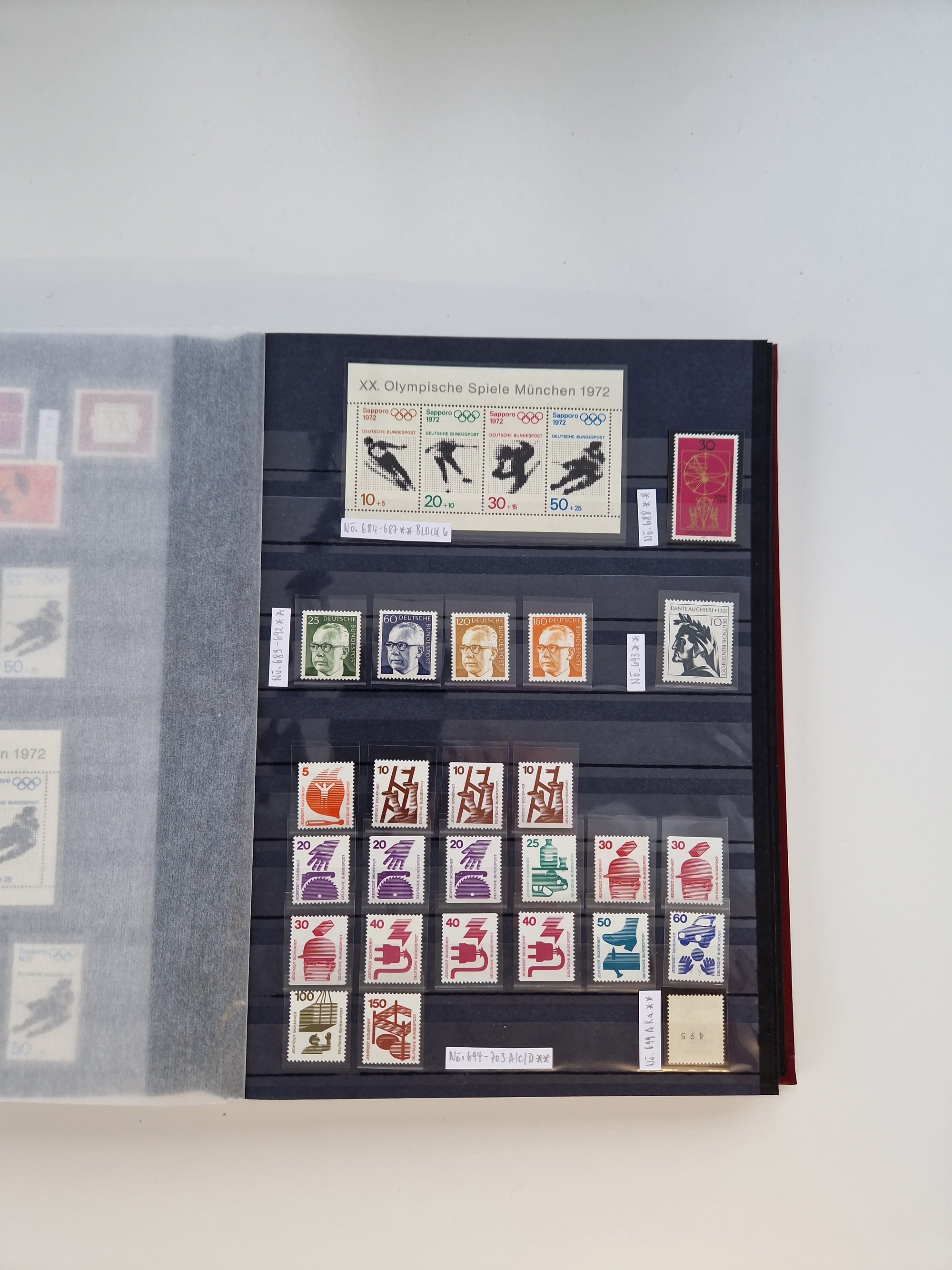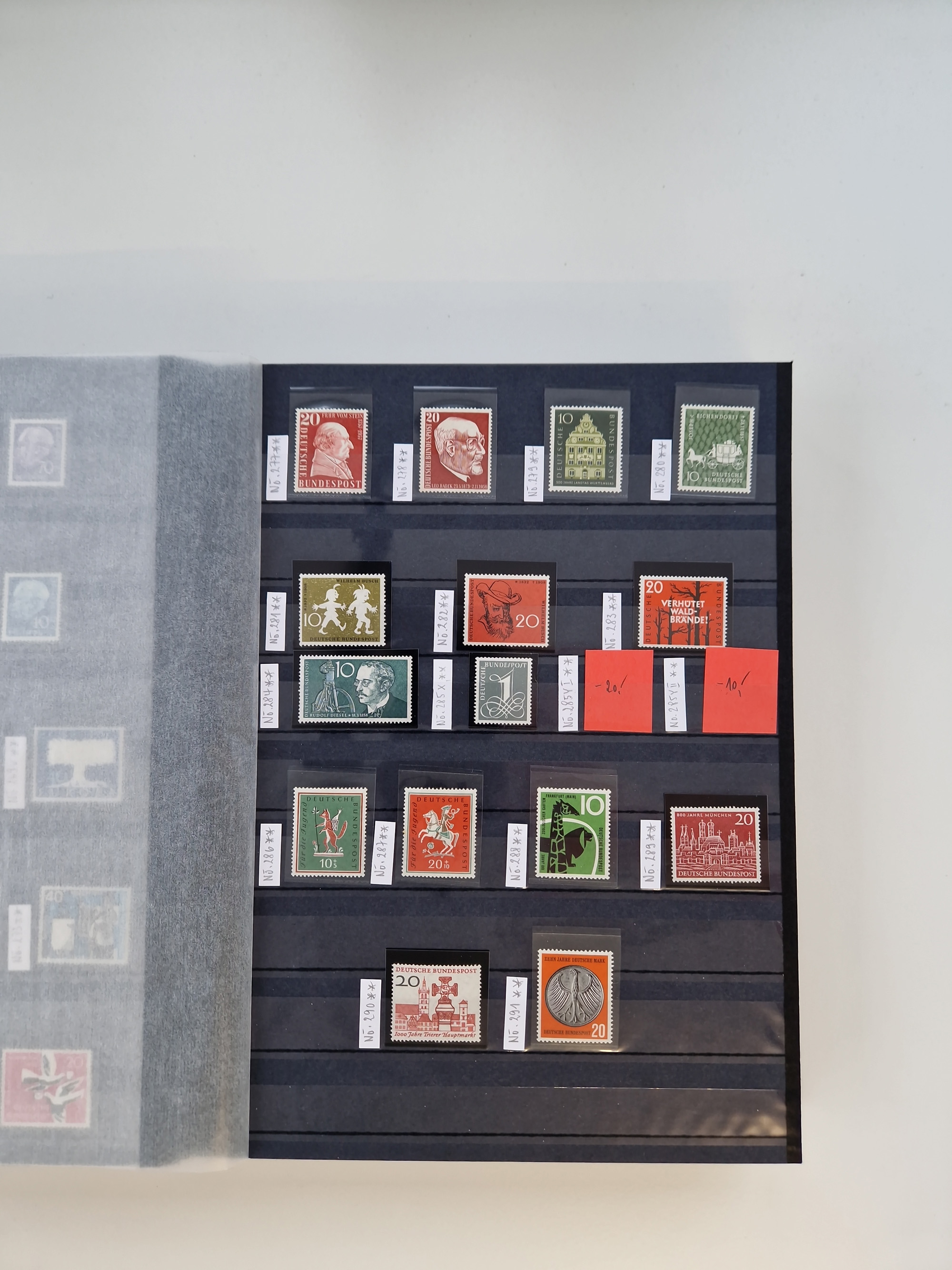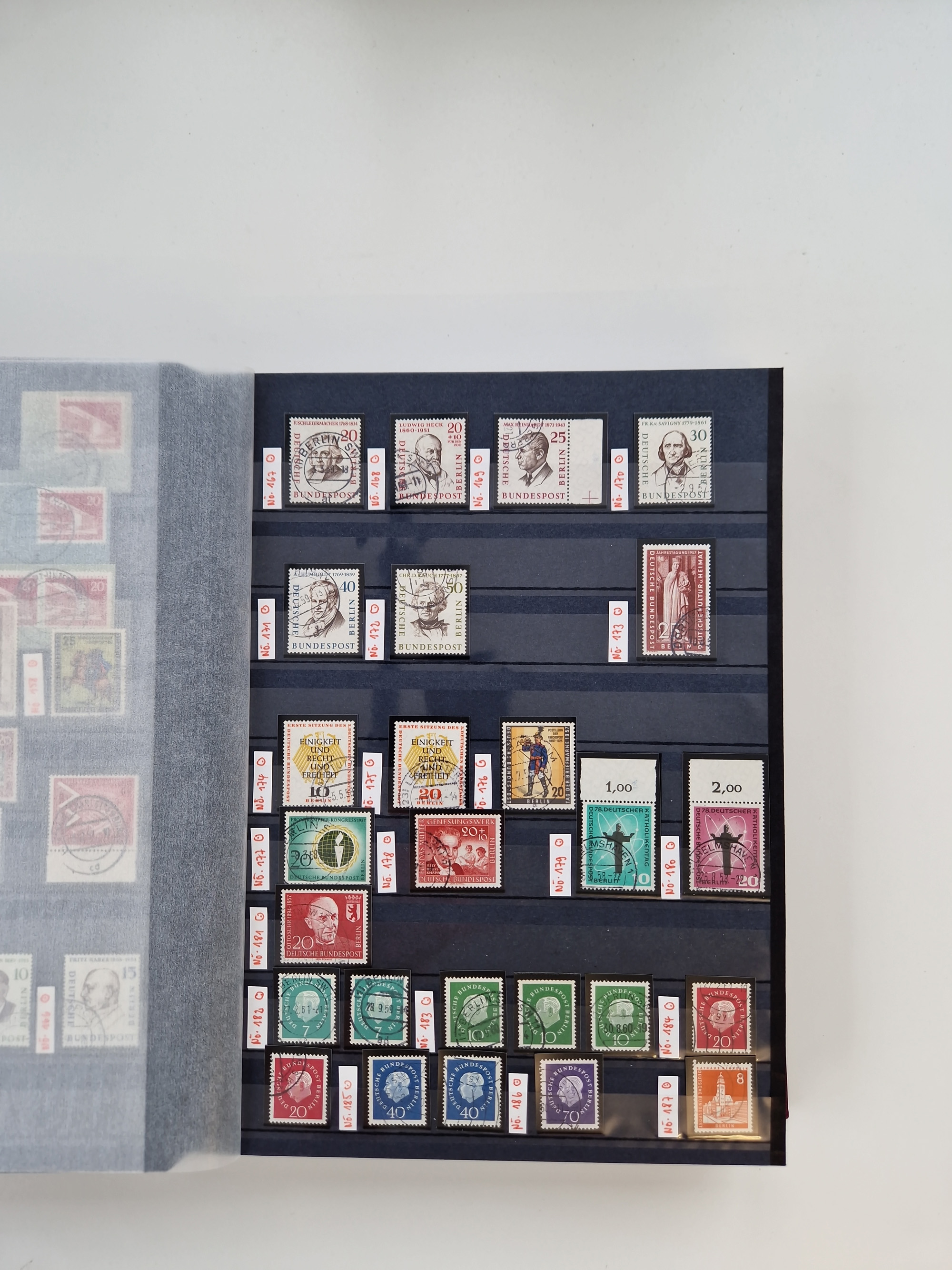 1920/2001, postfrischer, ungebrauchte und gestempelter Bestand in 8 großen Kartons, dabei Sammlungen Bund mit Posthorn, Berlin mit gestempeltem Bl.1 (Fotoattest Schlegel BPP), DDR, Französische Zone mit Konstanz II, vielen Dubletten, Banderolen von Rollenmarken, etc.
