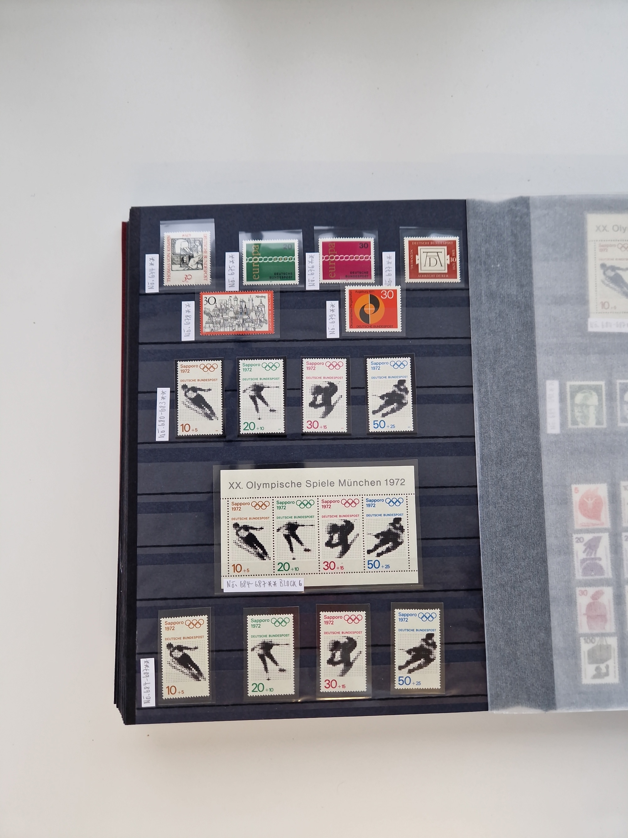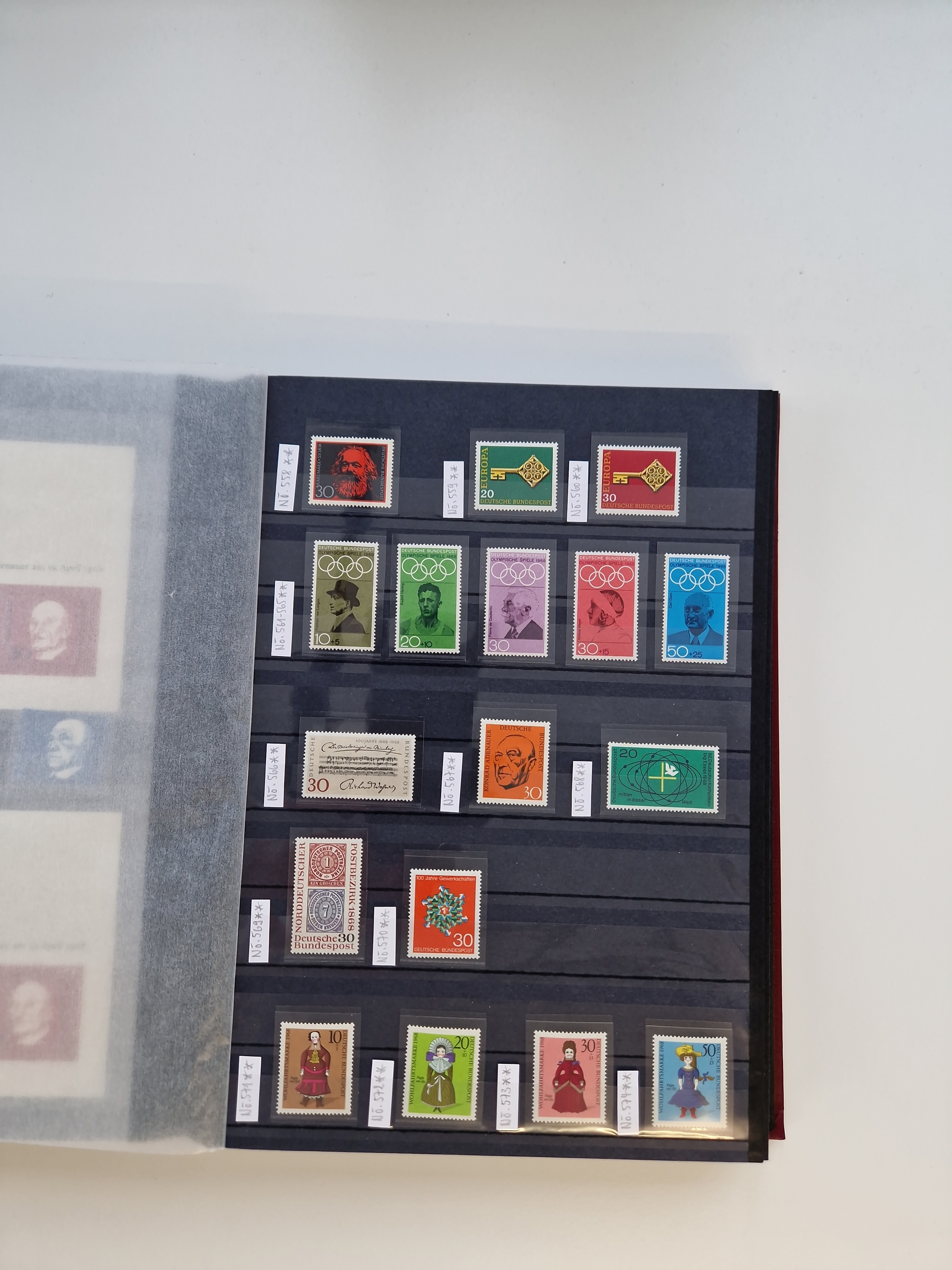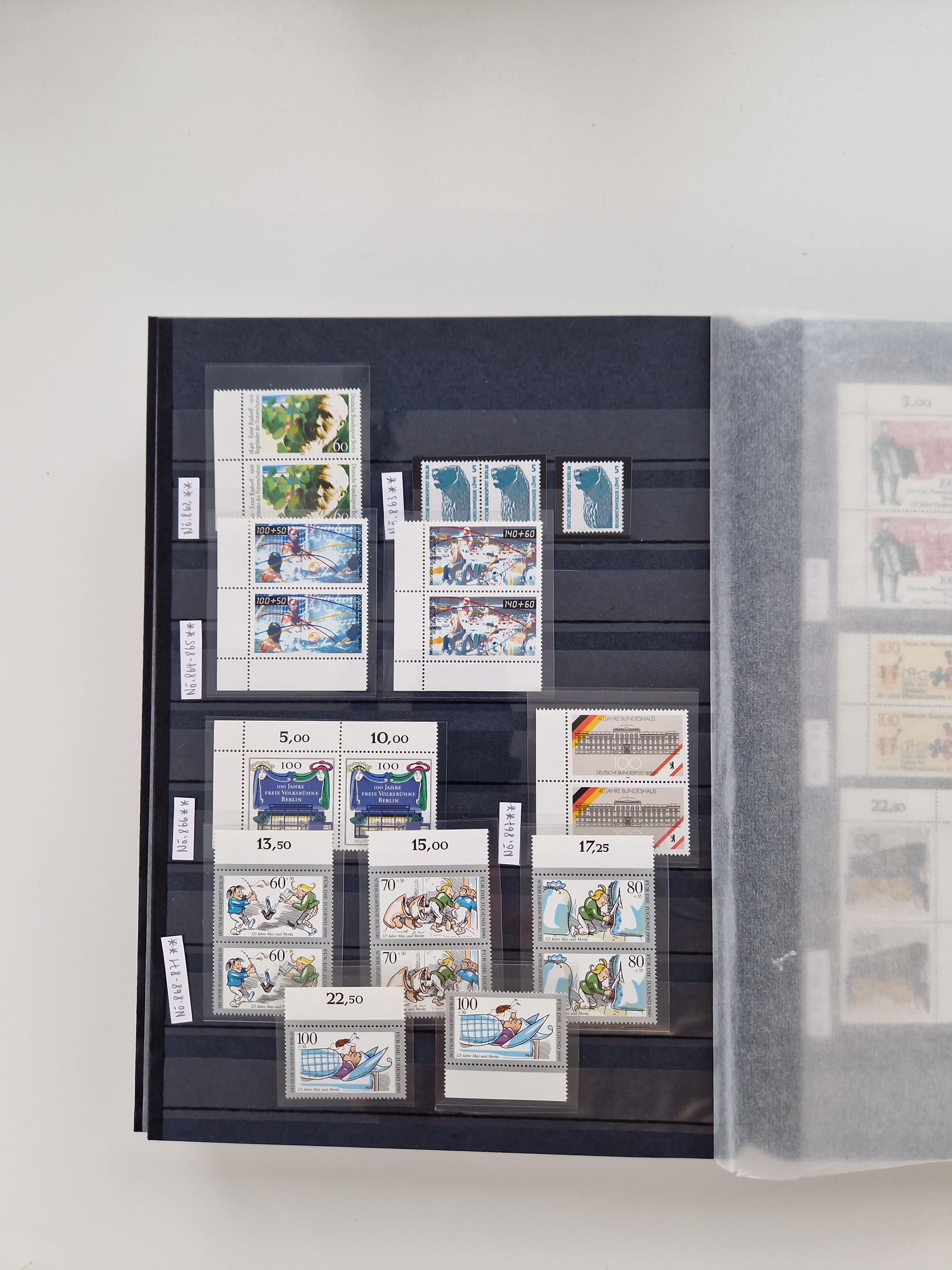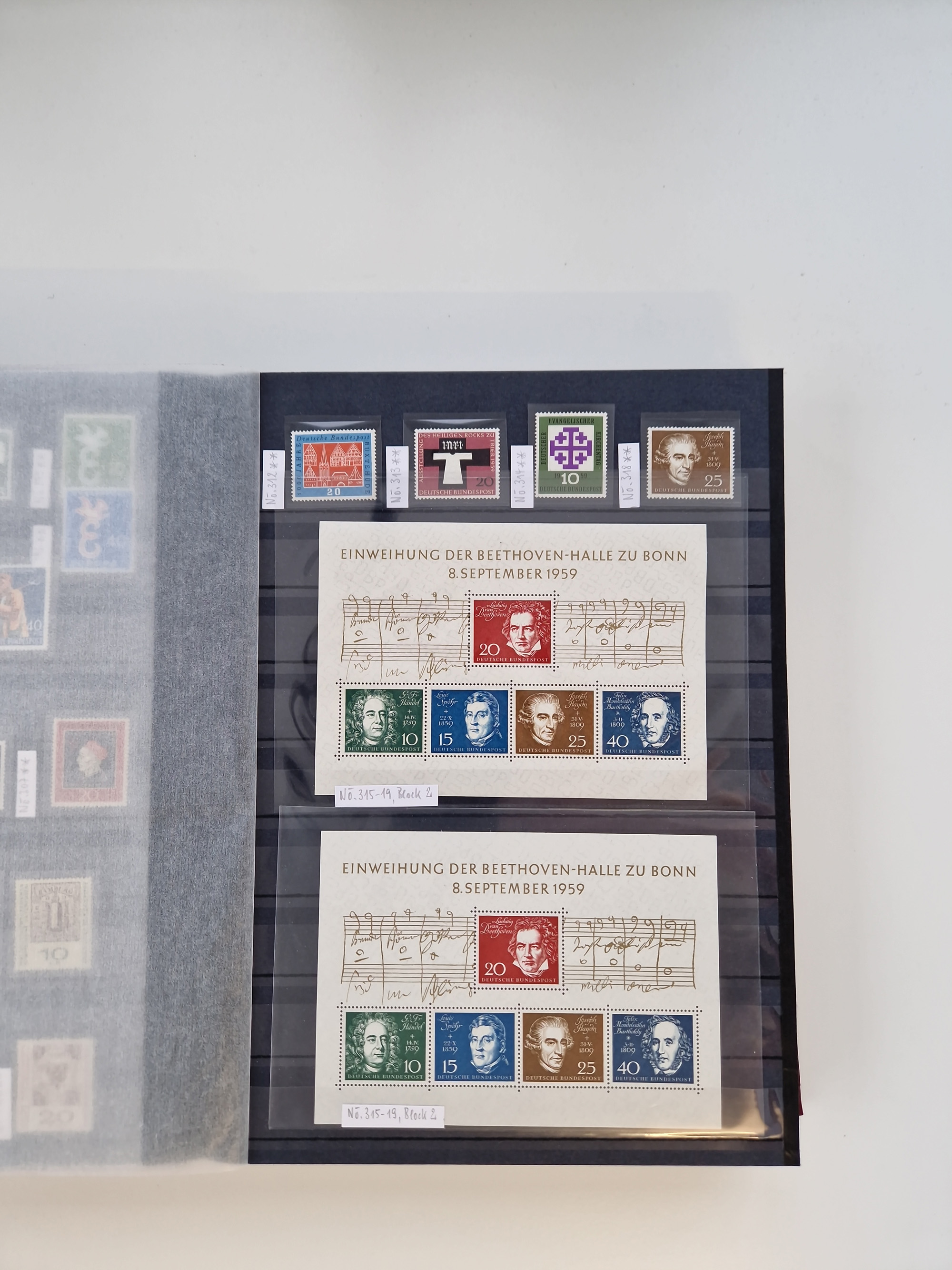 1920/2001, postfrischer, ungebrauchte und gestempelter Bestand in 8 großen Kartons, dabei Sammlungen Bund mit Posthorn, Berlin mit gestempeltem Bl.1 (Fotoattest Schlegel BPP), DDR, Französische Zone mit Konstanz II, vielen Dubletten, Banderolen von Rollenmarken, etc.