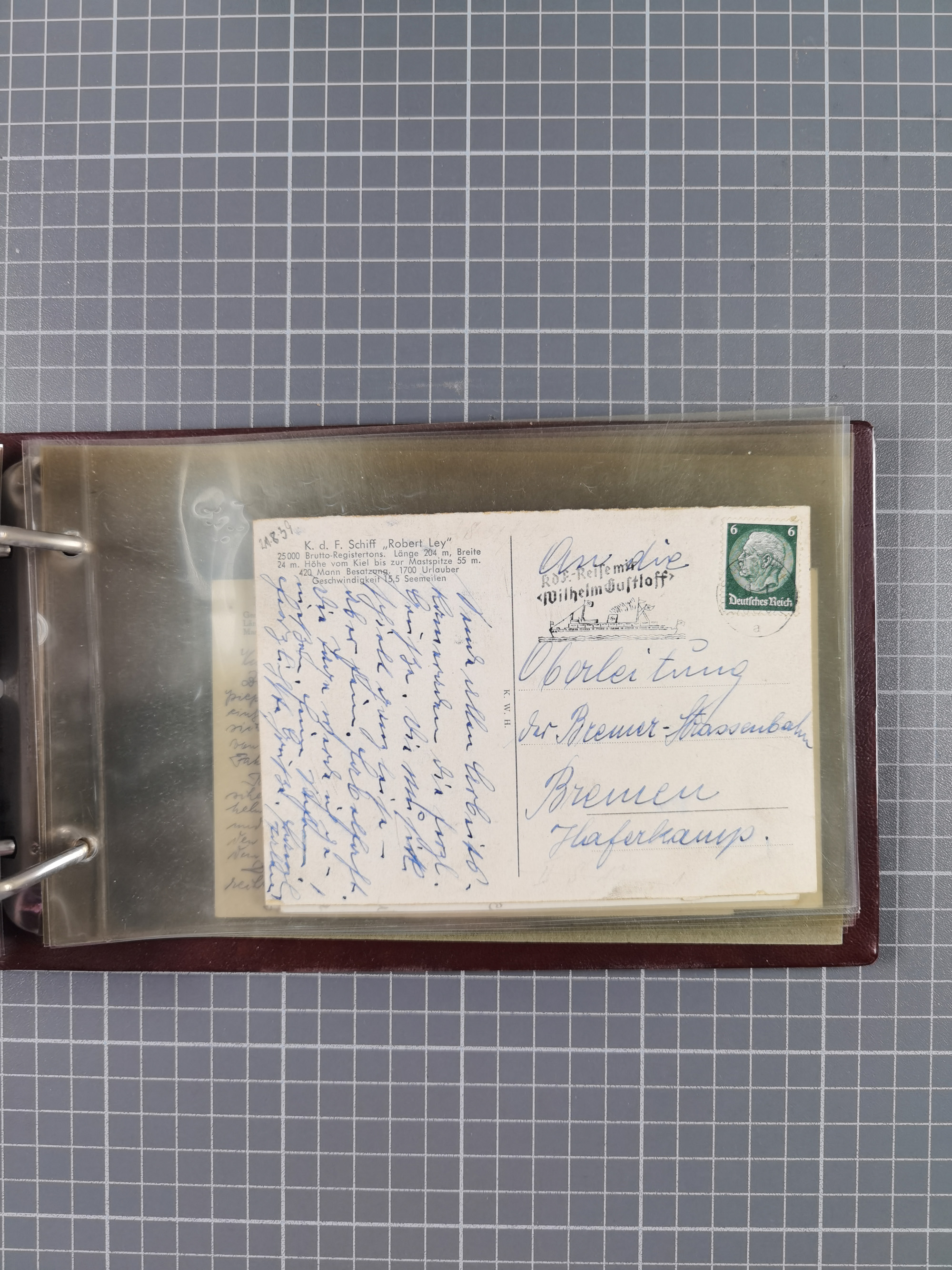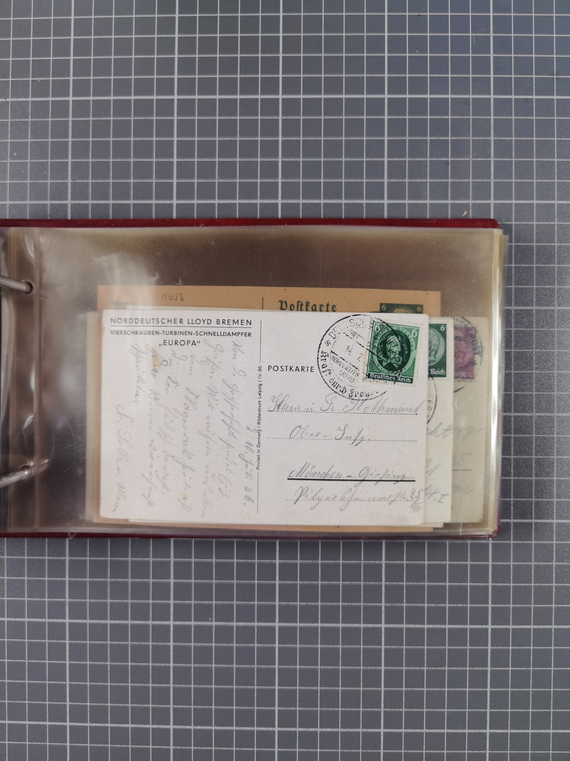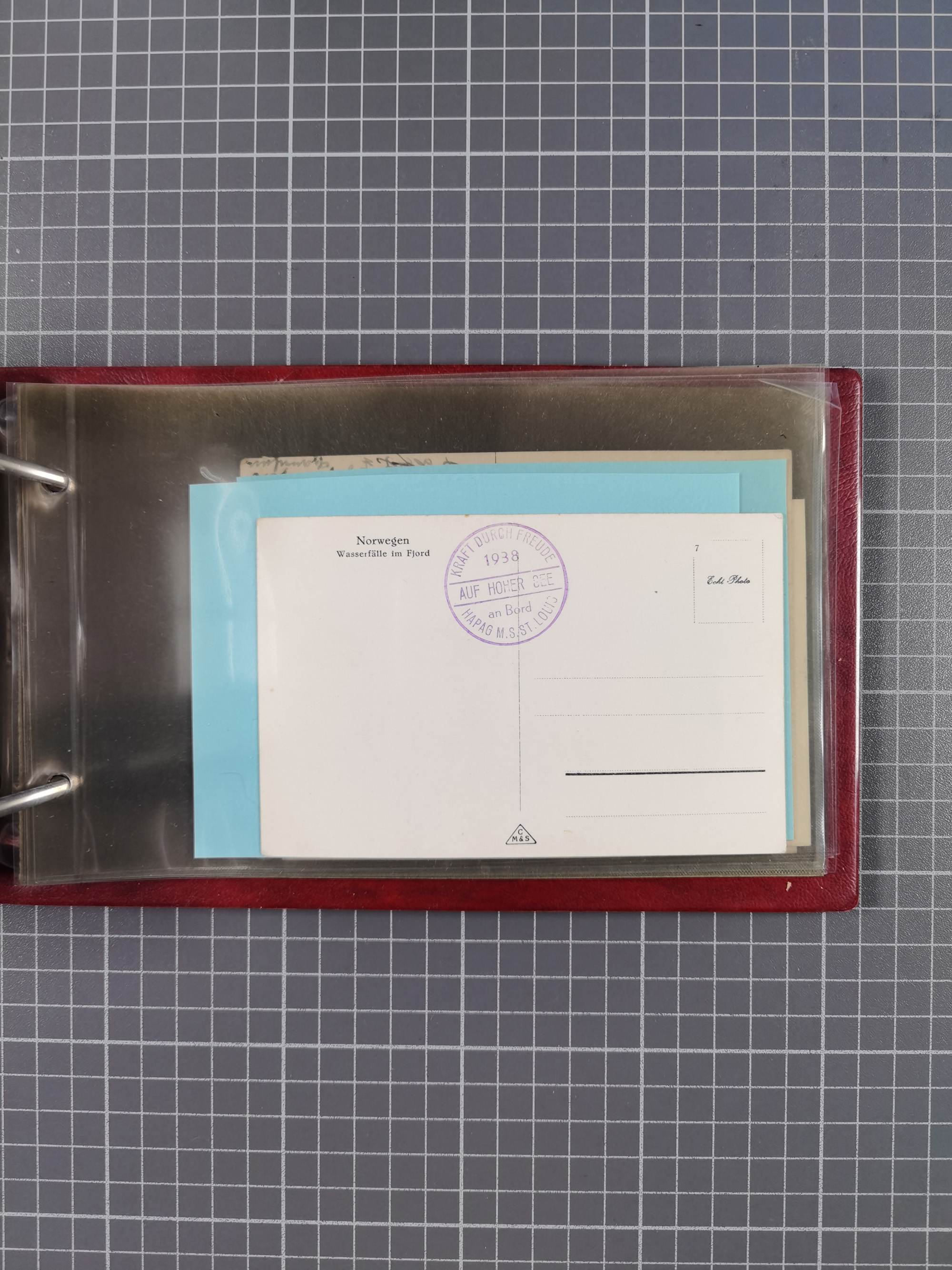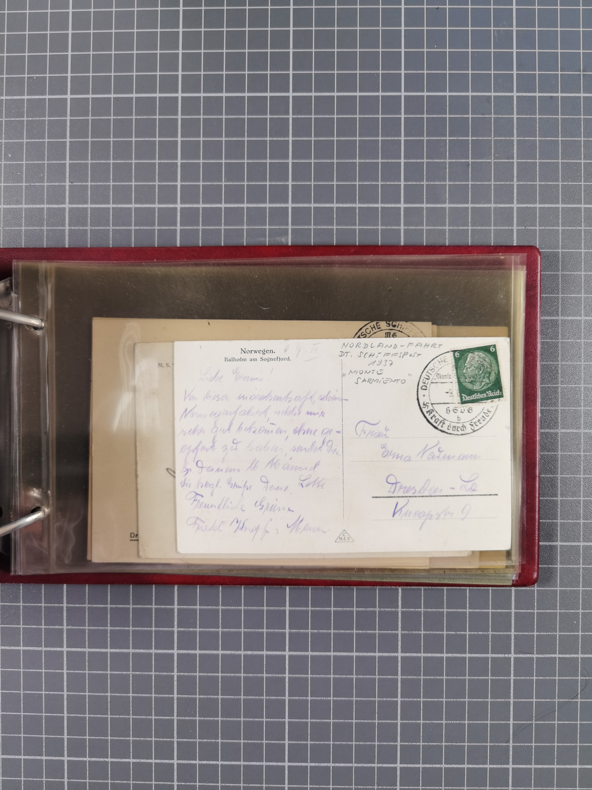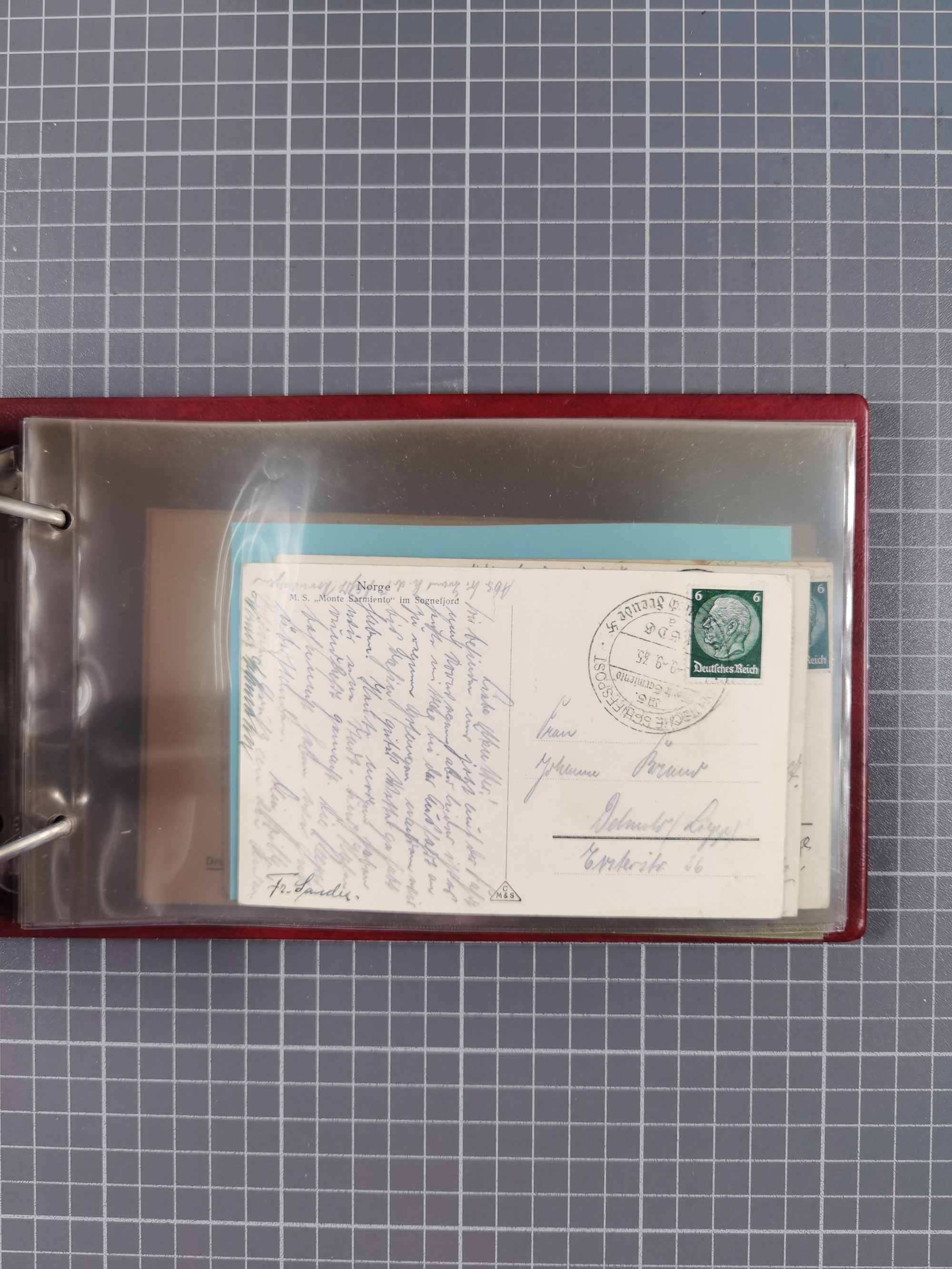 1934/39, Sammlung “Kraft durch Freude” mit ca. 240 Briefen, Karten und GSK inkl. Stempel des "LLOYD BREMEN", dazu Fotos, Schiffsansichtskarten, Speisekarten usw., sauber in vier Alben, ex Steinmeyer