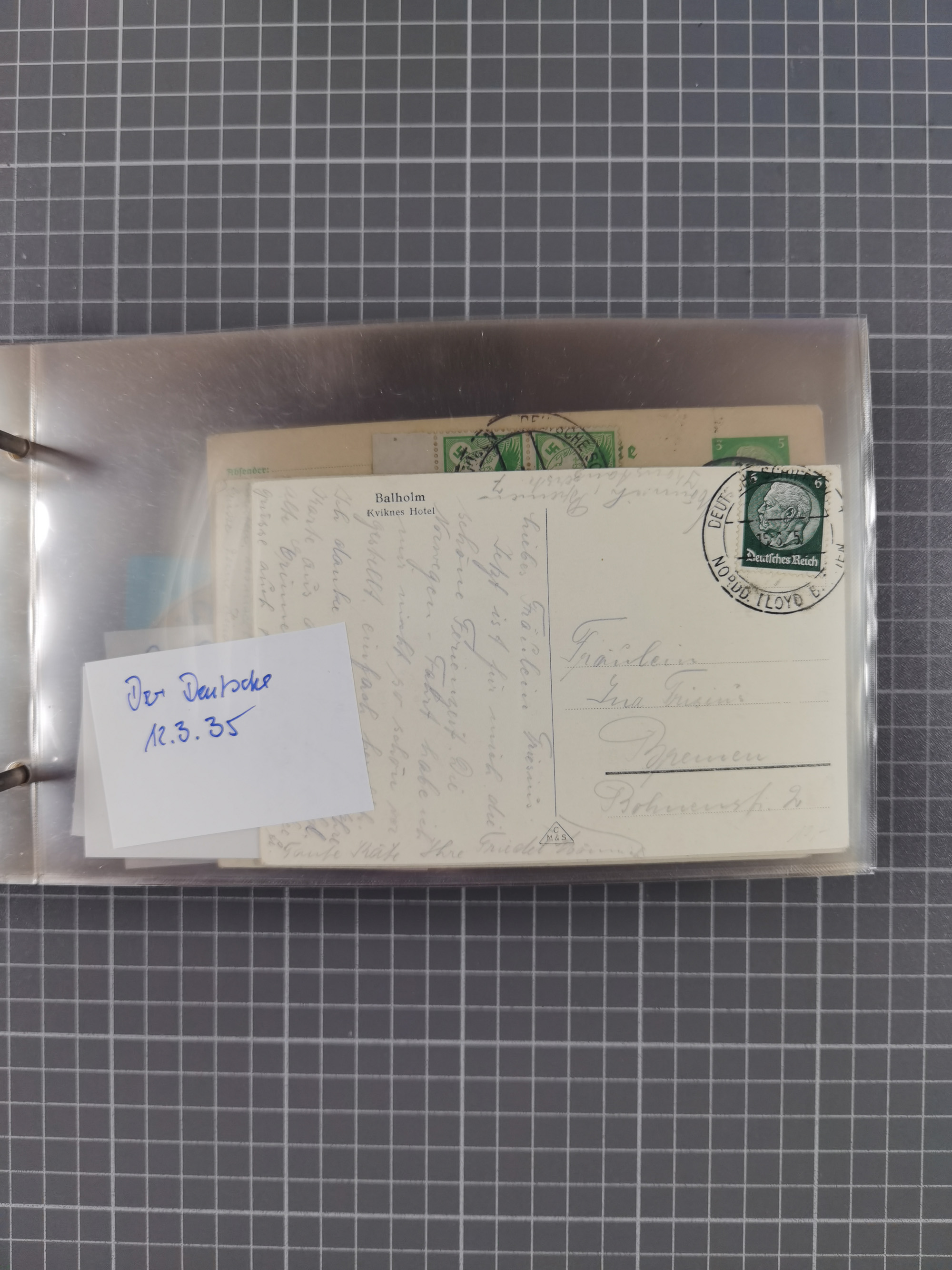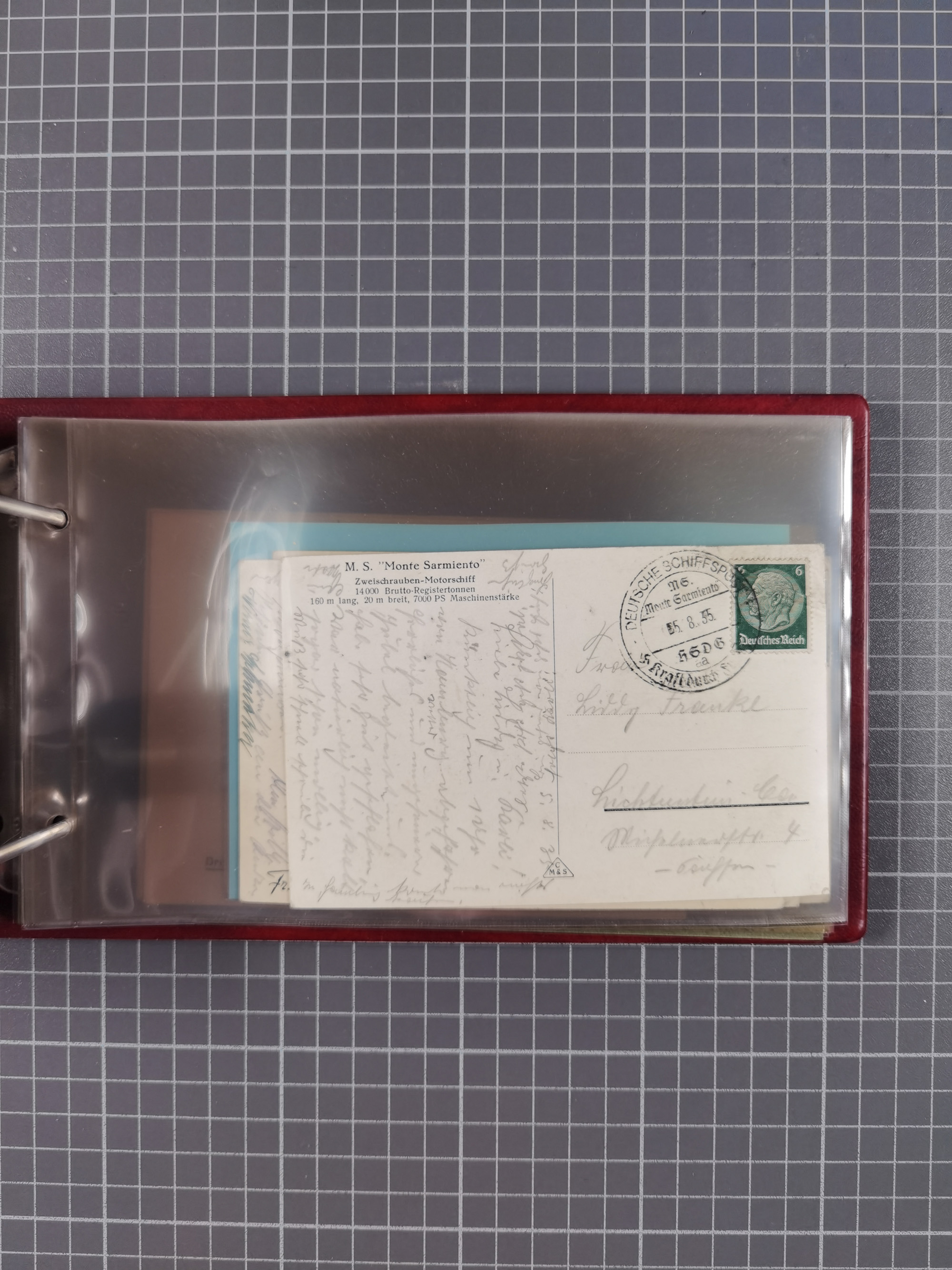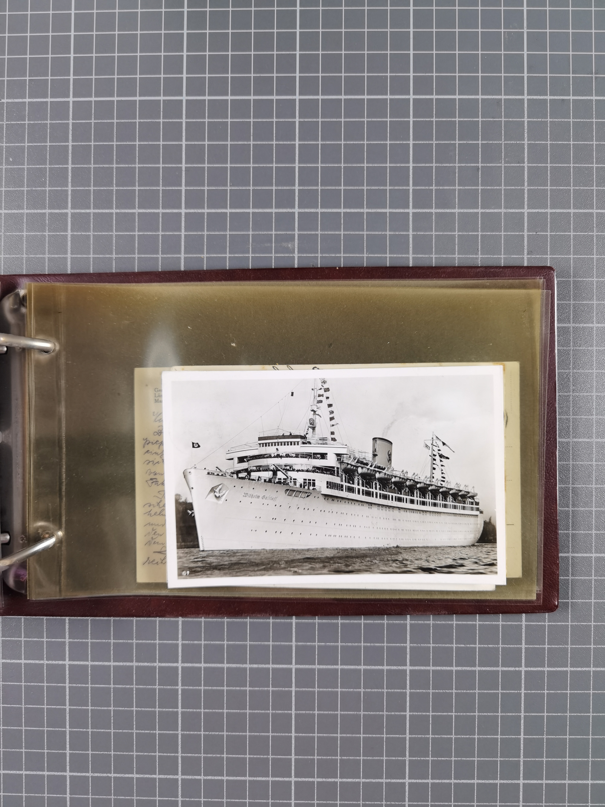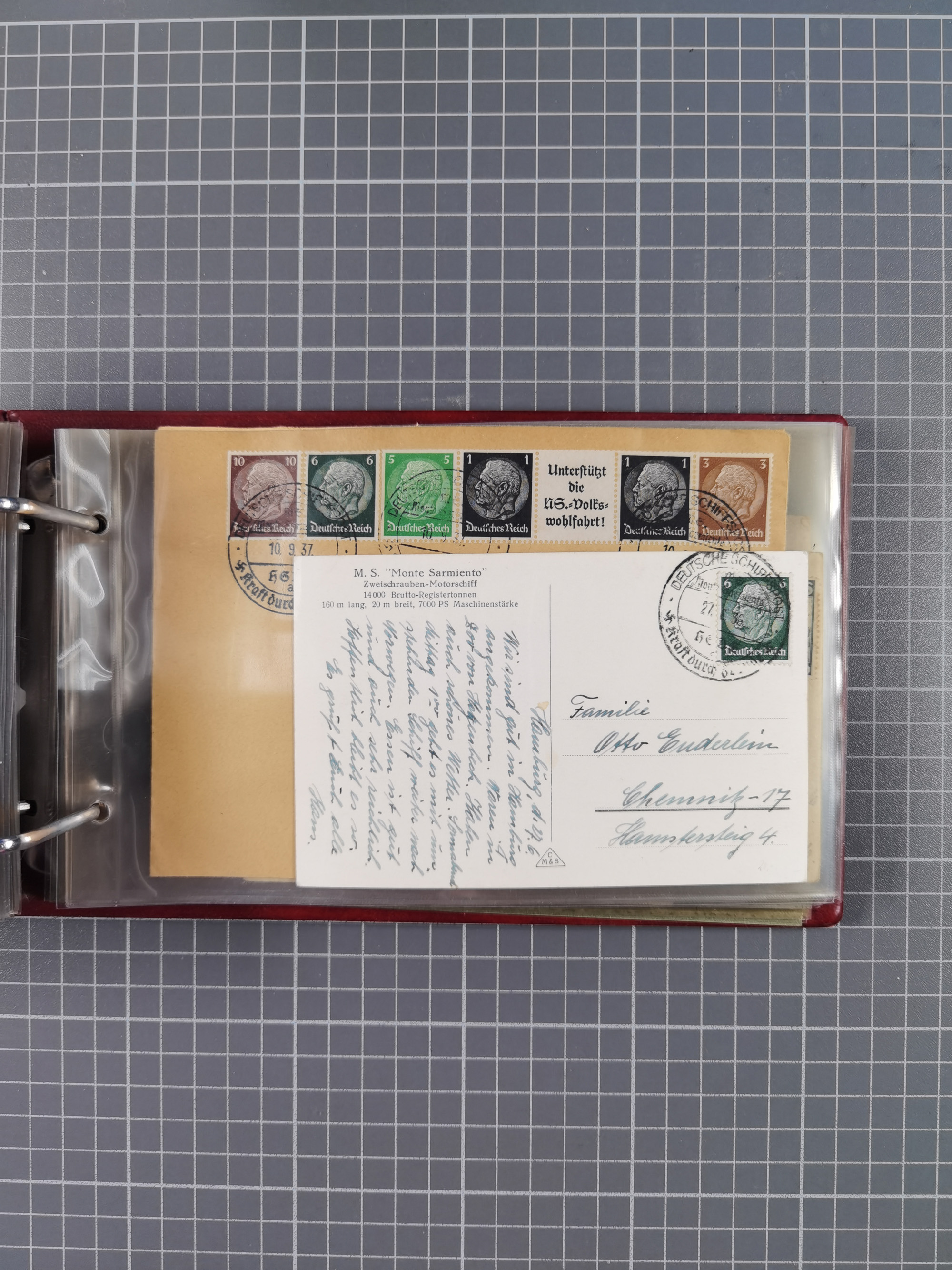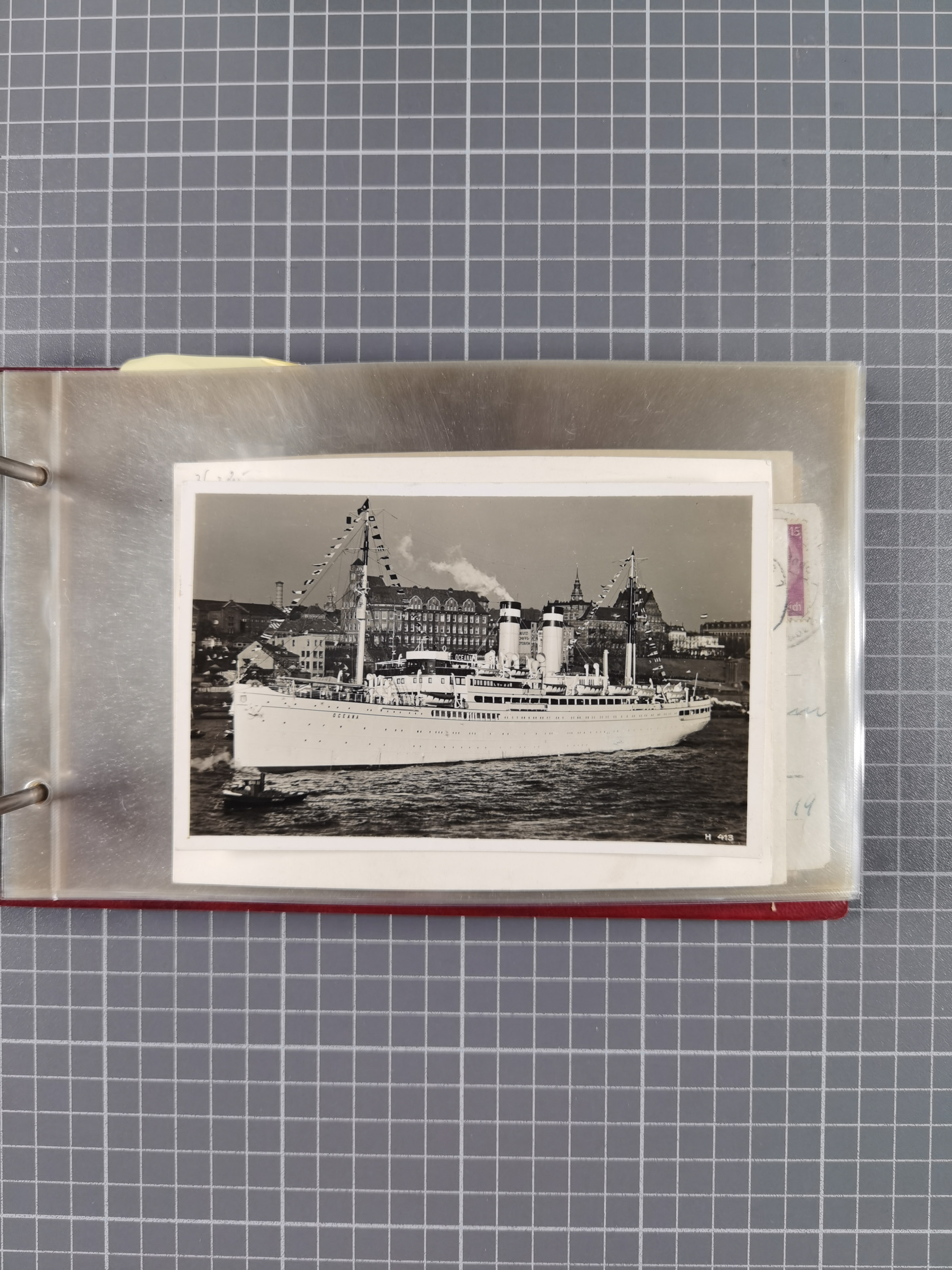 1934/39, Sammlung “Kraft durch Freude” mit ca. 240 Briefen, Karten und GSK inkl. Stempel des "LLOYD BREMEN", dazu Fotos, Schiffsansichtskarten, Speisekarten usw., sauber in vier Alben, ex Steinmeyer