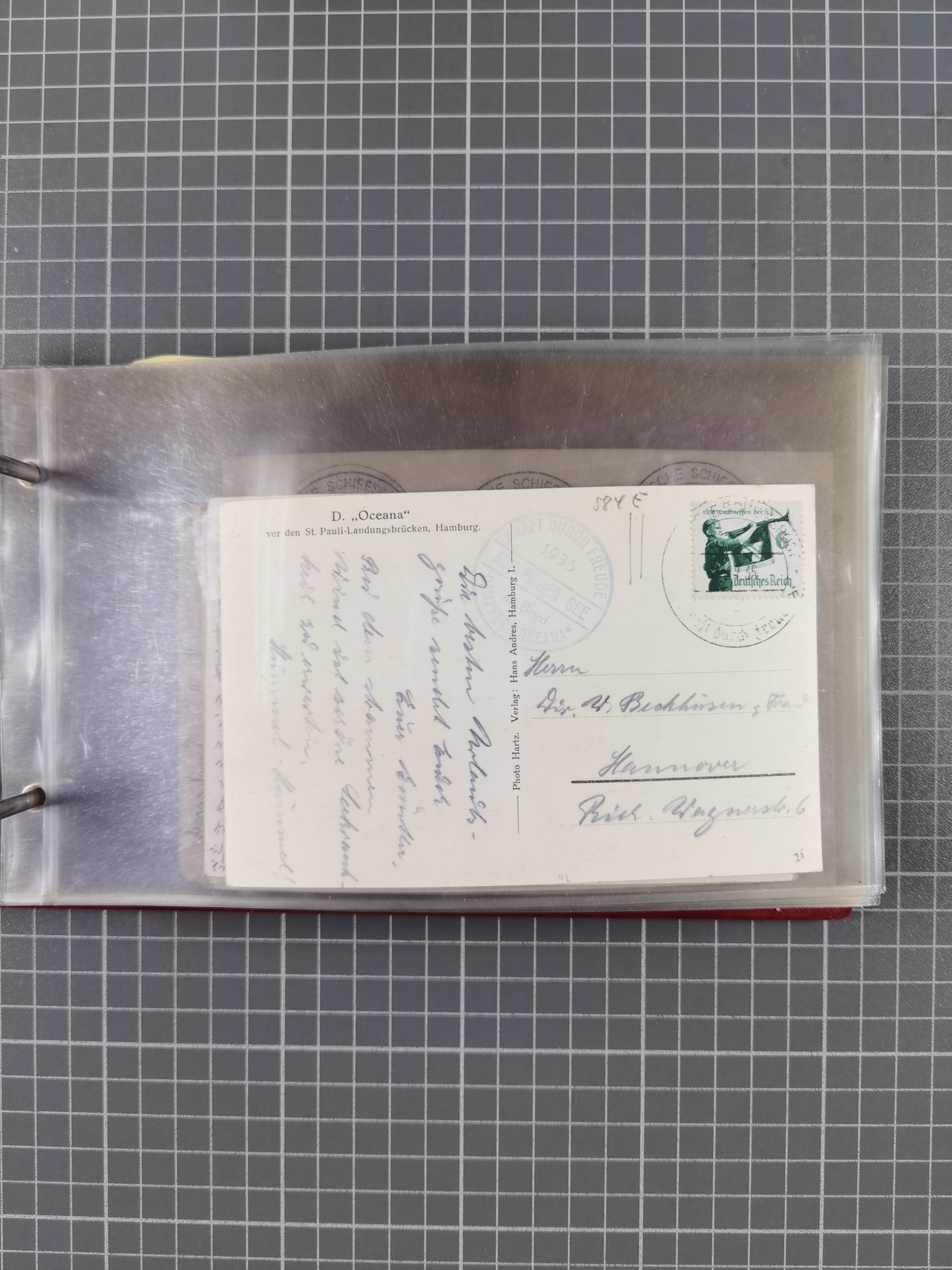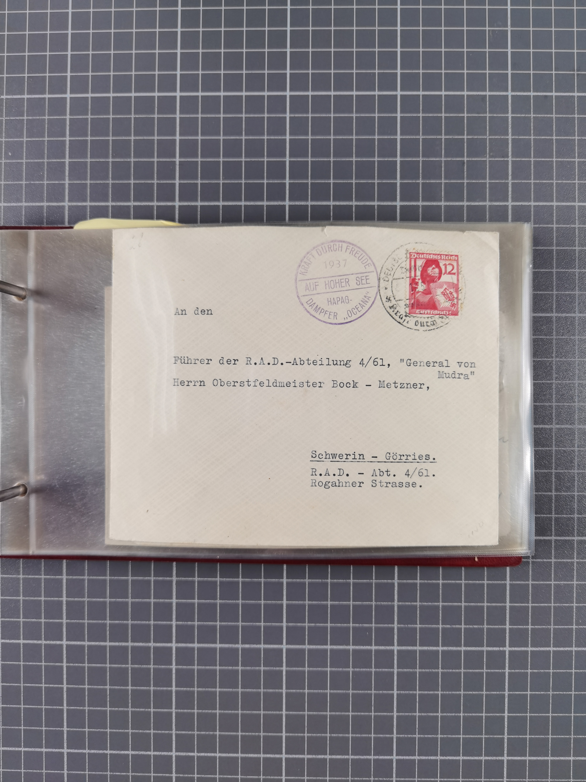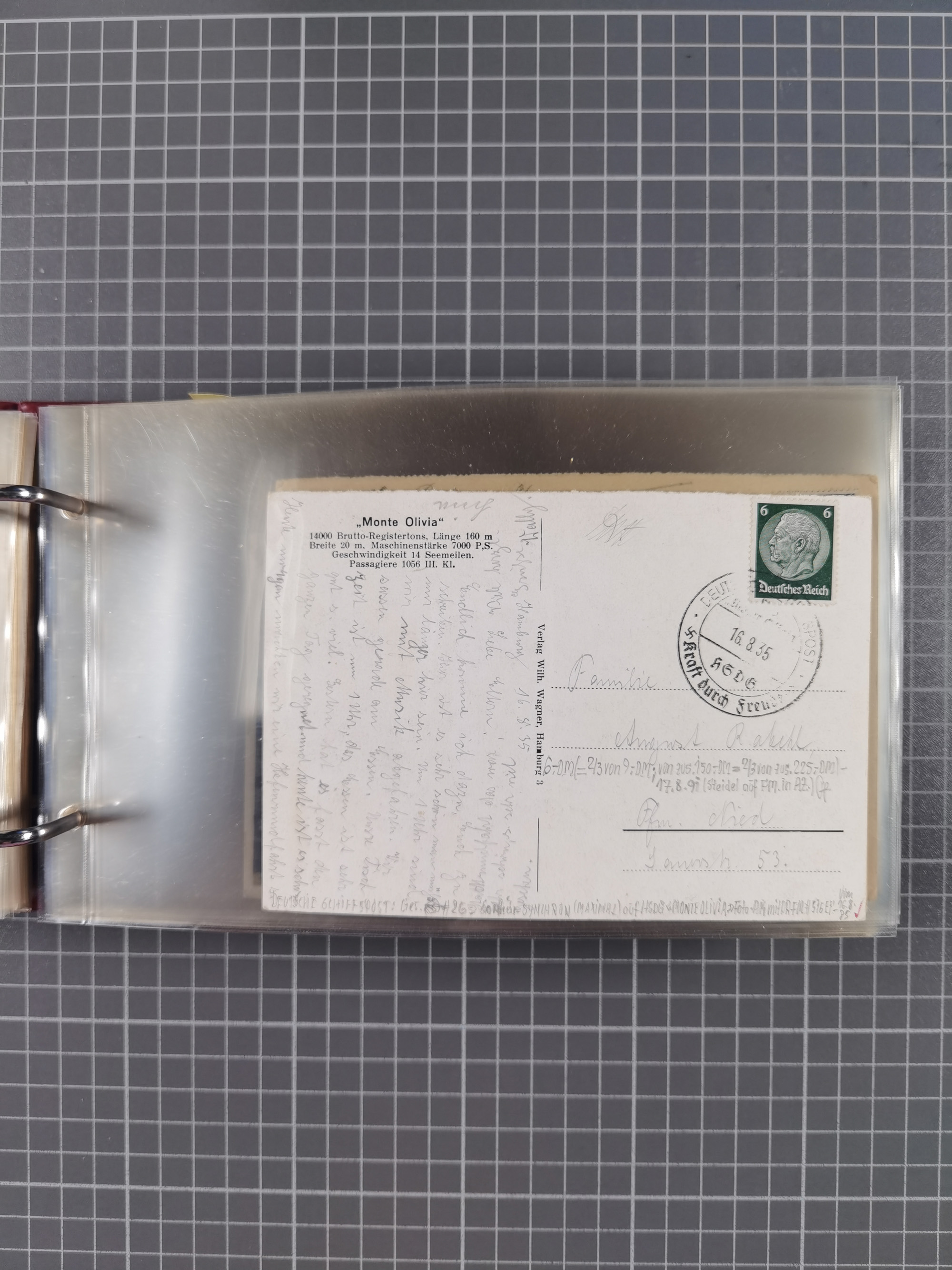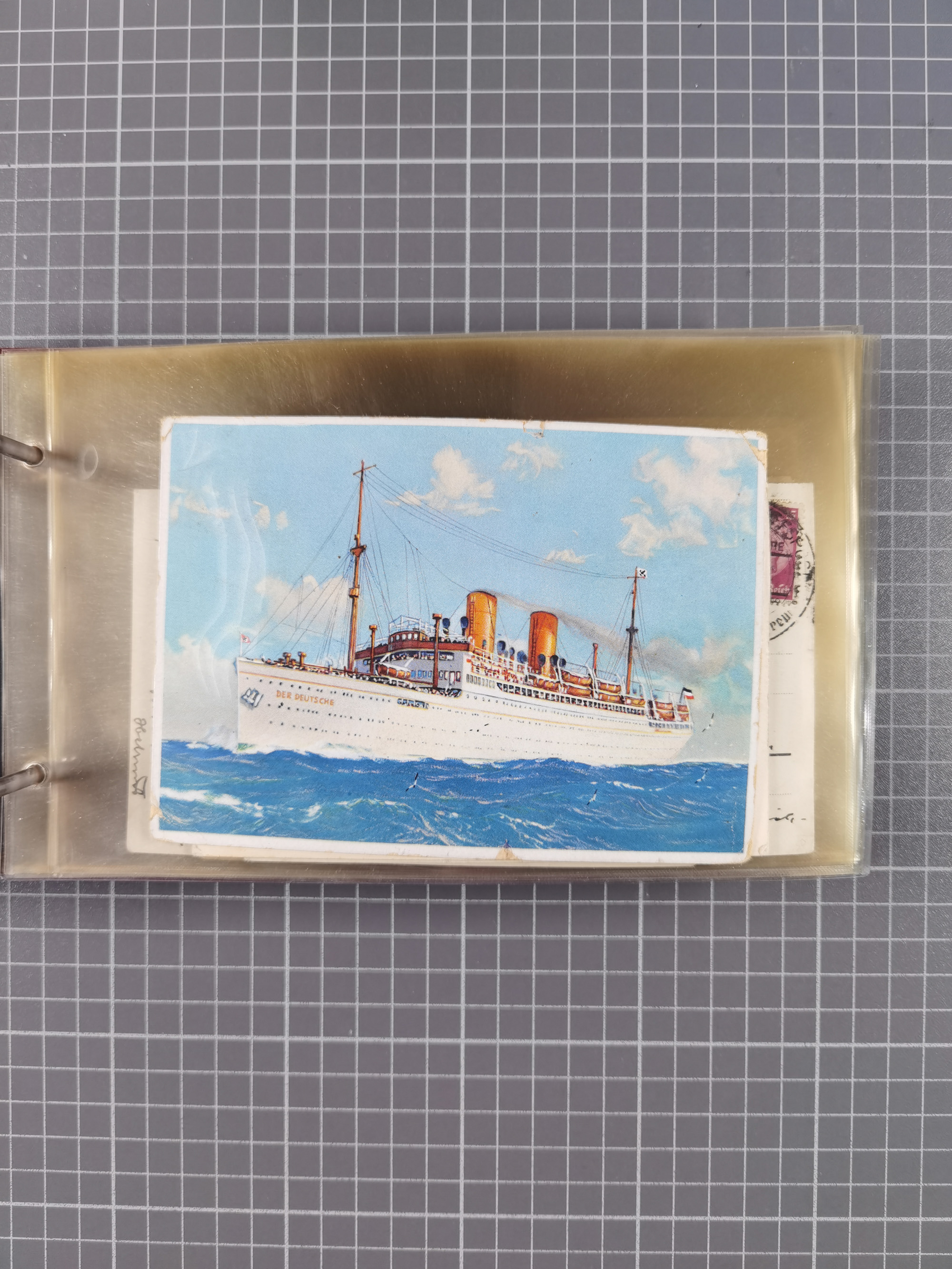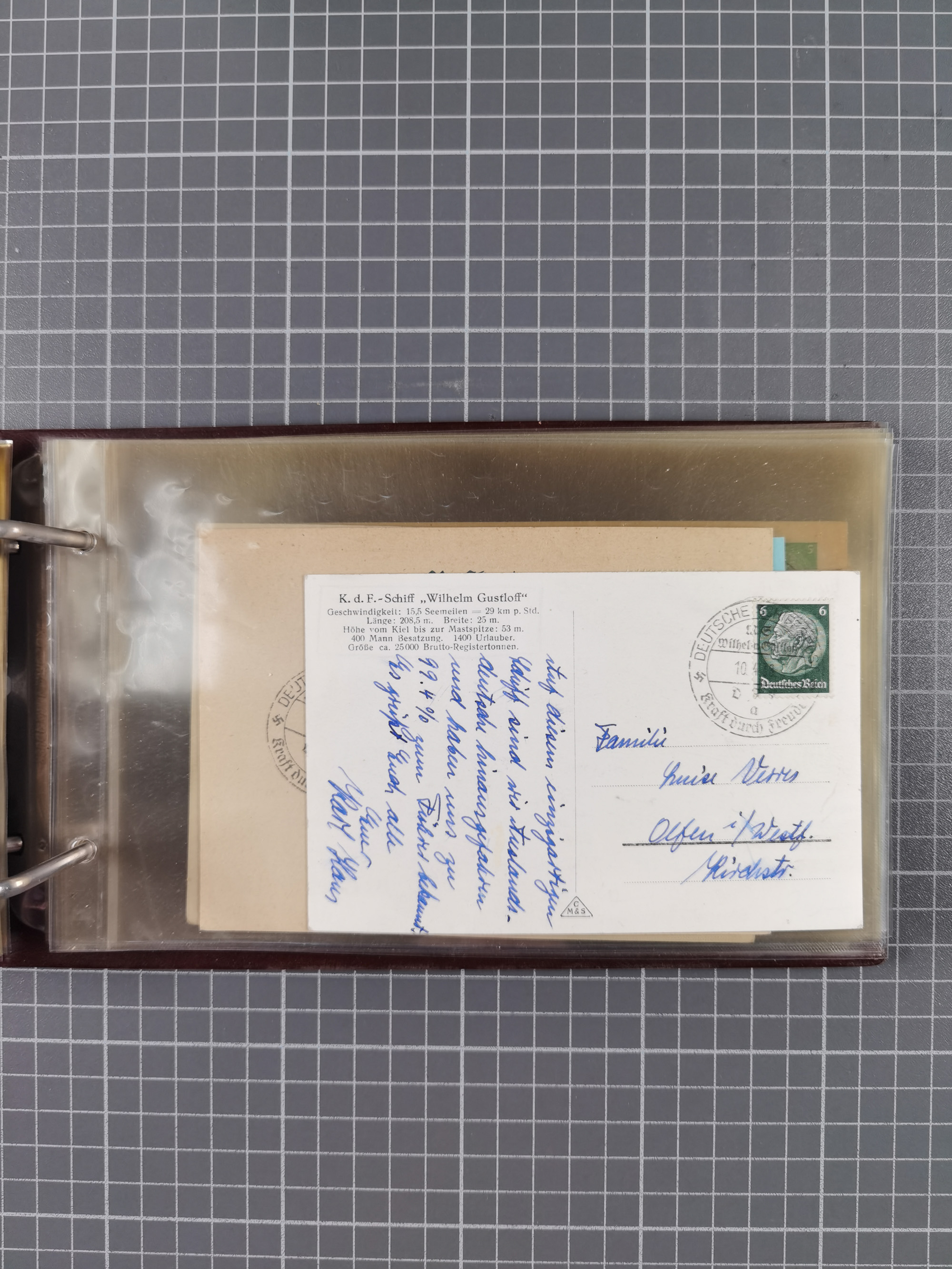 1934/39, Sammlung “Kraft durch Freude” mit ca. 240 Briefen, Karten und GSK inkl. Stempel des "LLOYD BREMEN", dazu Fotos, Schiffsansichtskarten, Speisekarten usw., sauber in vier Alben, ex Steinmeyer
