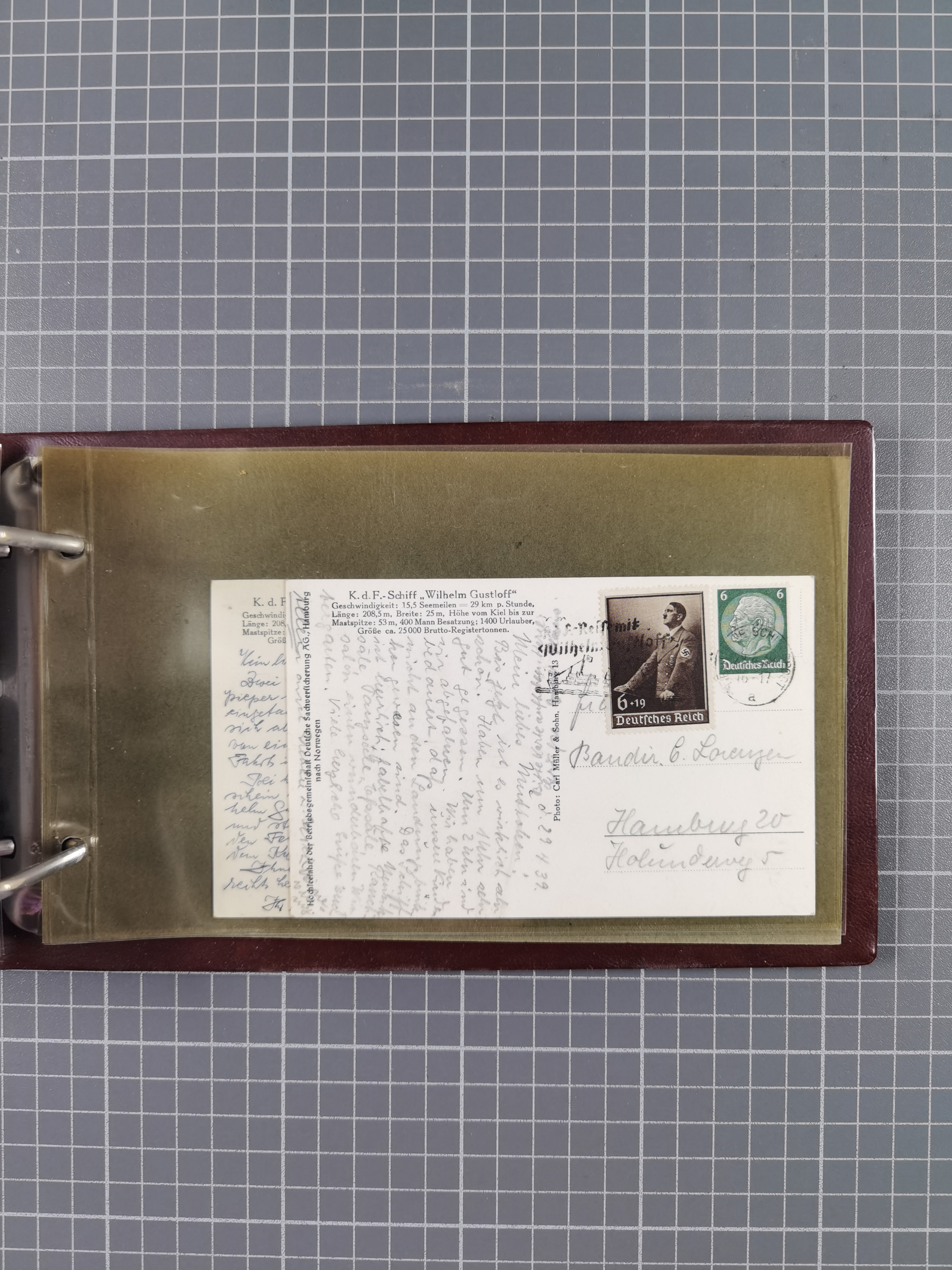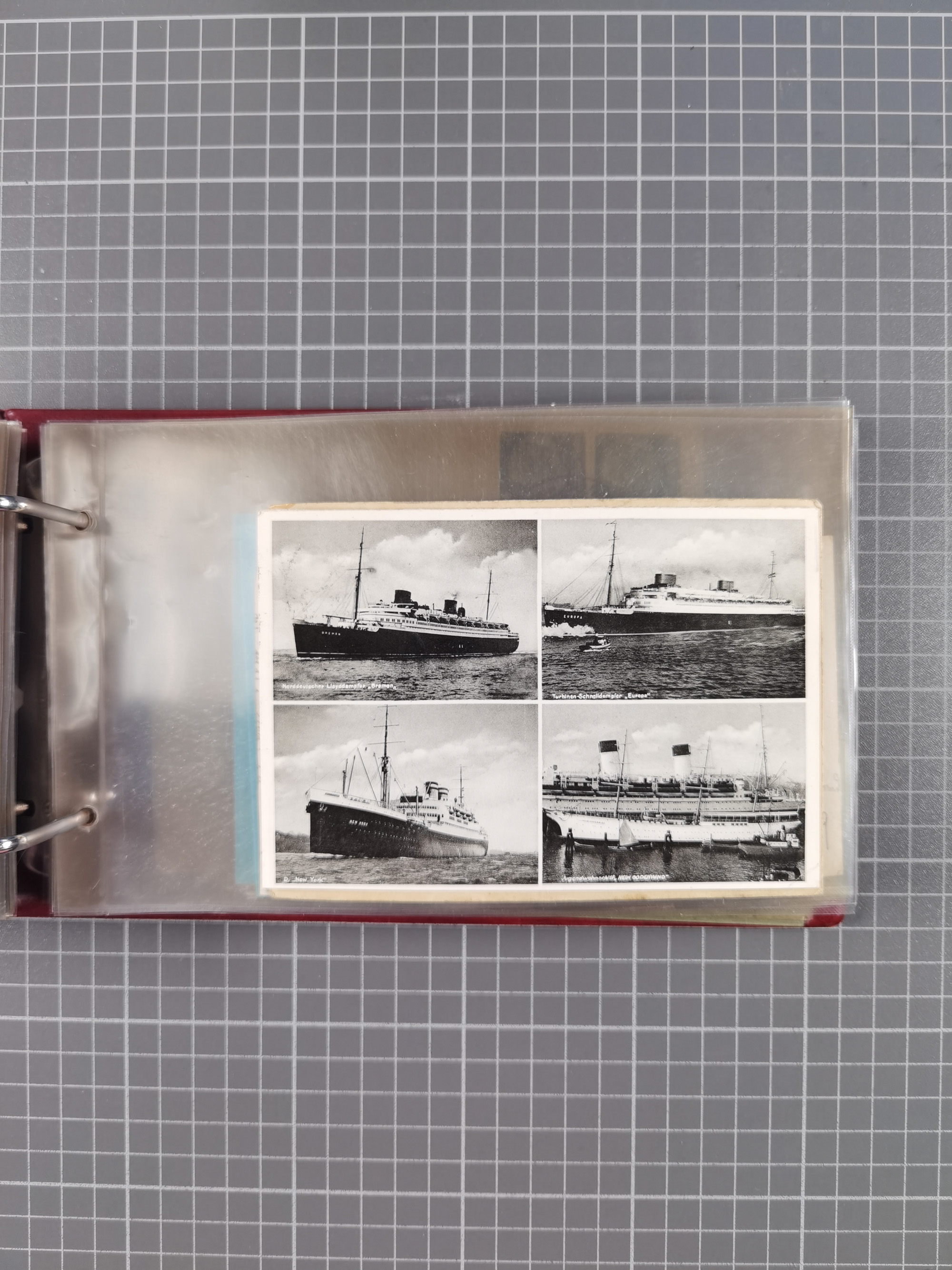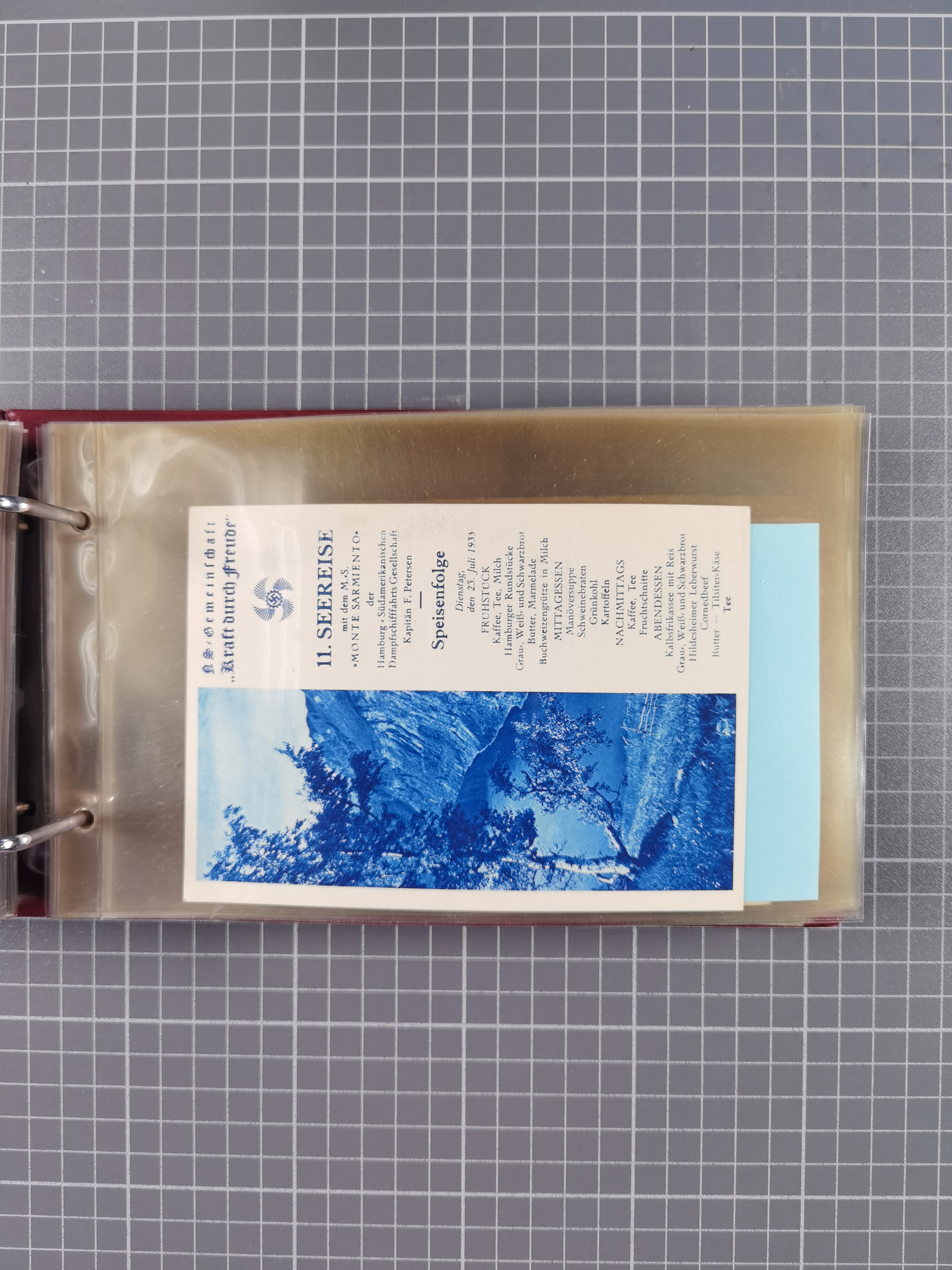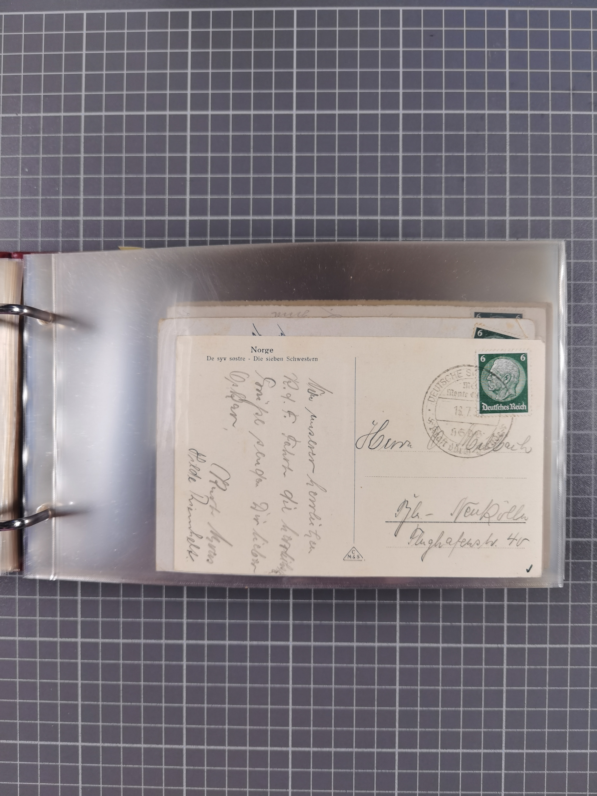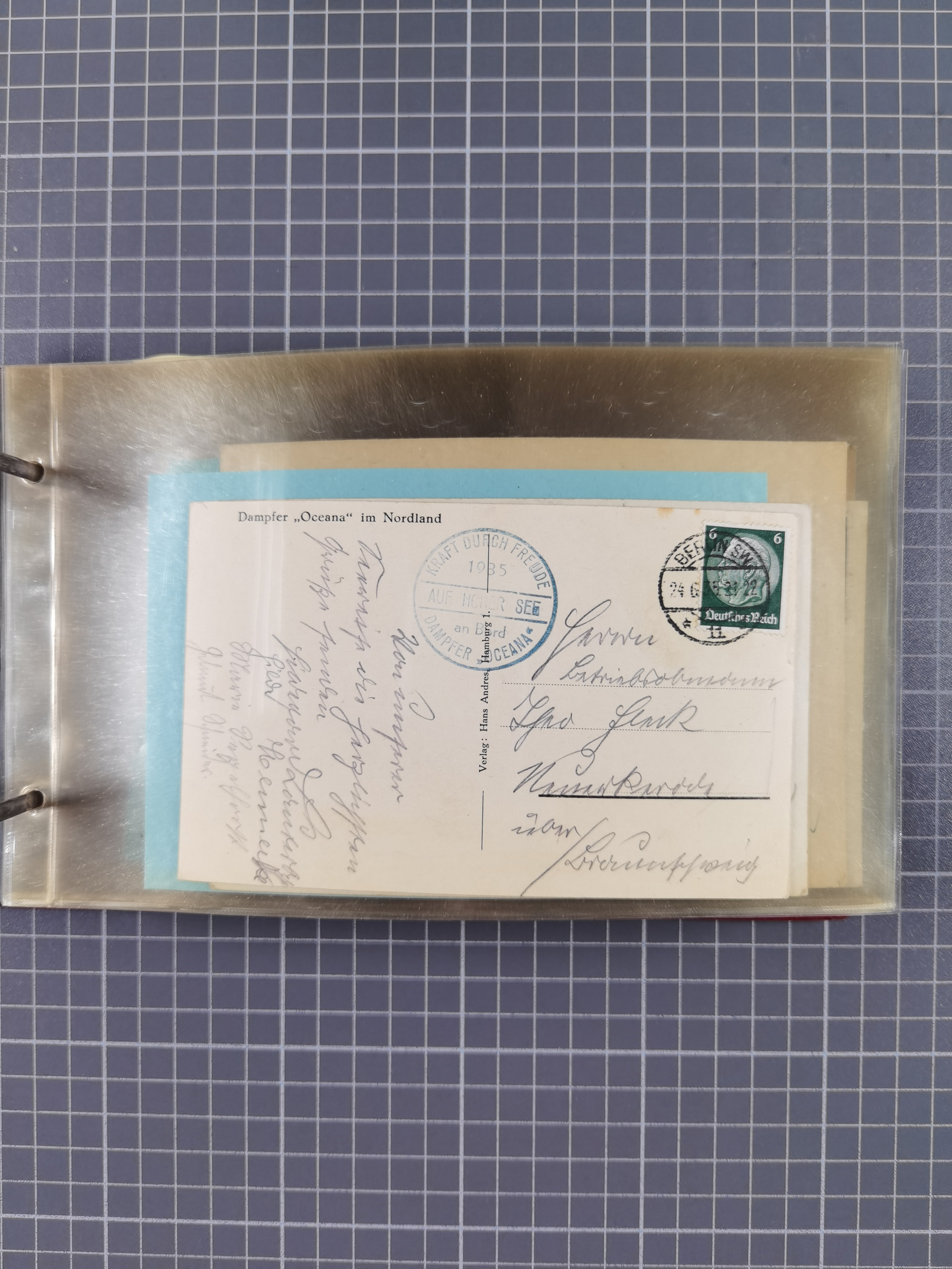 1934/39, Sammlung “Kraft durch Freude” mit ca. 240 Briefen, Karten und GSK inkl. Stempel des "LLOYD BREMEN", dazu Fotos, Schiffsansichtskarten, Speisekarten usw., sauber in vier Alben, ex Steinmeyer
