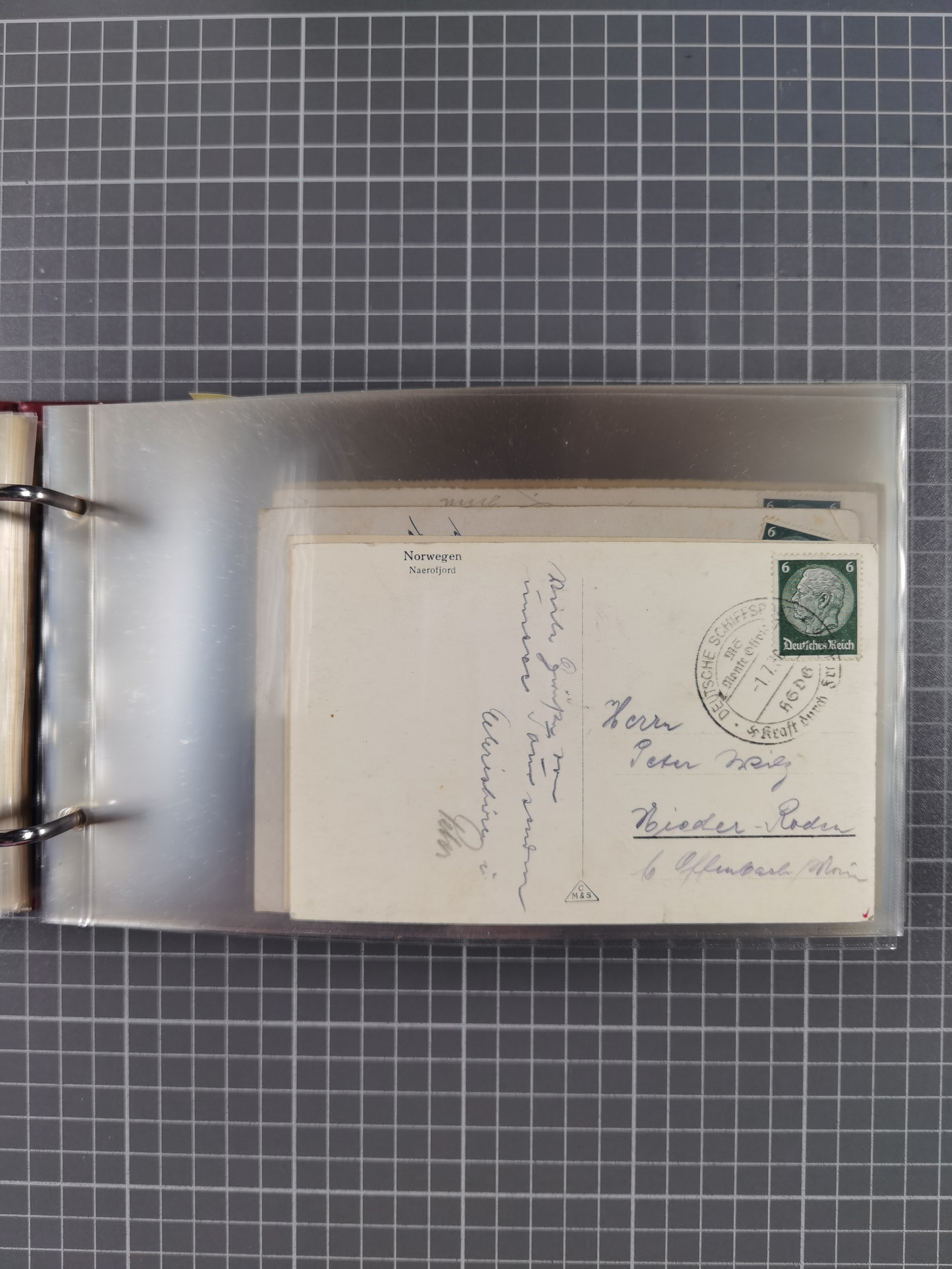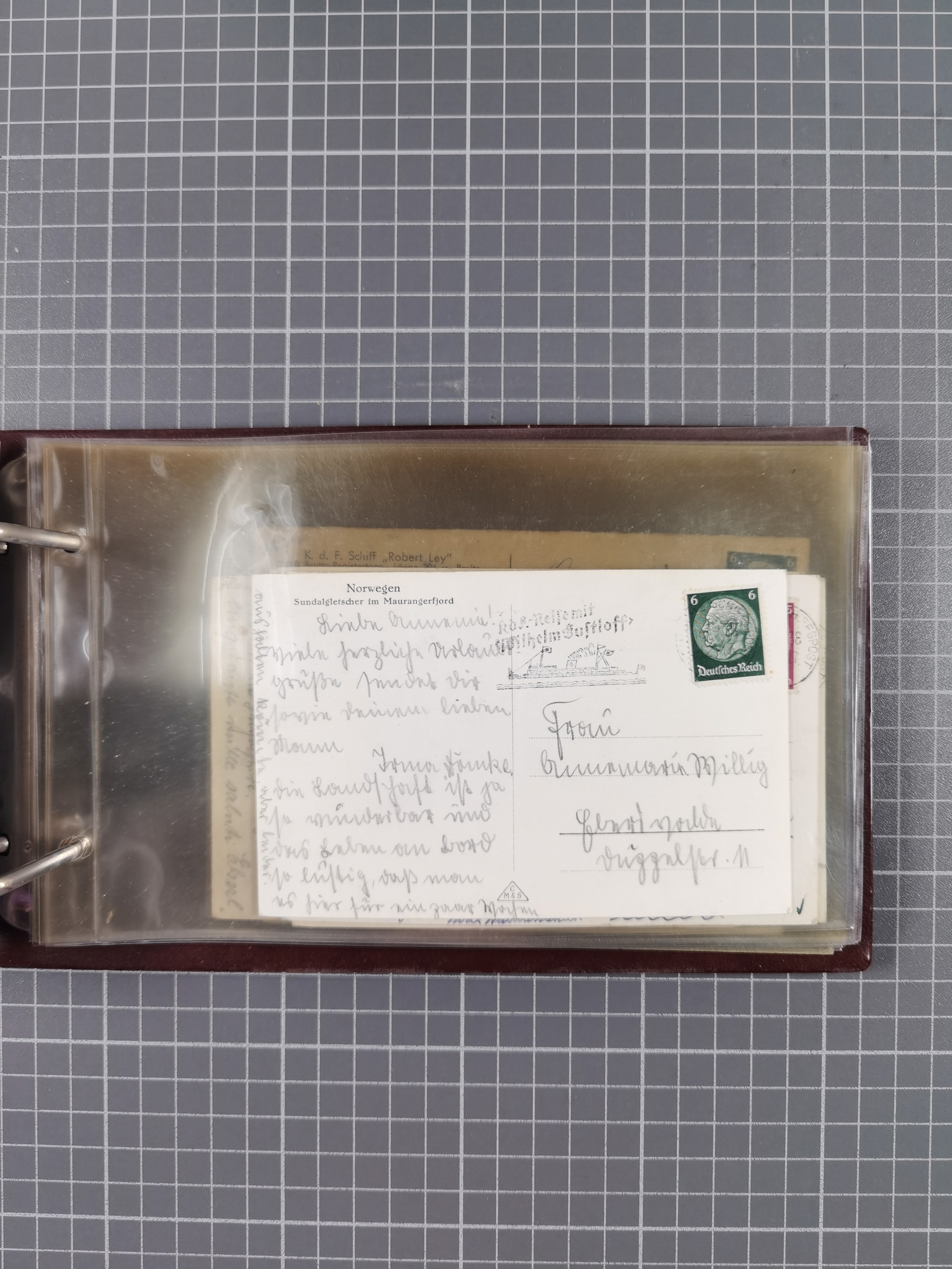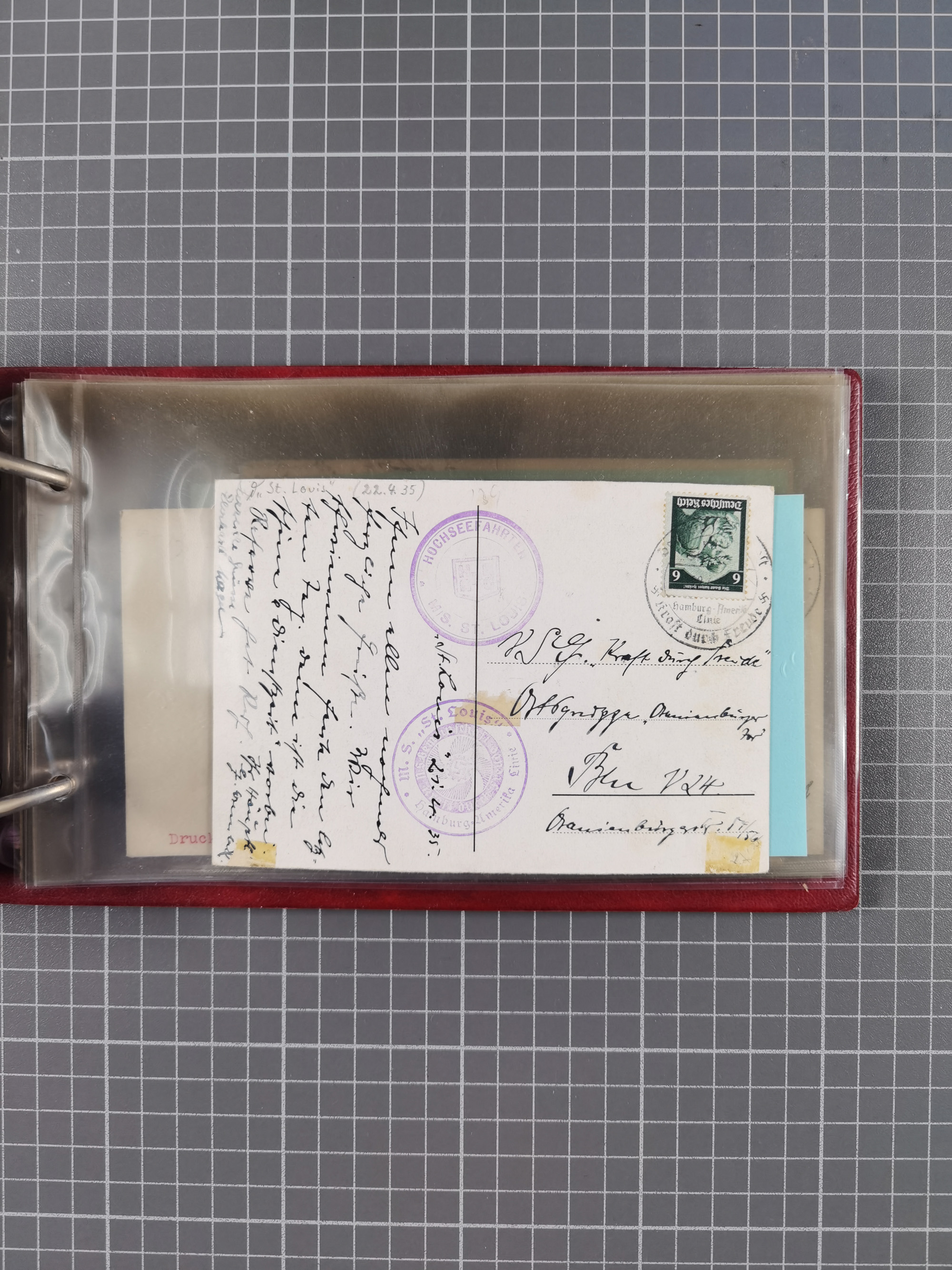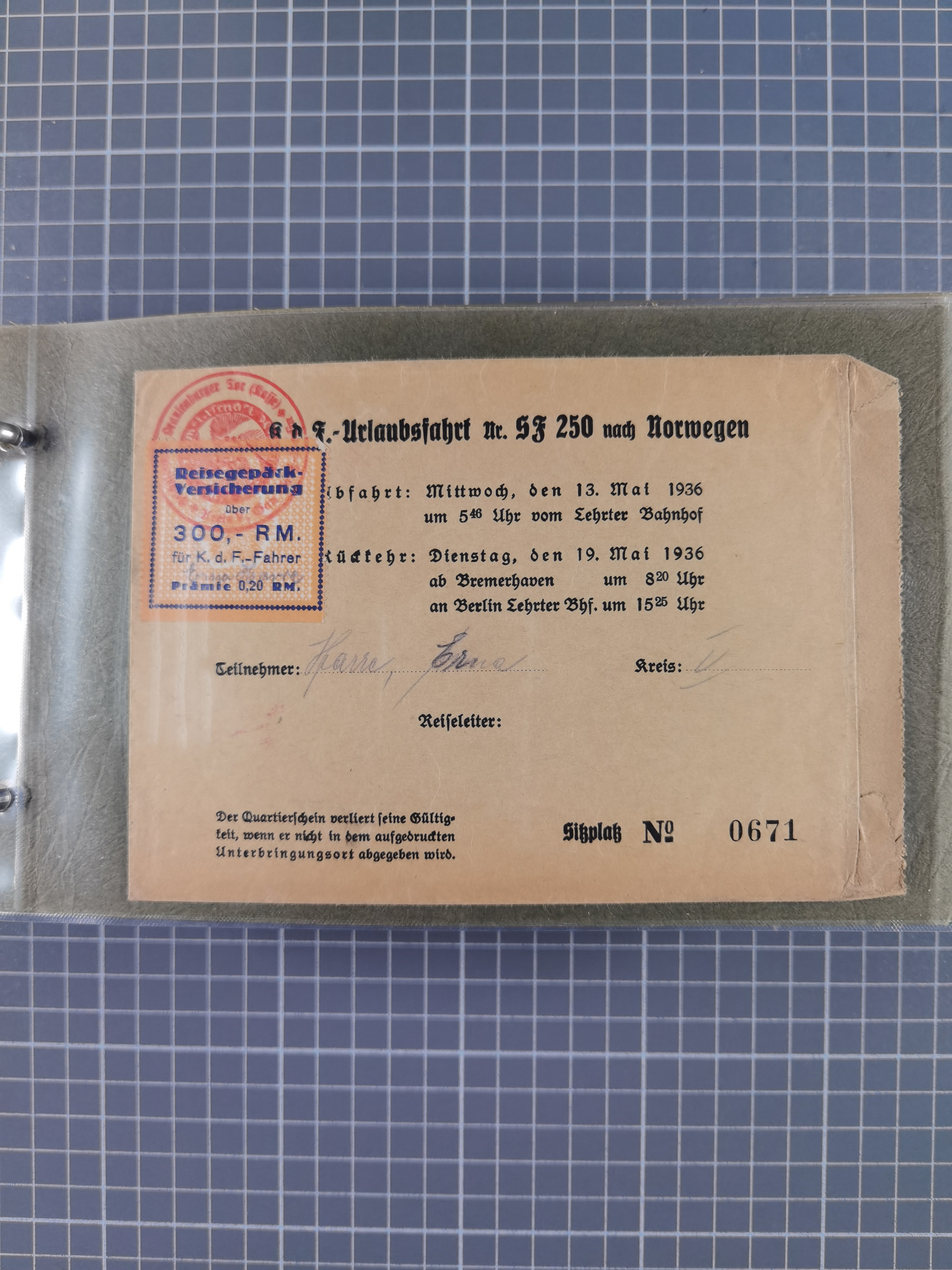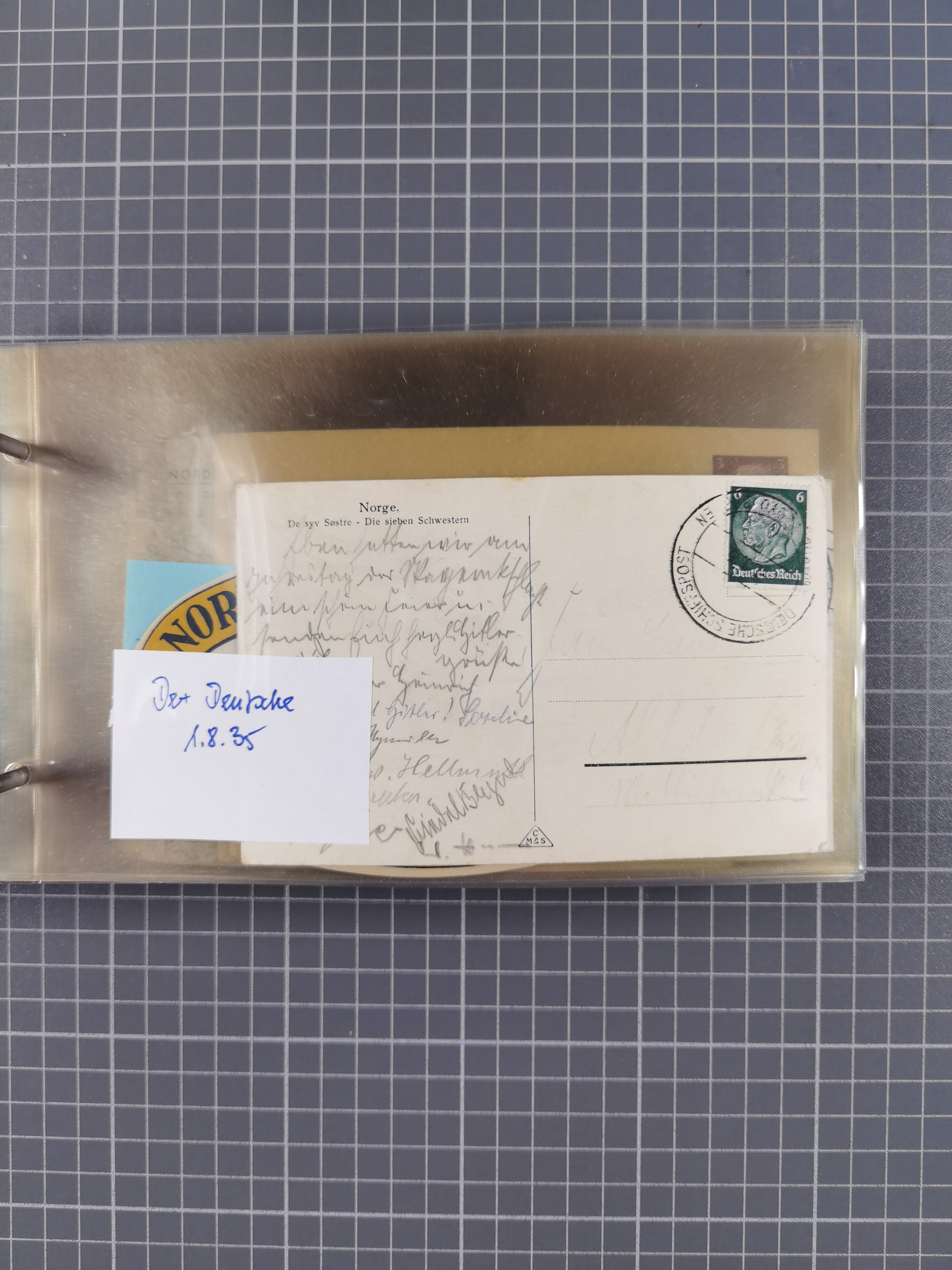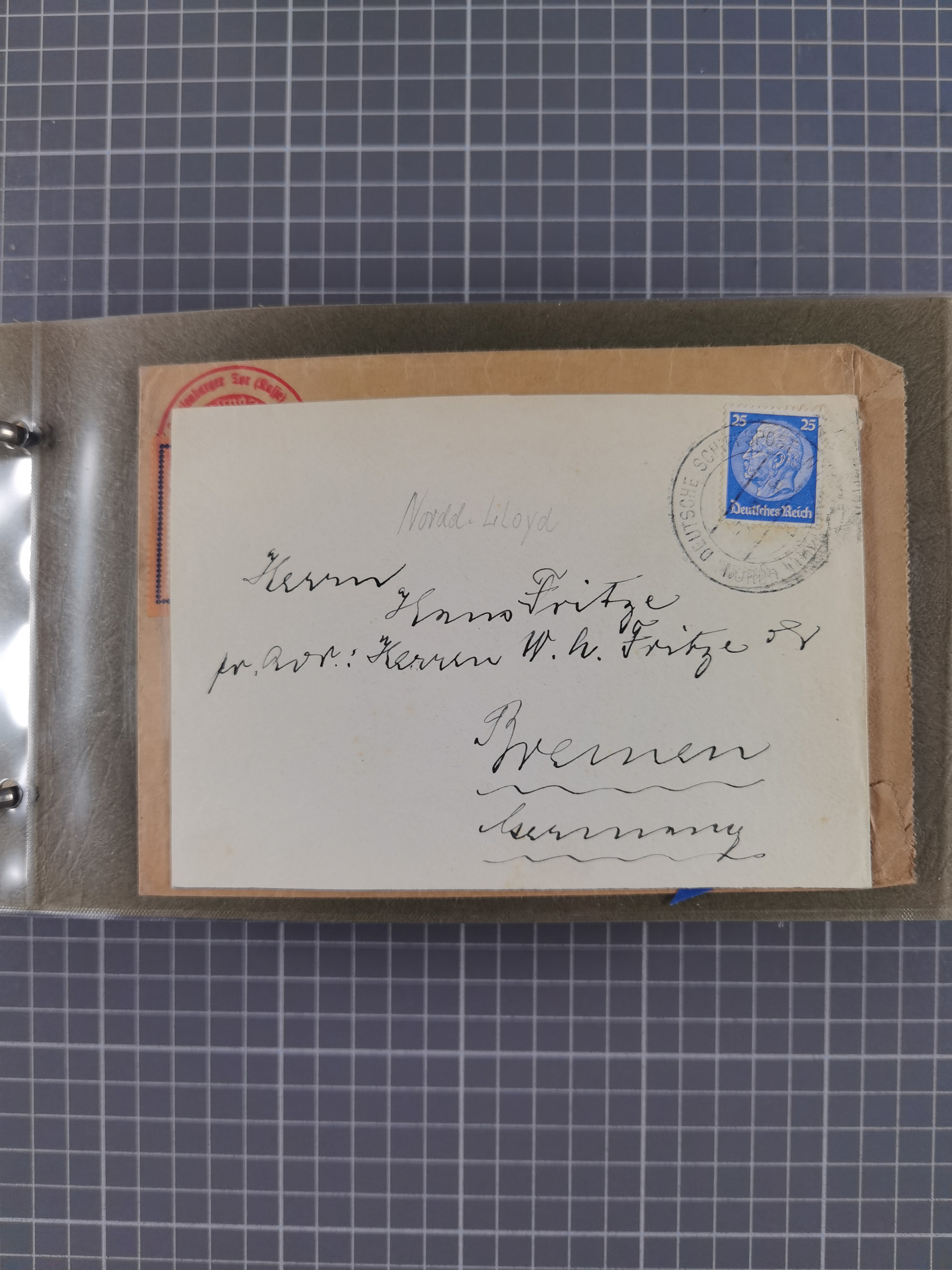 1934/39, Sammlung “Kraft durch Freude” mit ca. 240 Briefen, Karten und GSK inkl. Stempel des "LLOYD BREMEN", dazu Fotos, Schiffsansichtskarten, Speisekarten usw., sauber in vier Alben, ex Steinmeyer