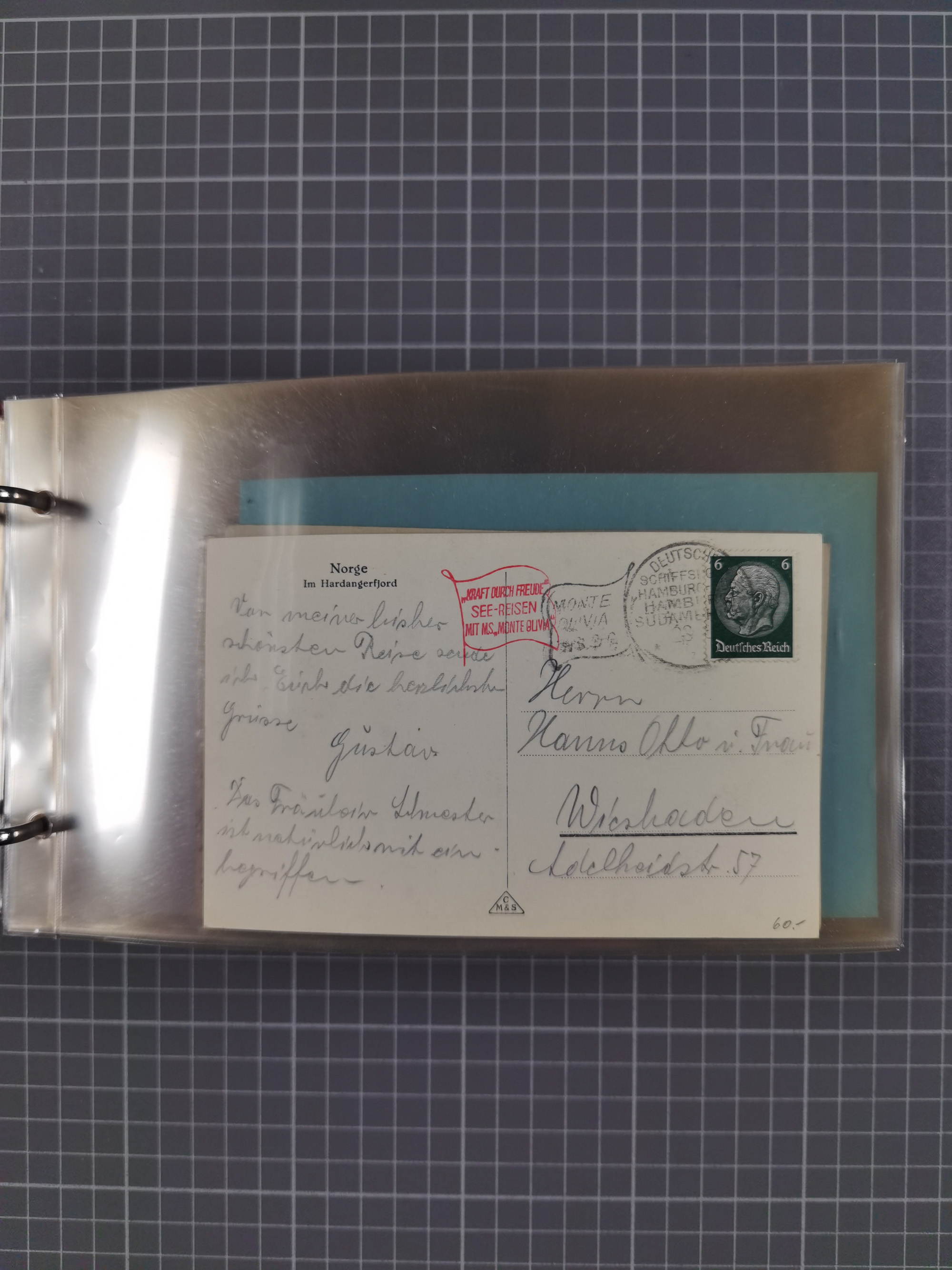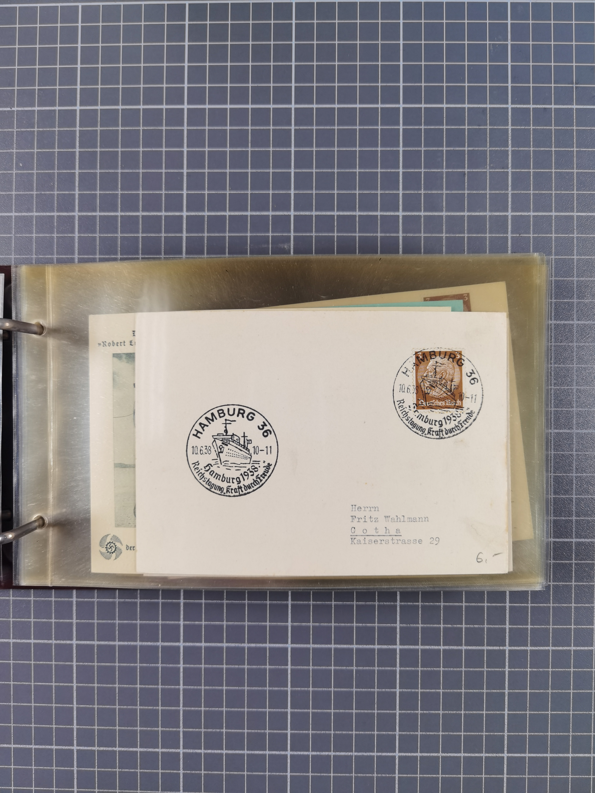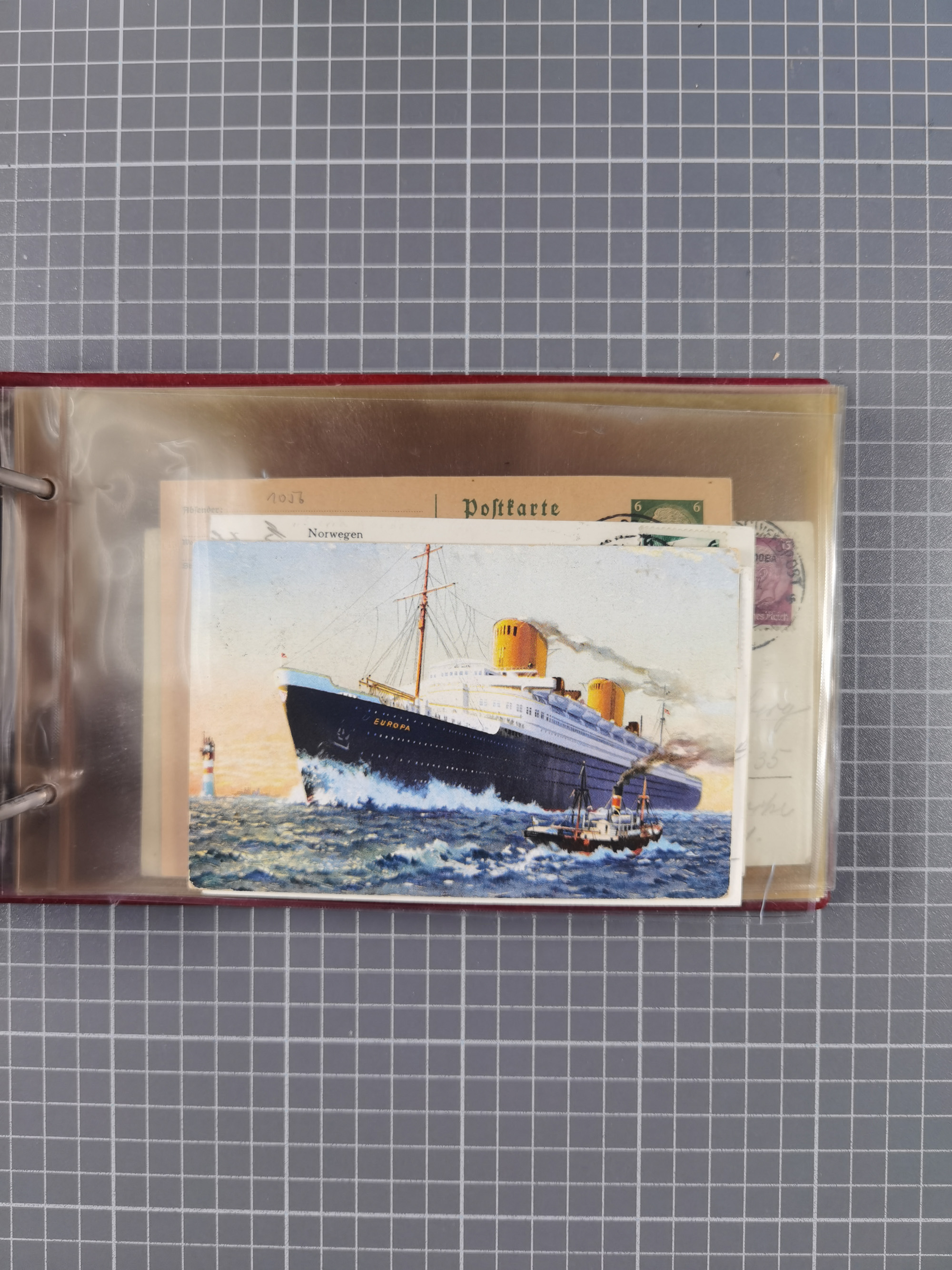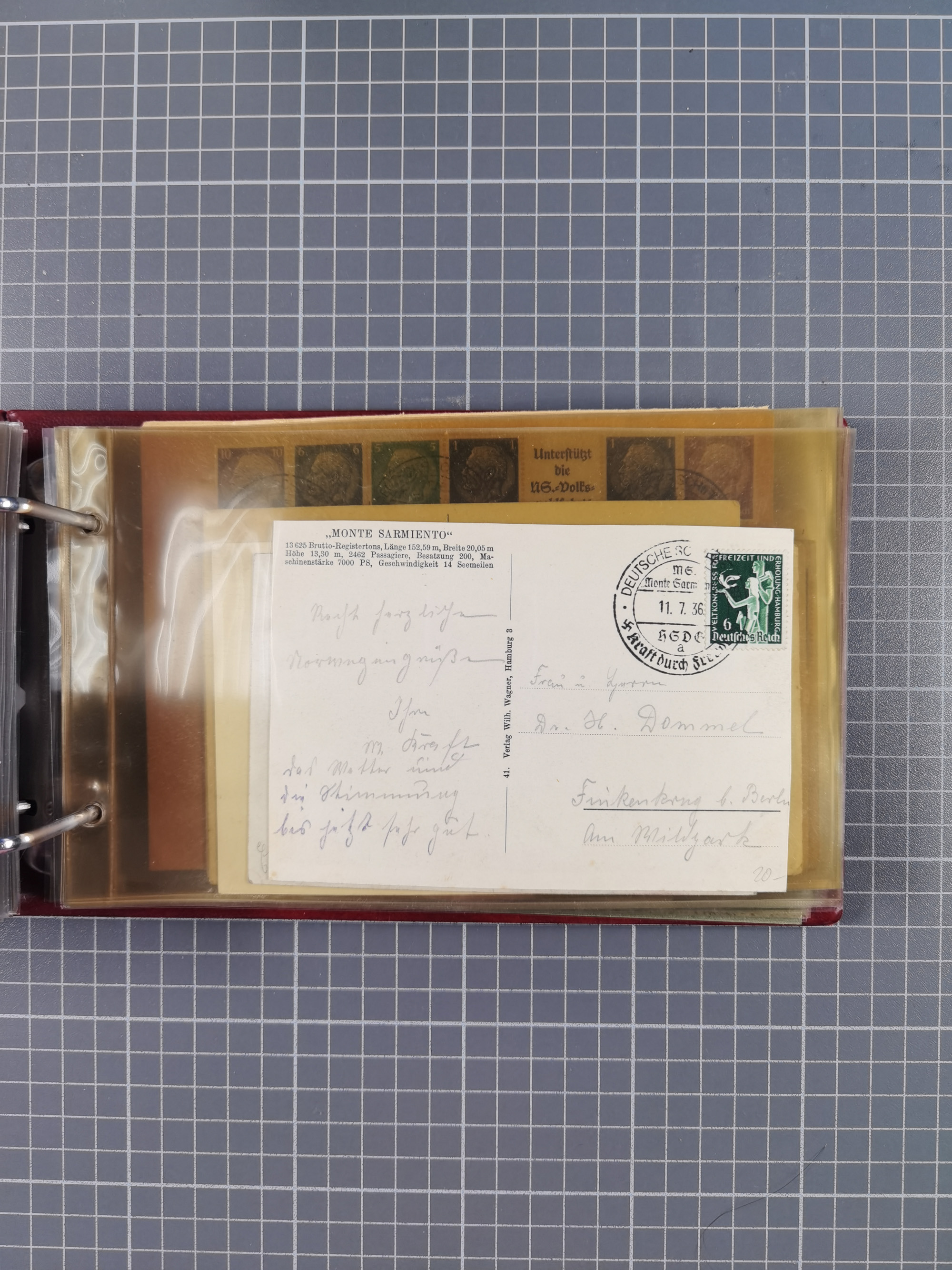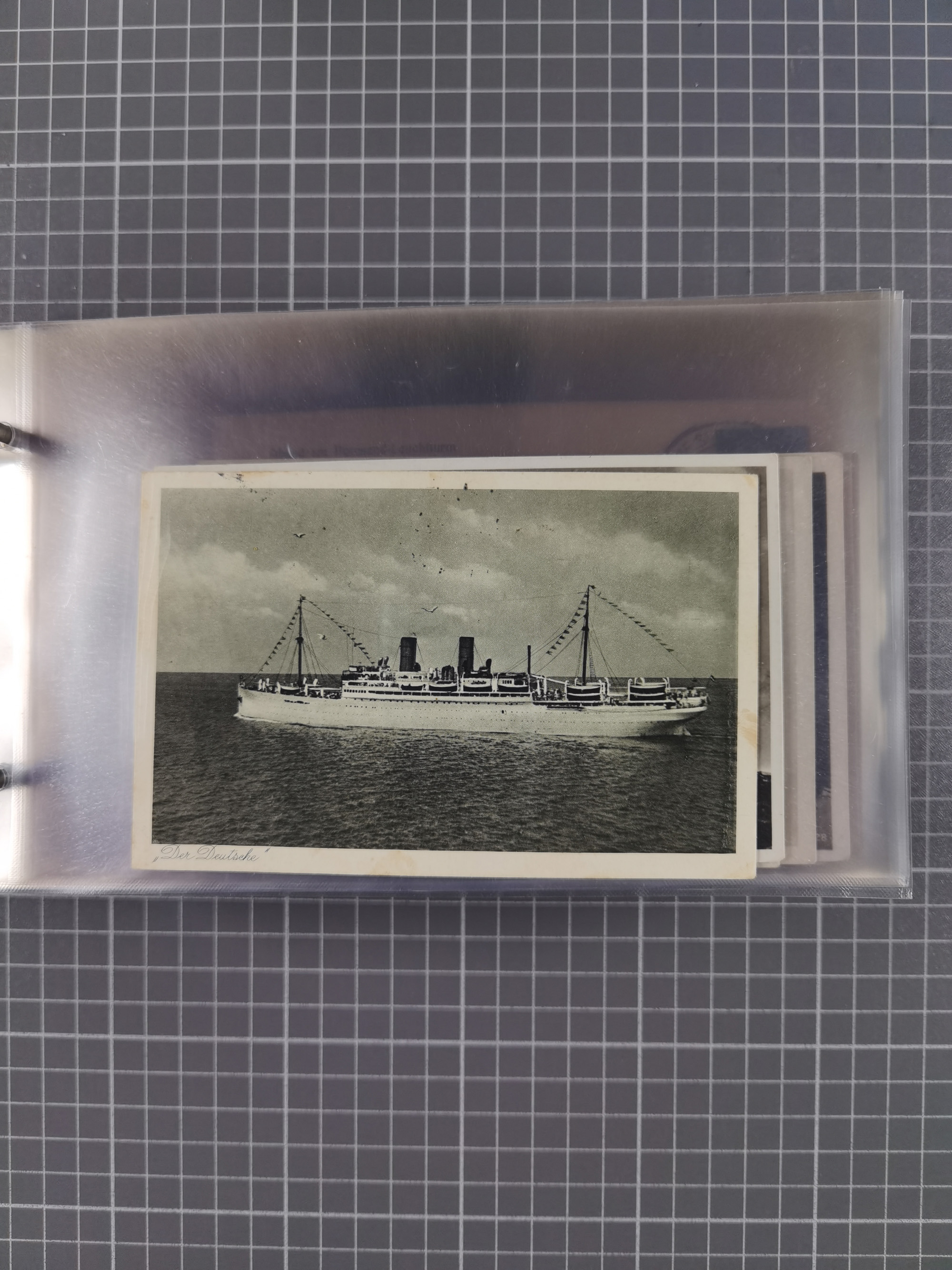 1934/39, Sammlung “Kraft durch Freude” mit ca. 240 Briefen, Karten und GSK inkl. Stempel des "LLOYD BREMEN", dazu Fotos, Schiffsansichtskarten, Speisekarten usw., sauber in vier Alben, ex Steinmeyer