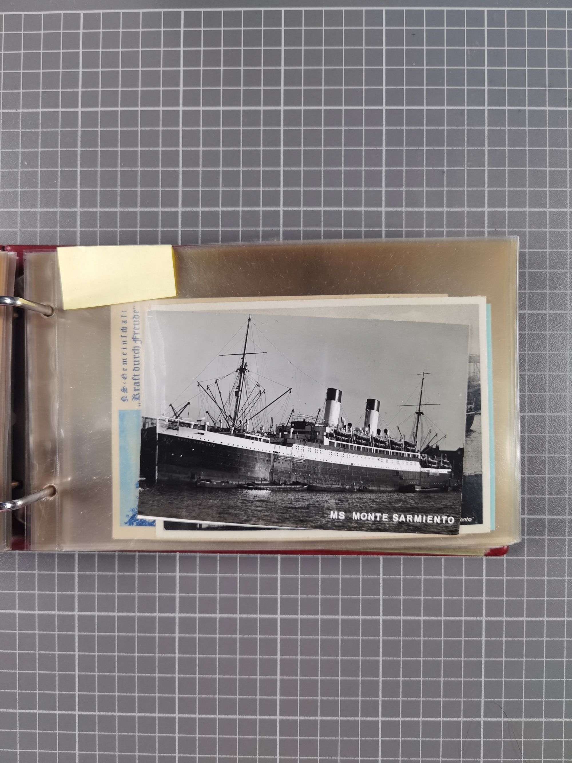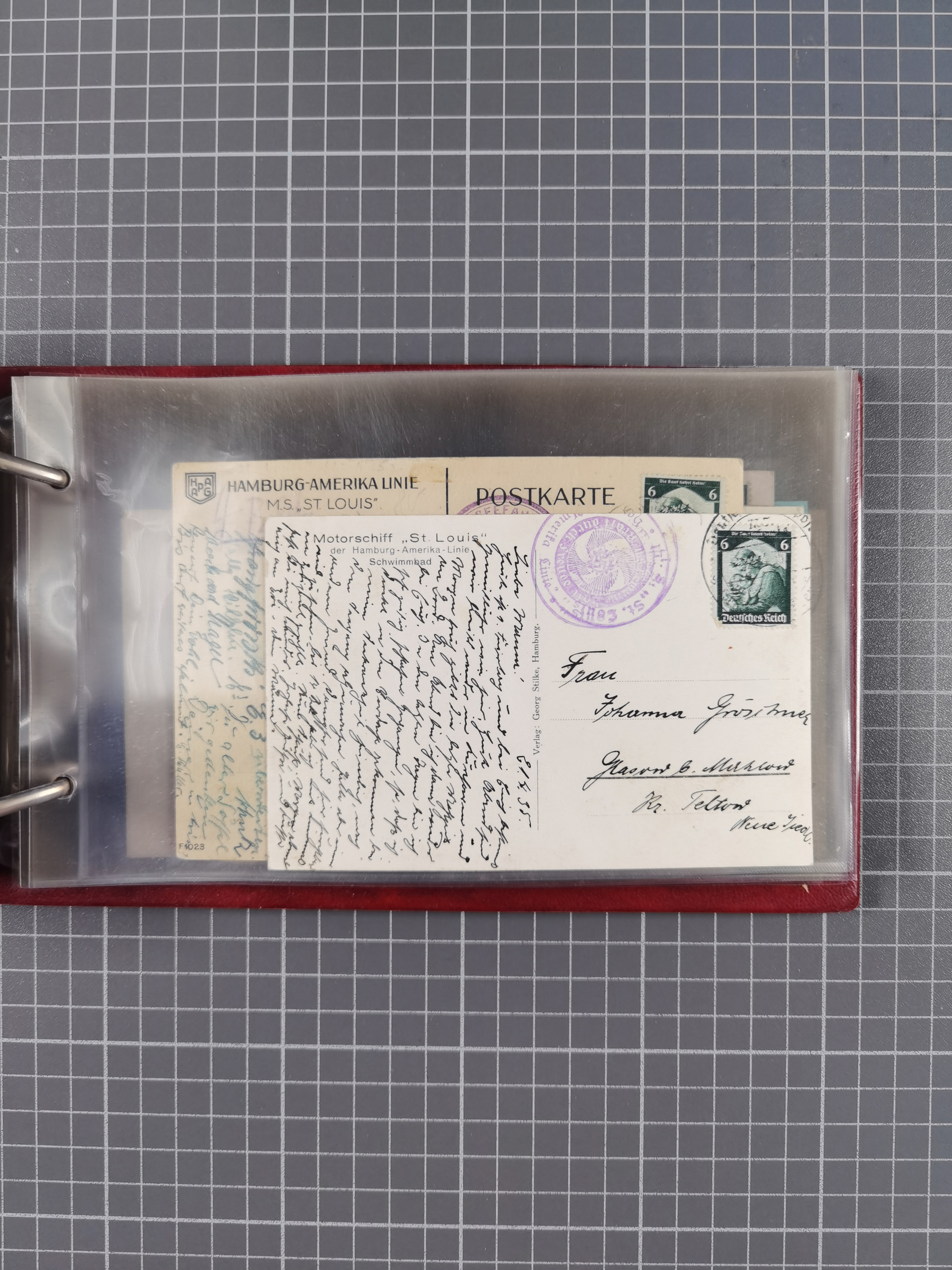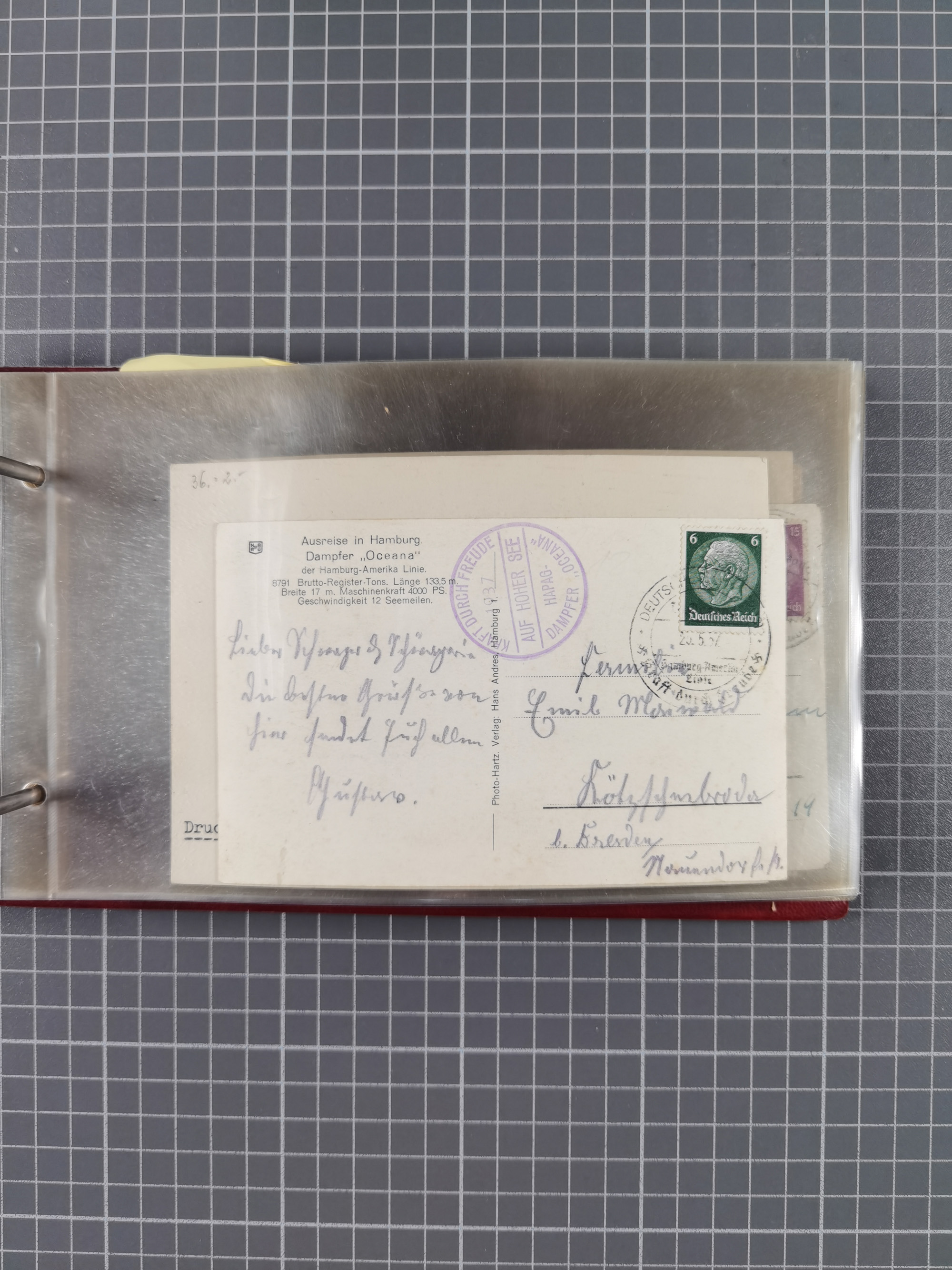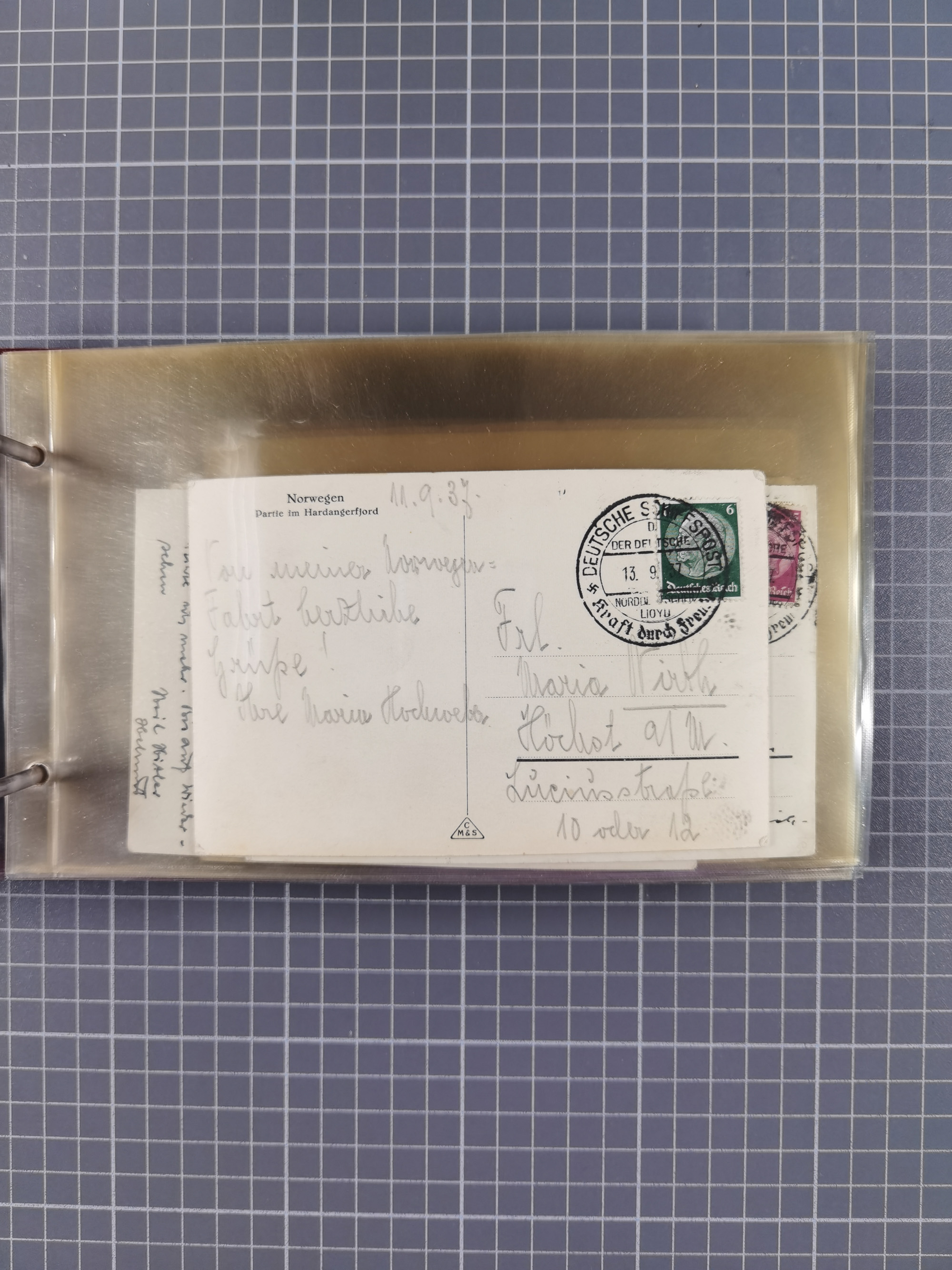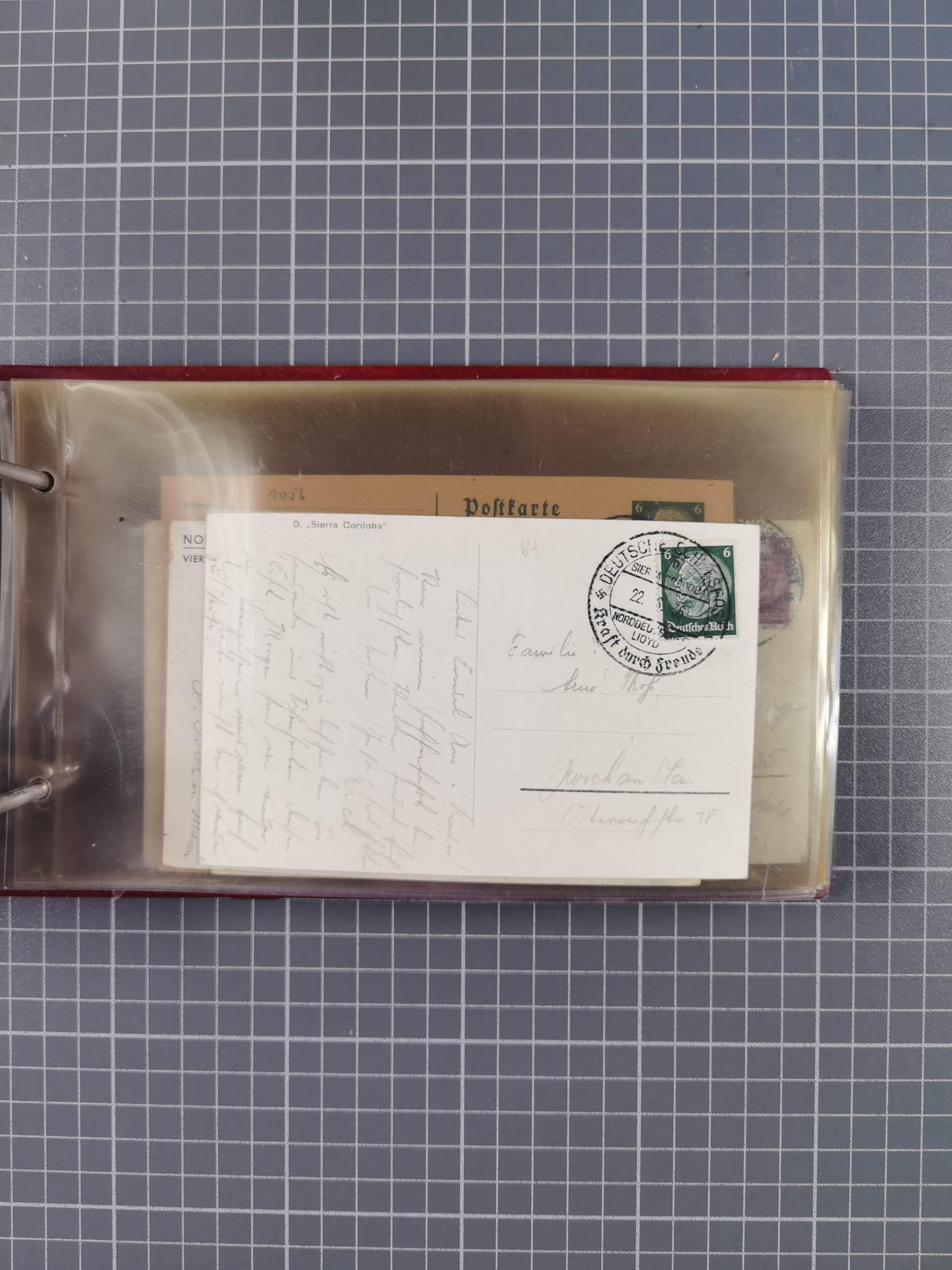 1934/39, Sammlung “Kraft durch Freude” mit ca. 240 Briefen, Karten und GSK inkl. Stempel des "LLOYD BREMEN", dazu Fotos, Schiffsansichtskarten, Speisekarten usw., sauber in vier Alben, ex Steinmeyer
