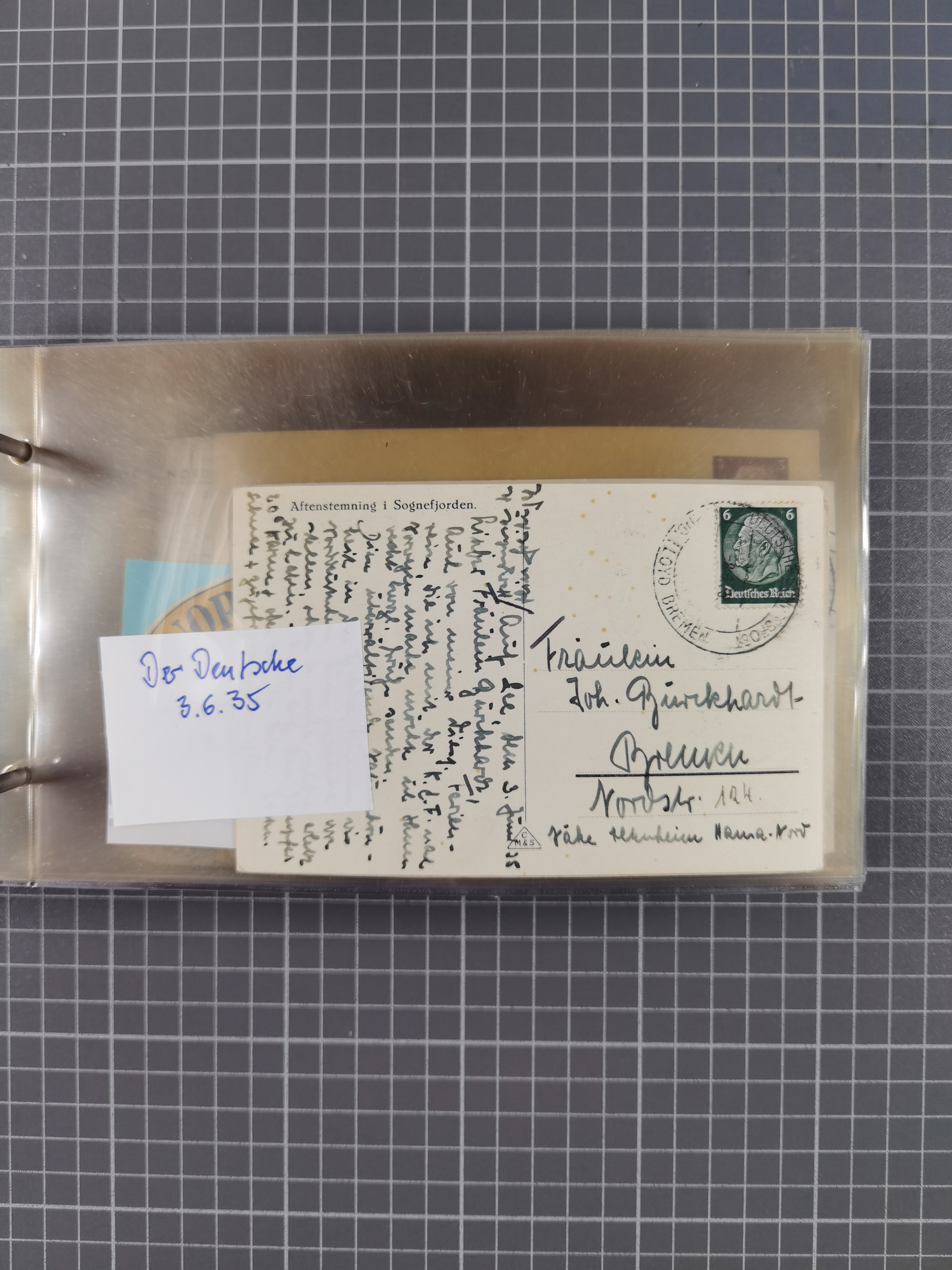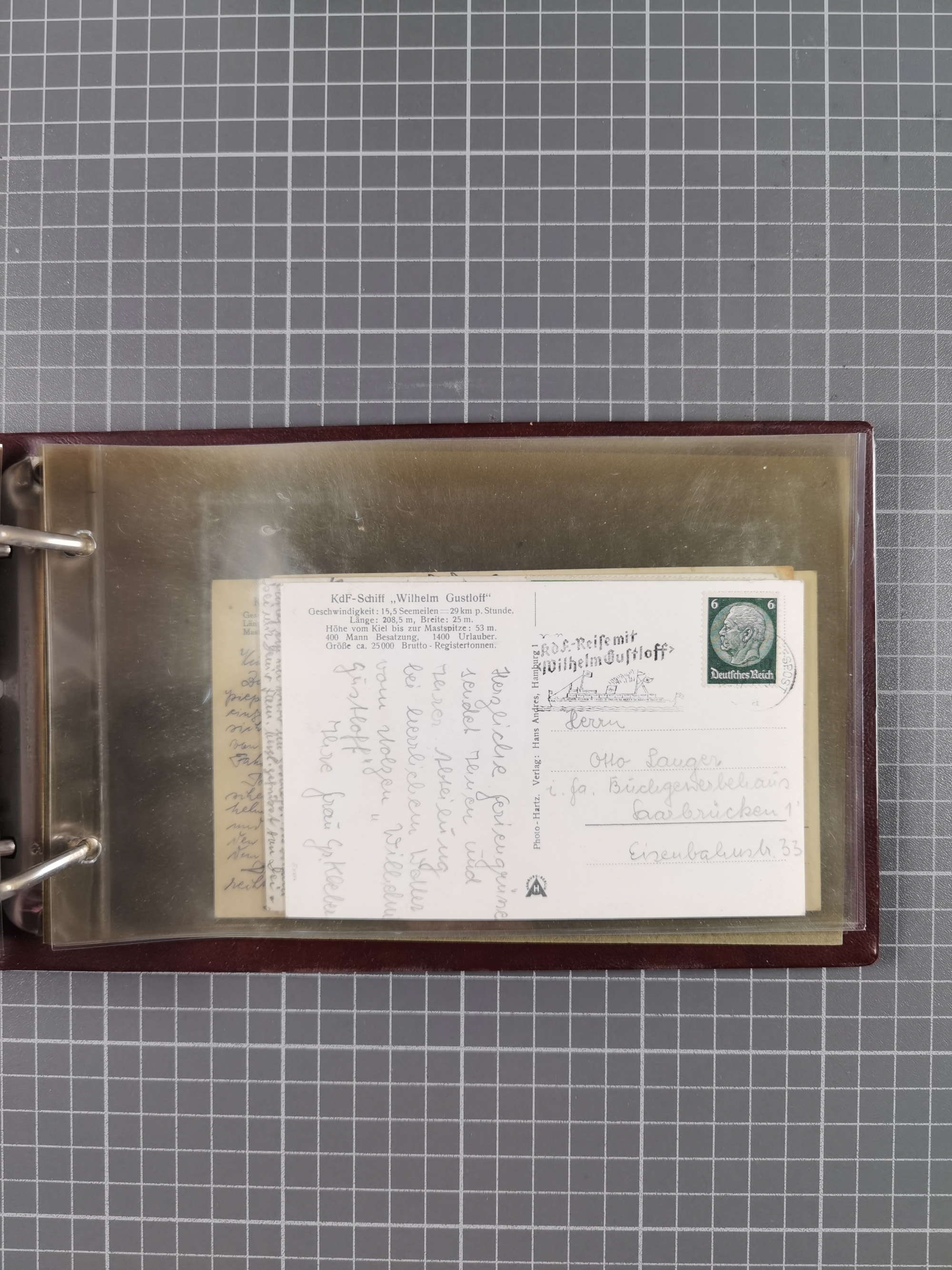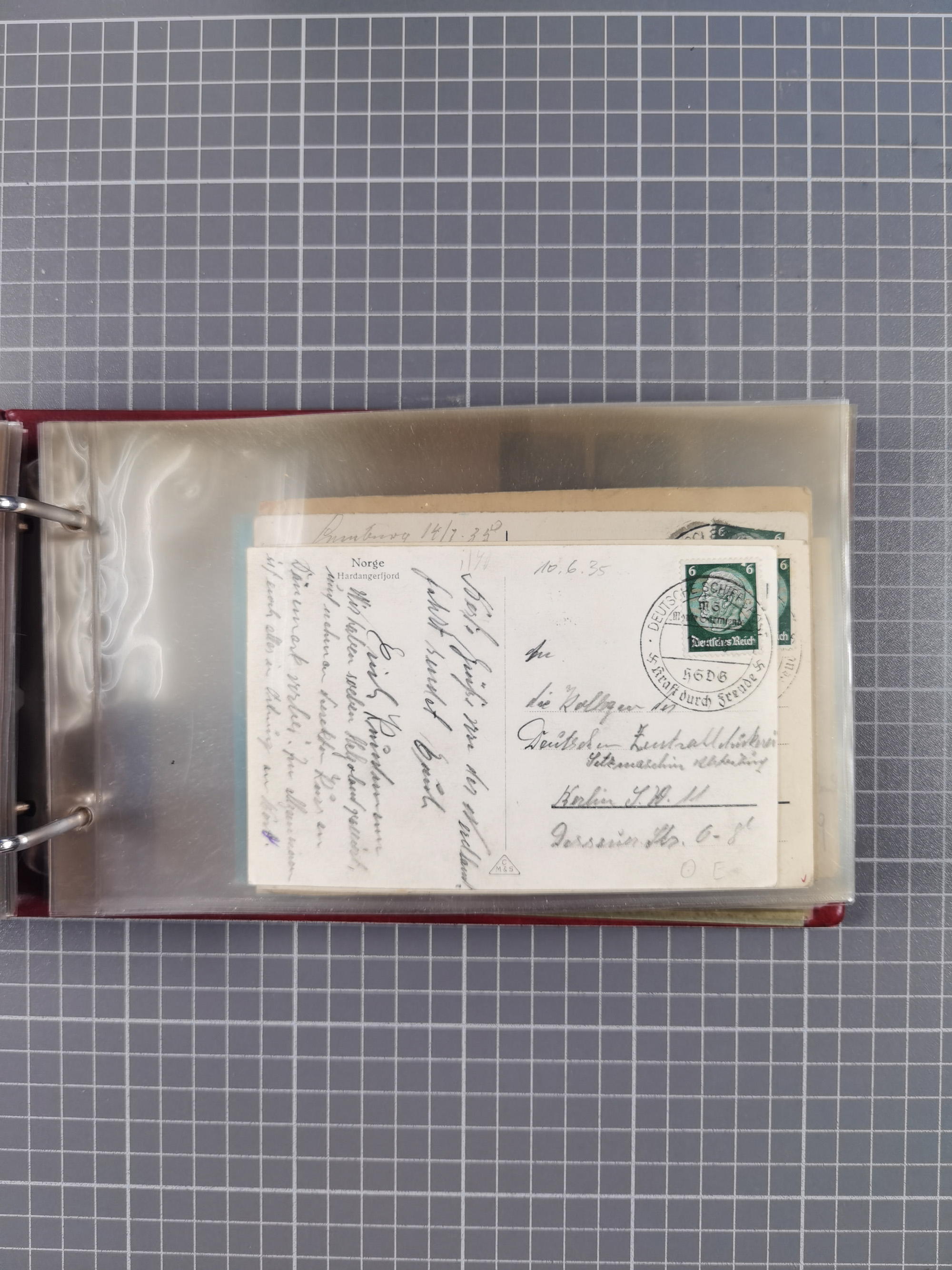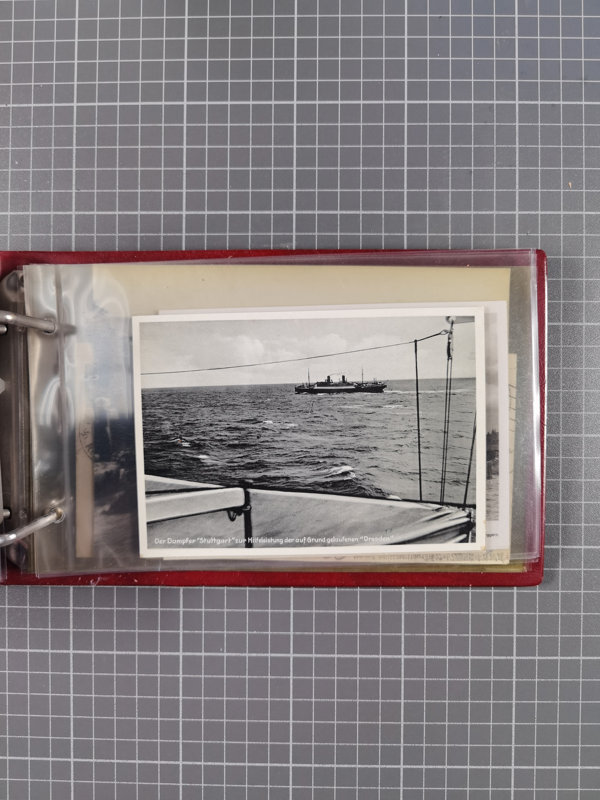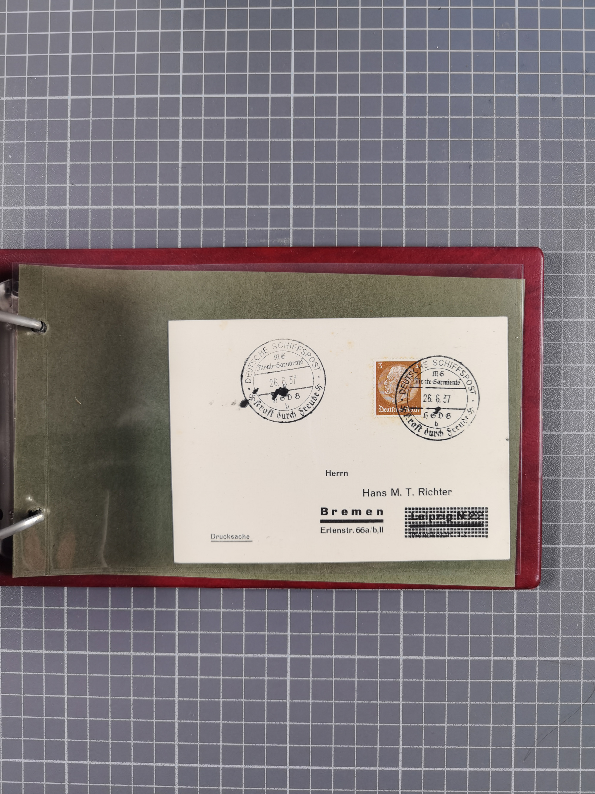 1934/39, Sammlung “Kraft durch Freude” mit ca. 240 Briefen, Karten und GSK inkl. Stempel des "LLOYD BREMEN", dazu Fotos, Schiffsansichtskarten, Speisekarten usw., sauber in vier Alben, ex Steinmeyer