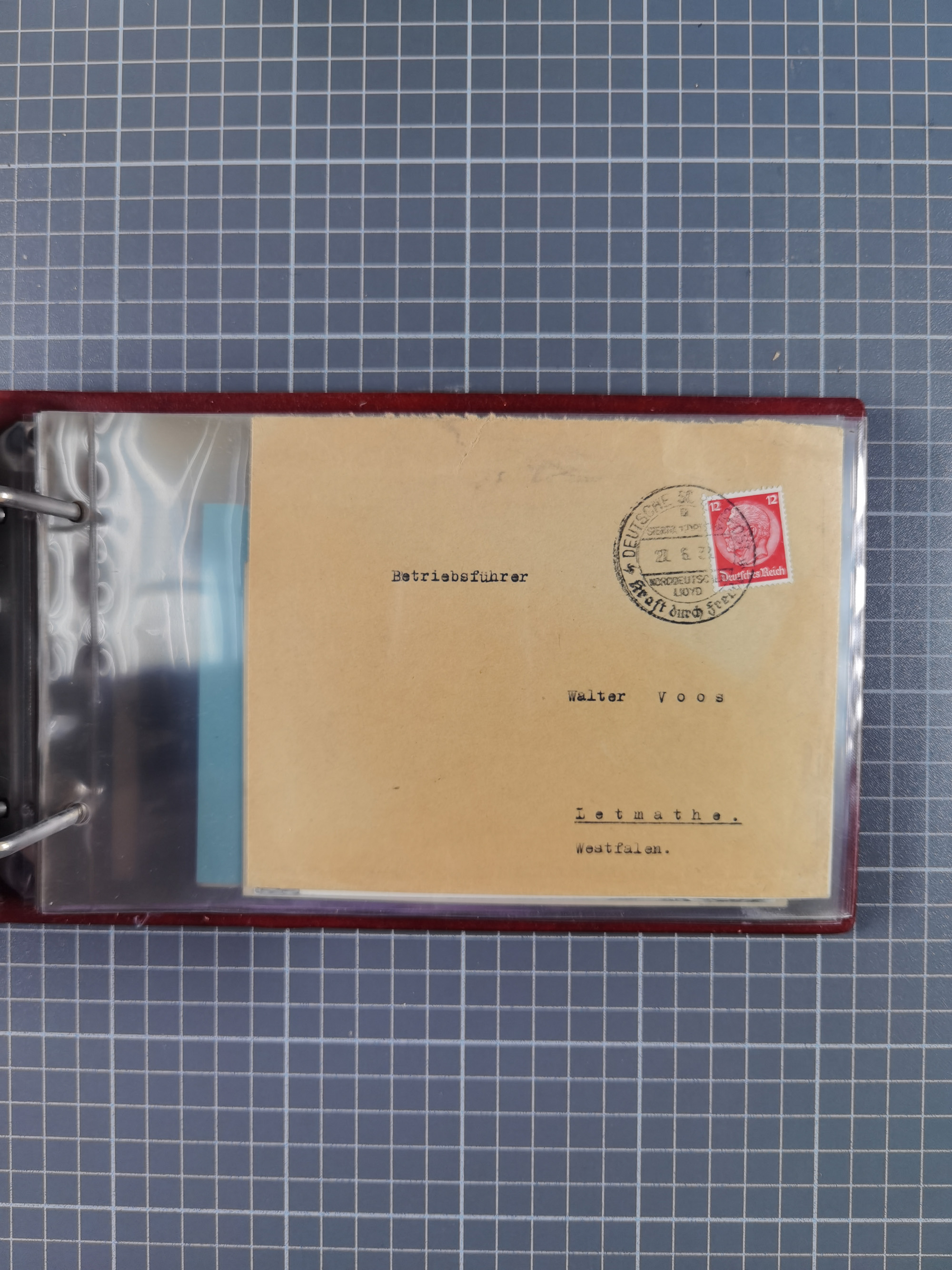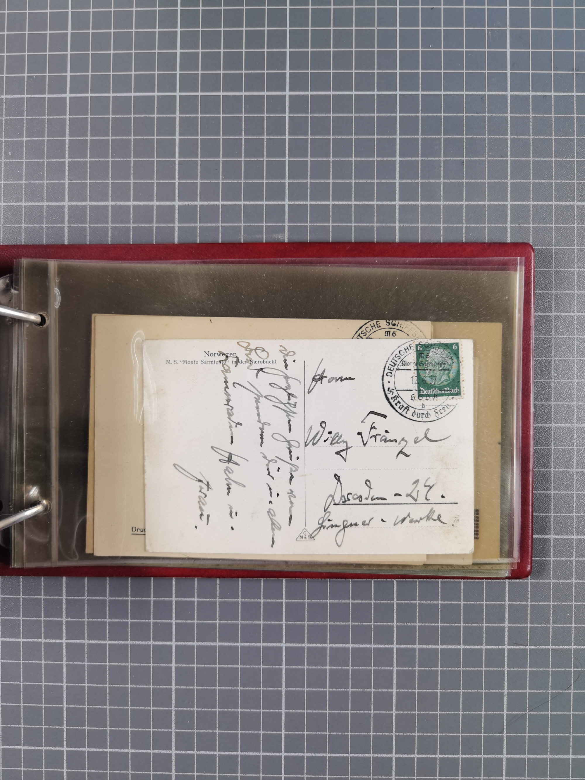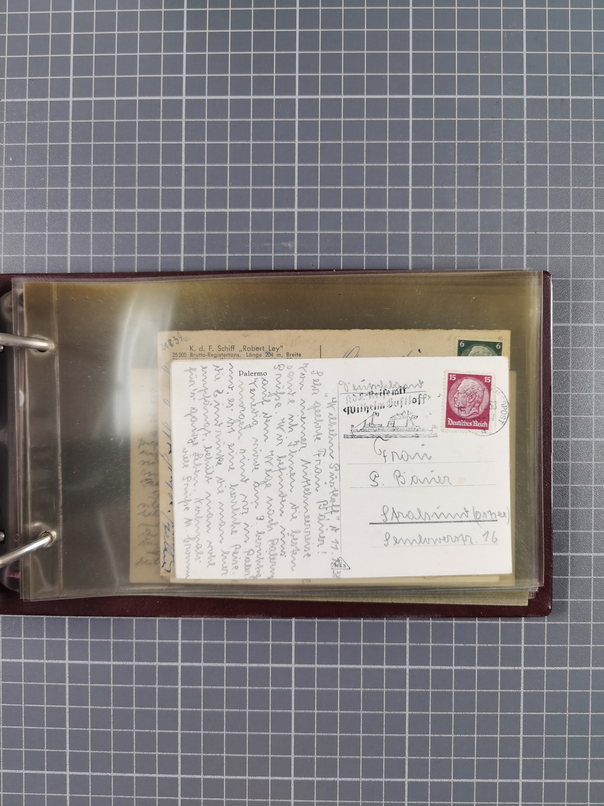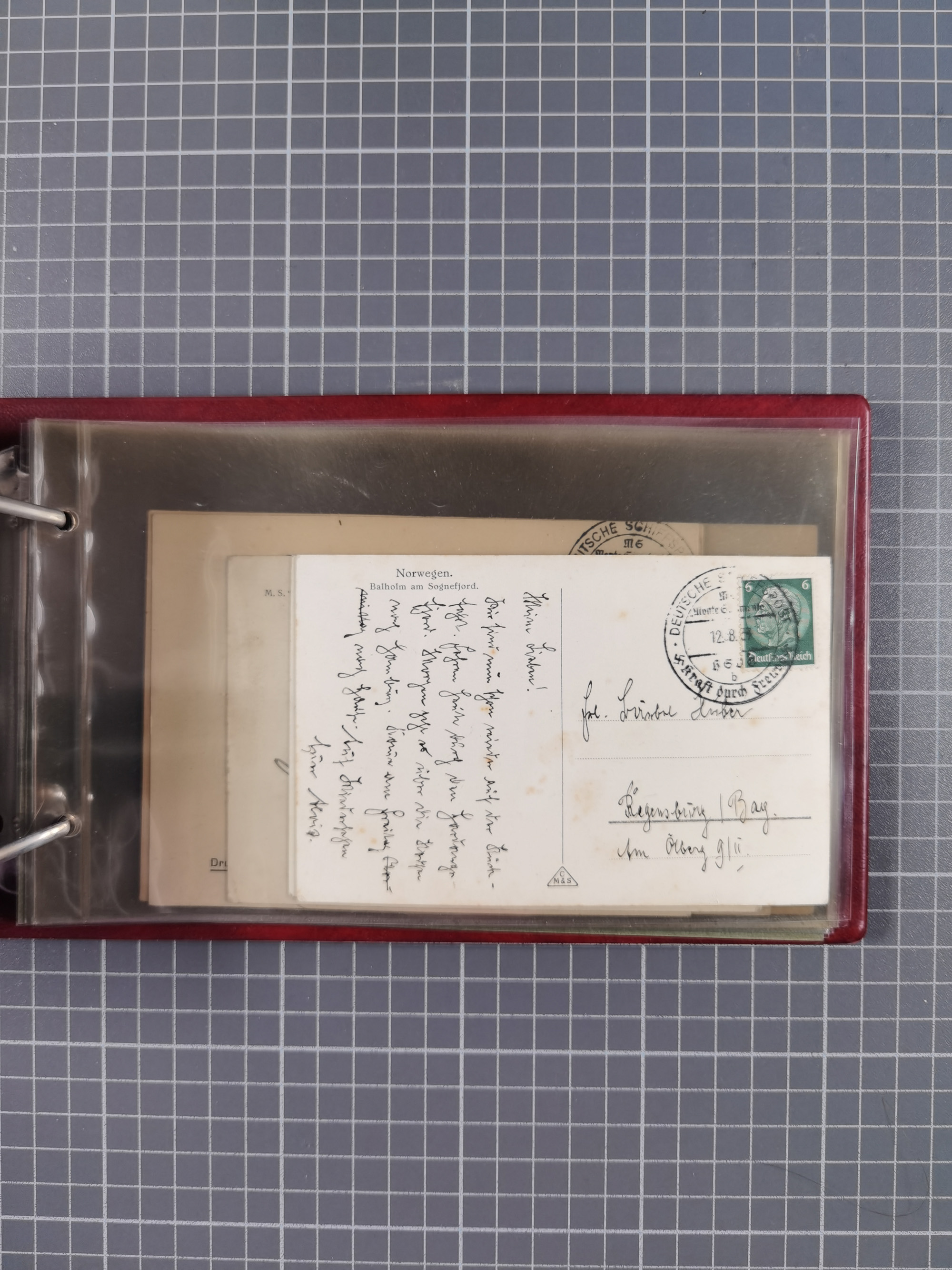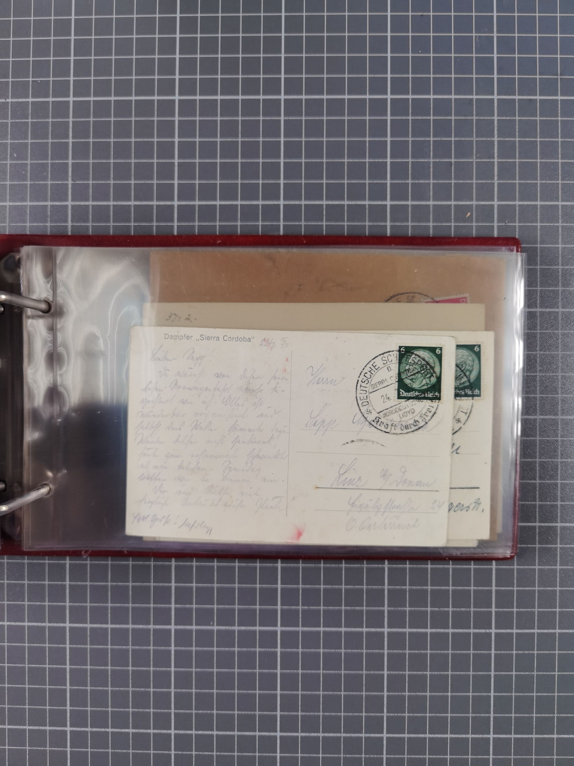 1934/39, Sammlung “Kraft durch Freude” mit ca. 240 Briefen, Karten und GSK inkl. Stempel des "LLOYD BREMEN", dazu Fotos, Schiffsansichtskarten, Speisekarten usw., sauber in vier Alben, ex Steinmeyer