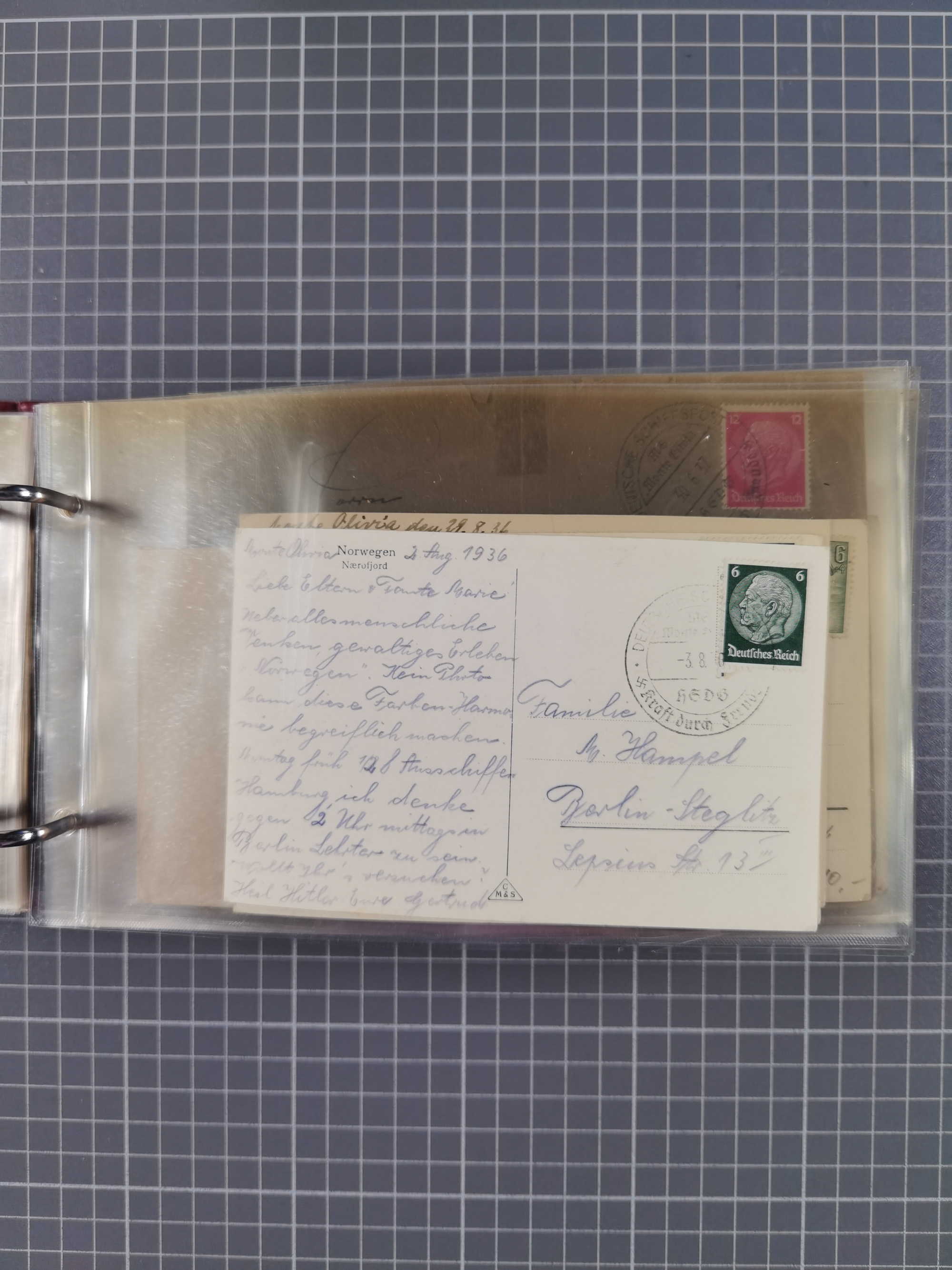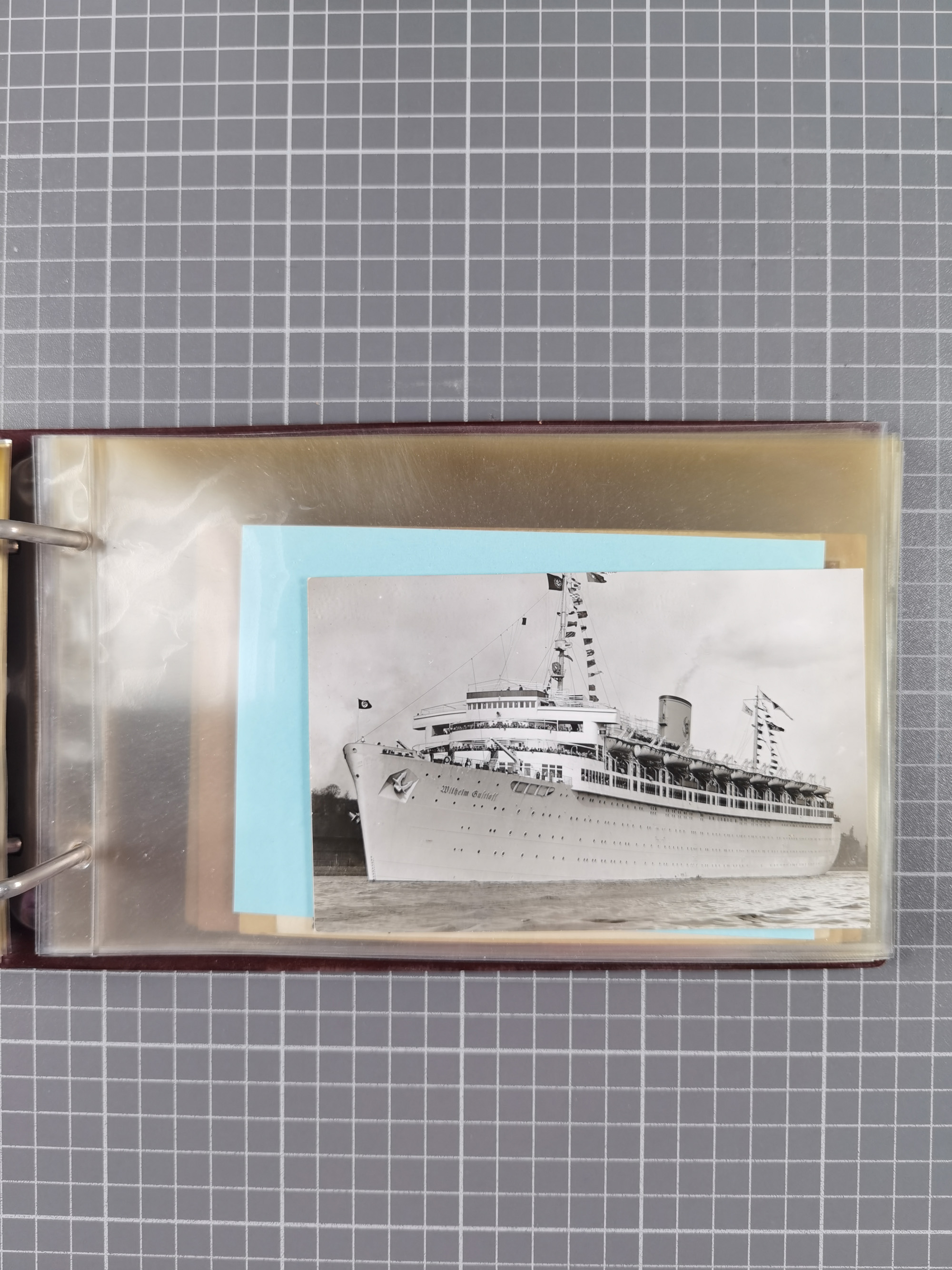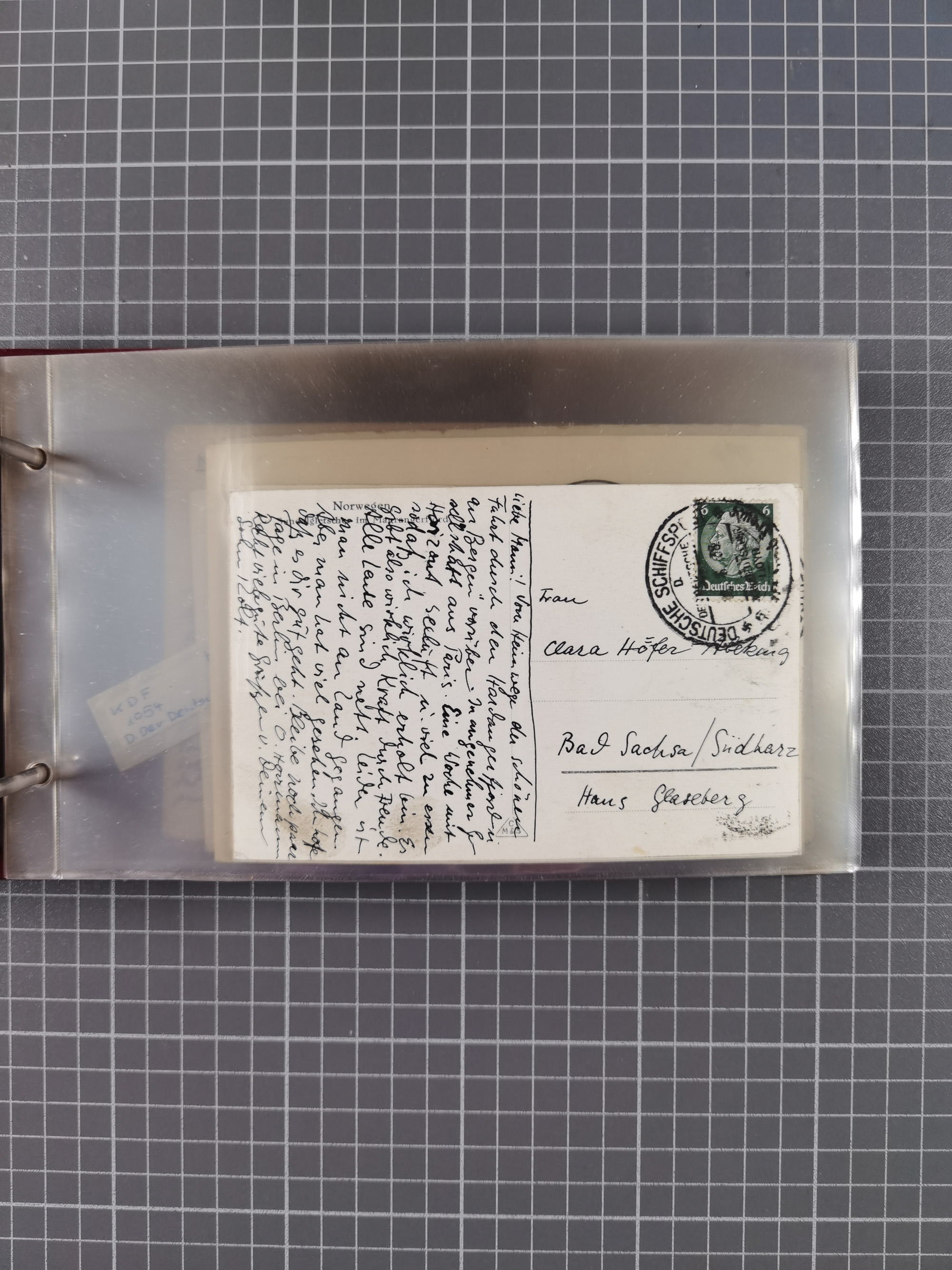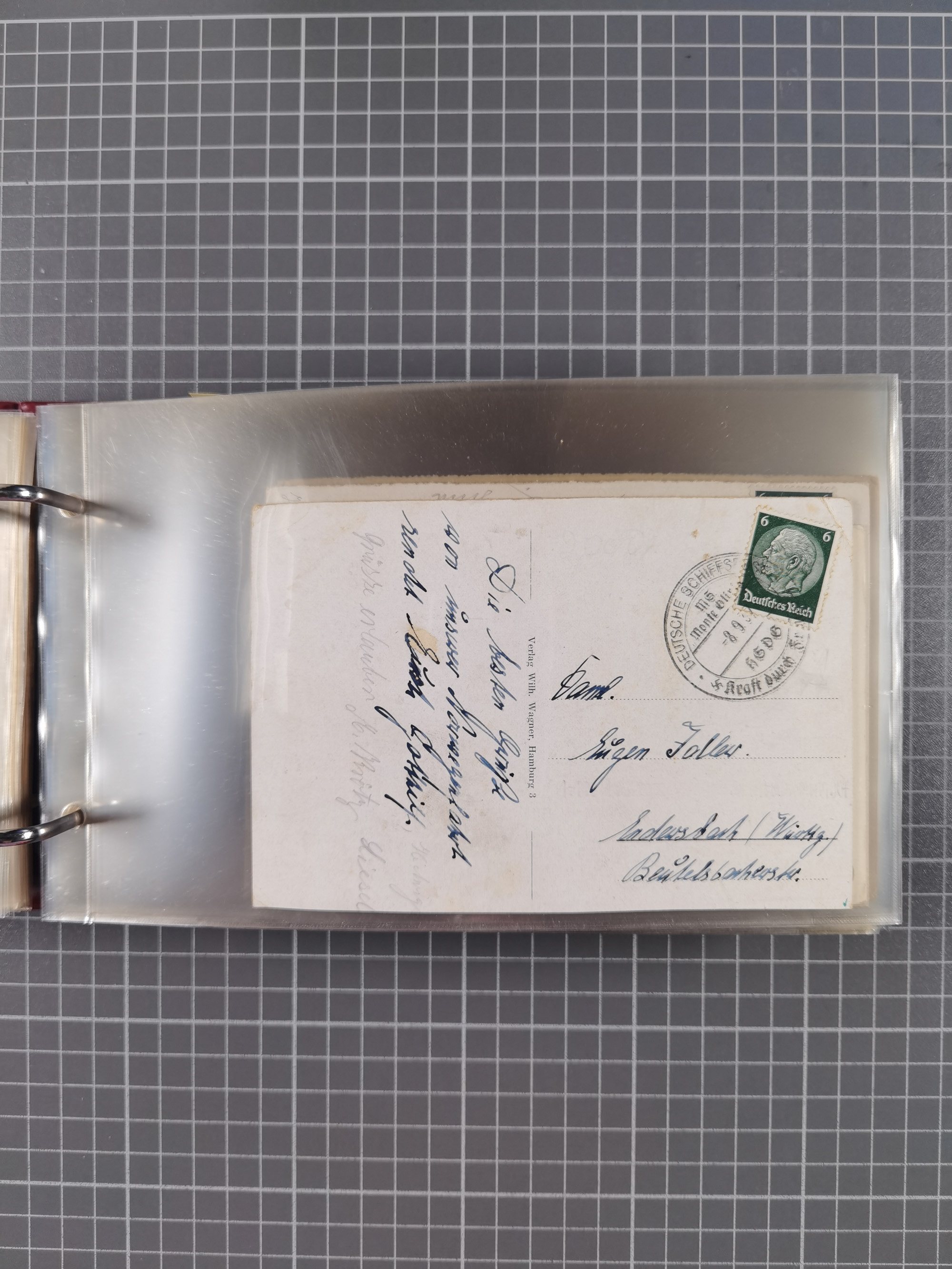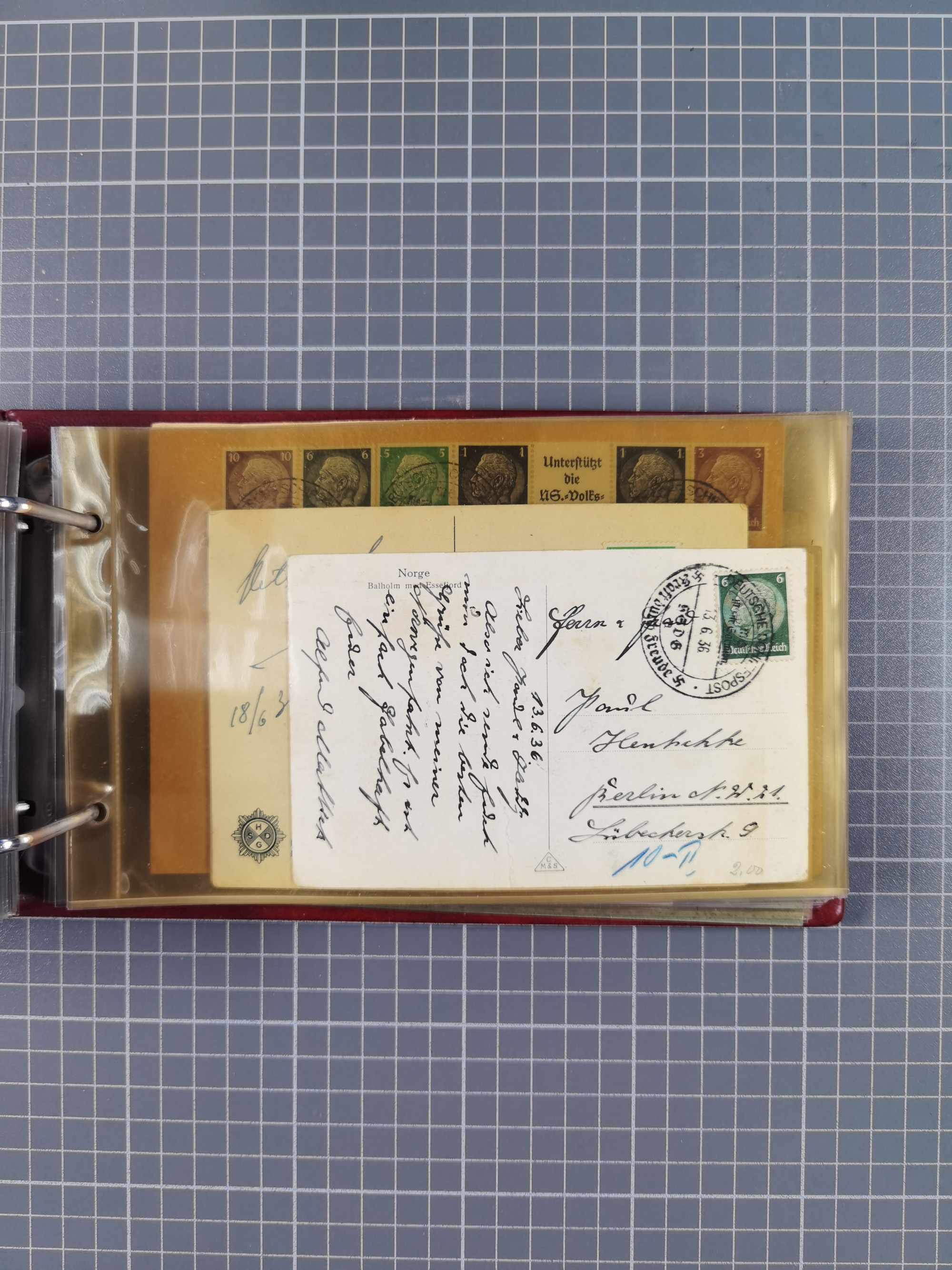 1934/39, Sammlung “Kraft durch Freude” mit ca. 240 Briefen, Karten und GSK inkl. Stempel des "LLOYD BREMEN", dazu Fotos, Schiffsansichtskarten, Speisekarten usw., sauber in vier Alben, ex Steinmeyer