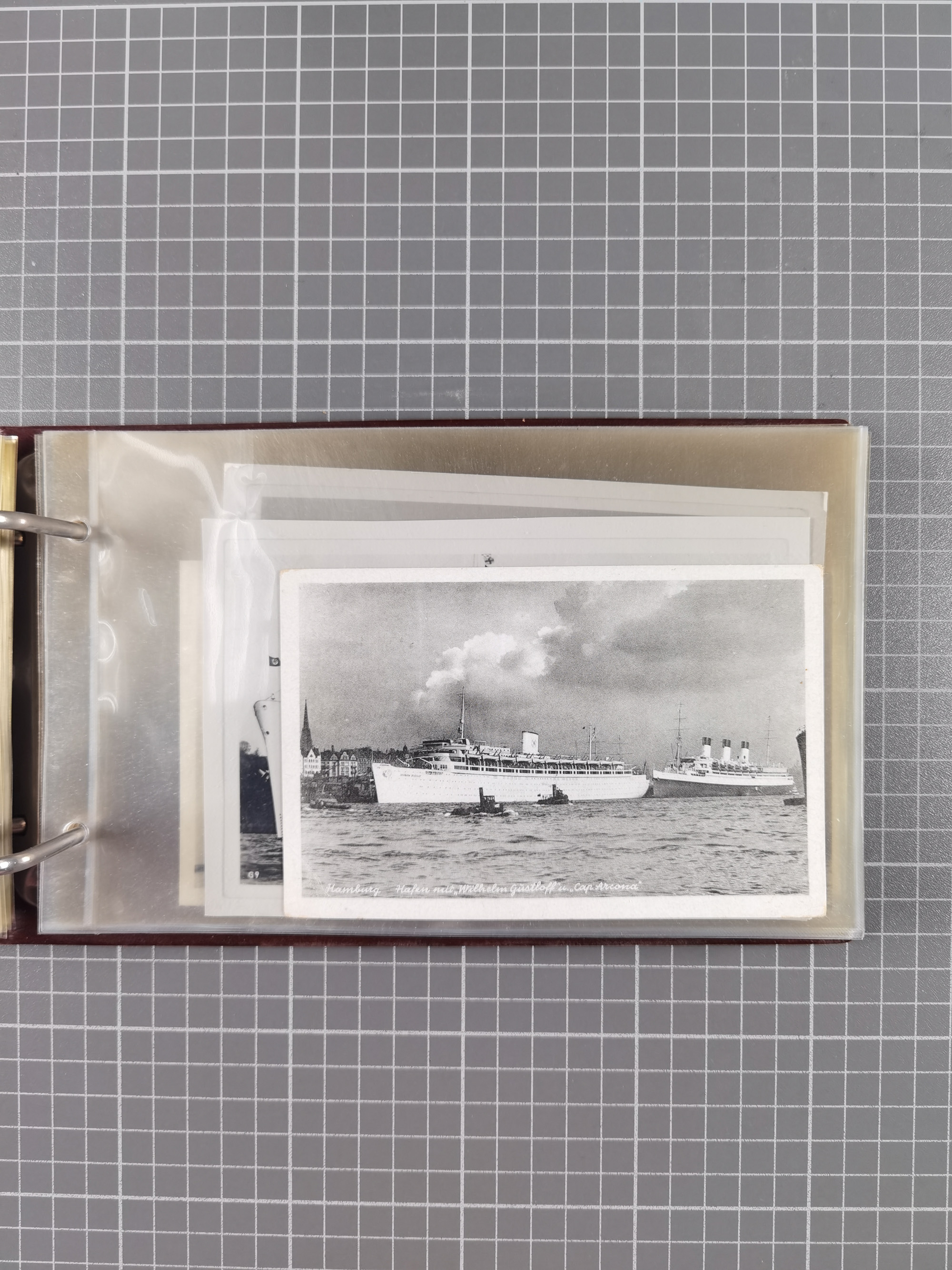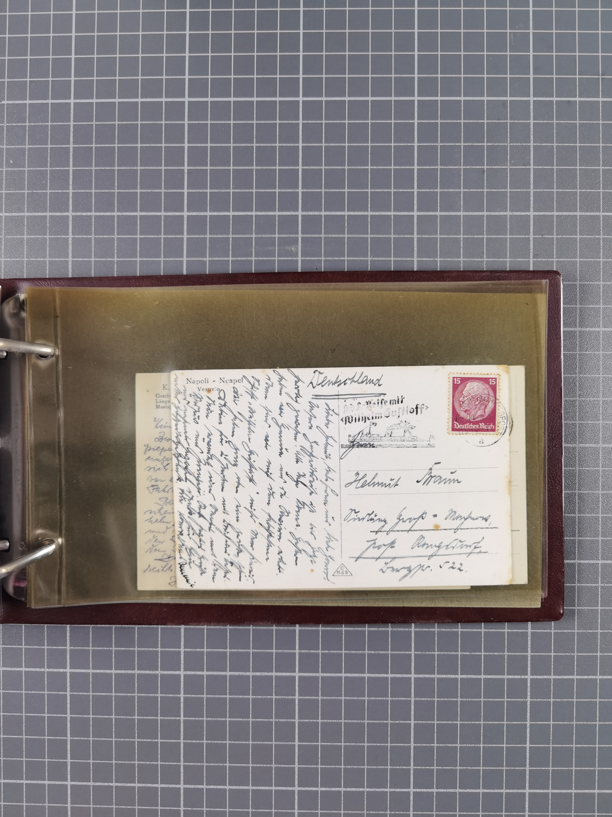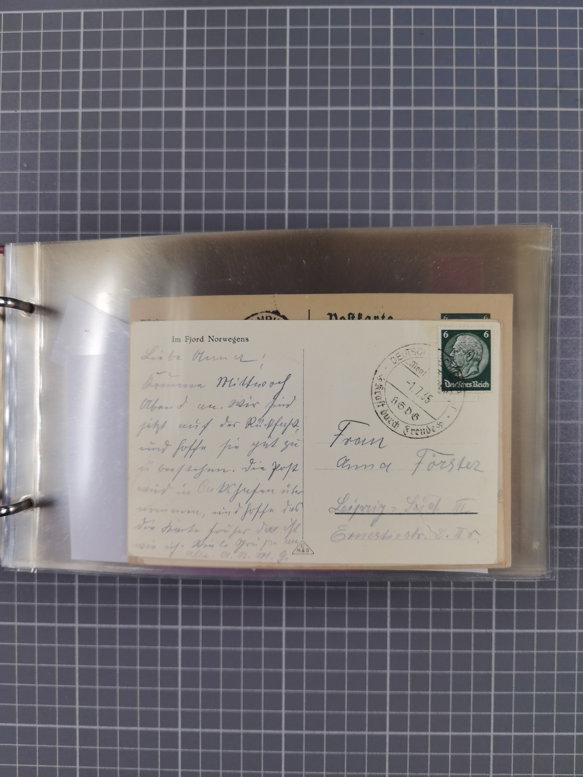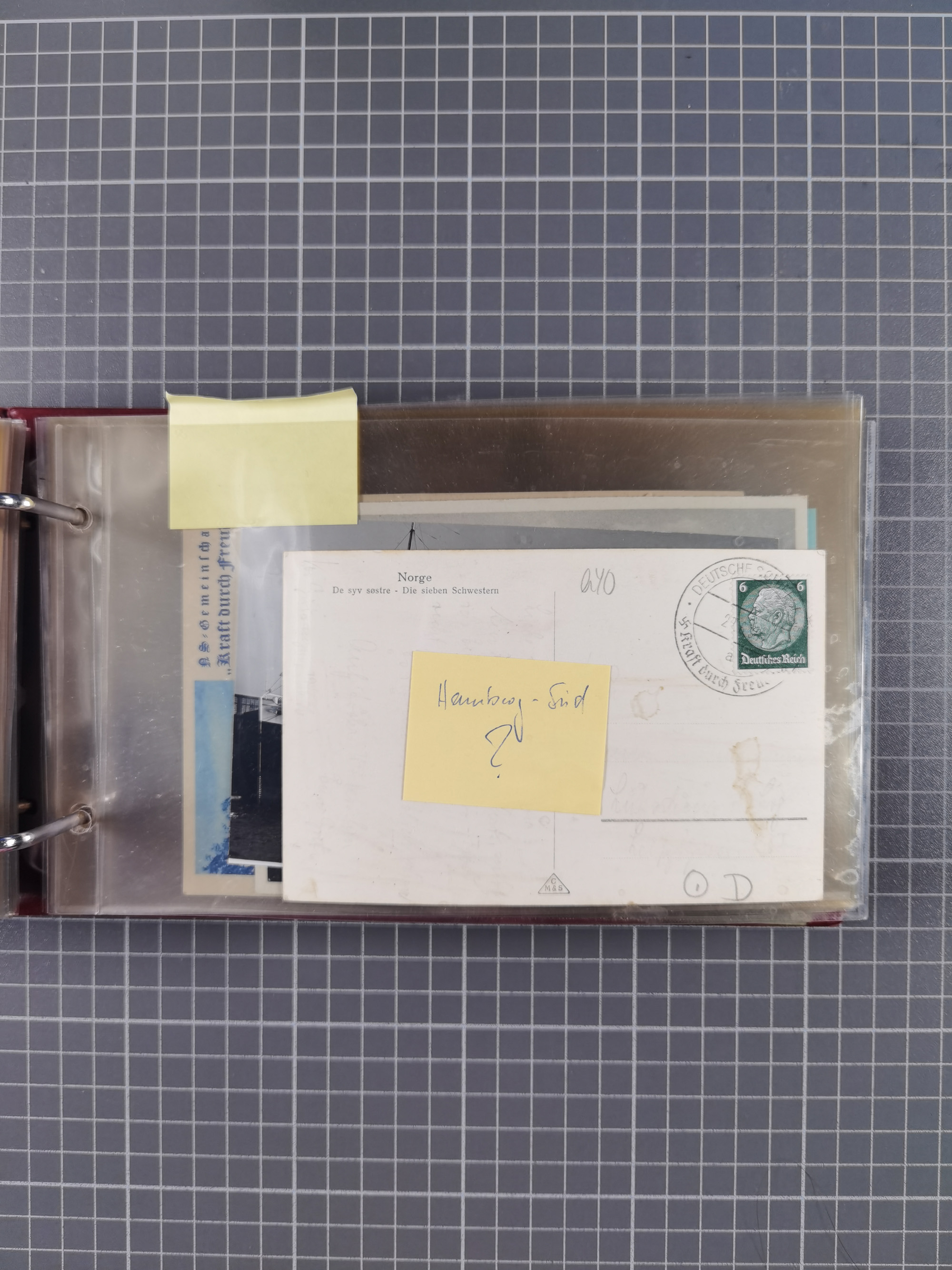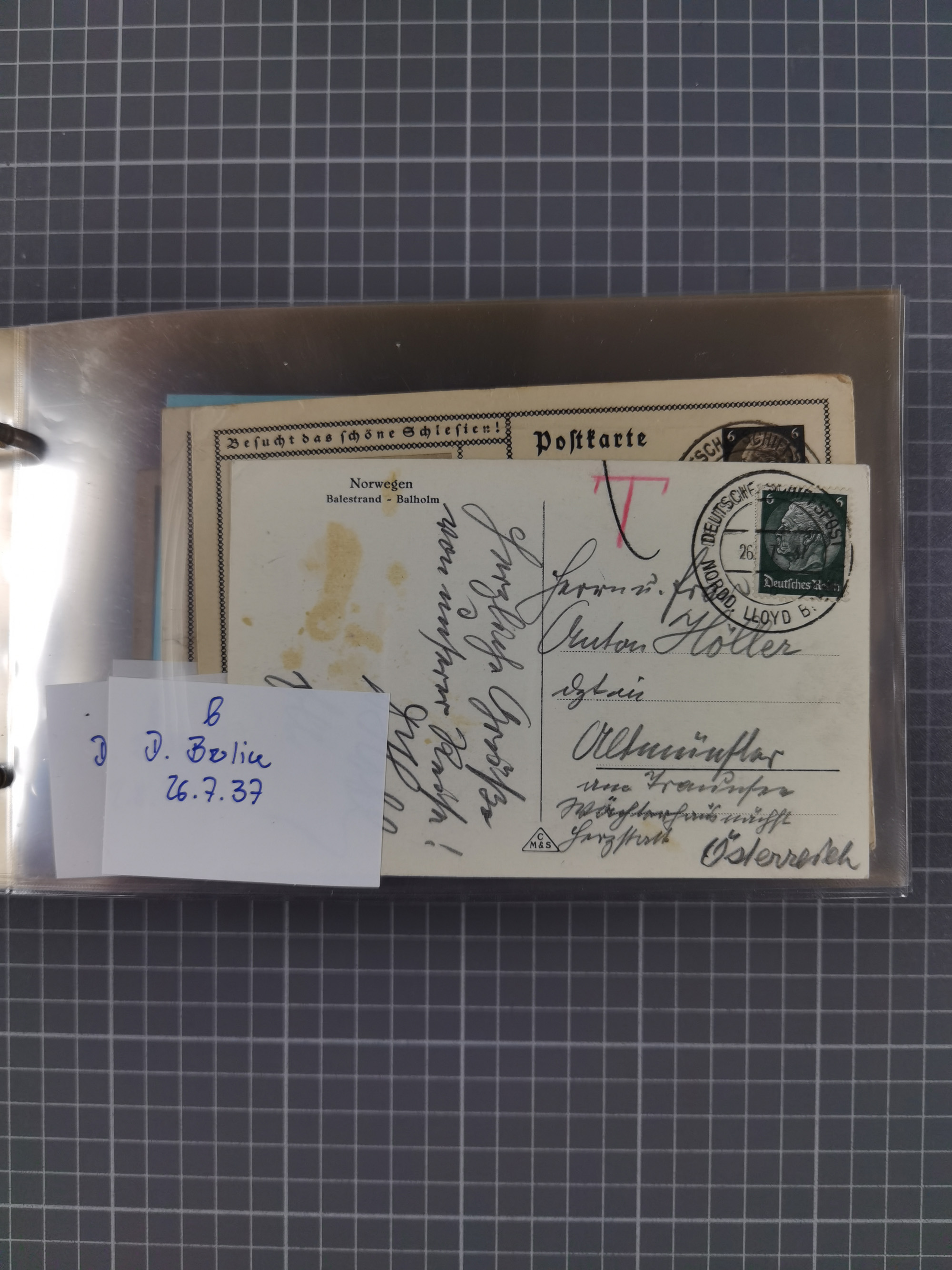1934/39, Sammlung “Kraft durch Freude” mit ca. 240 Briefen, Karten und GSK inkl. Stempel des "LLOYD BREMEN", dazu Fotos, Schiffsansichtskarten, Speisekarten usw., sauber in vier Alben, ex Steinmeyer