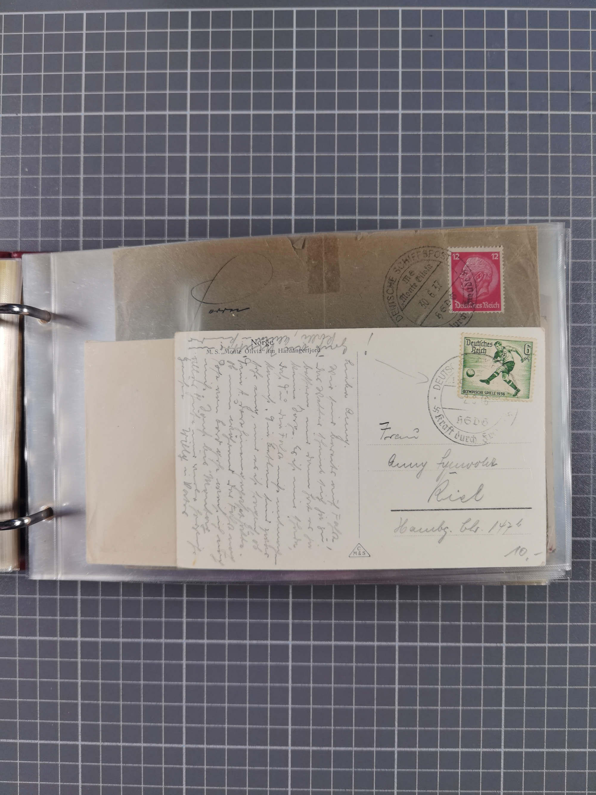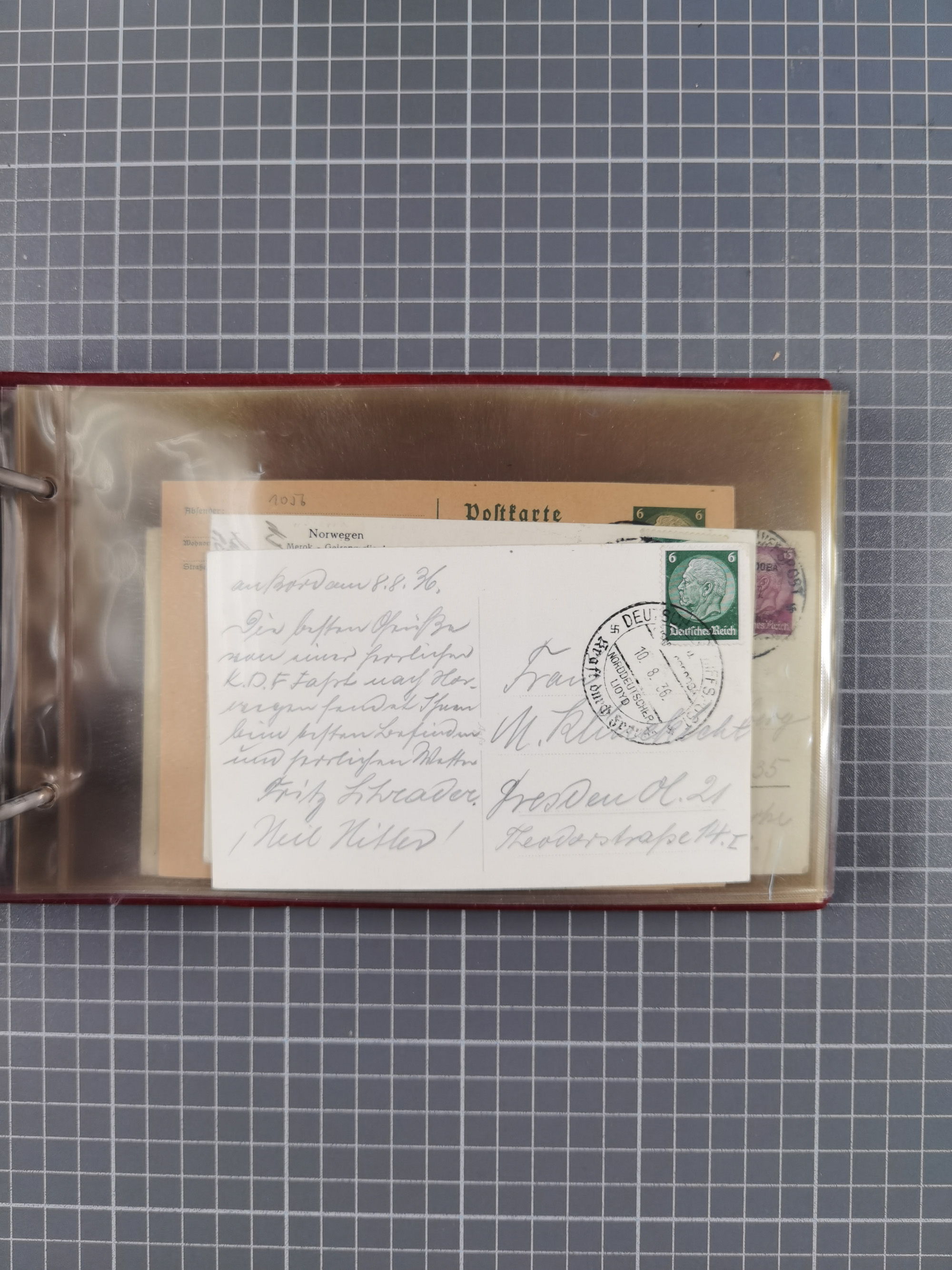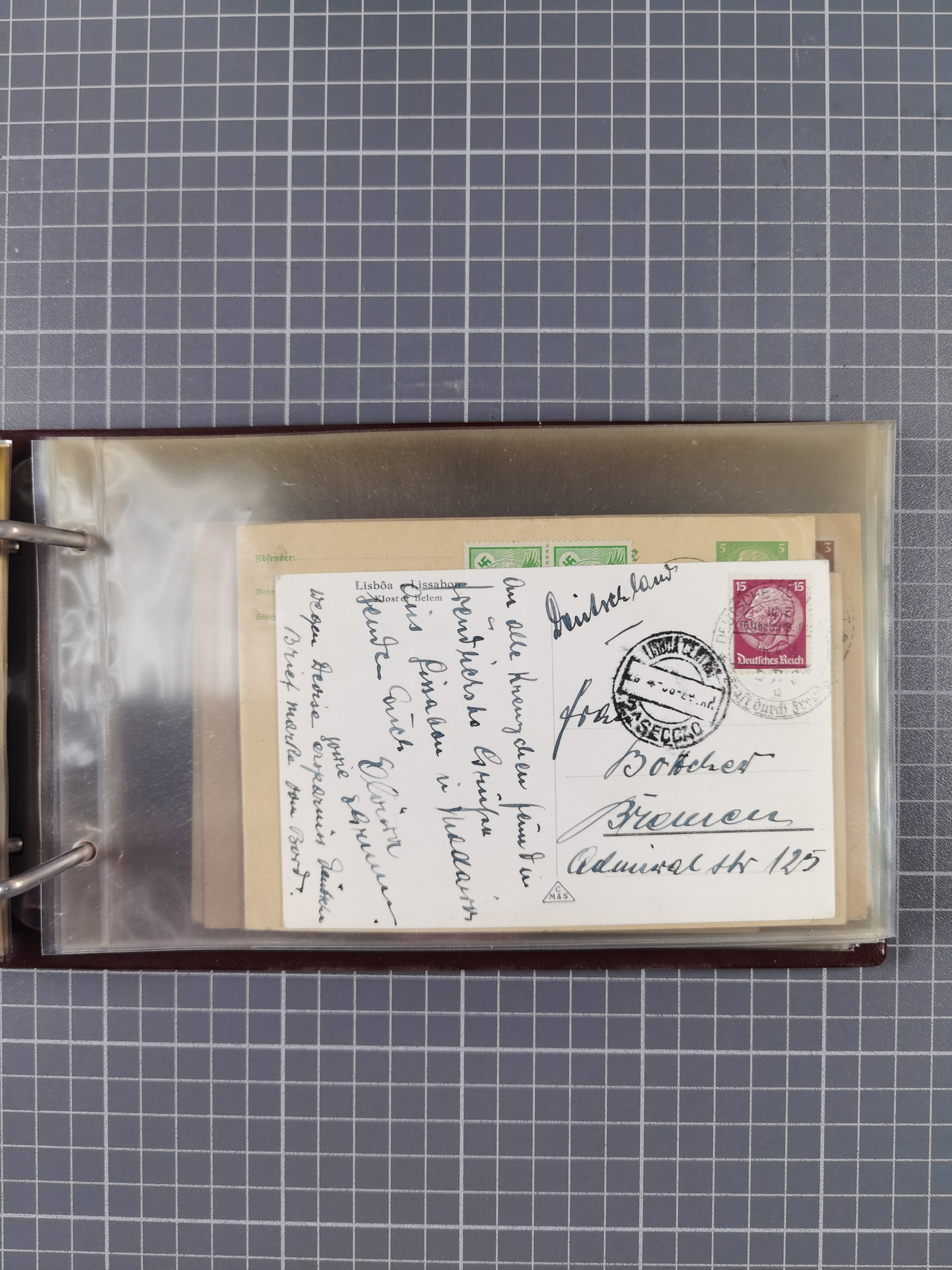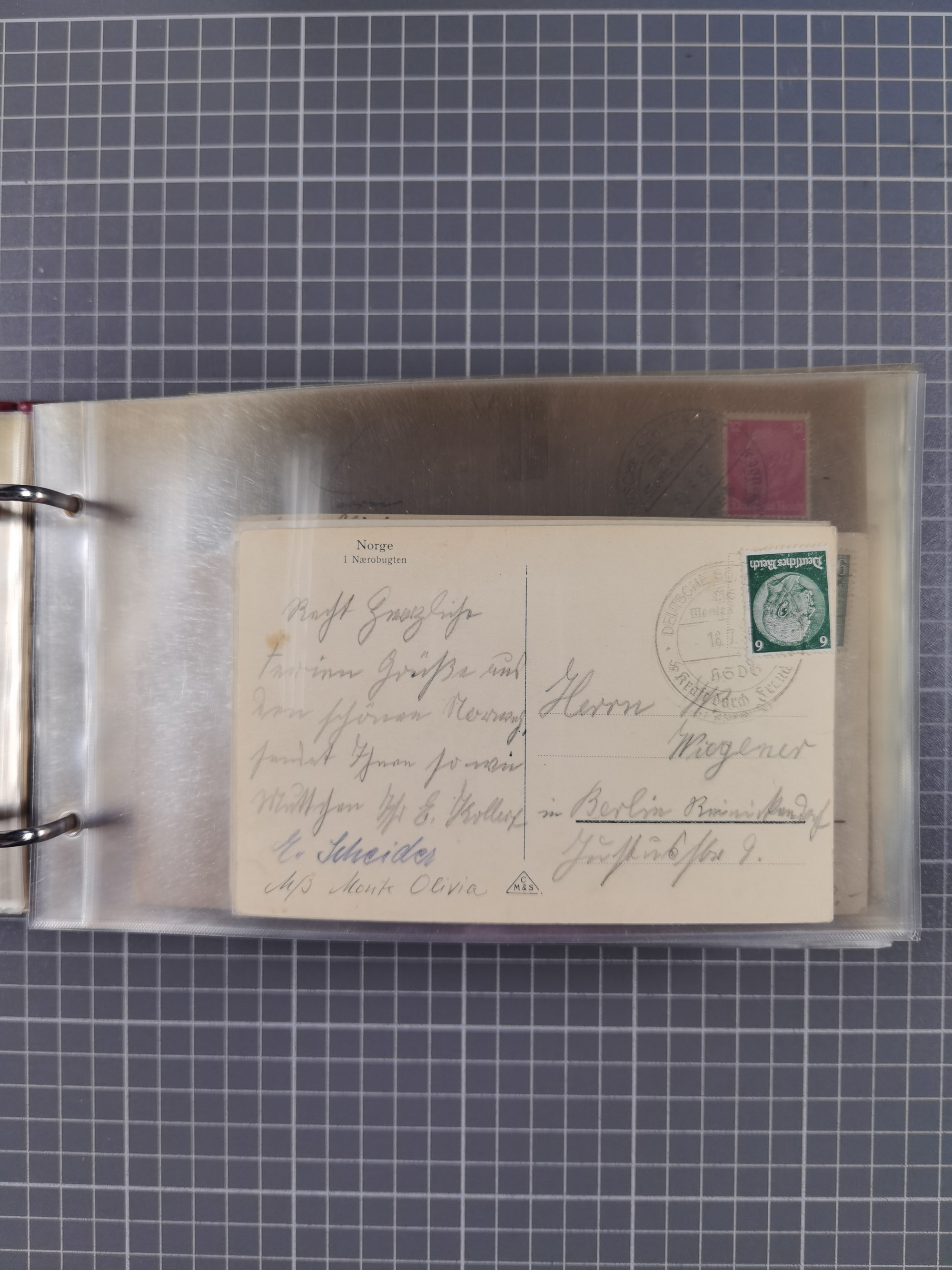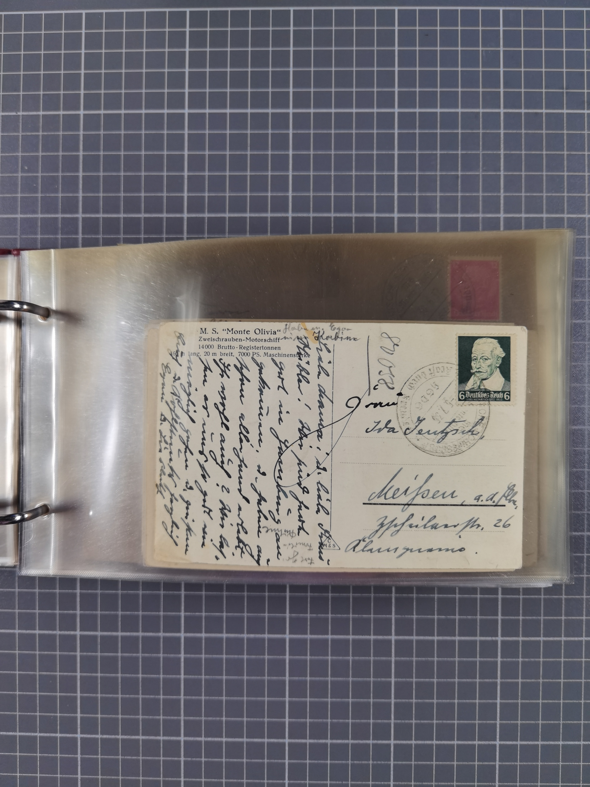 1934/39, Sammlung “Kraft durch Freude” mit ca. 240 Briefen, Karten und GSK inkl. Stempel des "LLOYD BREMEN", dazu Fotos, Schiffsansichtskarten, Speisekarten usw., sauber in vier Alben, ex Steinmeyer