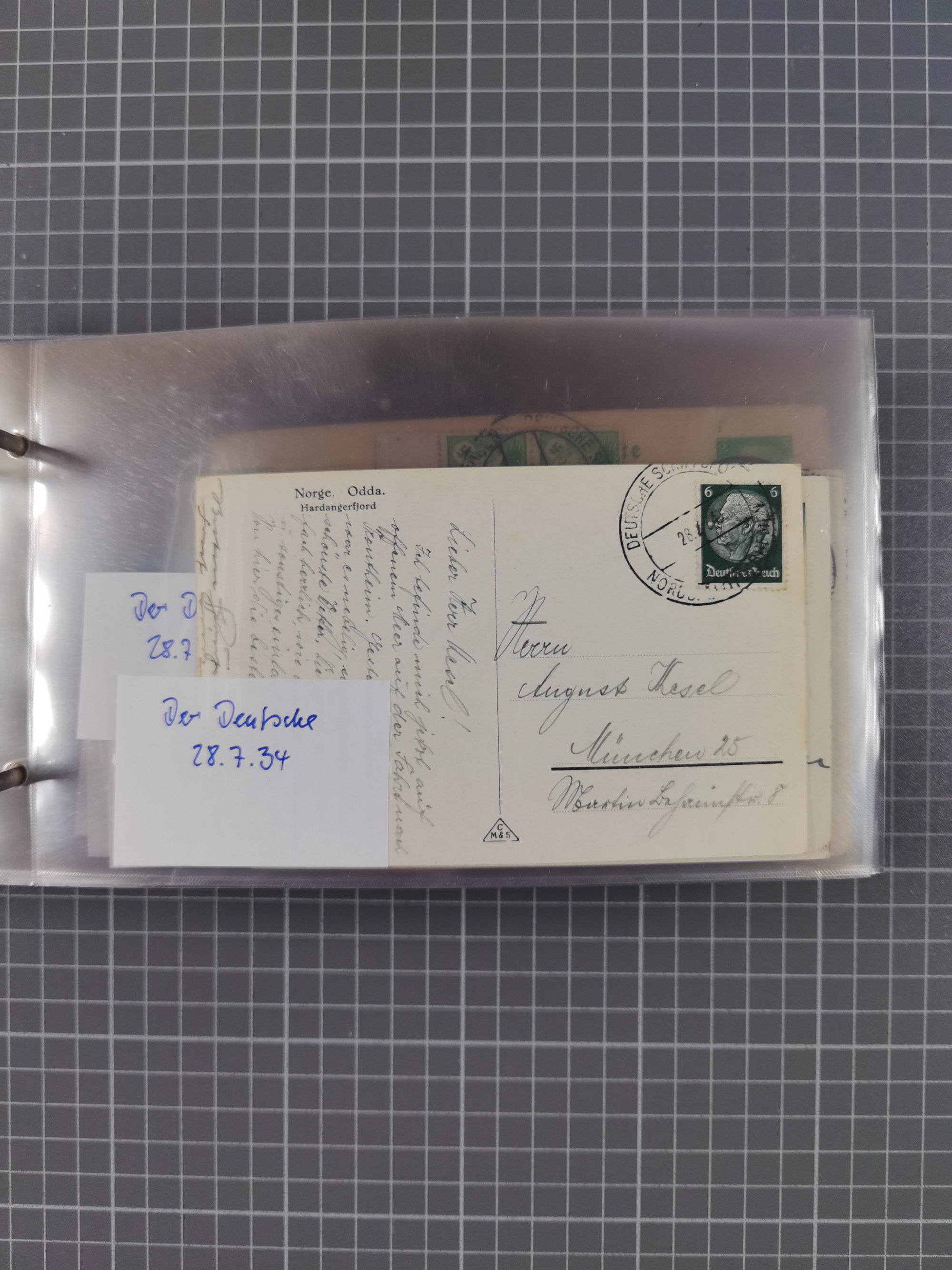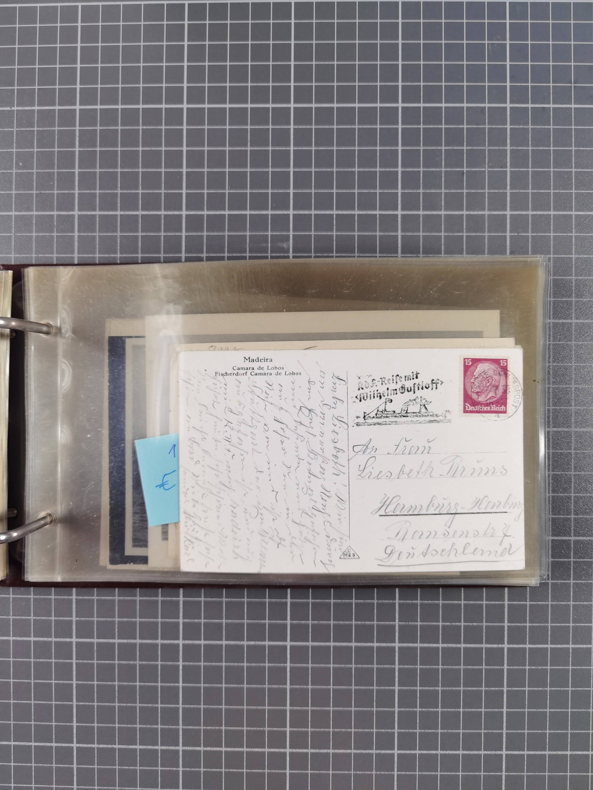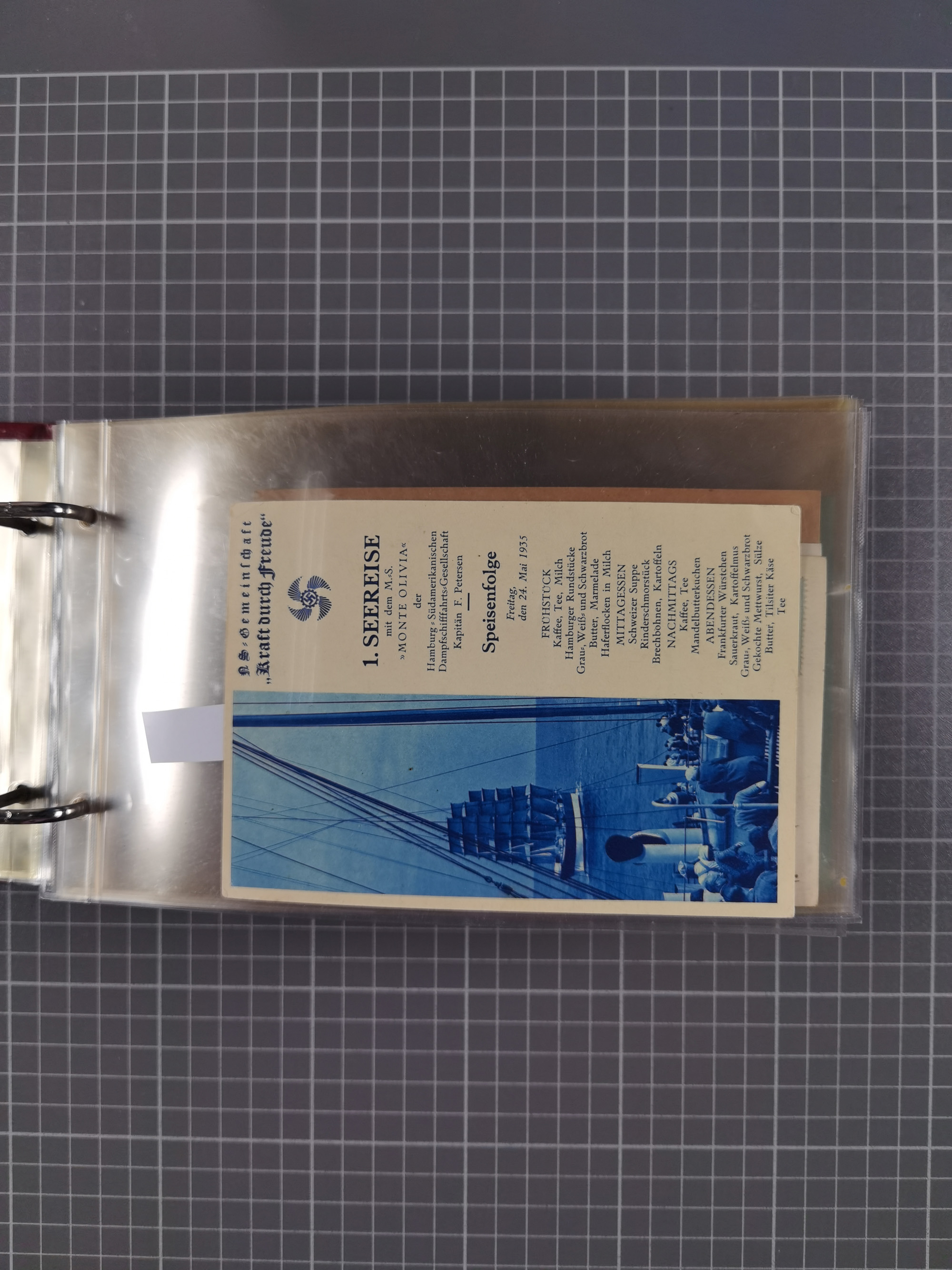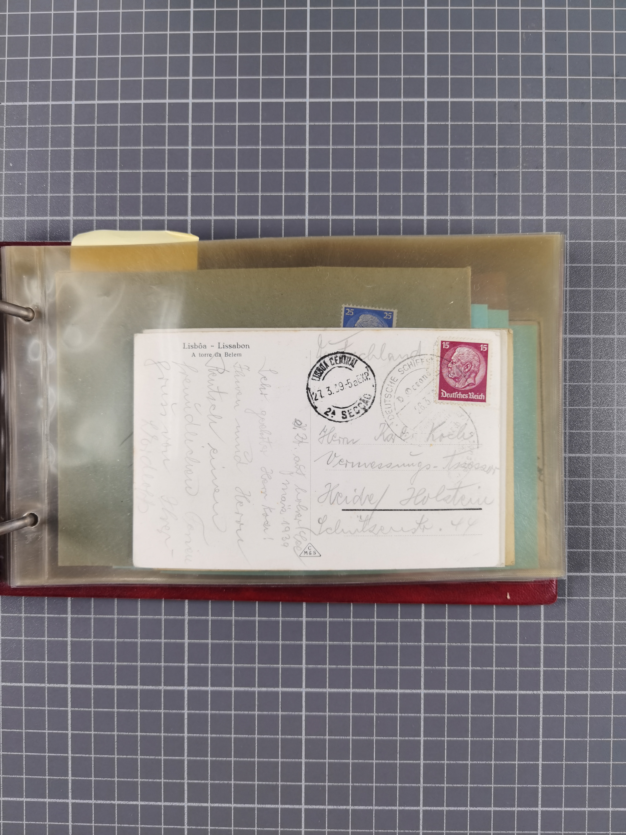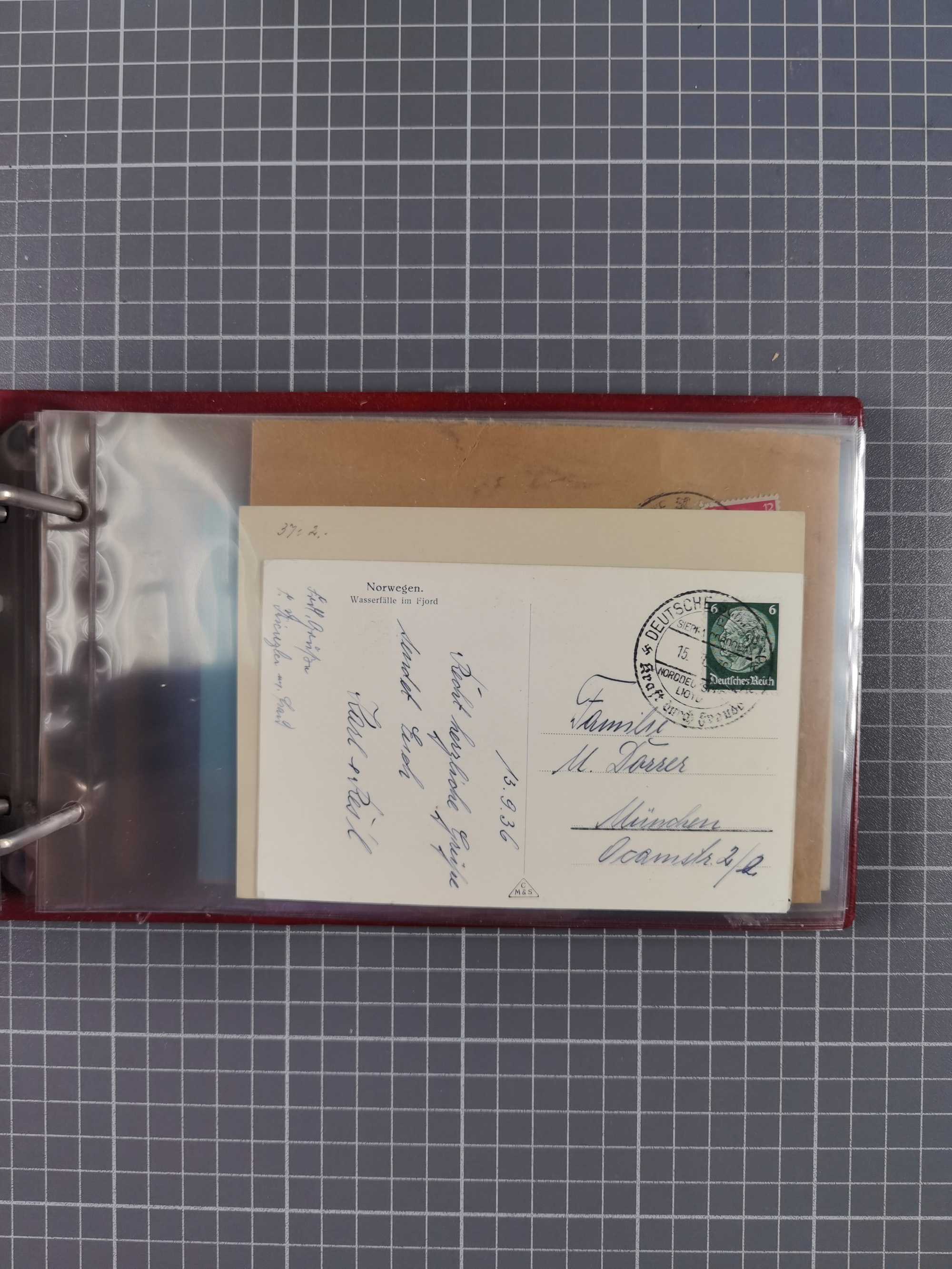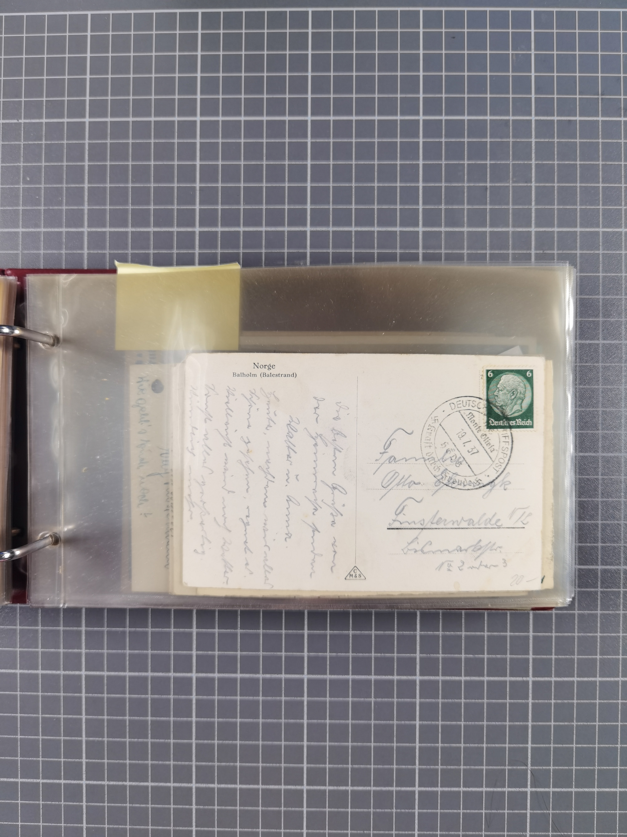1934/39, Sammlung “Kraft durch Freude” mit ca. 240 Briefen, Karten und GSK inkl. Stempel des "LLOYD BREMEN", dazu Fotos, Schiffsansichtskarten, Speisekarten usw., sauber in vier Alben, ex Steinmeyer