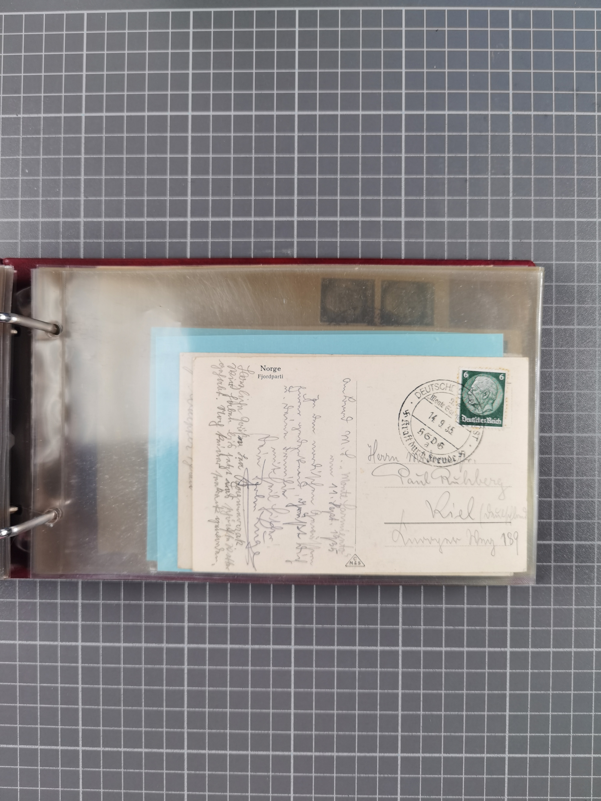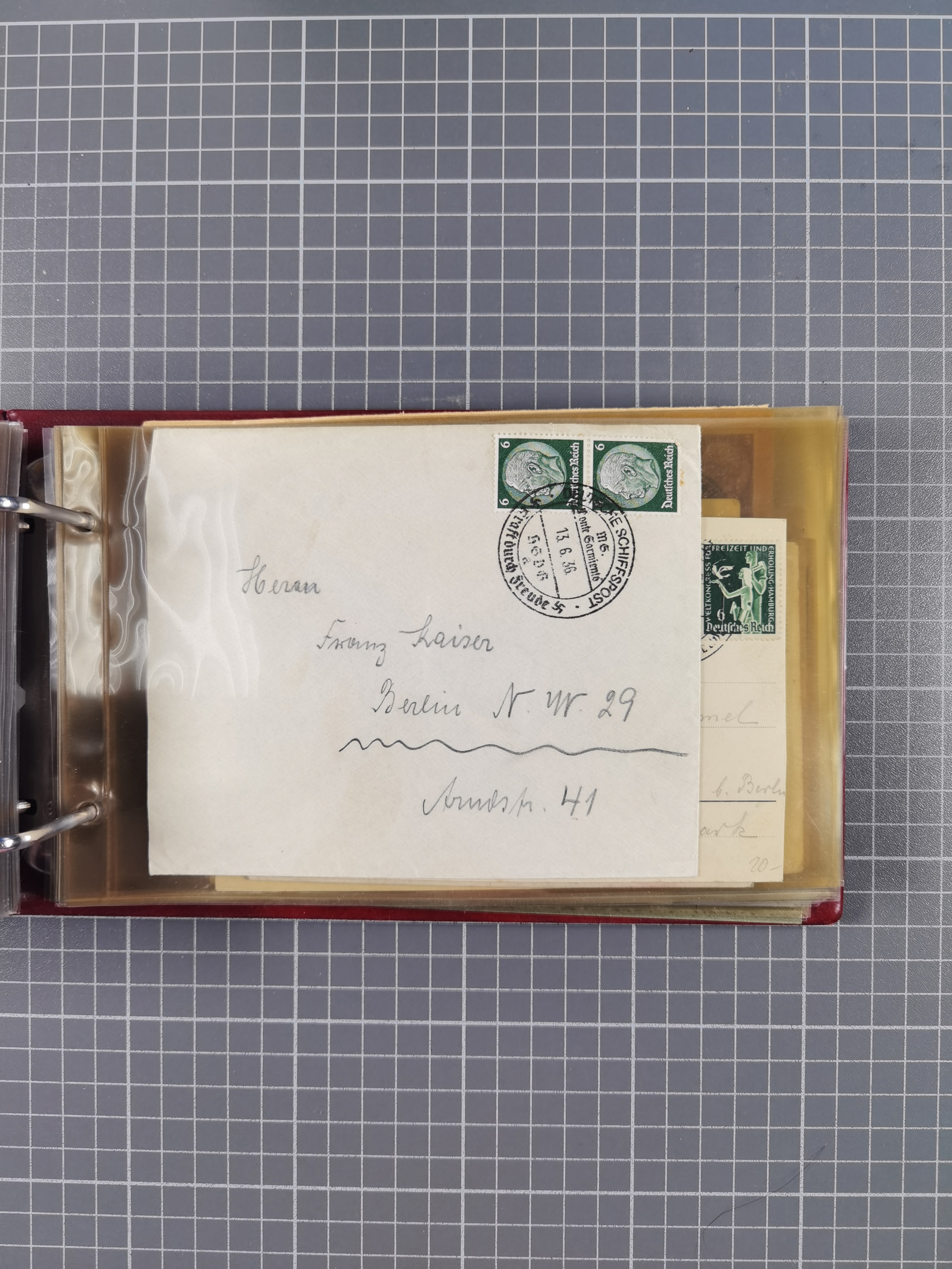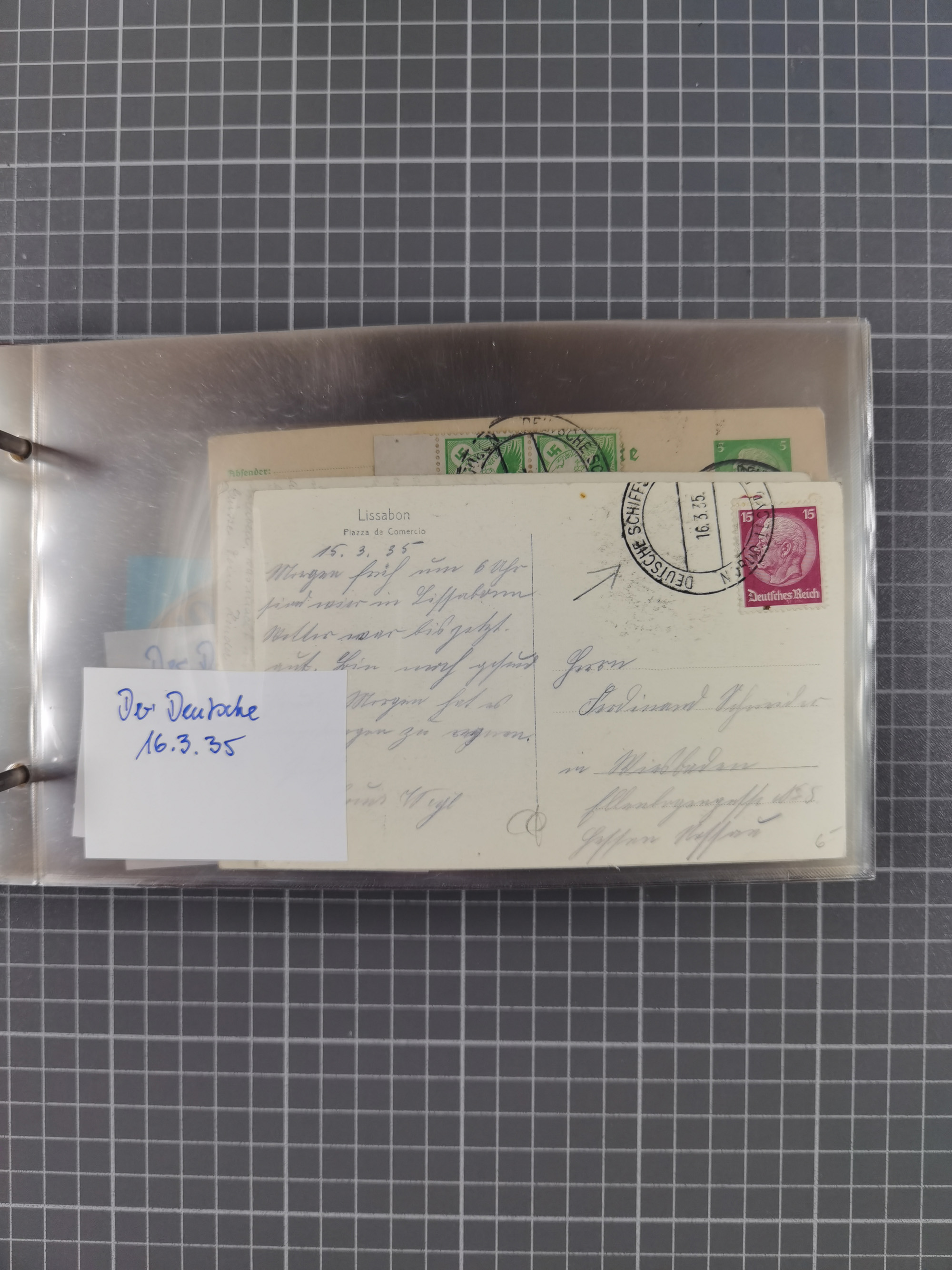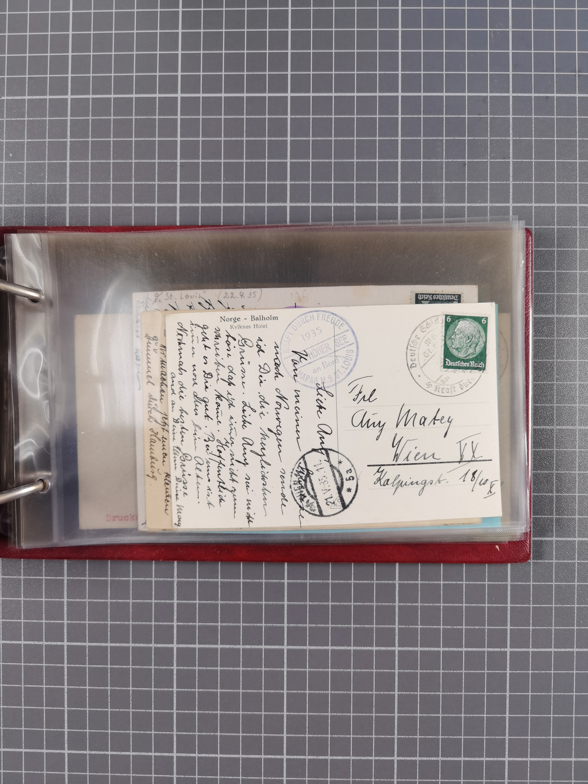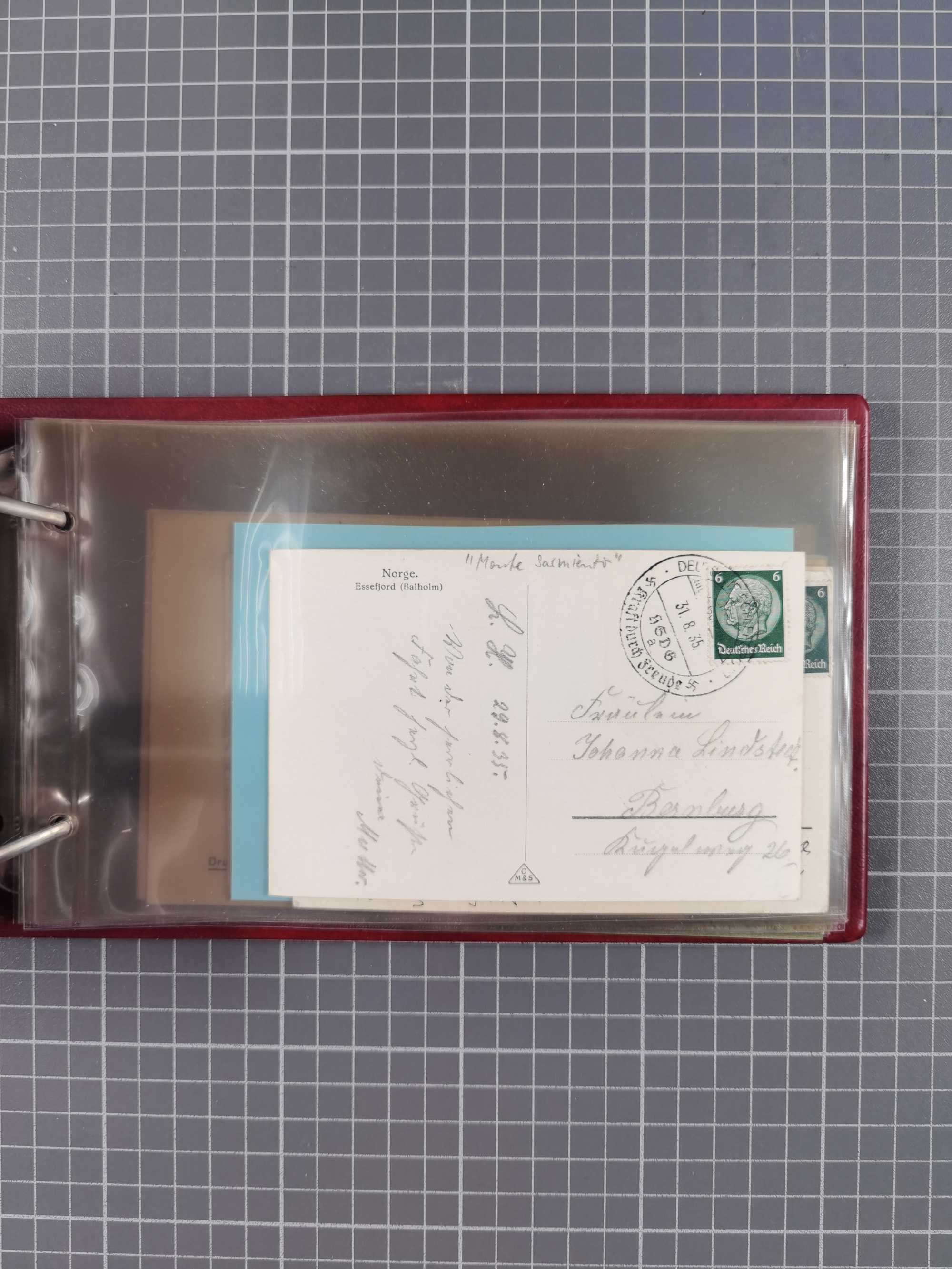 1934/39, Sammlung “Kraft durch Freude” mit ca. 240 Briefen, Karten und GSK inkl. Stempel des "LLOYD BREMEN", dazu Fotos, Schiffsansichtskarten, Speisekarten usw., sauber in vier Alben, ex Steinmeyer