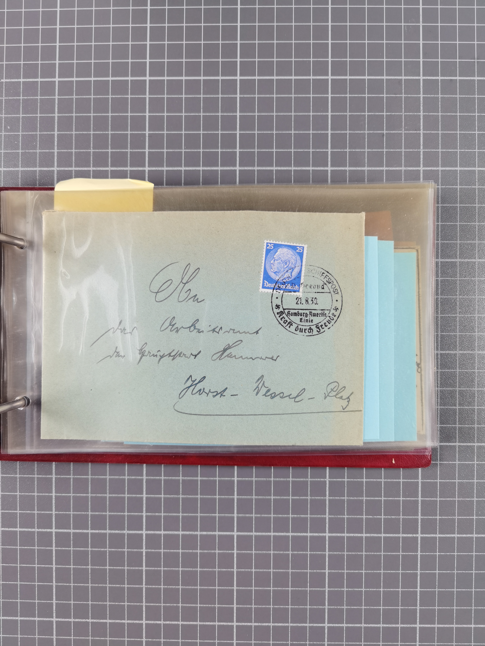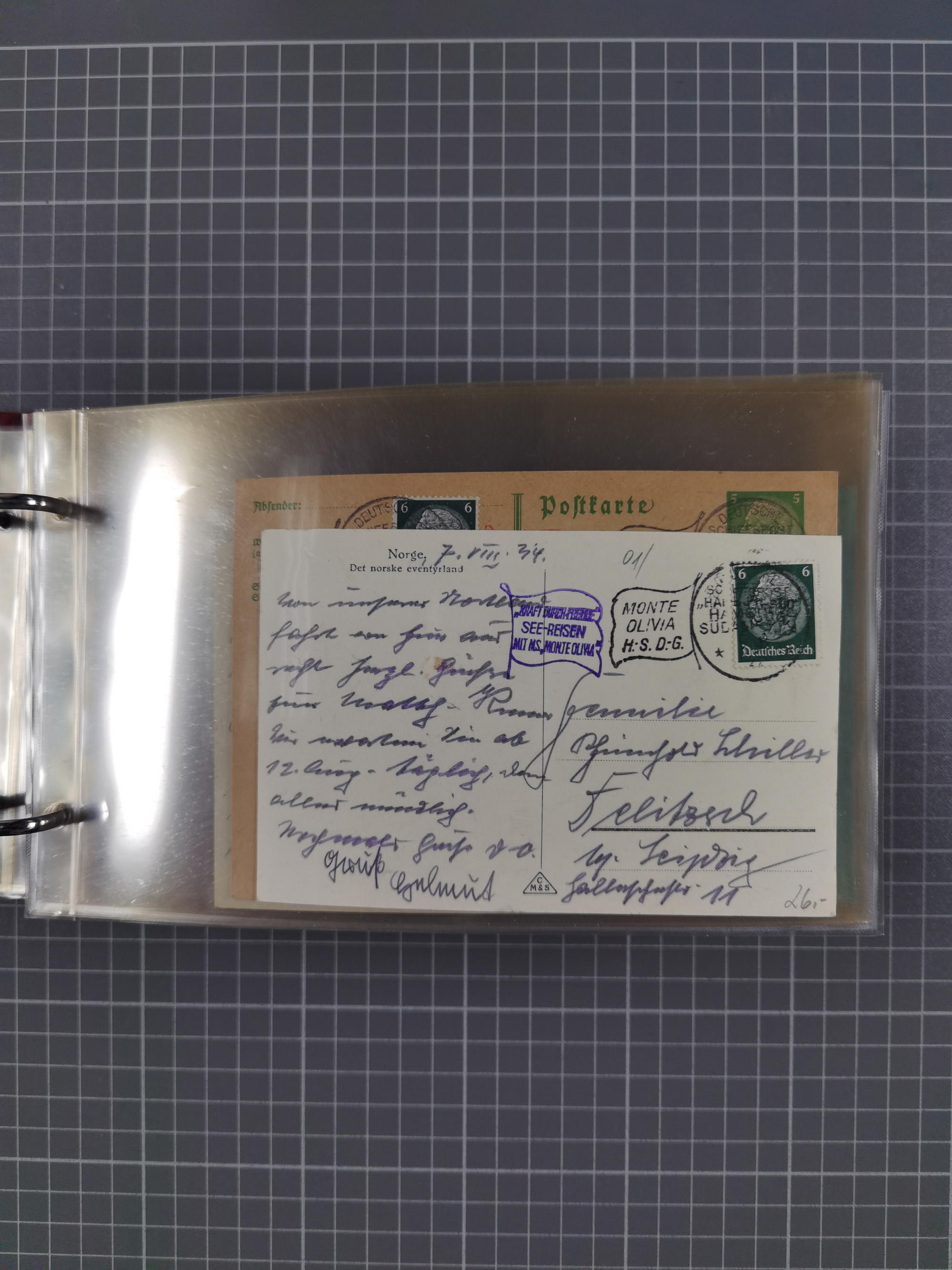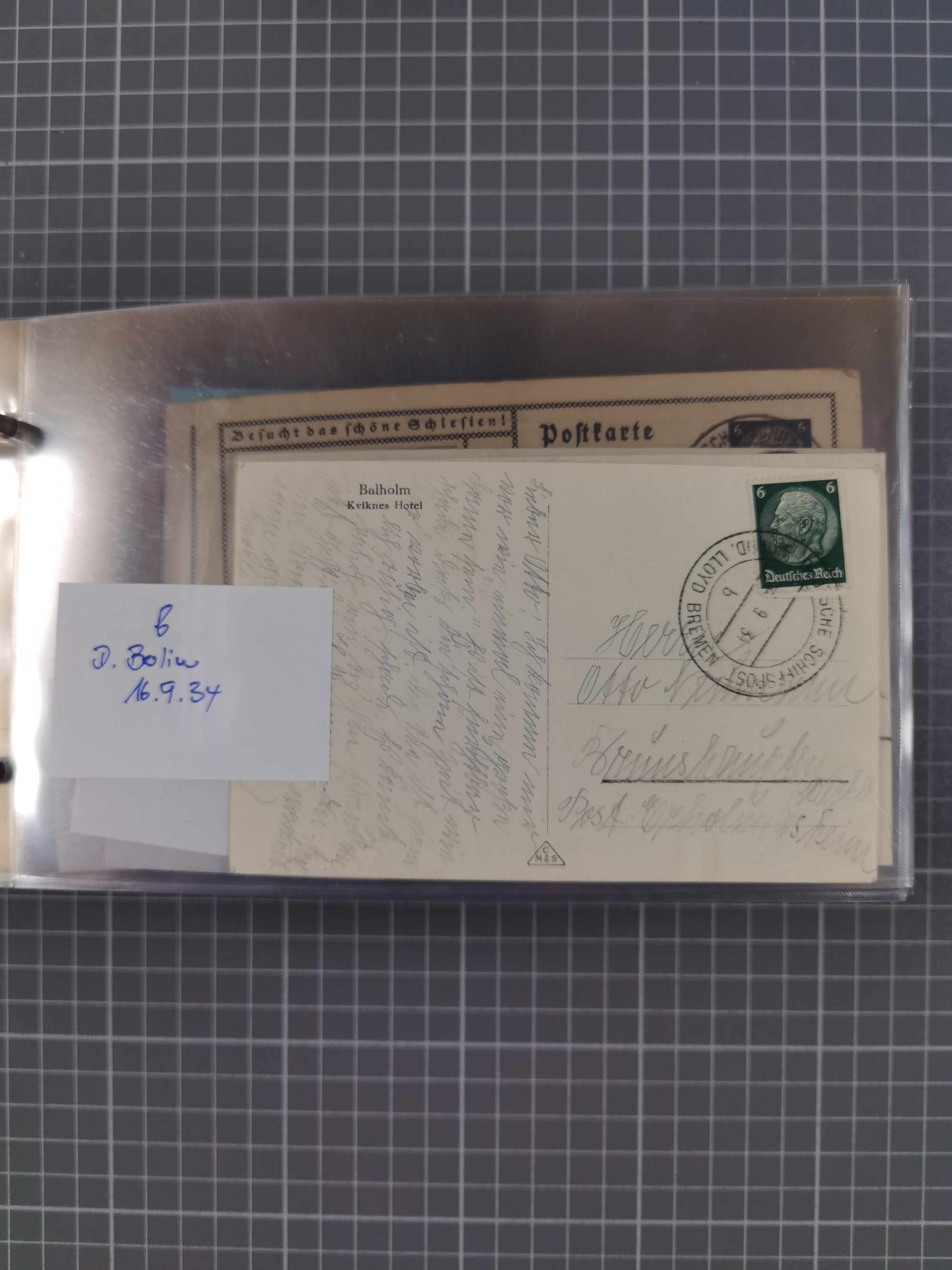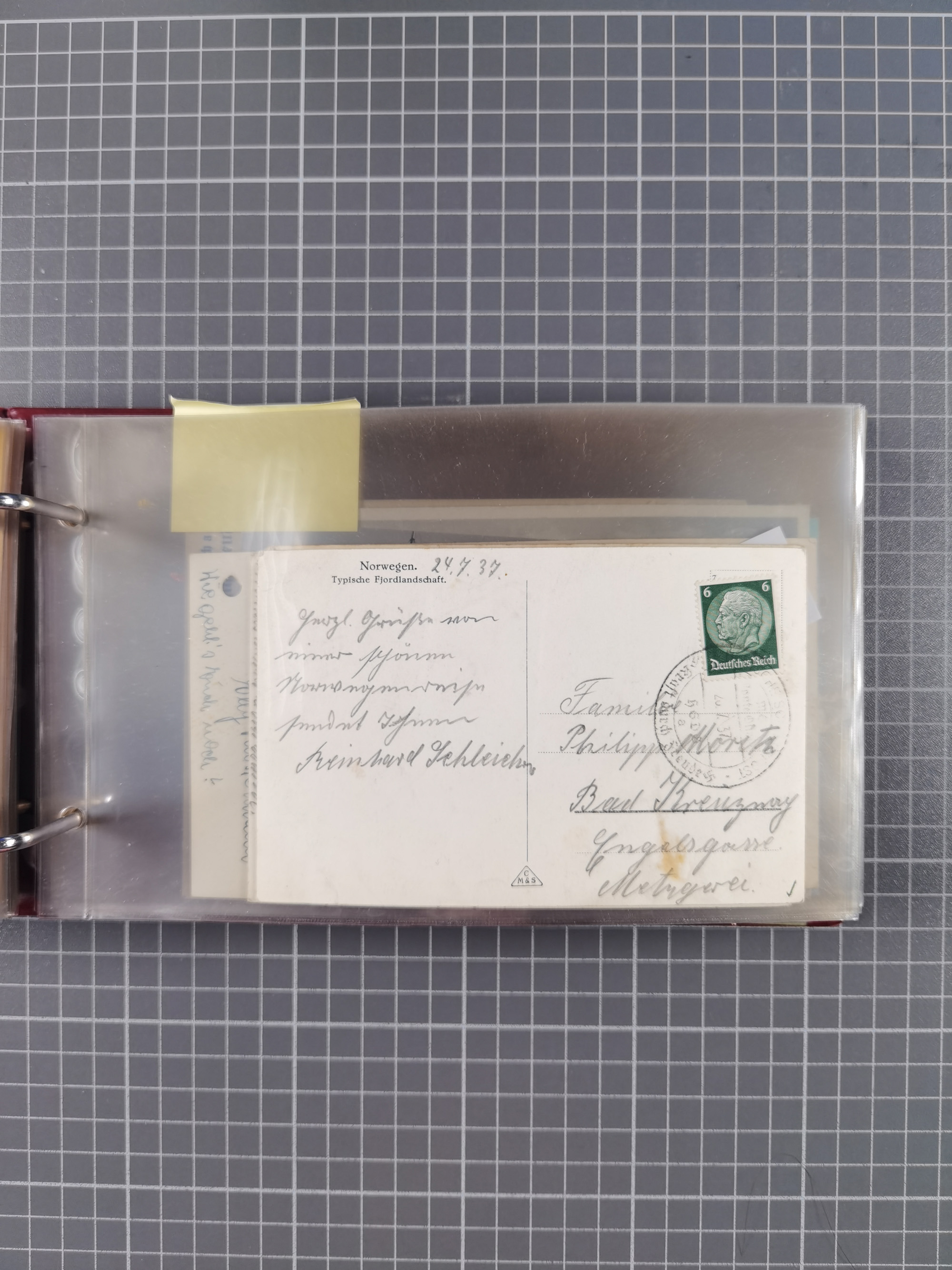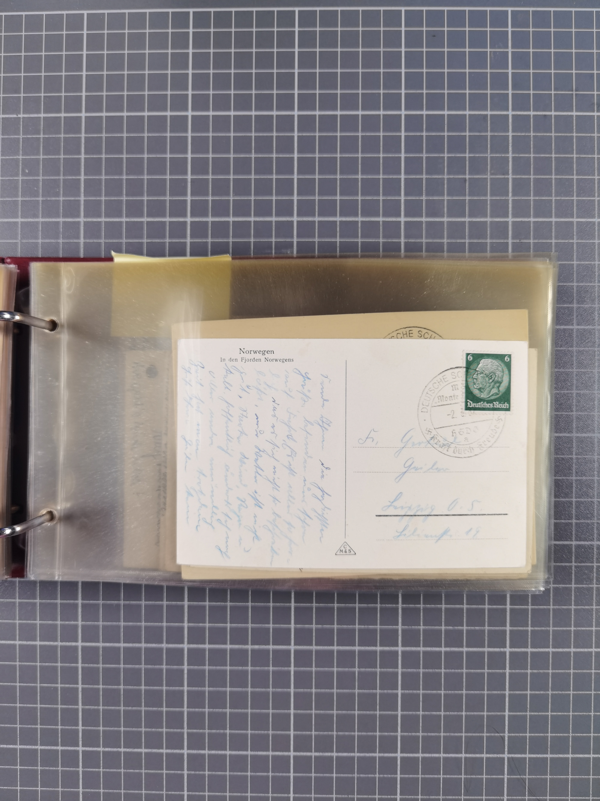 1934/39, Sammlung “Kraft durch Freude” mit ca. 240 Briefen, Karten und GSK inkl. Stempel des "LLOYD BREMEN", dazu Fotos, Schiffsansichtskarten, Speisekarten usw., sauber in vier Alben, ex Steinmeyer