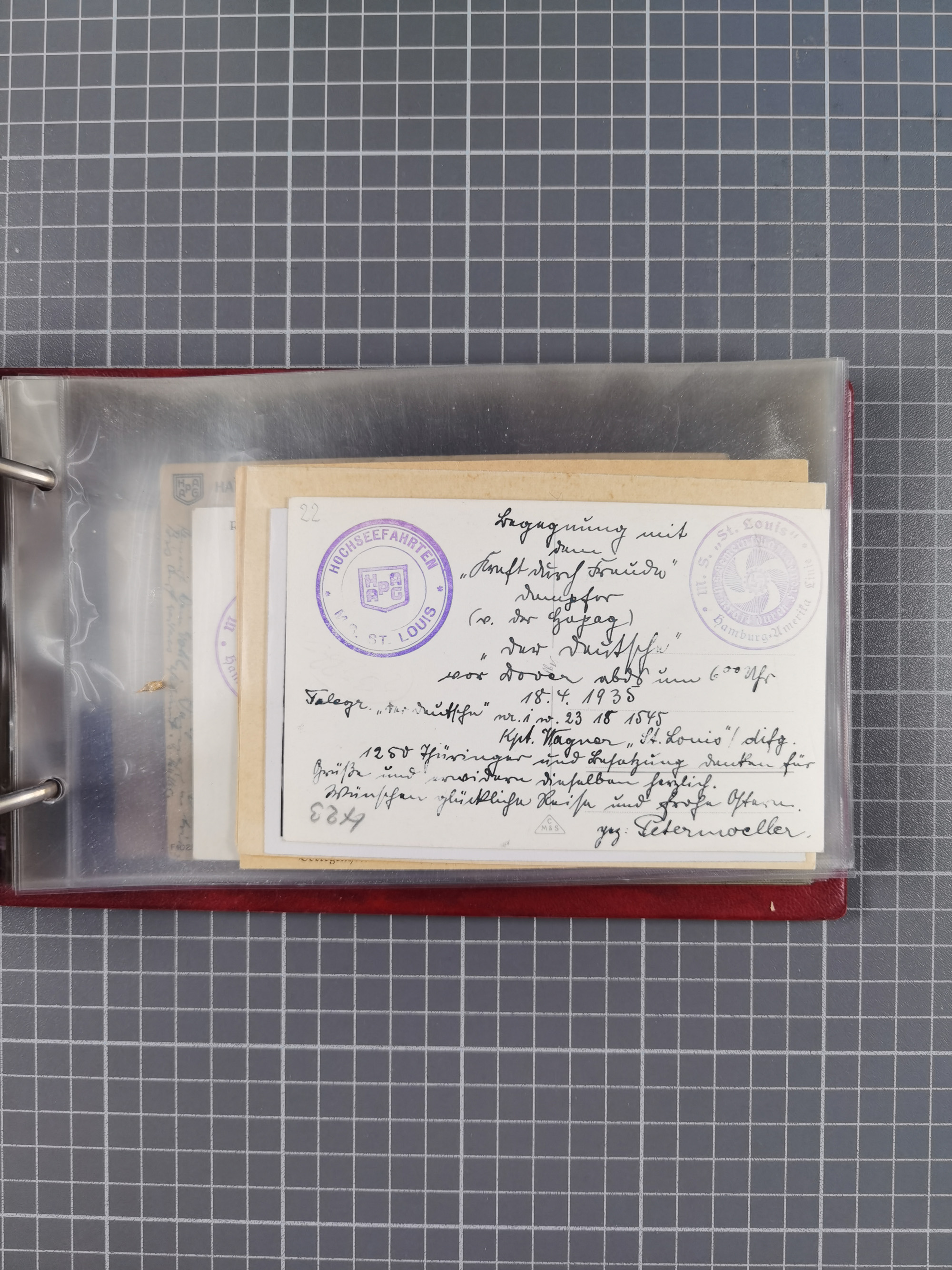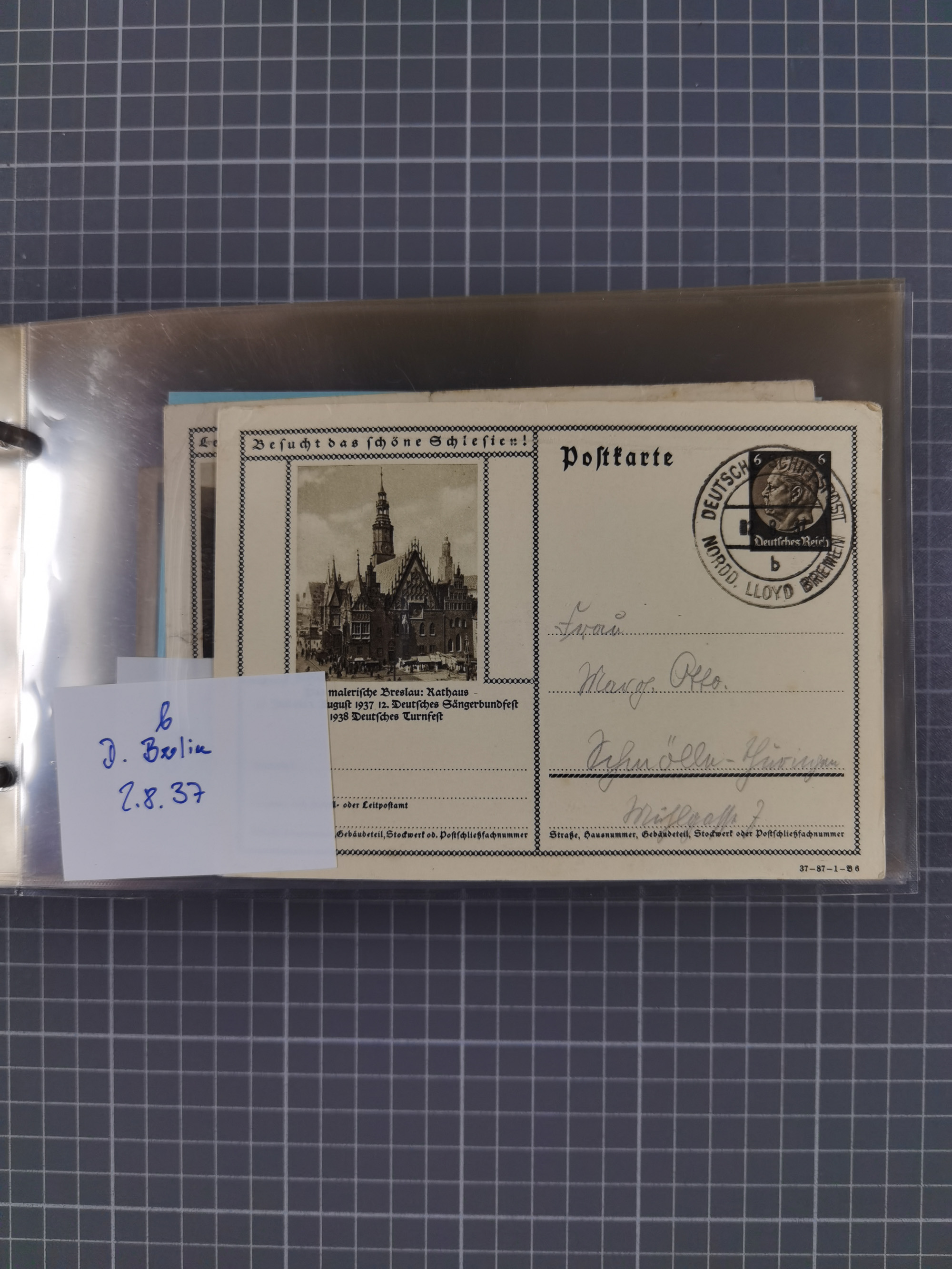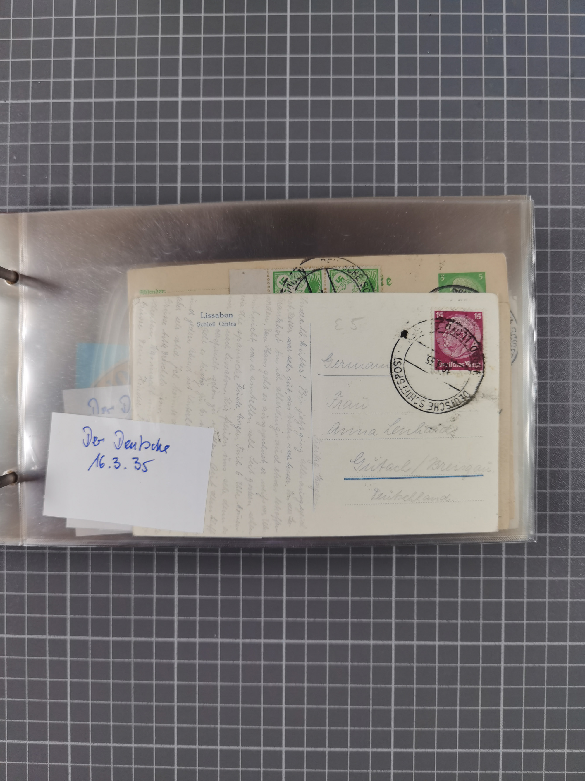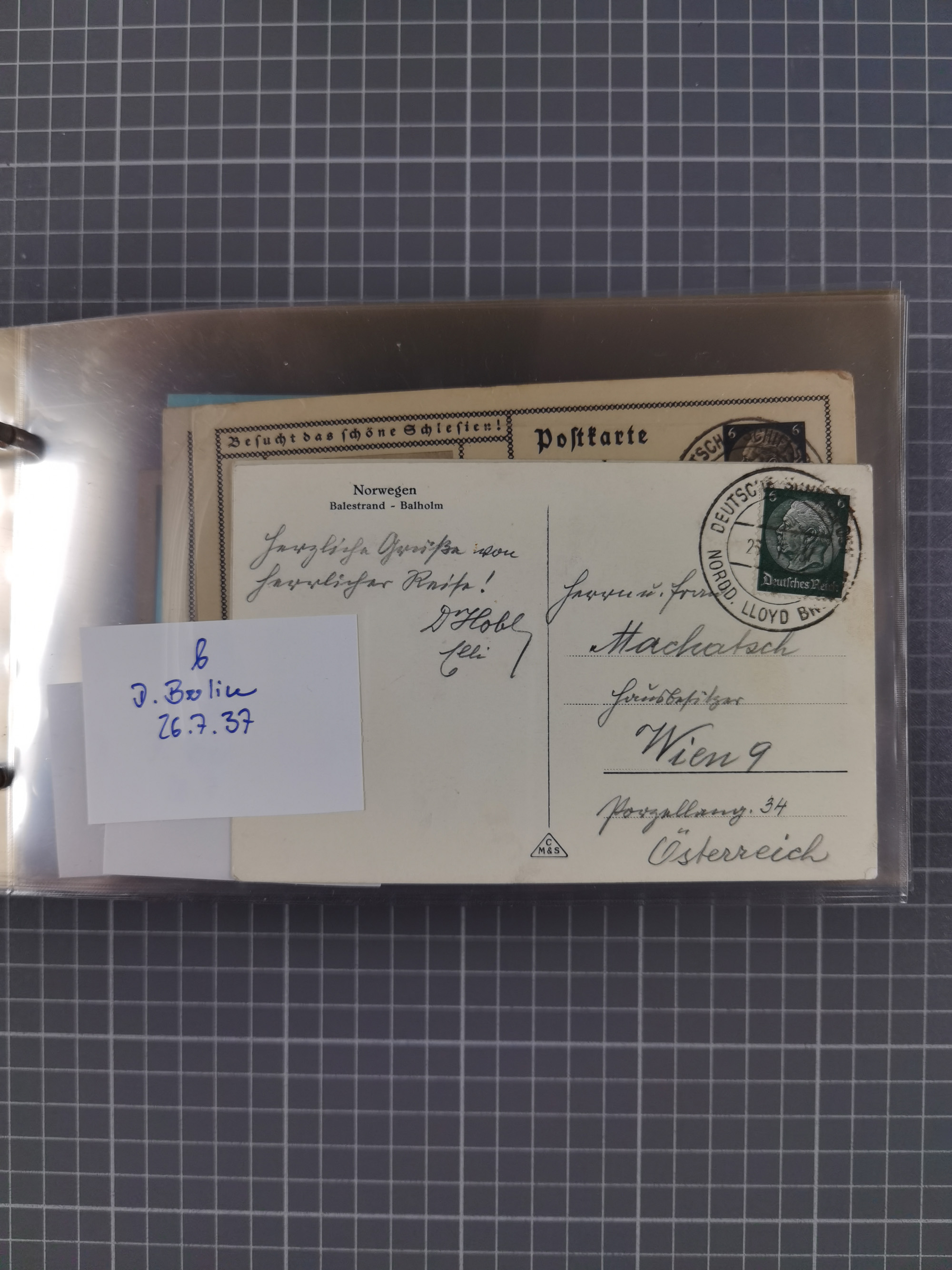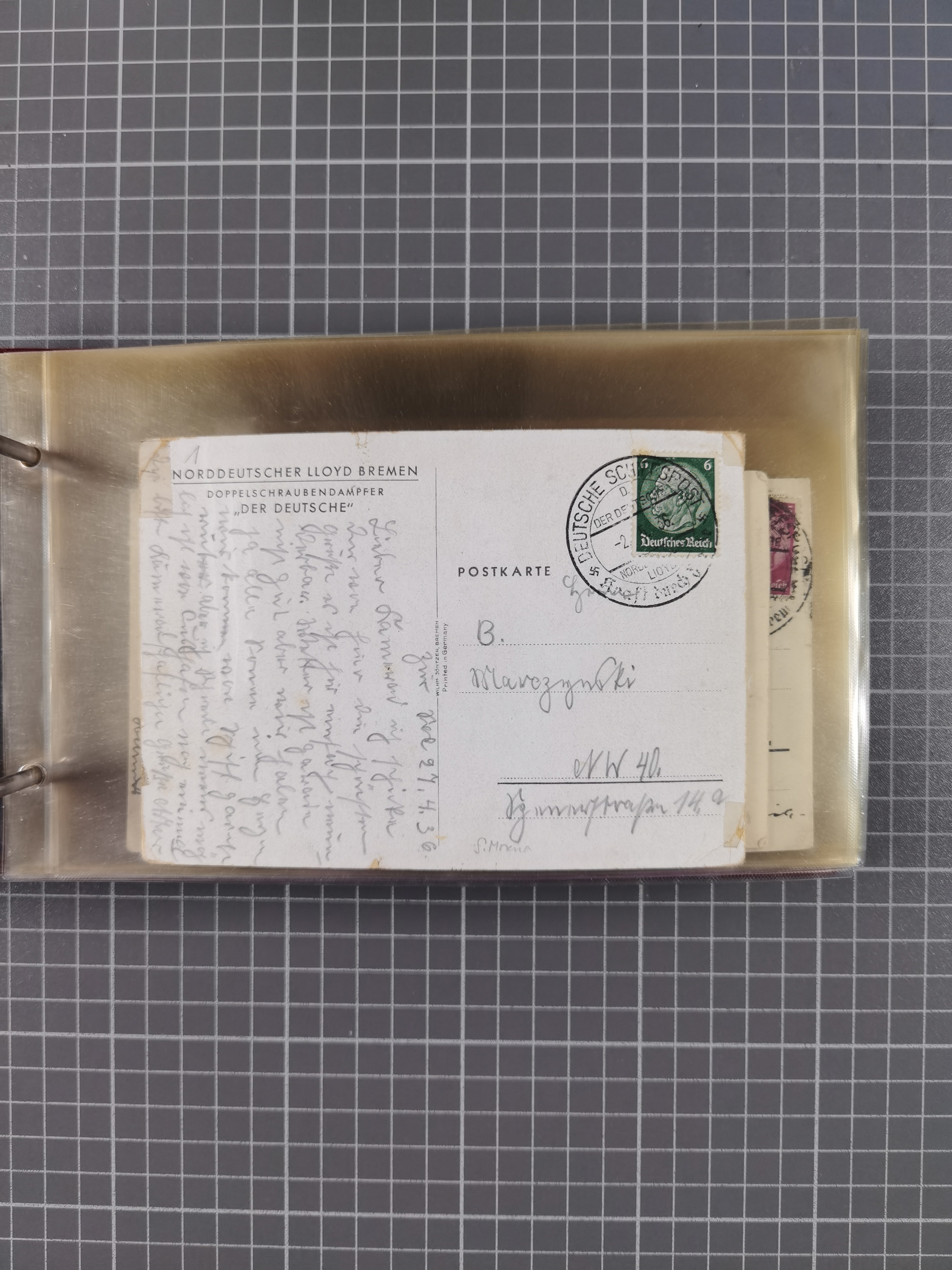 1934/39, Sammlung “Kraft durch Freude” mit ca. 240 Briefen, Karten und GSK inkl. Stempel des "LLOYD BREMEN", dazu Fotos, Schiffsansichtskarten, Speisekarten usw., sauber in vier Alben, ex Steinmeyer