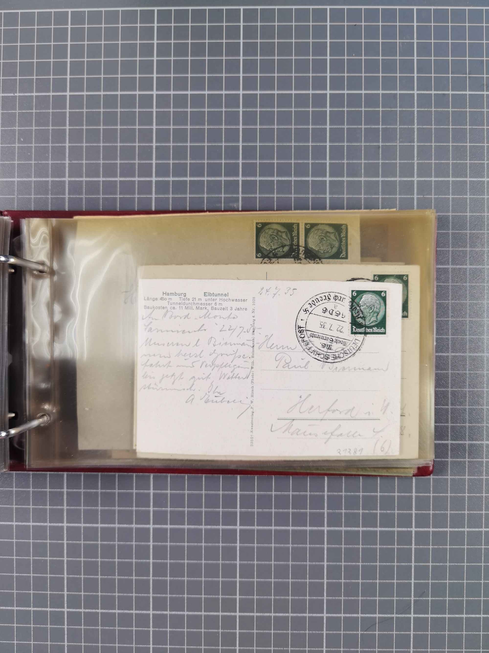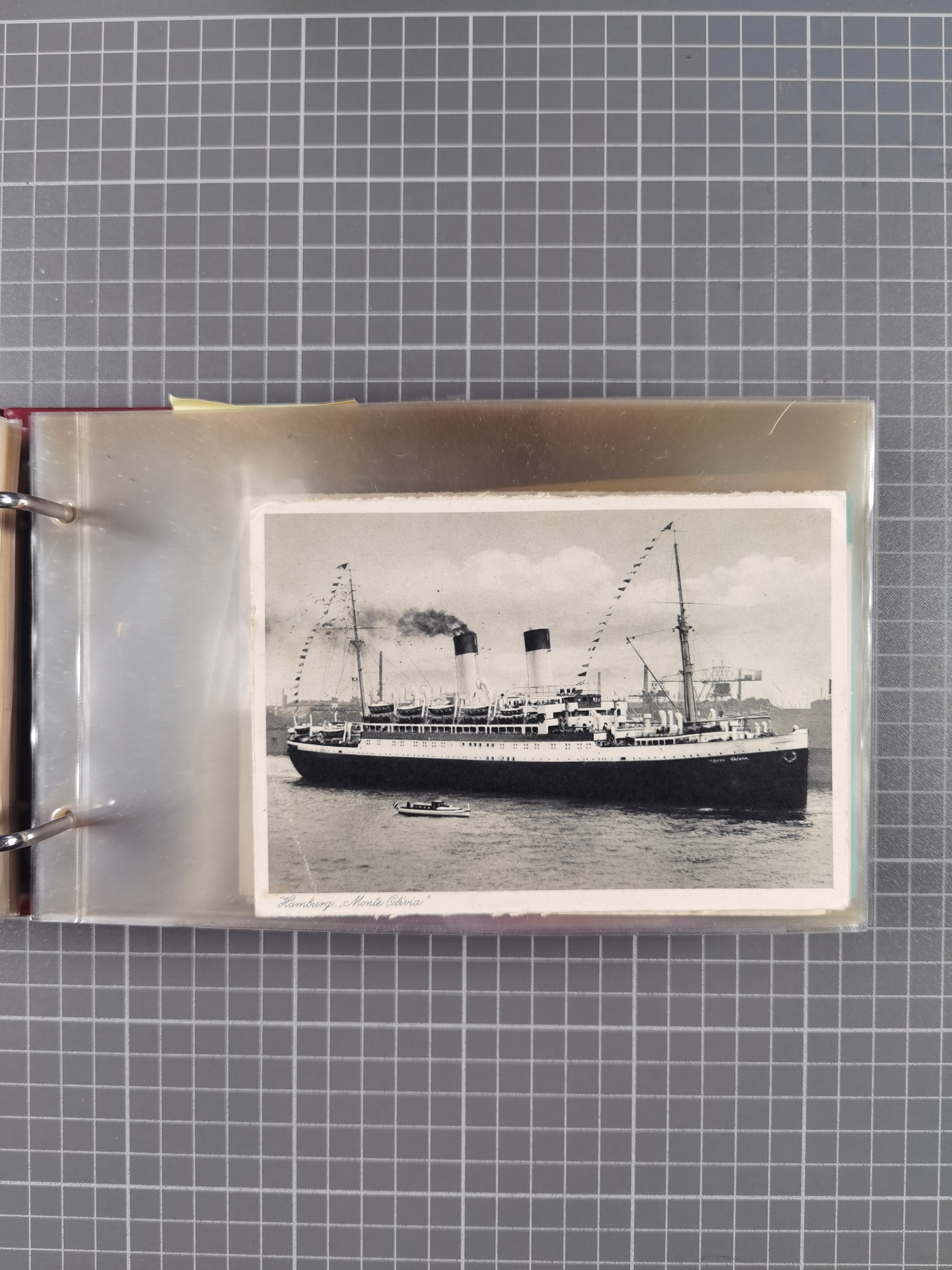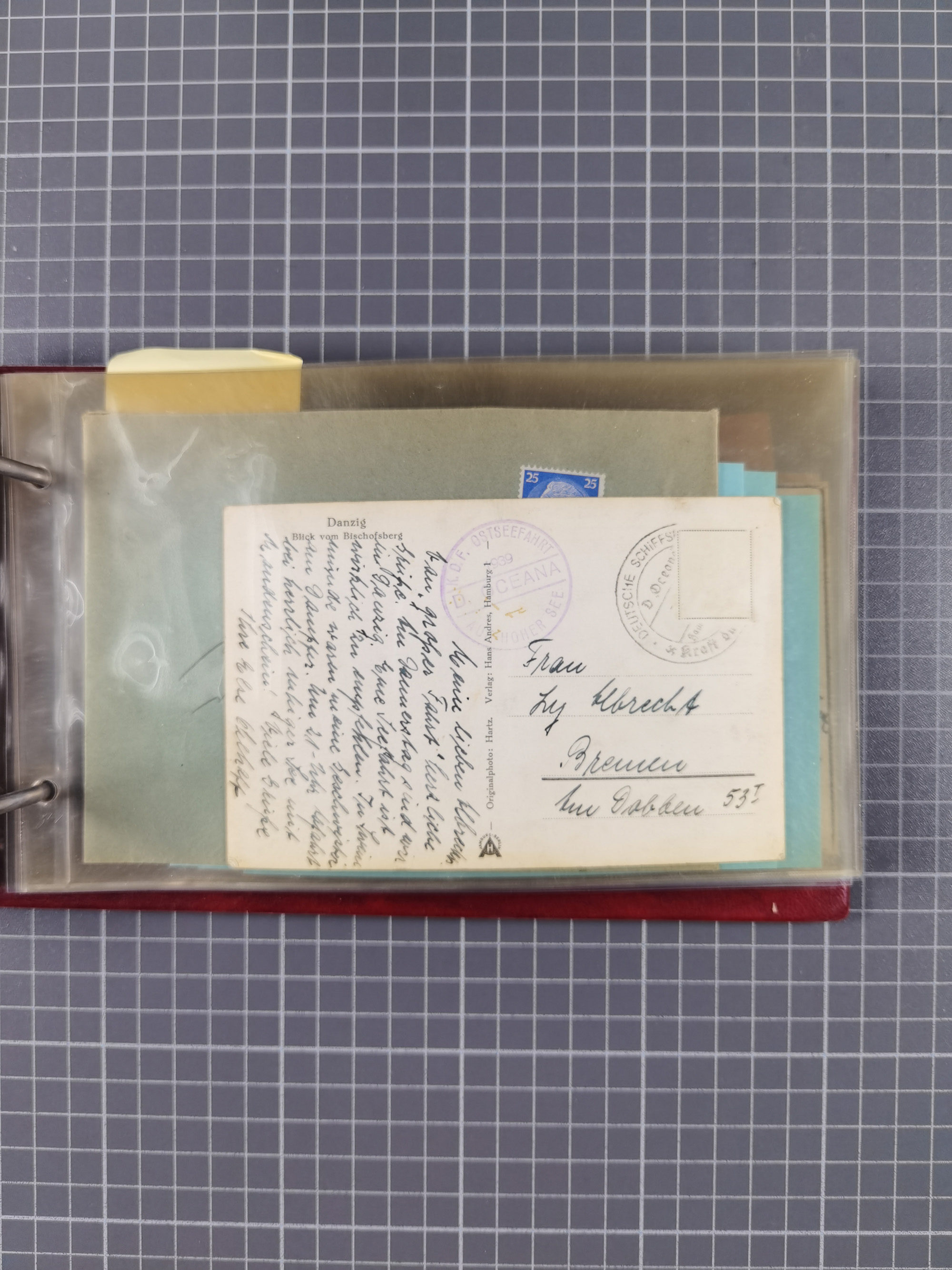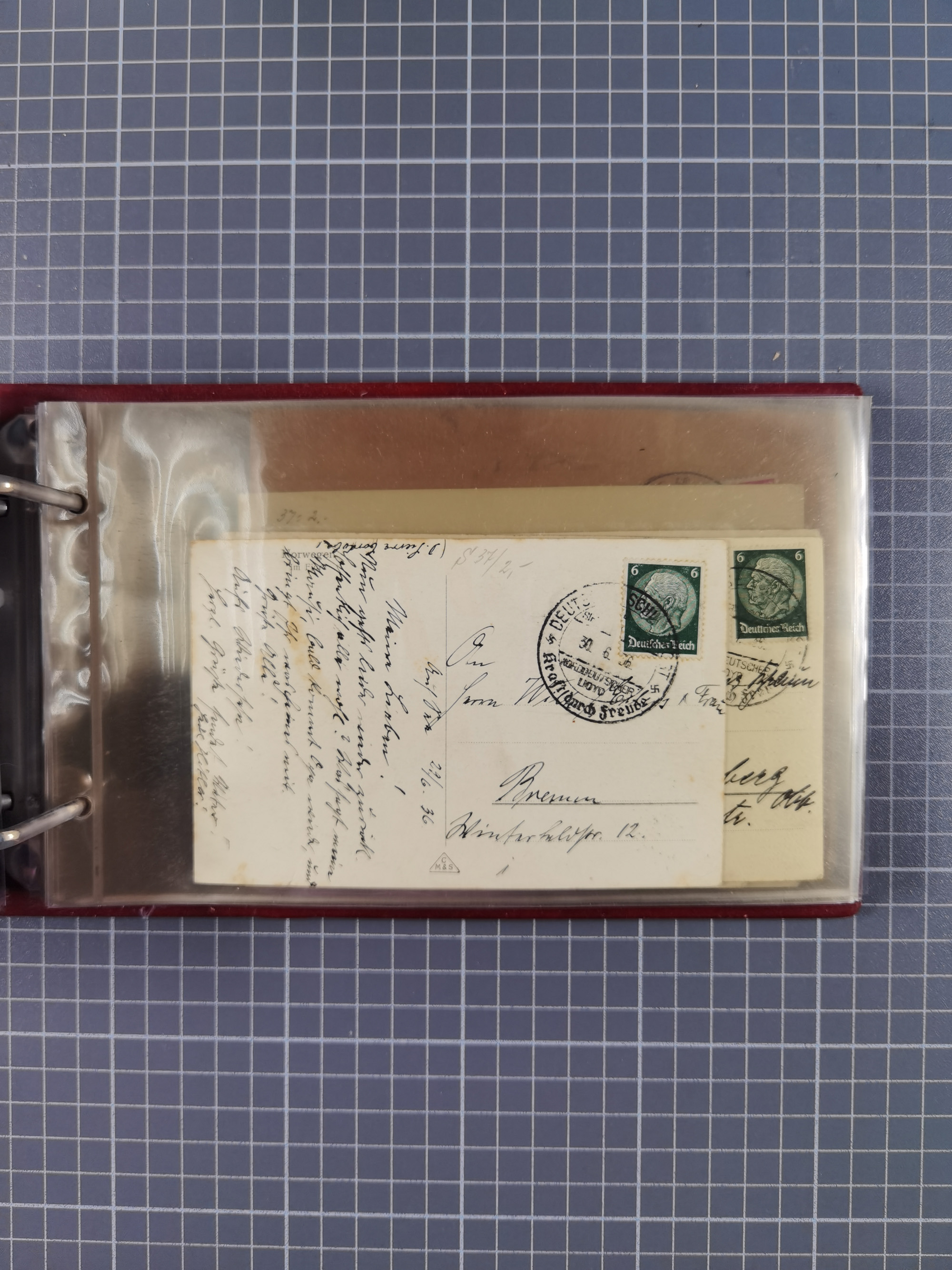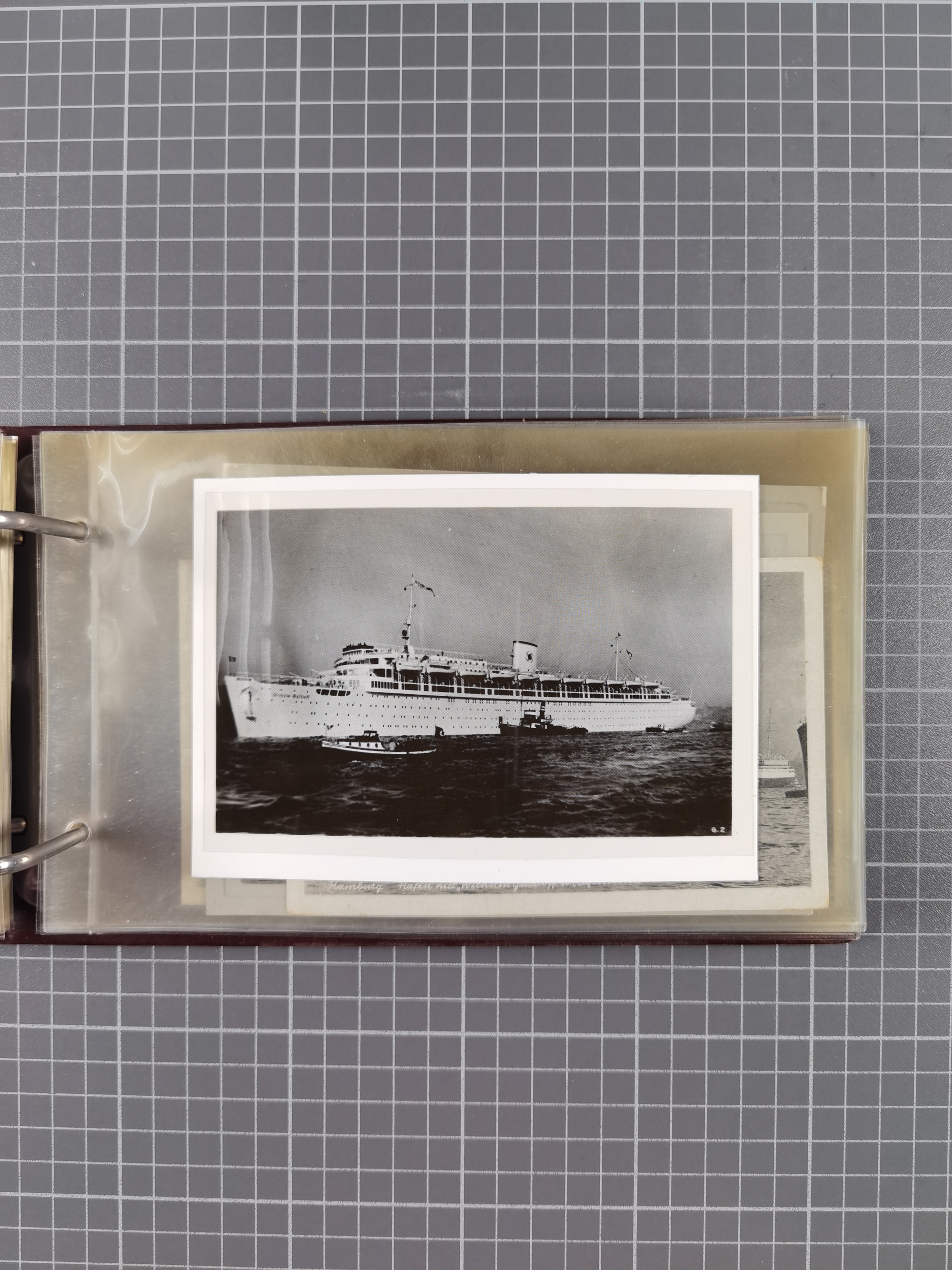 1934/39, Sammlung “Kraft durch Freude” mit ca. 240 Briefen, Karten und GSK inkl. Stempel des "LLOYD BREMEN", dazu Fotos, Schiffsansichtskarten, Speisekarten usw., sauber in vier Alben, ex Steinmeyer
