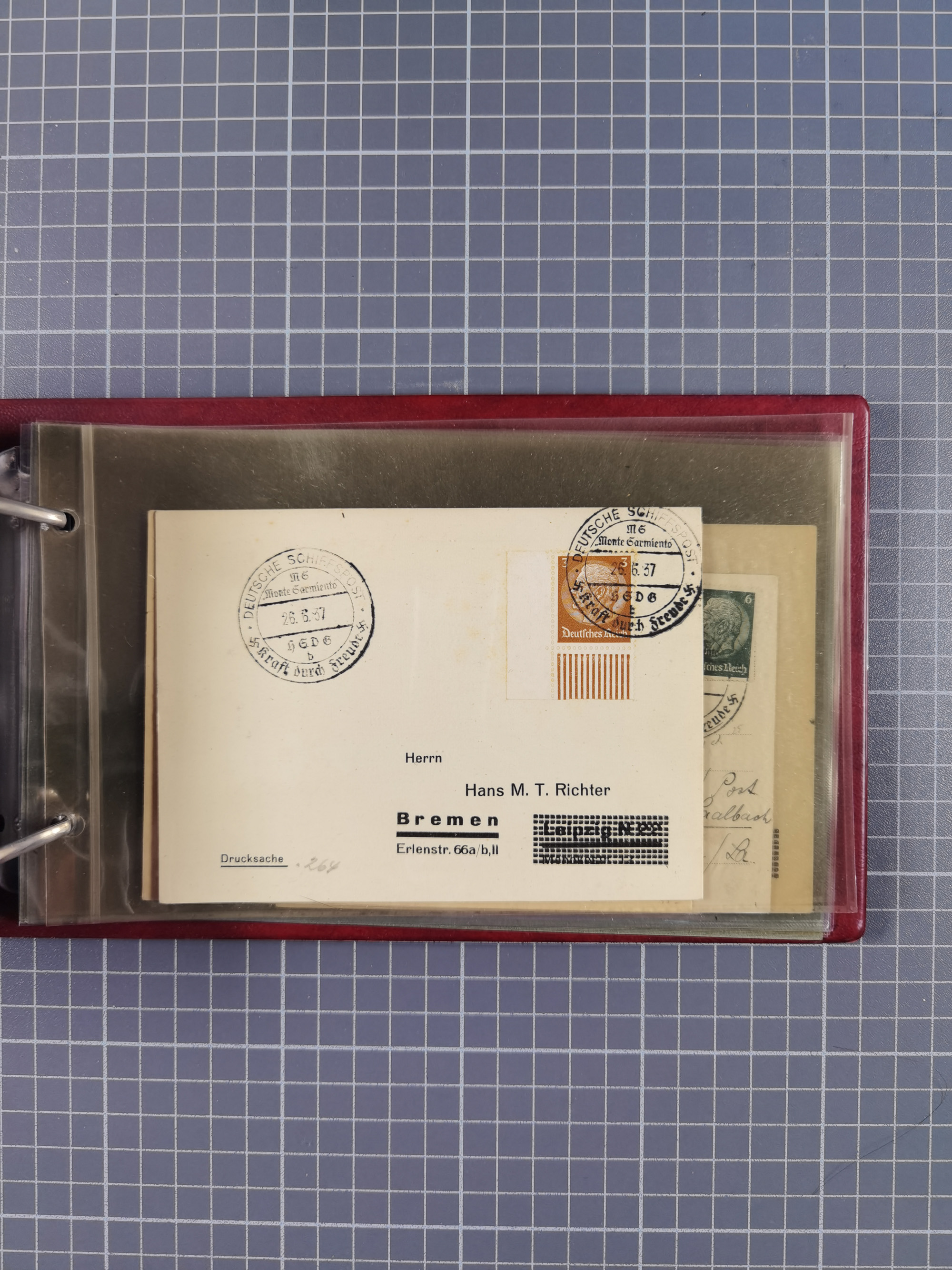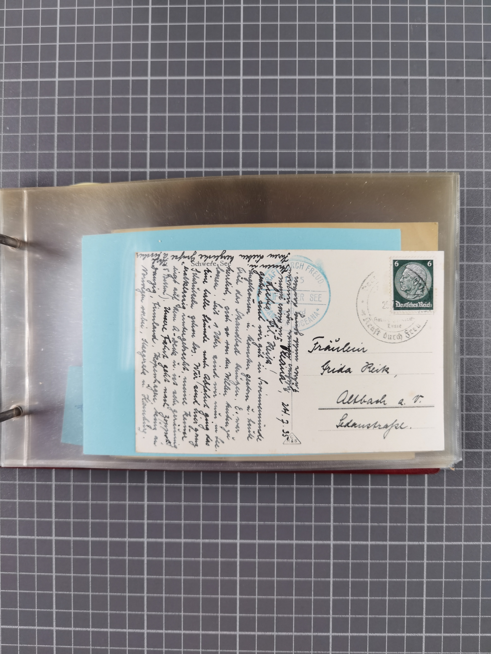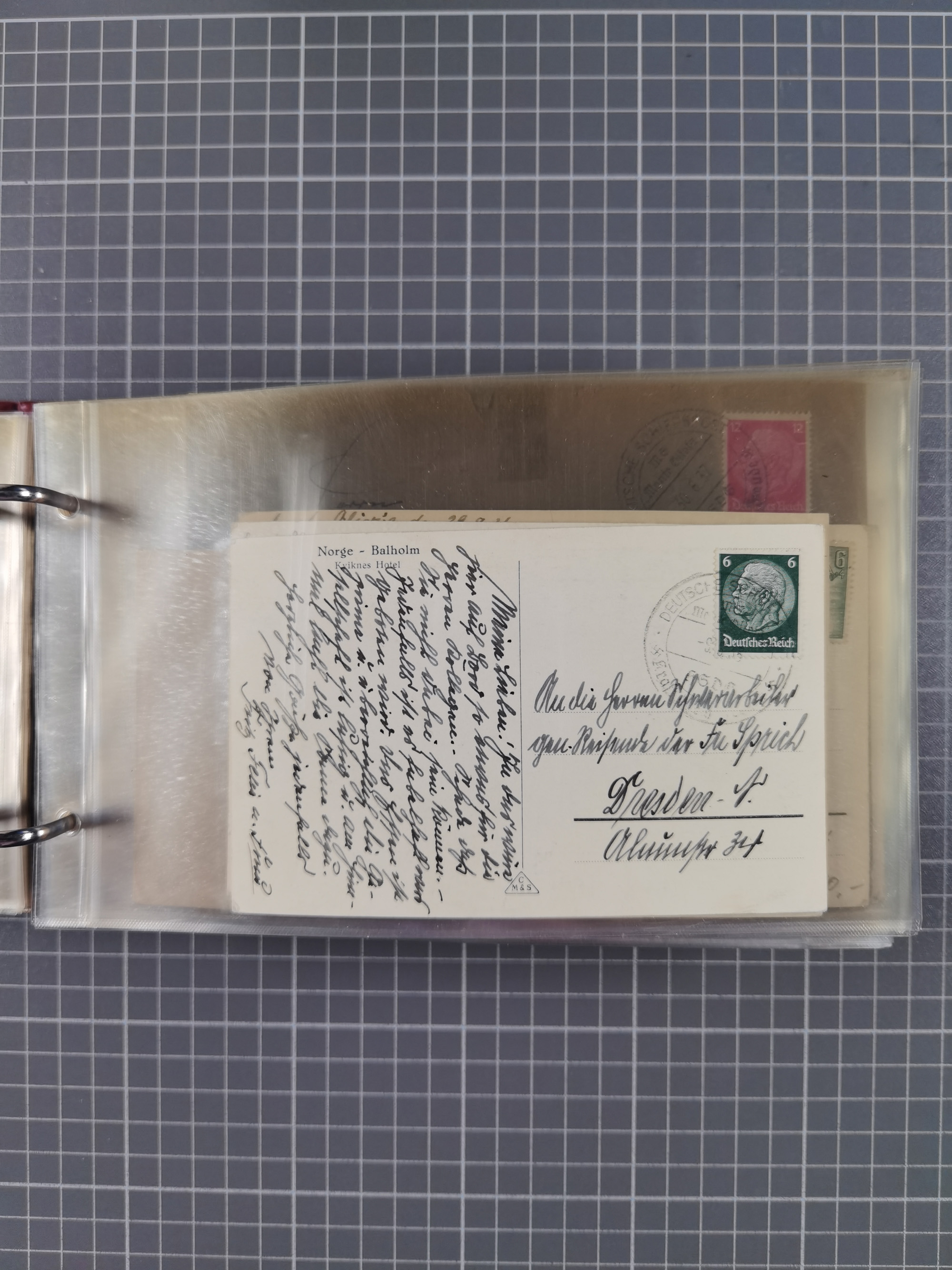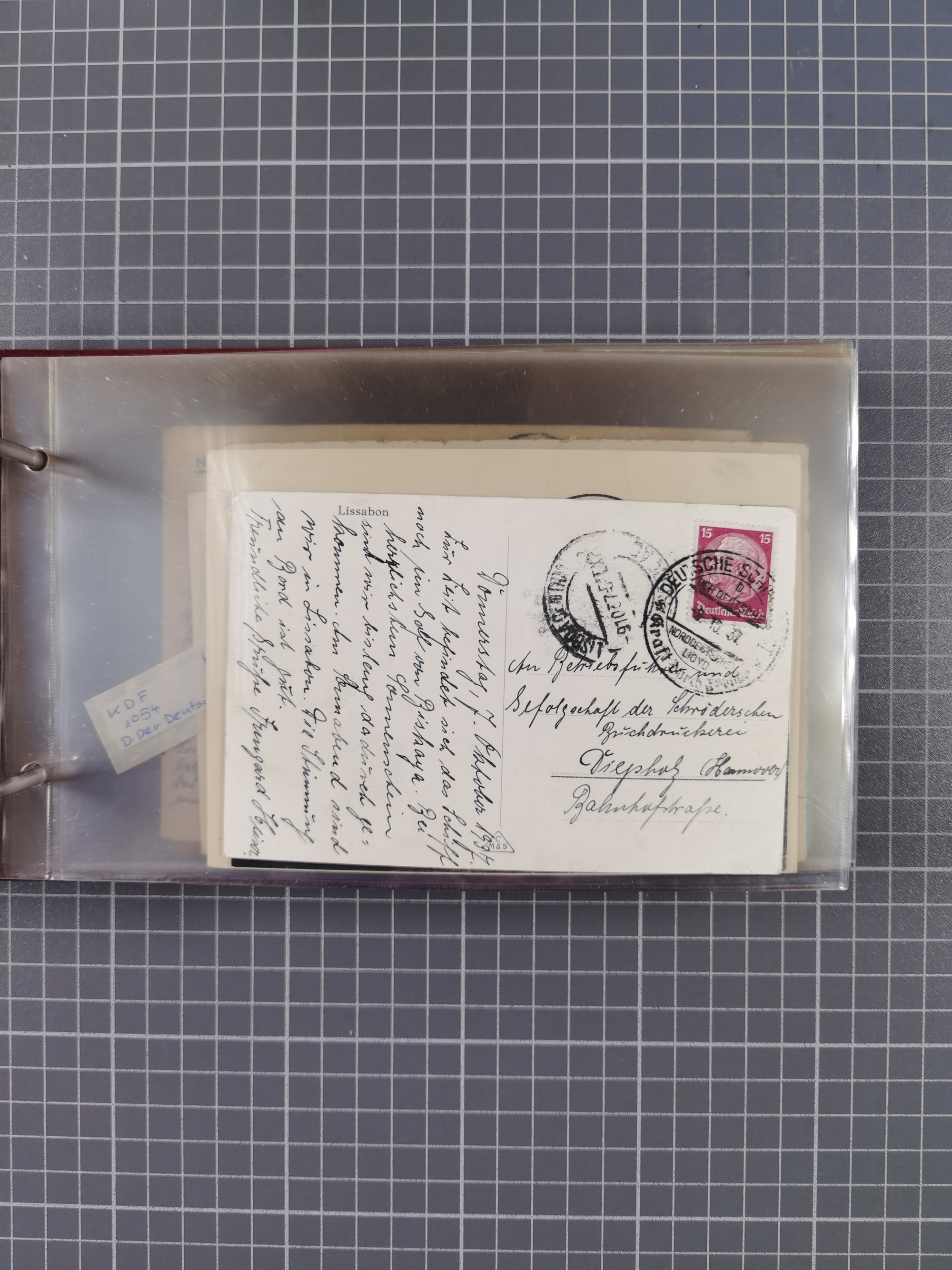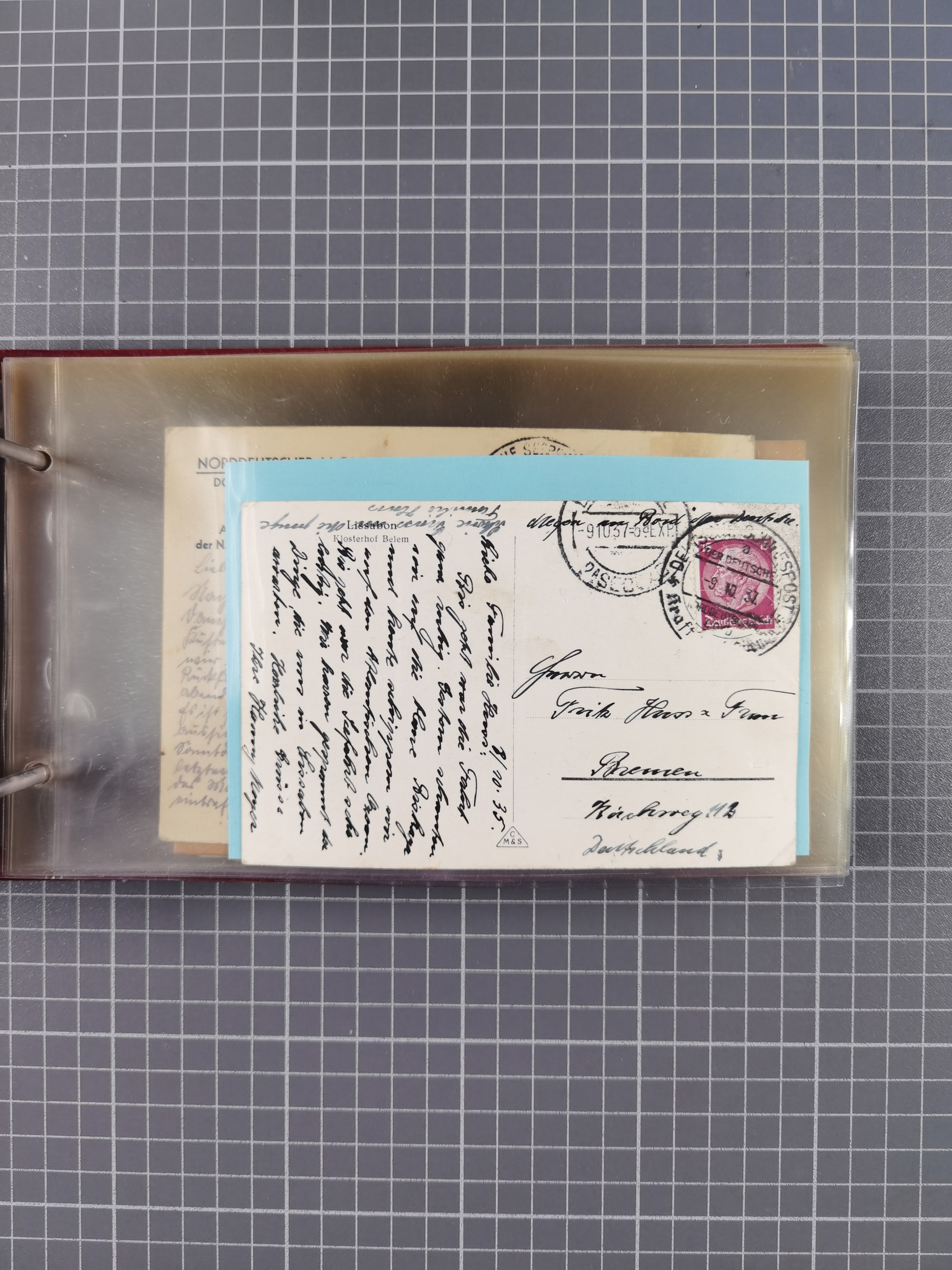 1934/39, Sammlung “Kraft durch Freude” mit ca. 240 Briefen, Karten und GSK inkl. Stempel des "LLOYD BREMEN", dazu Fotos, Schiffsansichtskarten, Speisekarten usw., sauber in vier Alben, ex Steinmeyer