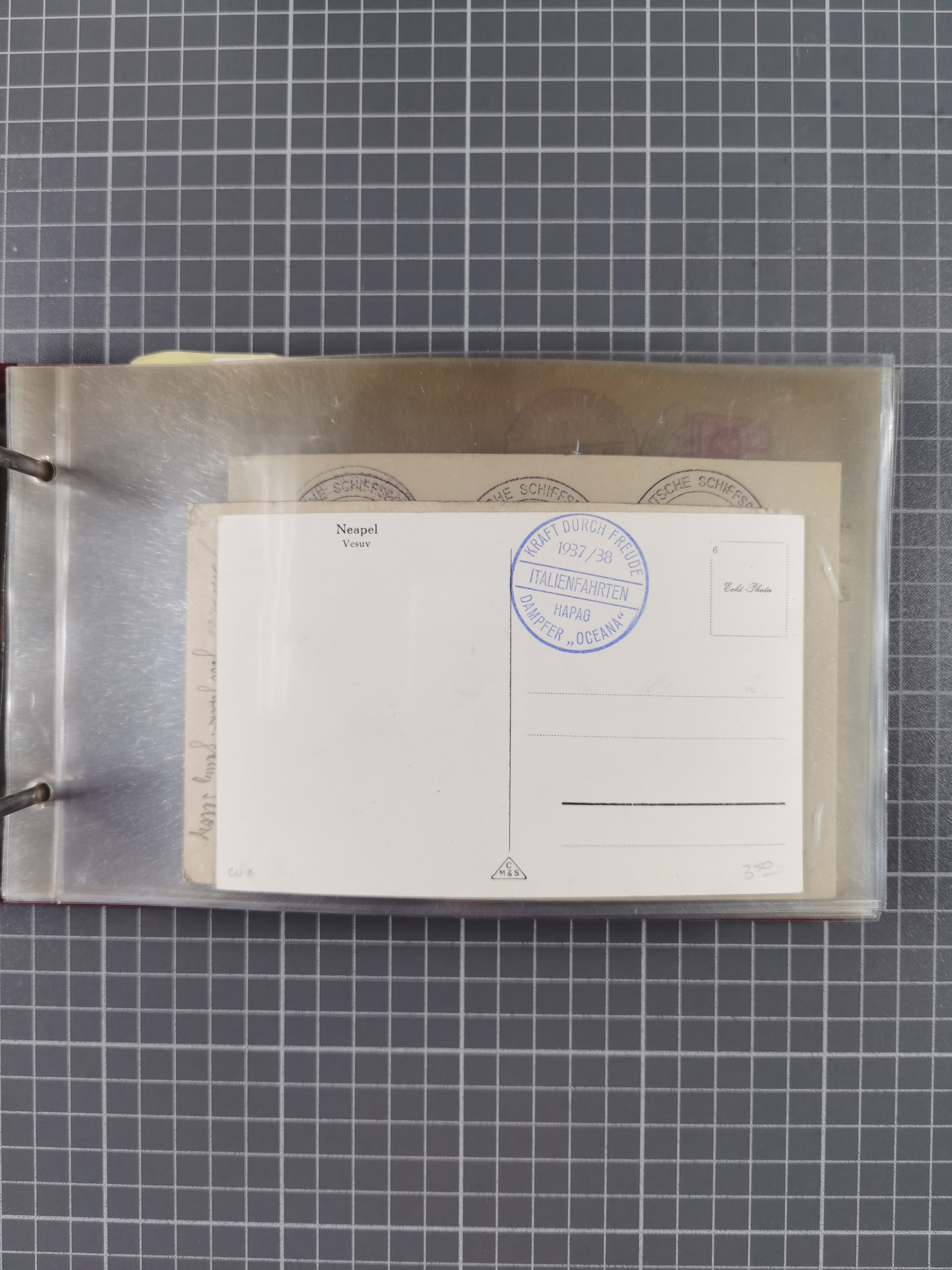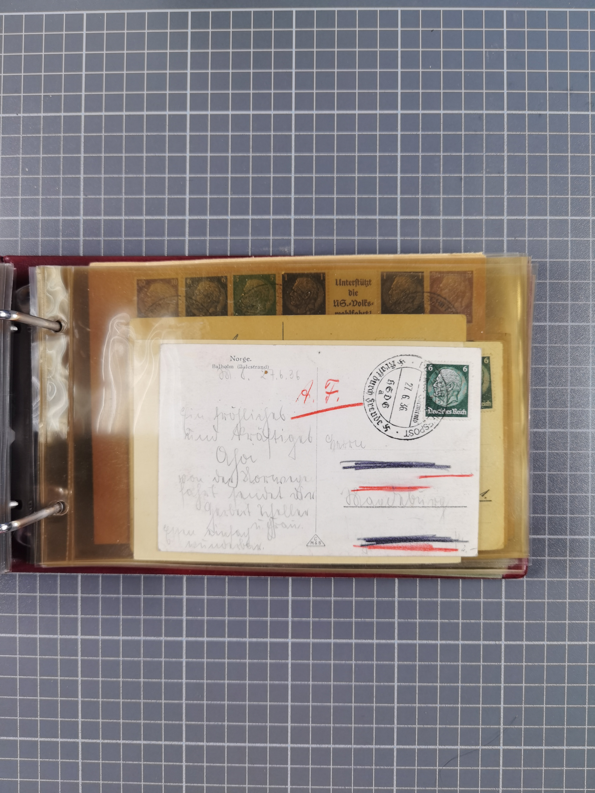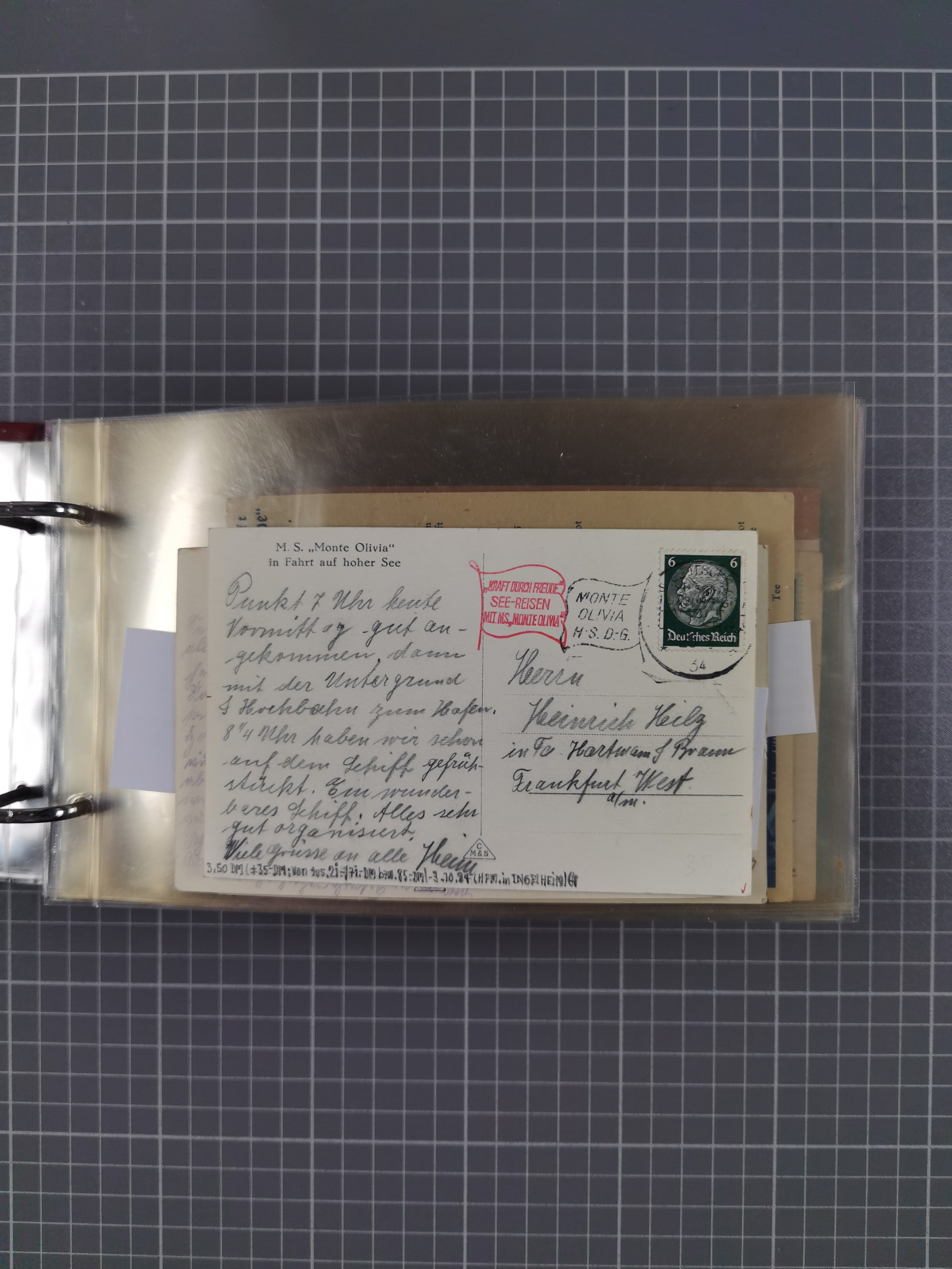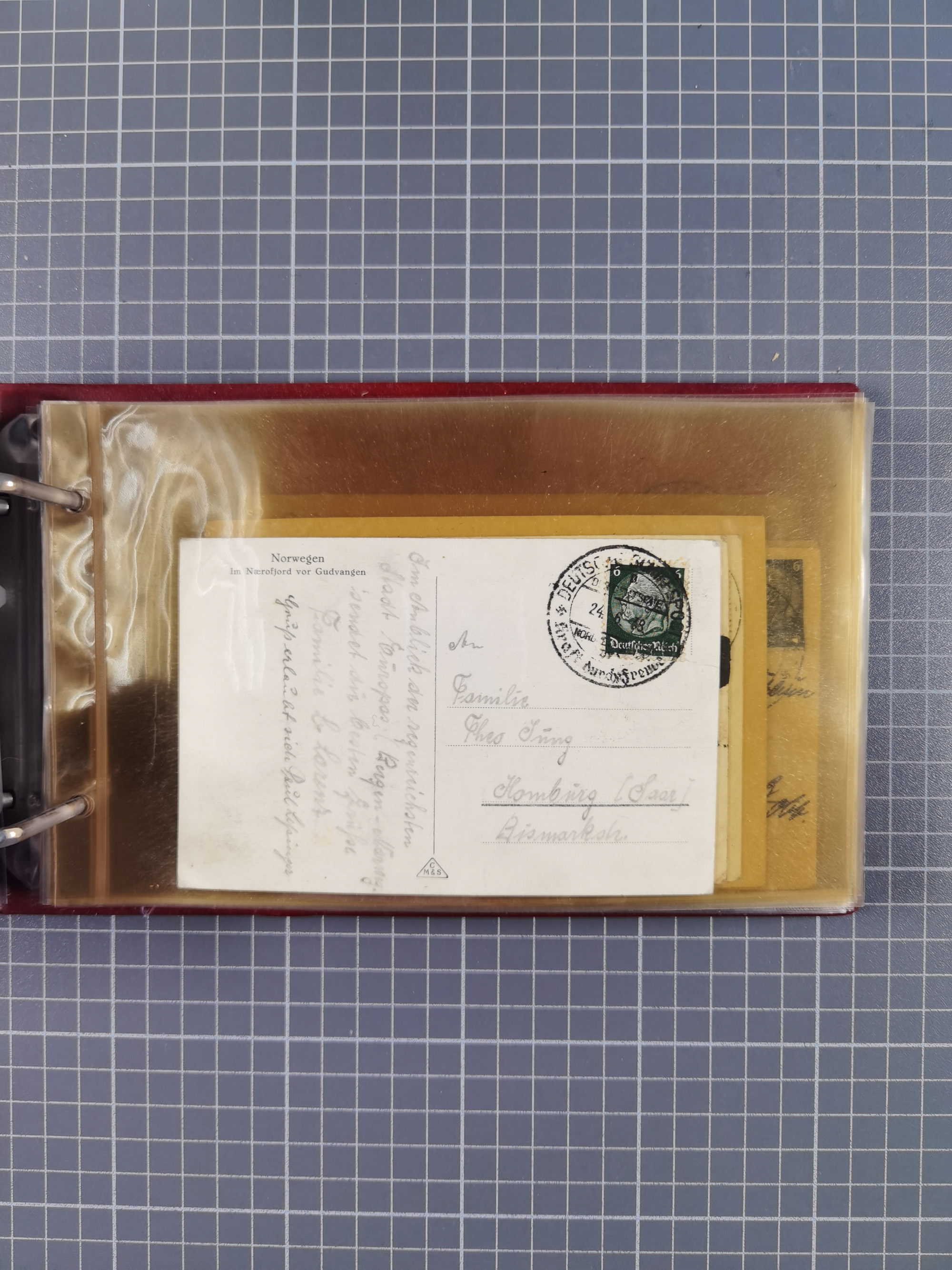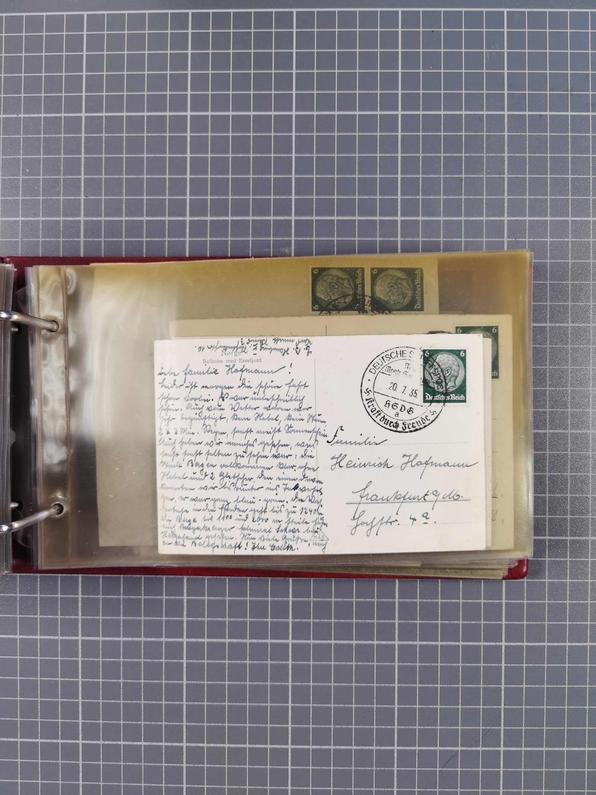 1934/39, Sammlung “Kraft durch Freude” mit ca. 240 Briefen, Karten und GSK inkl. Stempel des "LLOYD BREMEN", dazu Fotos, Schiffsansichtskarten, Speisekarten usw., sauber in vier Alben, ex Steinmeyer