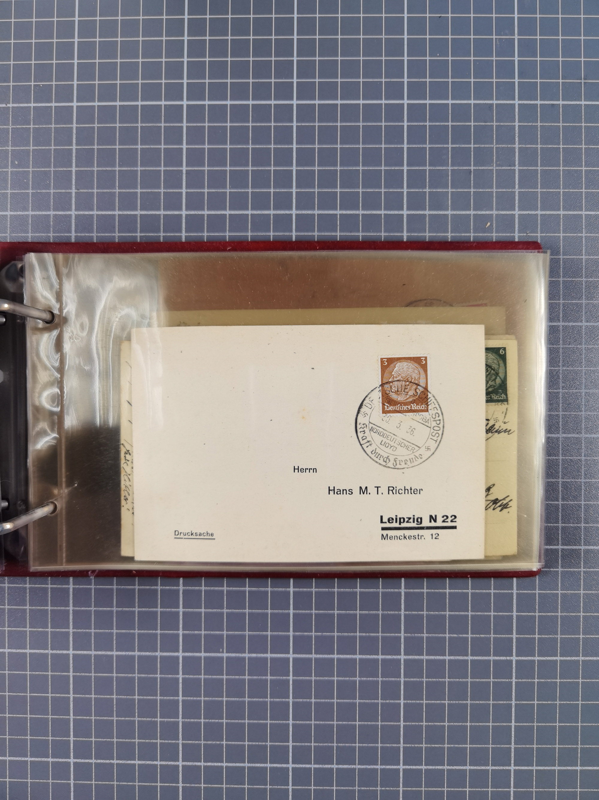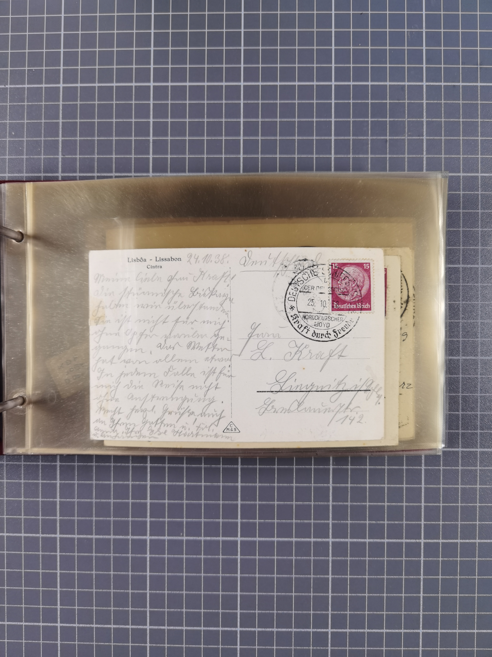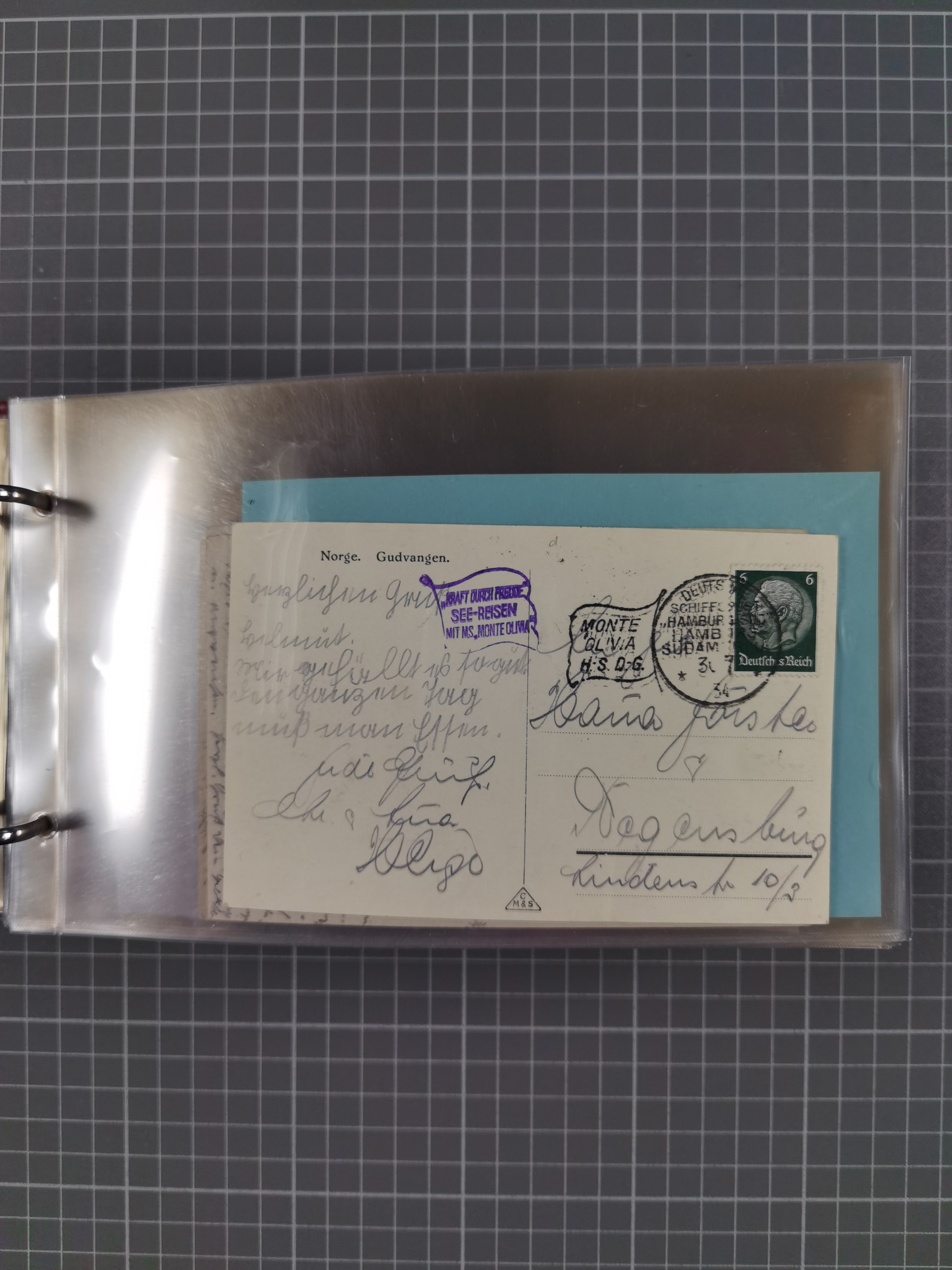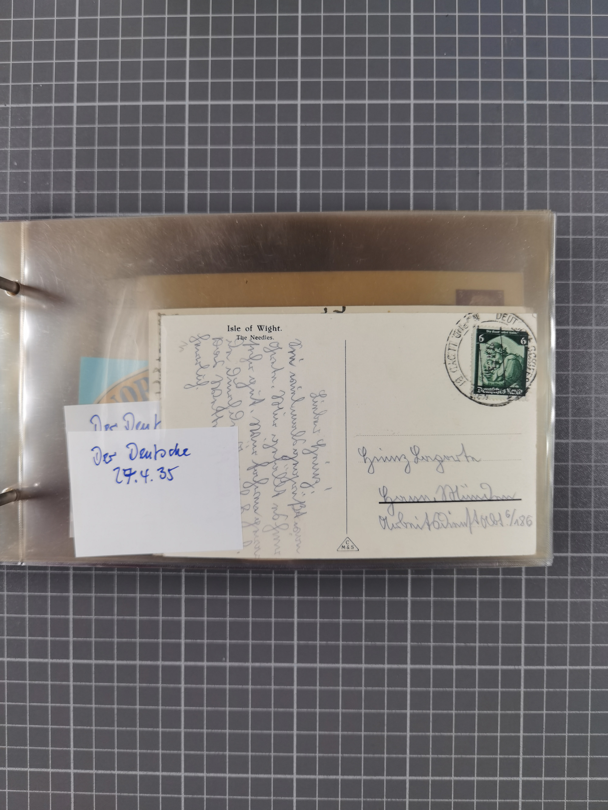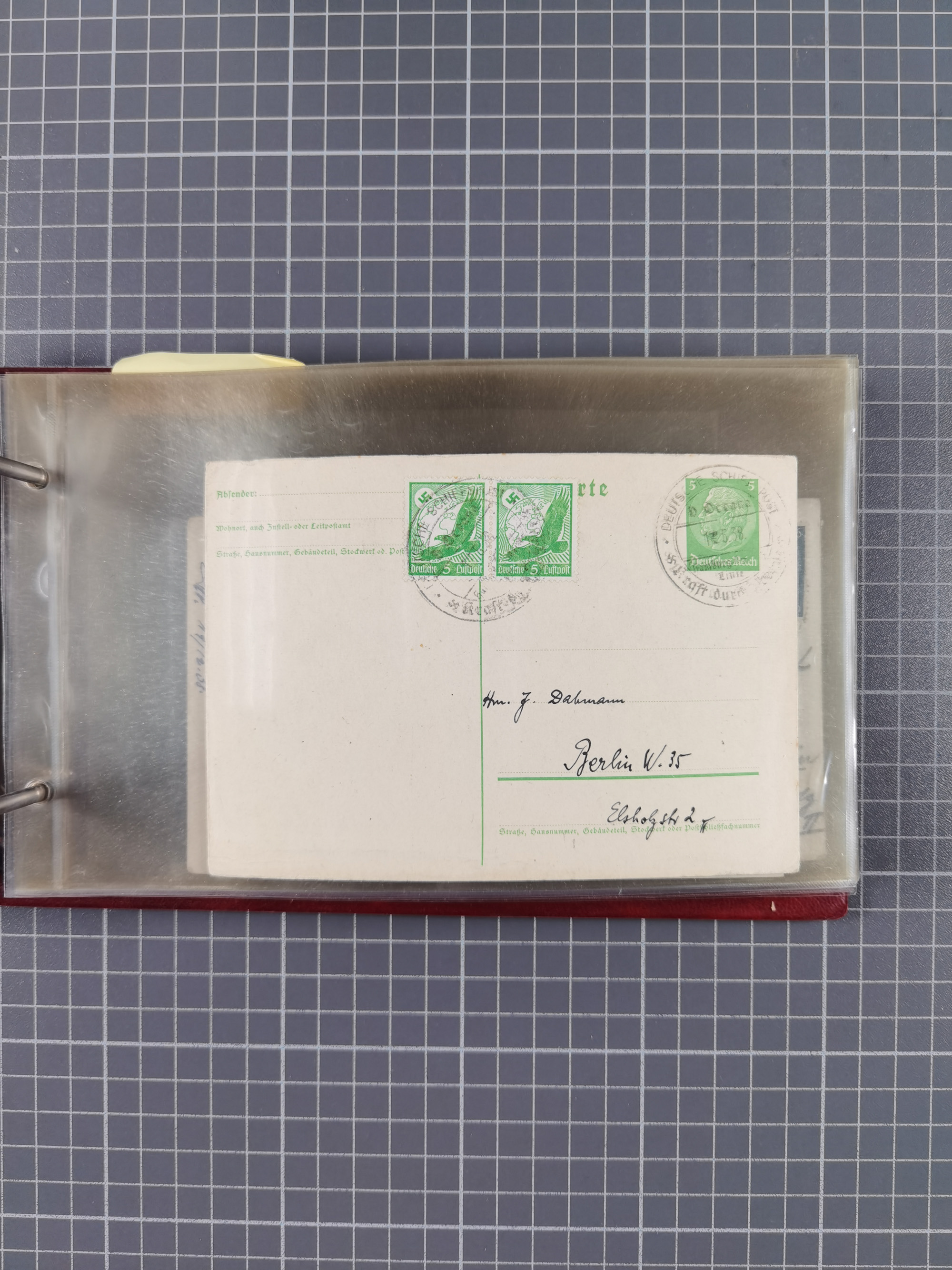 1934/39, Sammlung “Kraft durch Freude” mit ca. 240 Briefen, Karten und GSK inkl. Stempel des "LLOYD BREMEN", dazu Fotos, Schiffsansichtskarten, Speisekarten usw., sauber in vier Alben, ex Steinmeyer