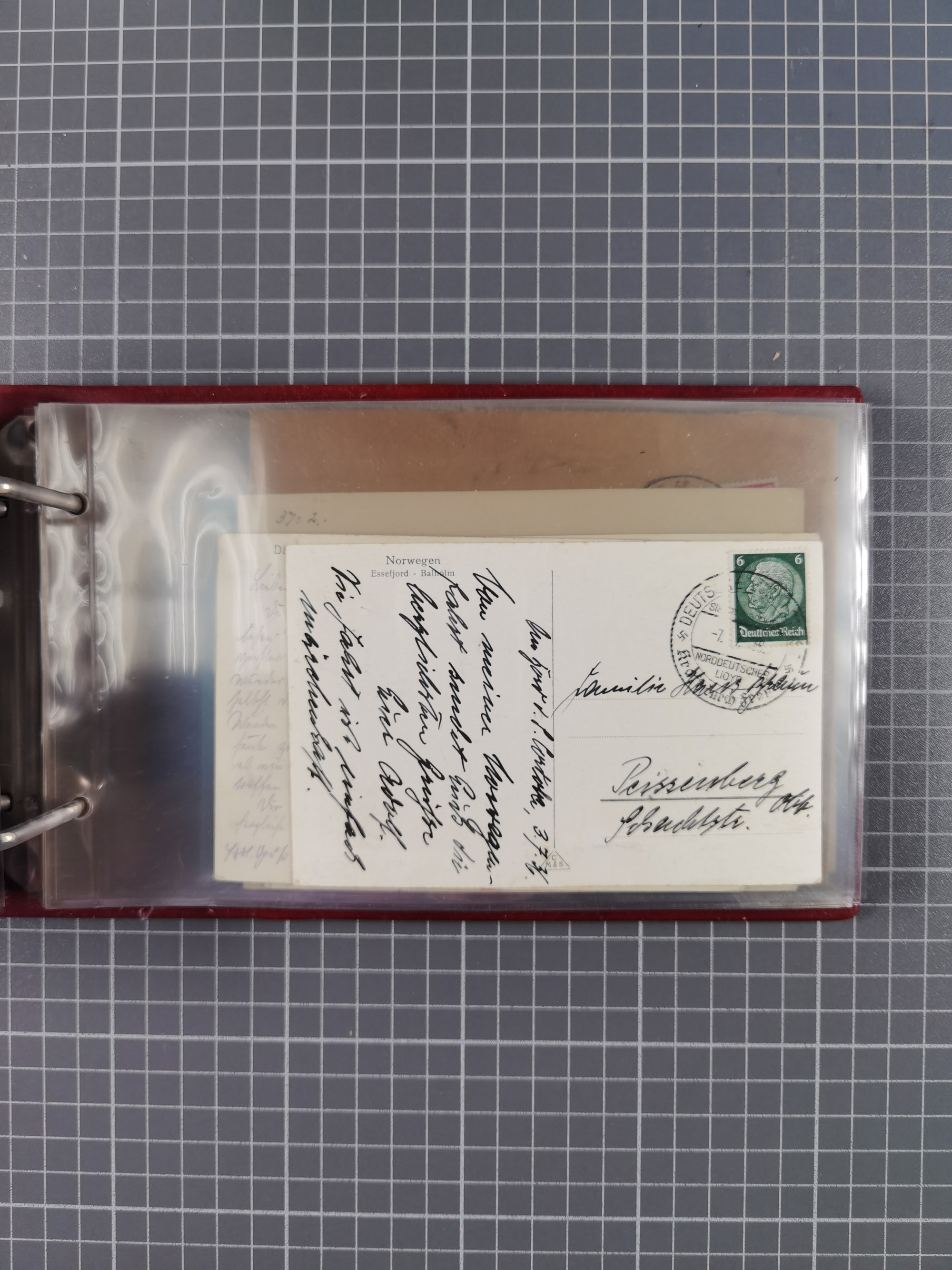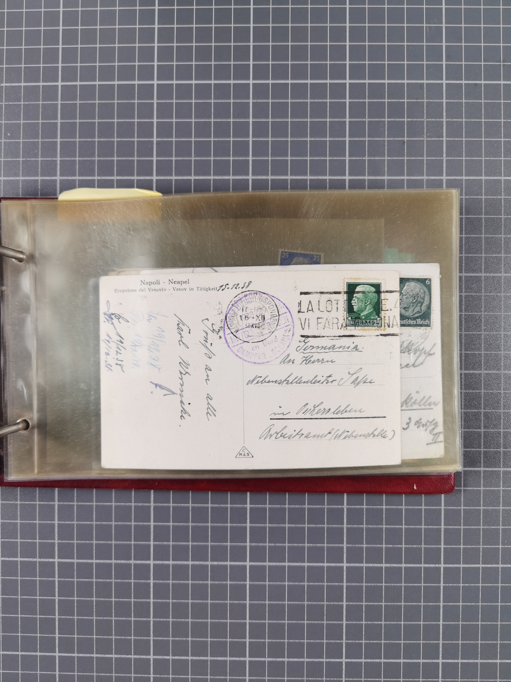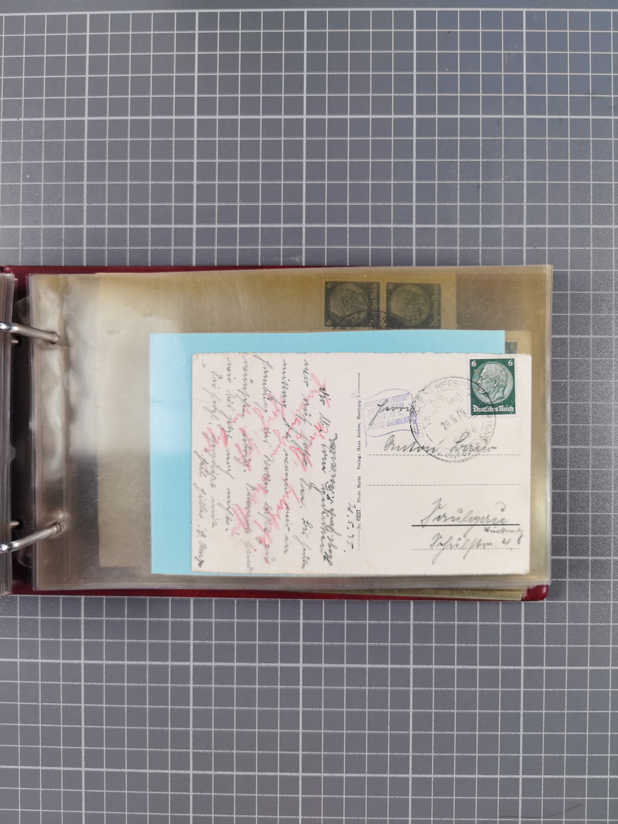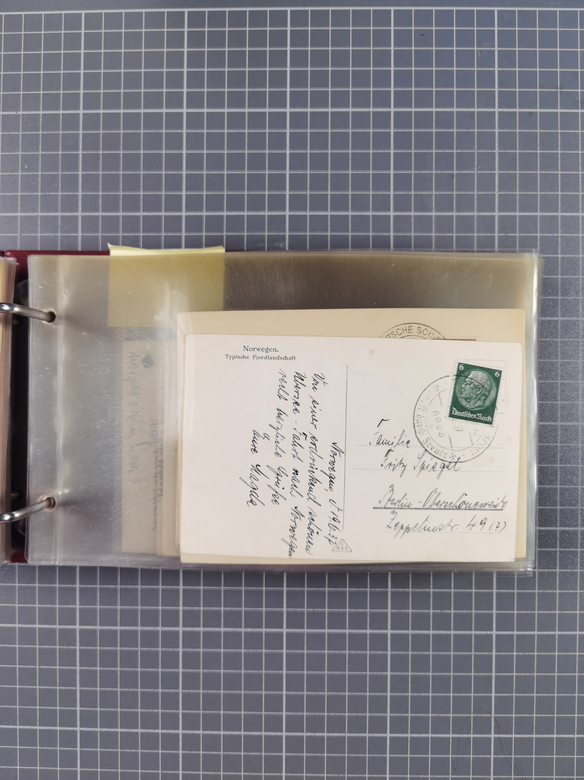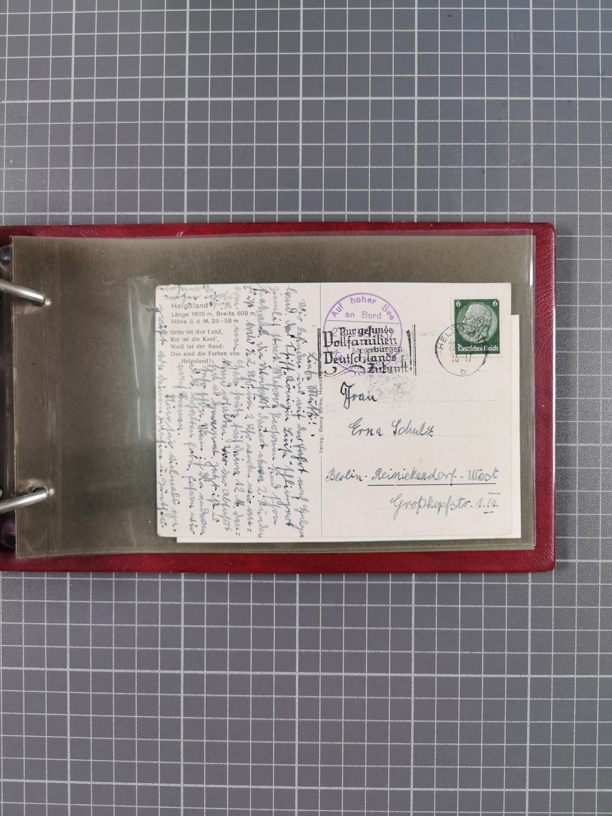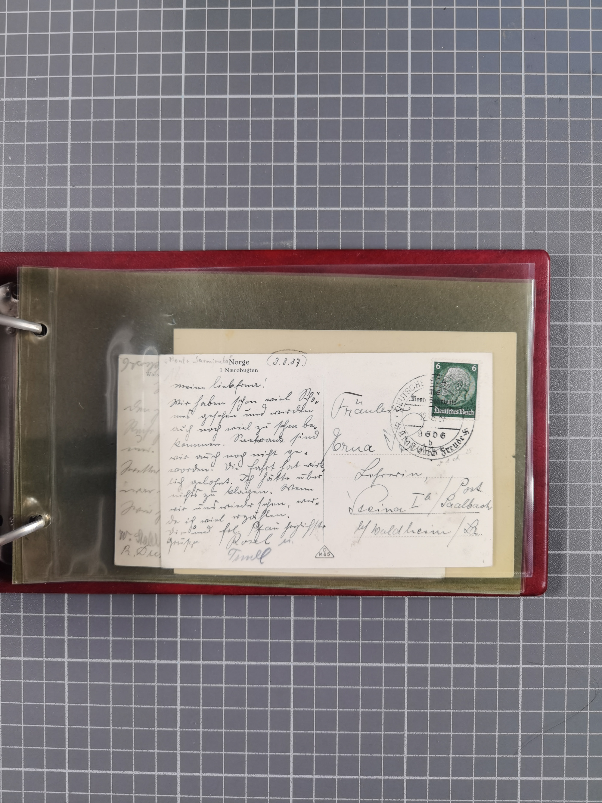 1934/39, Sammlung “Kraft durch Freude” mit ca. 240 Briefen, Karten und GSK inkl. Stempel des "LLOYD BREMEN", dazu Fotos, Schiffsansichtskarten, Speisekarten usw., sauber in vier Alben, ex Steinmeyer