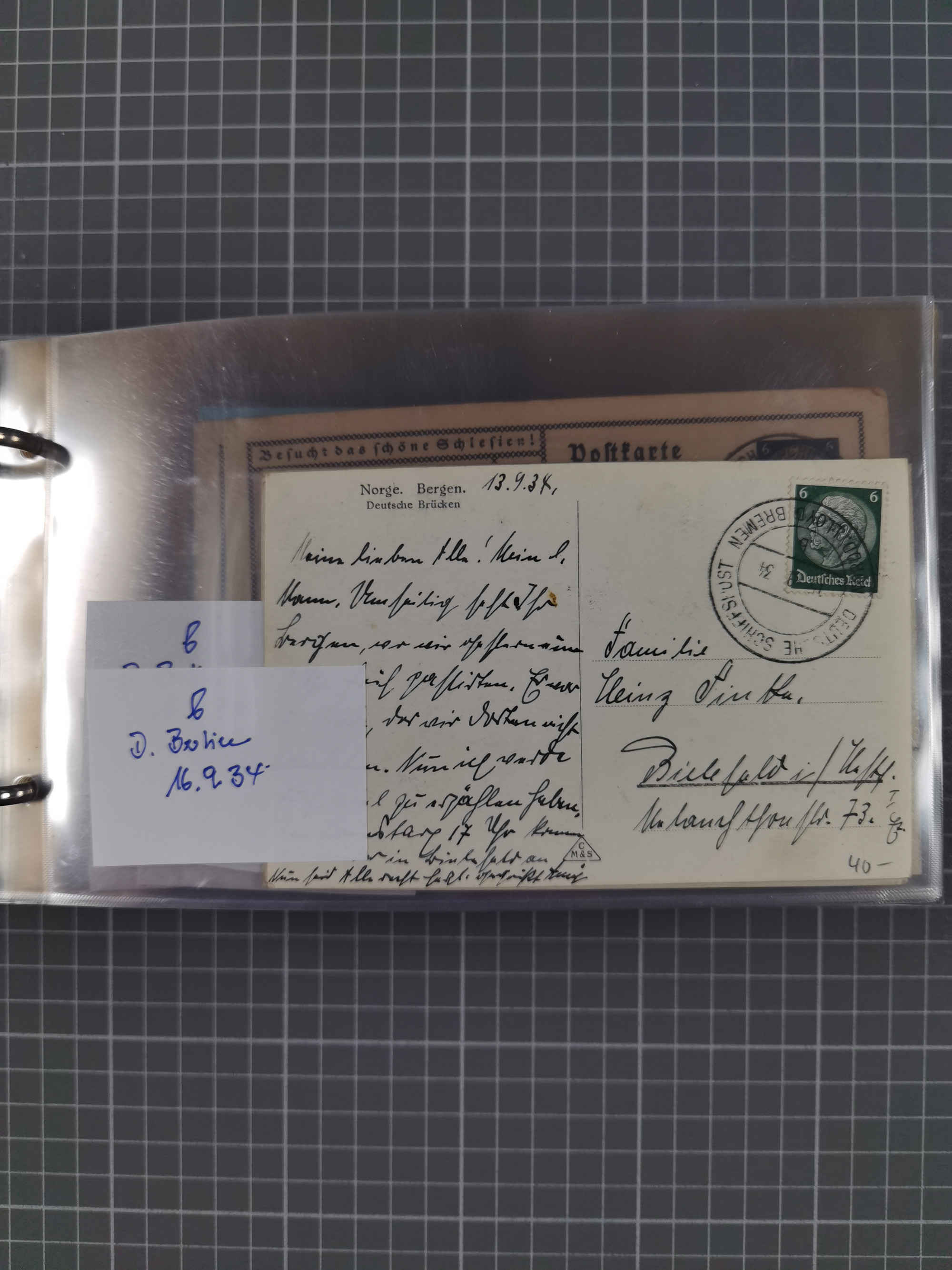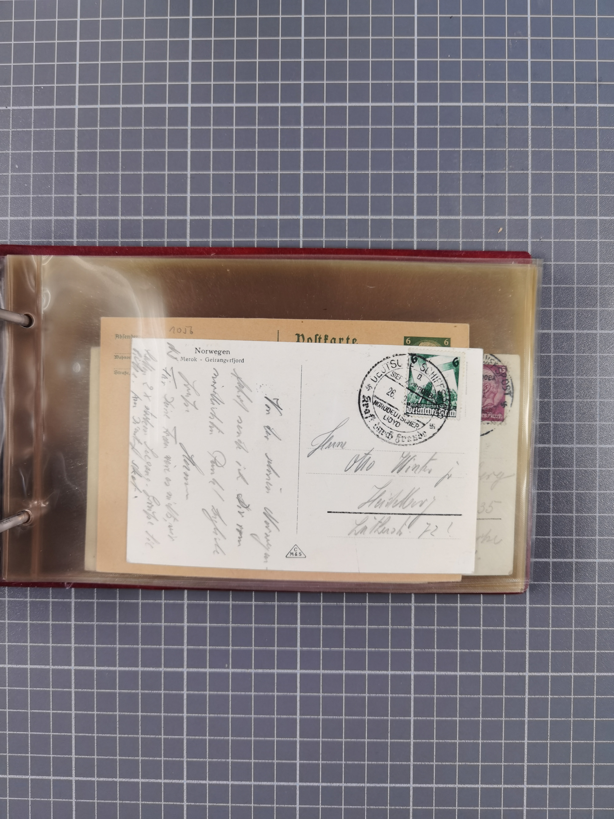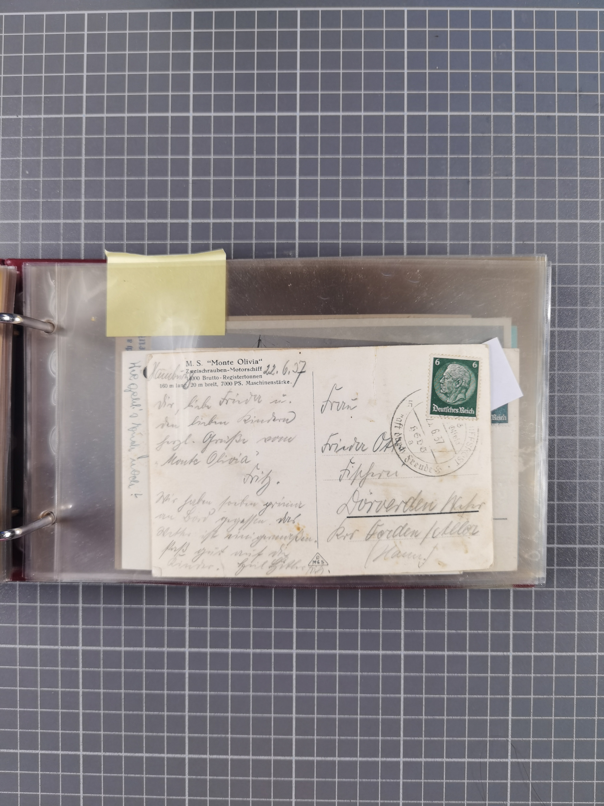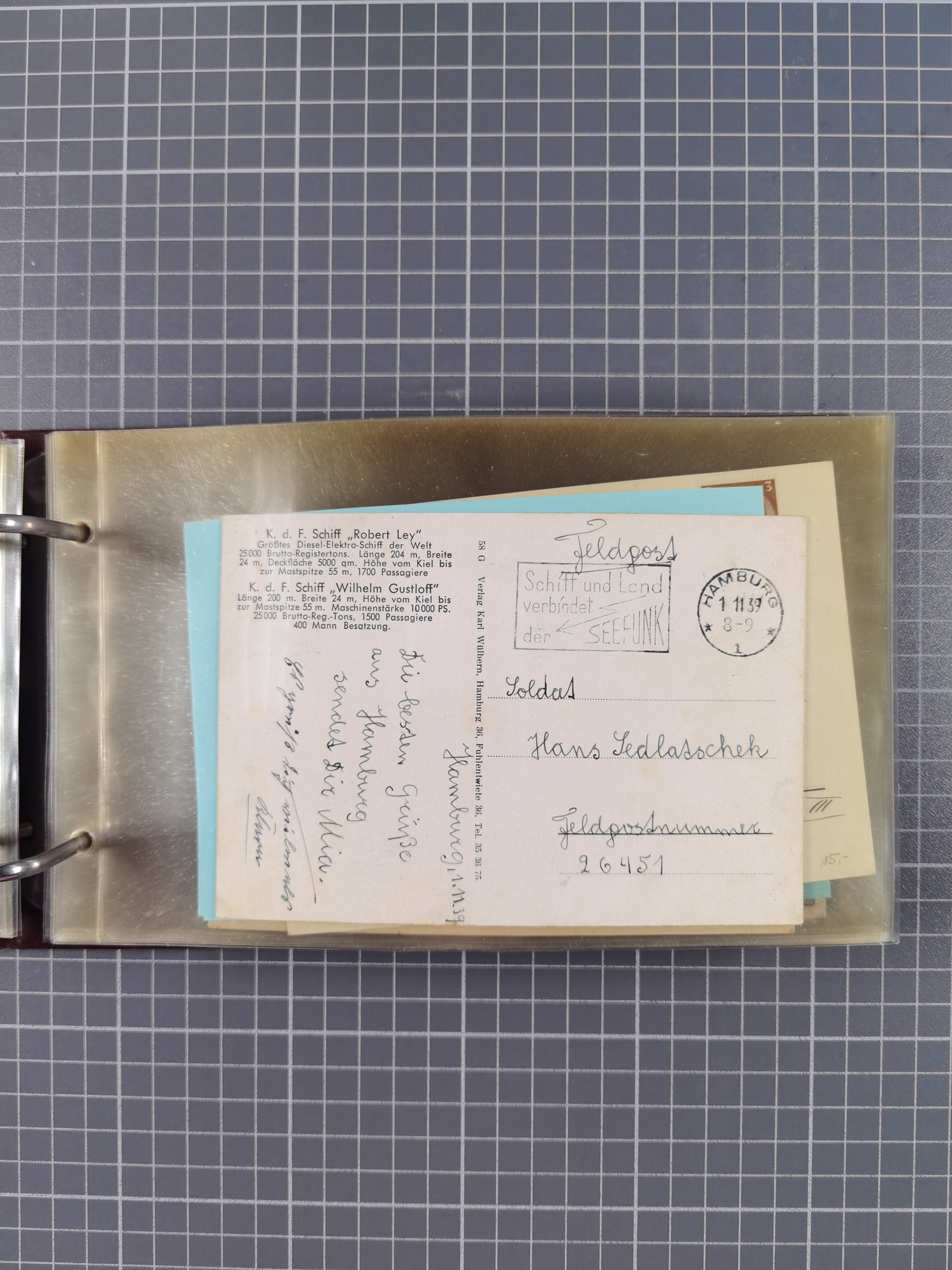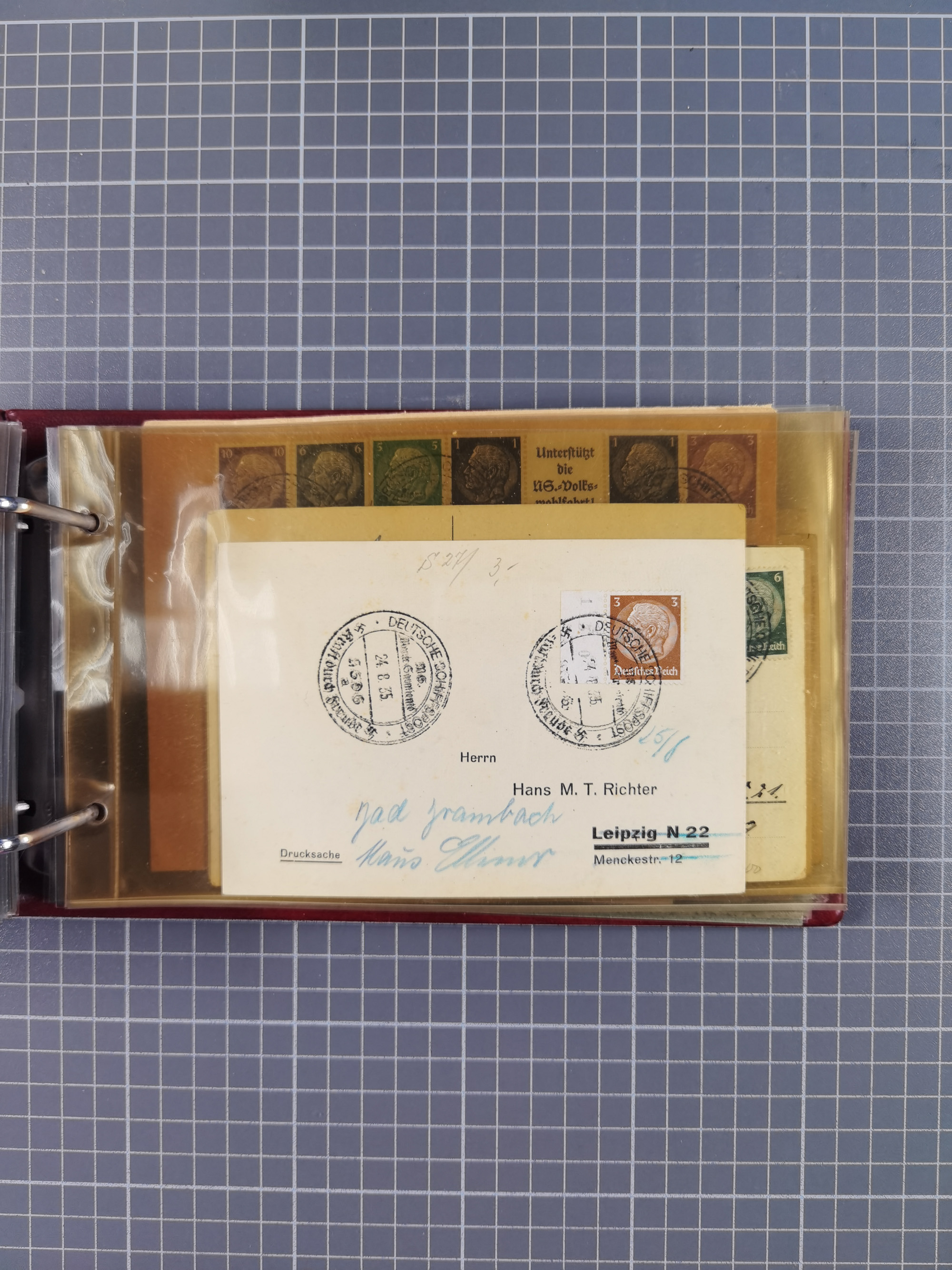 1934/39, Sammlung “Kraft durch Freude” mit ca. 240 Briefen, Karten und GSK inkl. Stempel des "LLOYD BREMEN", dazu Fotos, Schiffsansichtskarten, Speisekarten usw., sauber in vier Alben, ex Steinmeyer