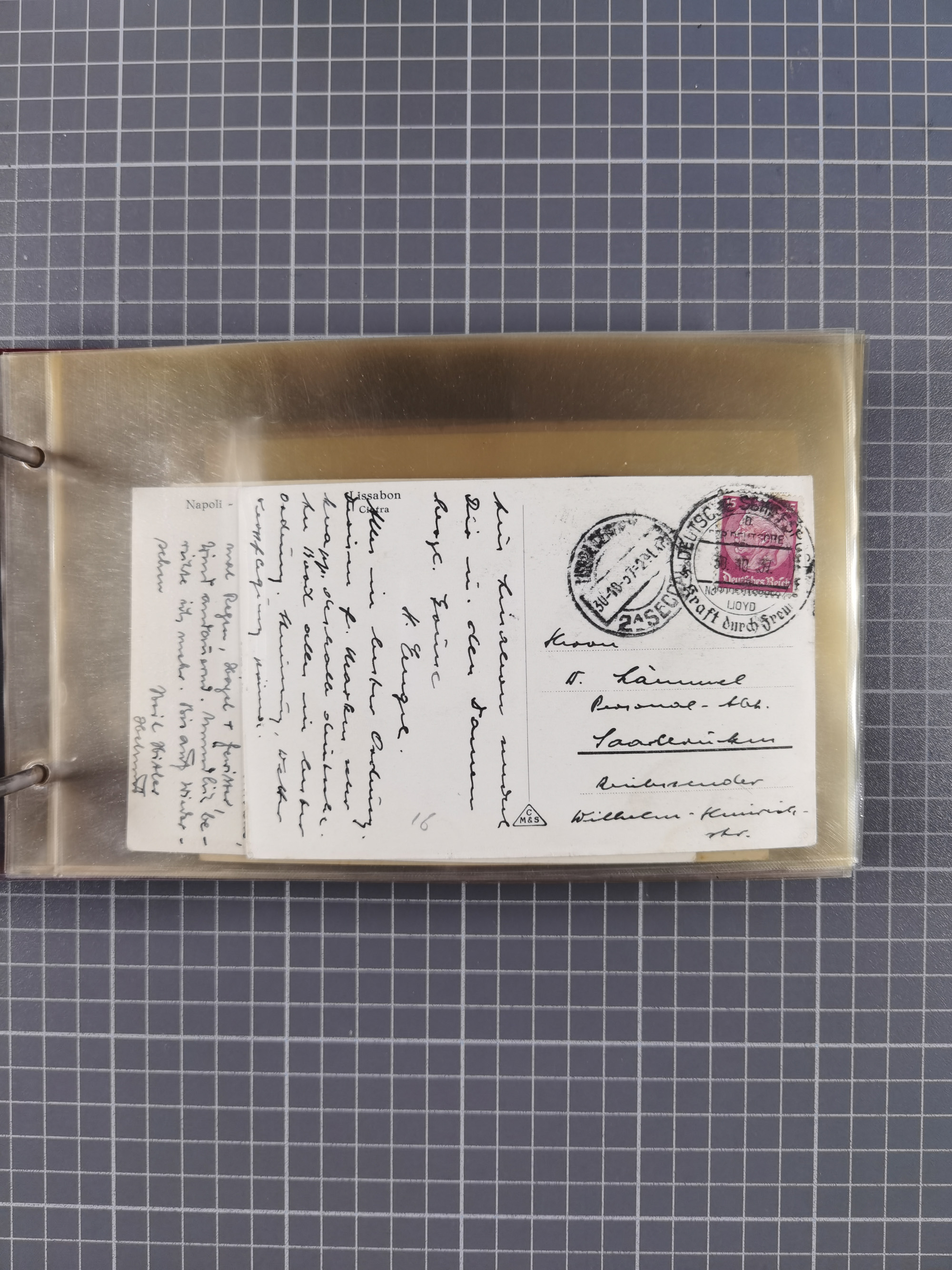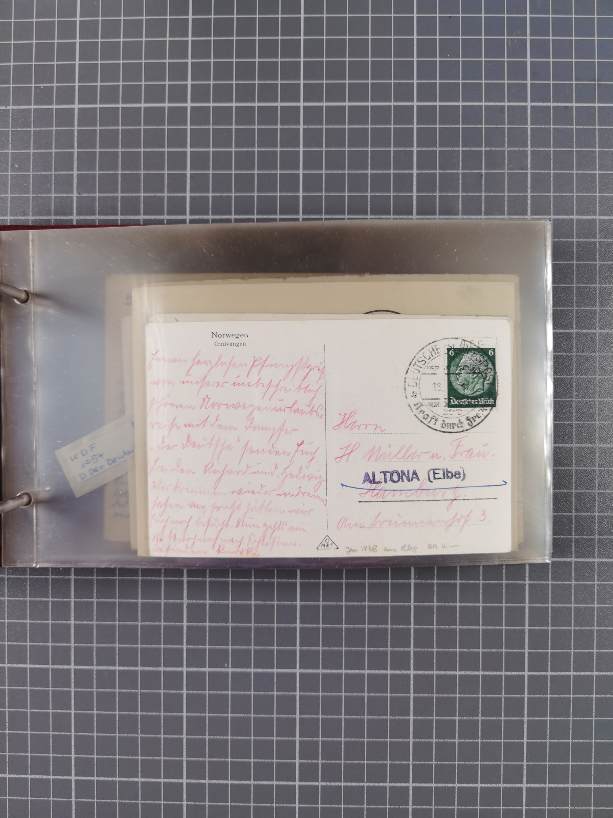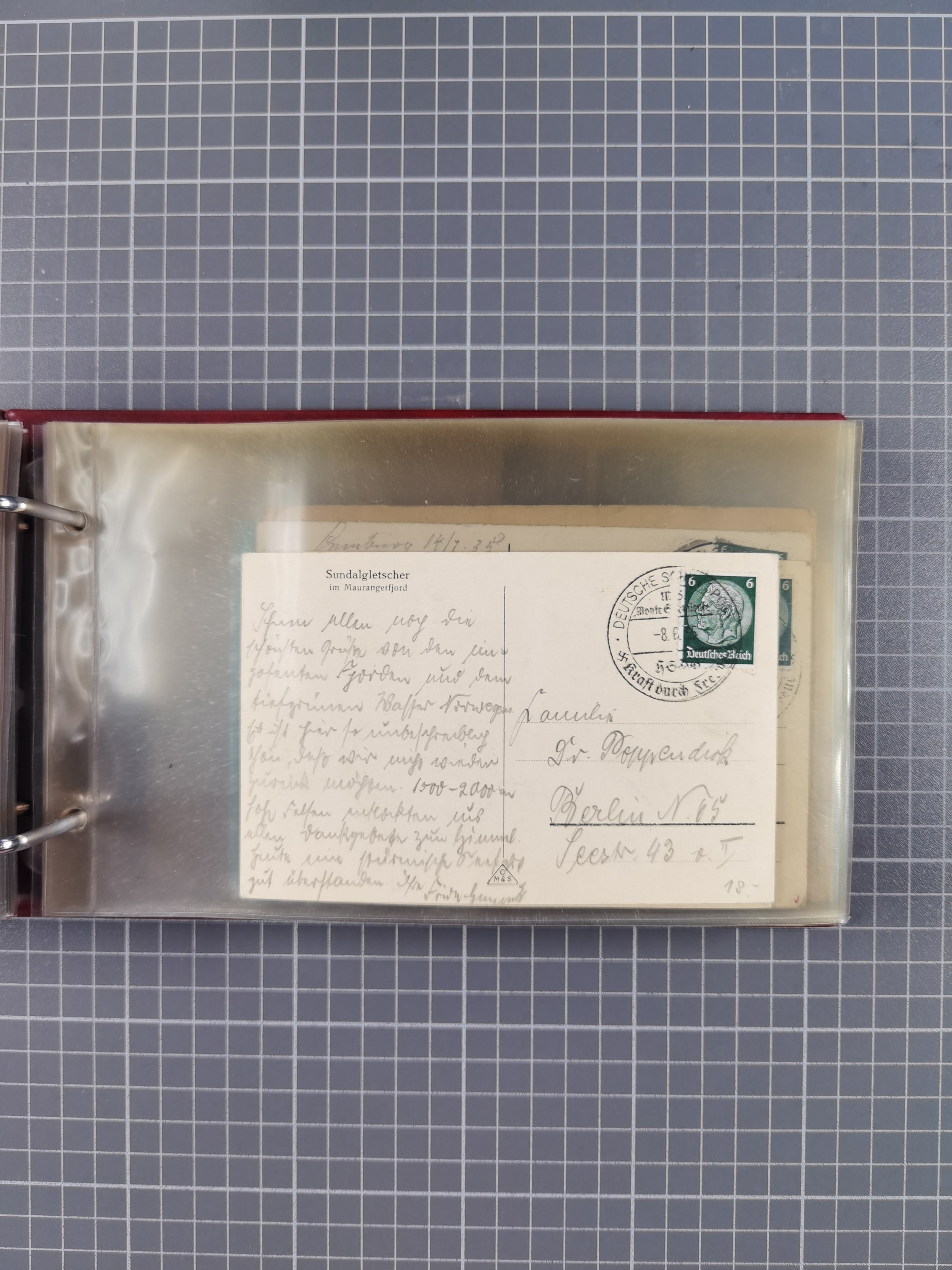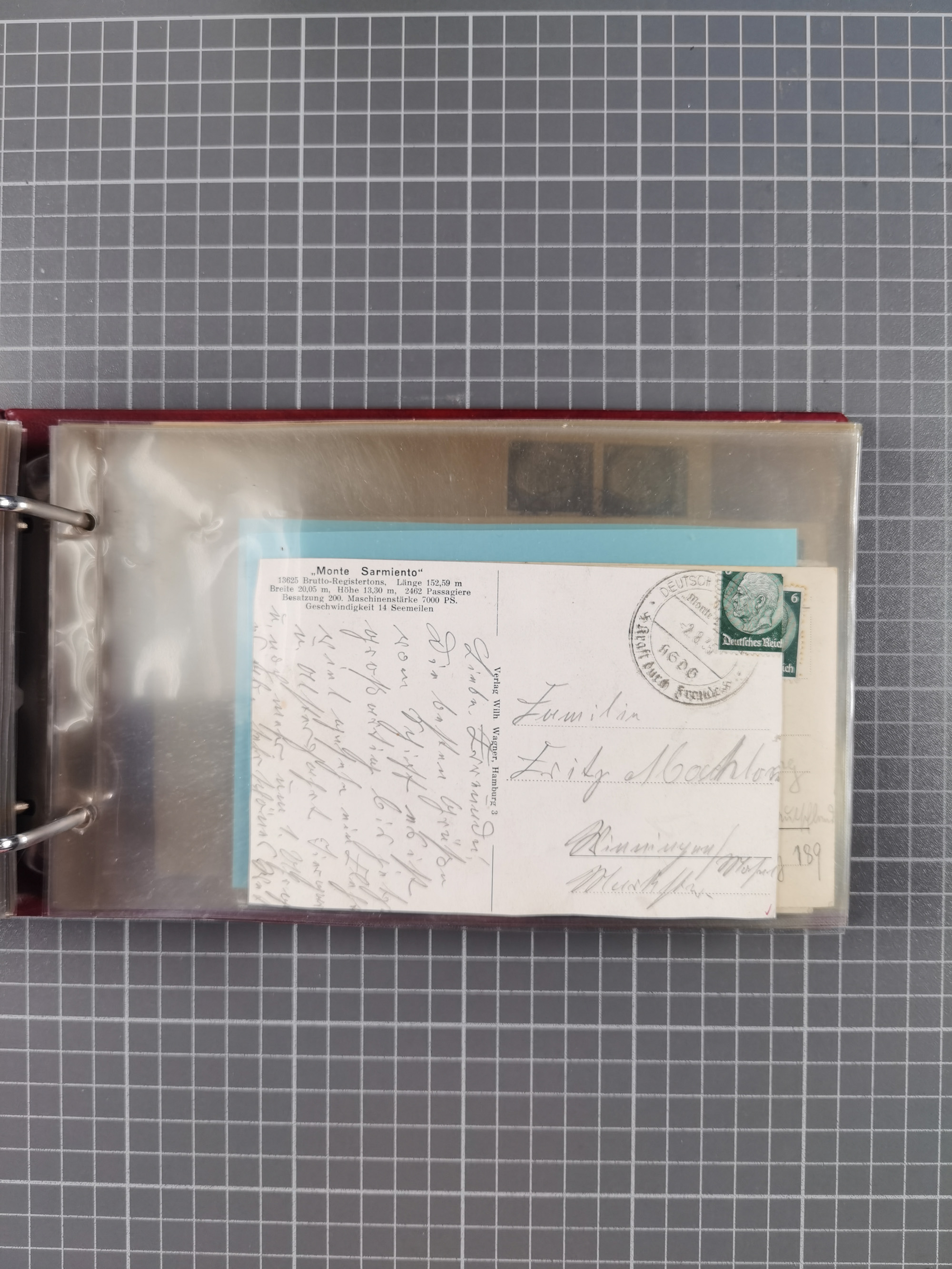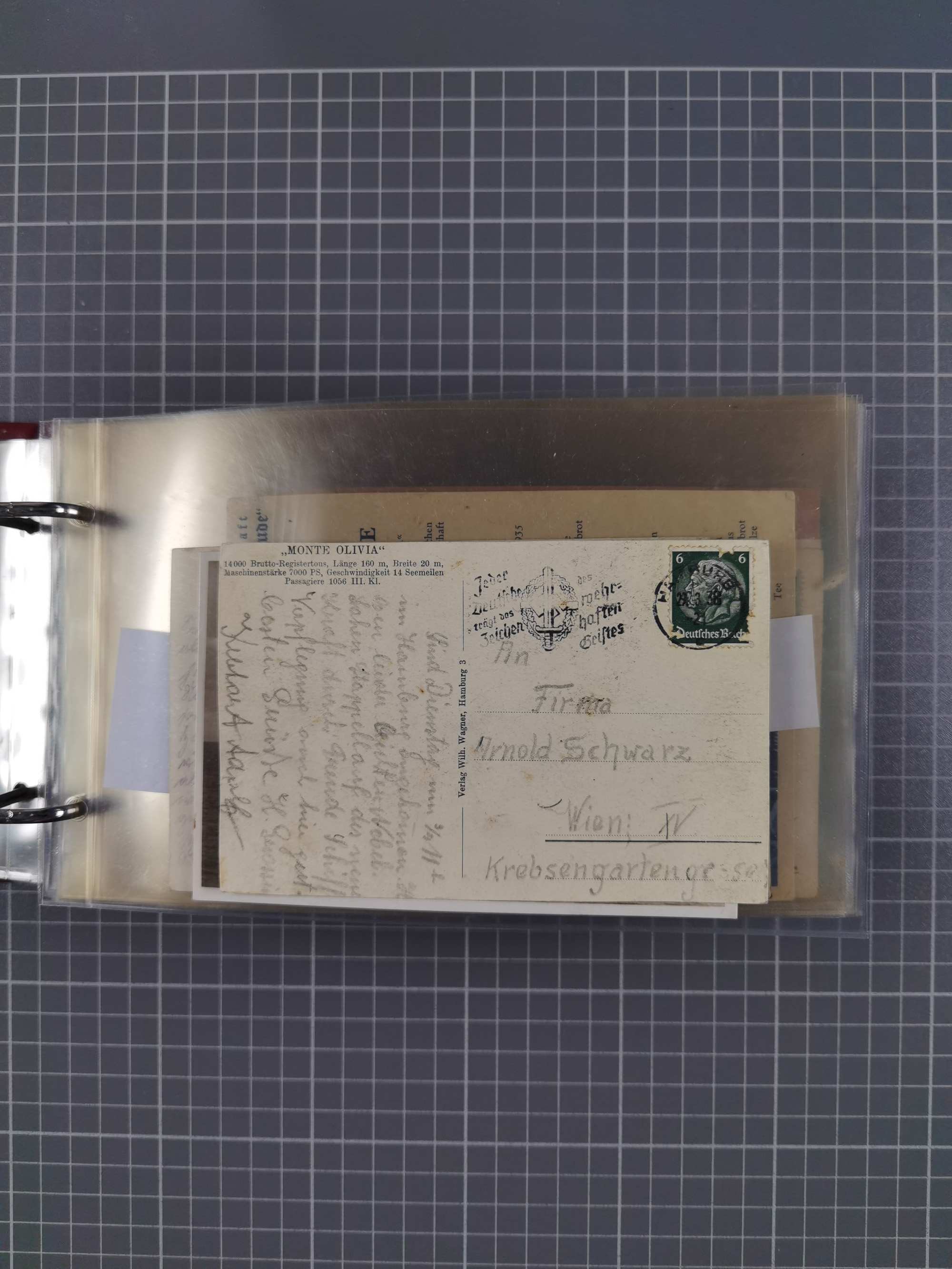 1934/39, Sammlung “Kraft durch Freude” mit ca. 240 Briefen, Karten und GSK inkl. Stempel des "LLOYD BREMEN", dazu Fotos, Schiffsansichtskarten, Speisekarten usw., sauber in vier Alben, ex Steinmeyer