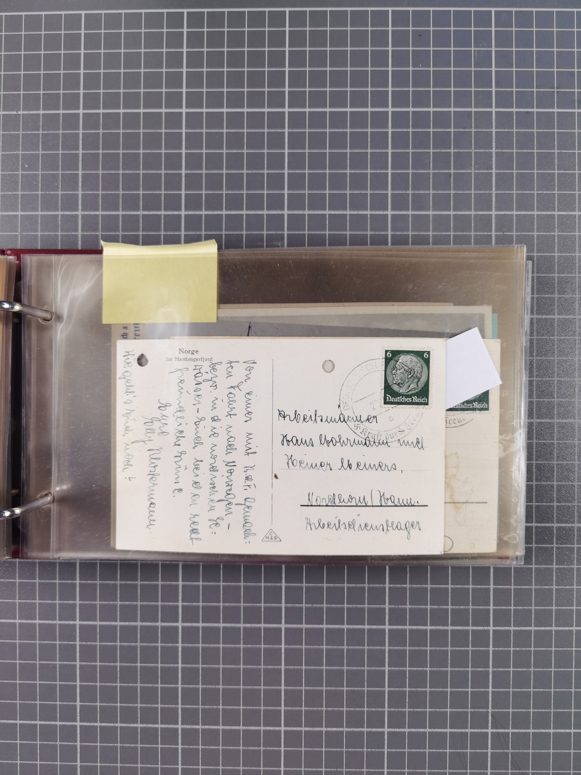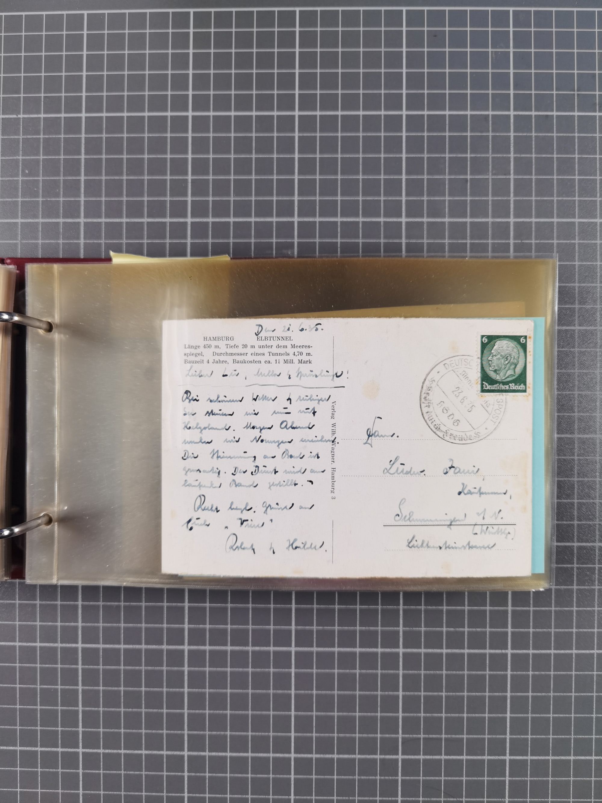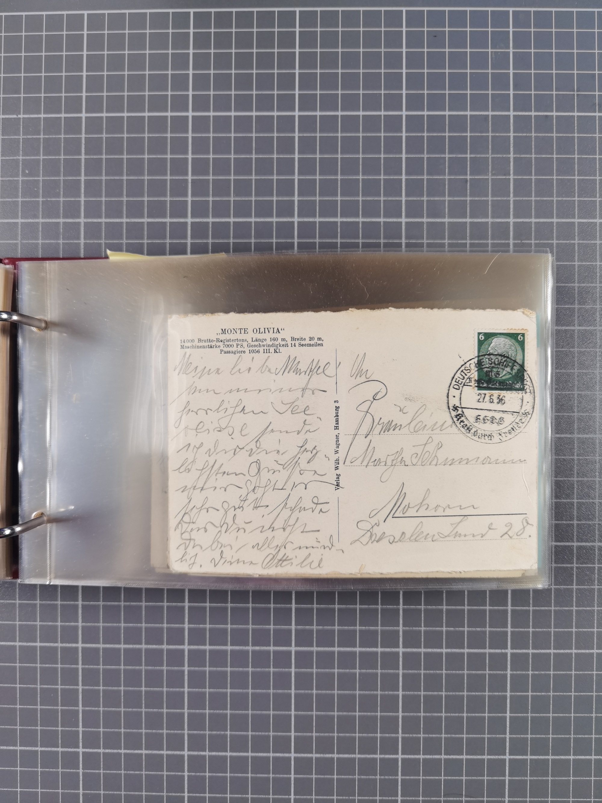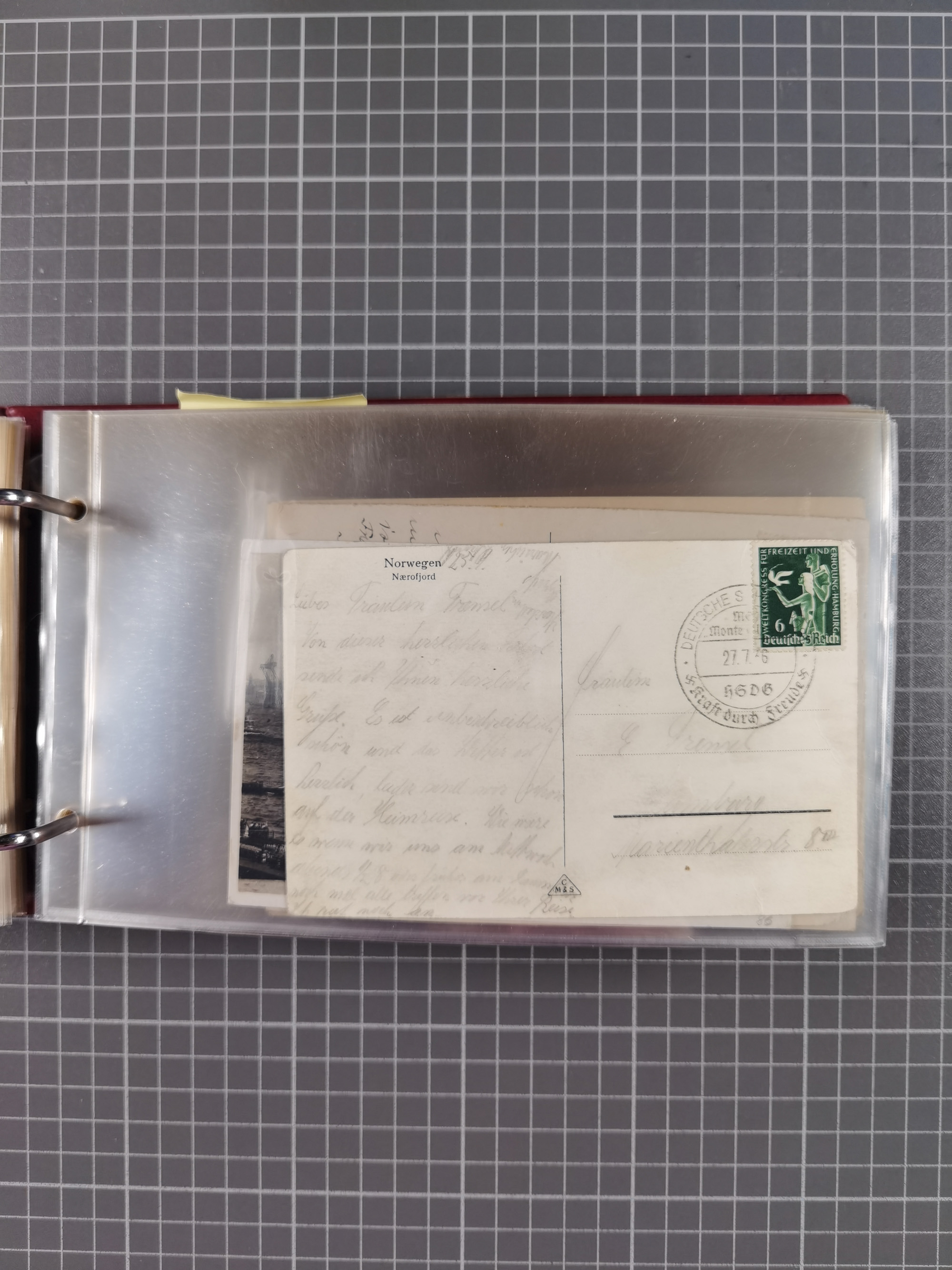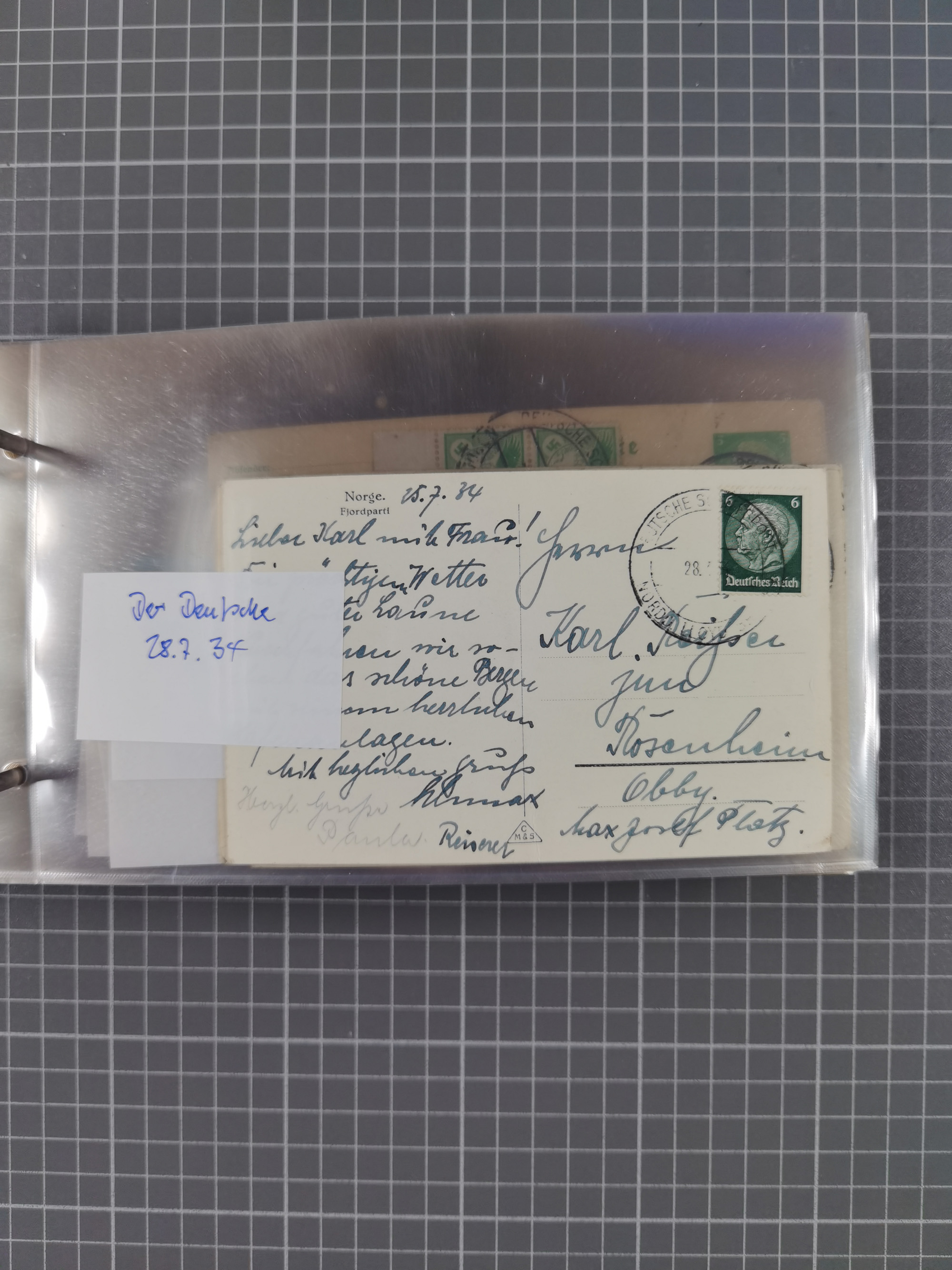 1934/39, Sammlung “Kraft durch Freude” mit ca. 240 Briefen, Karten und GSK inkl. Stempel des "LLOYD BREMEN", dazu Fotos, Schiffsansichtskarten, Speisekarten usw., sauber in vier Alben, ex Steinmeyer