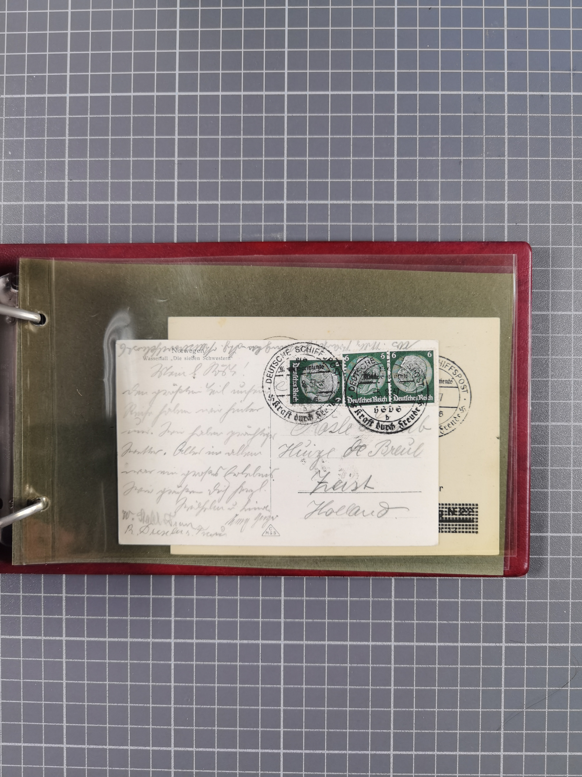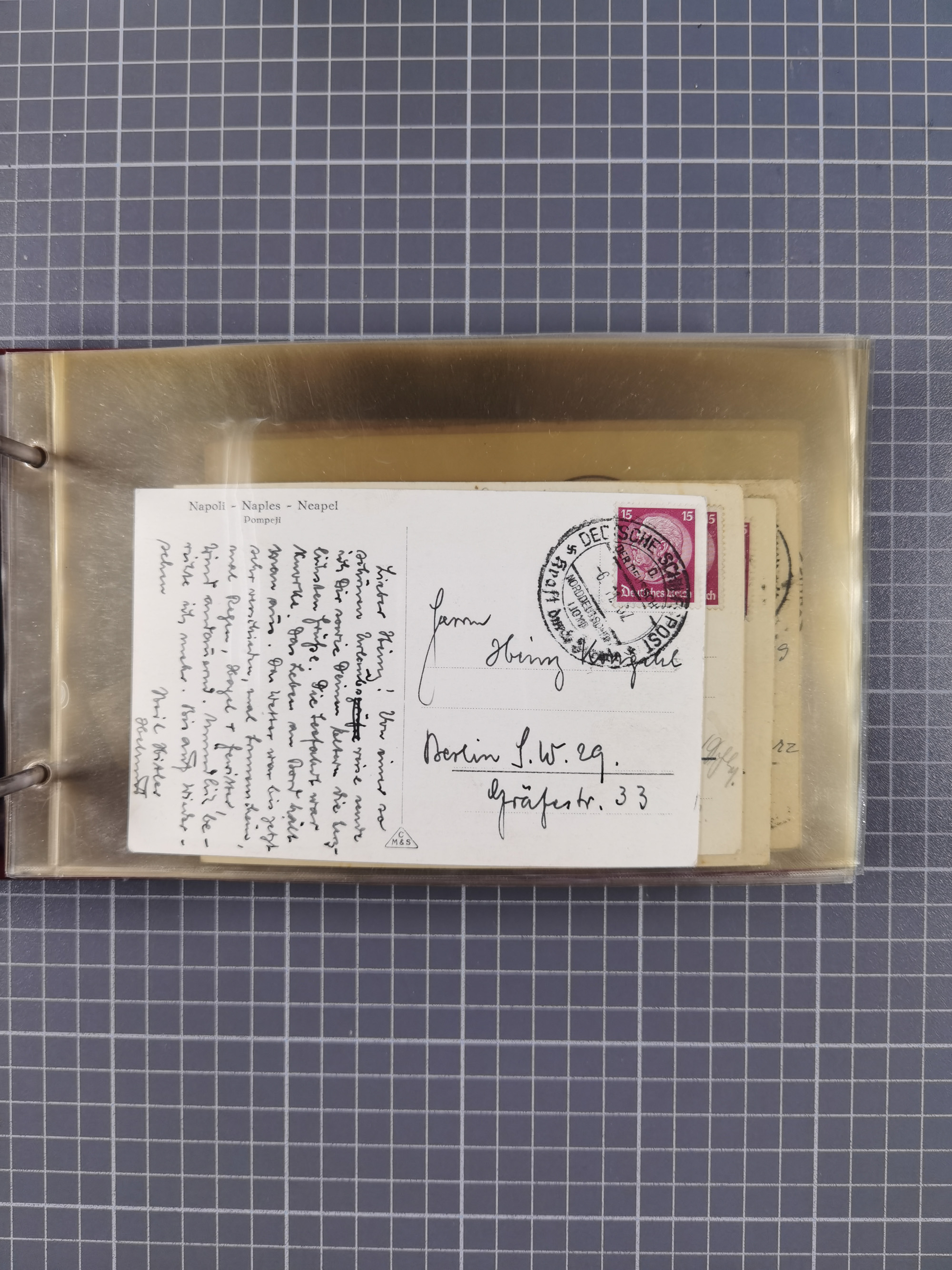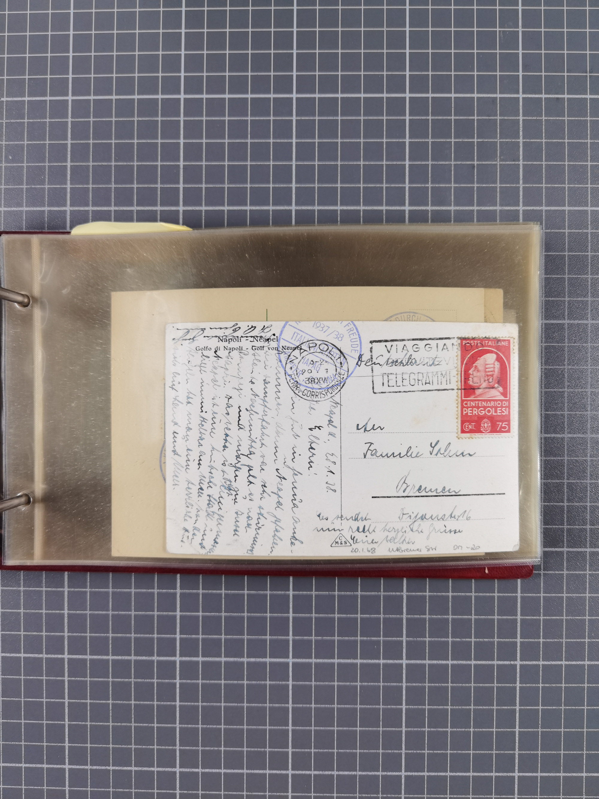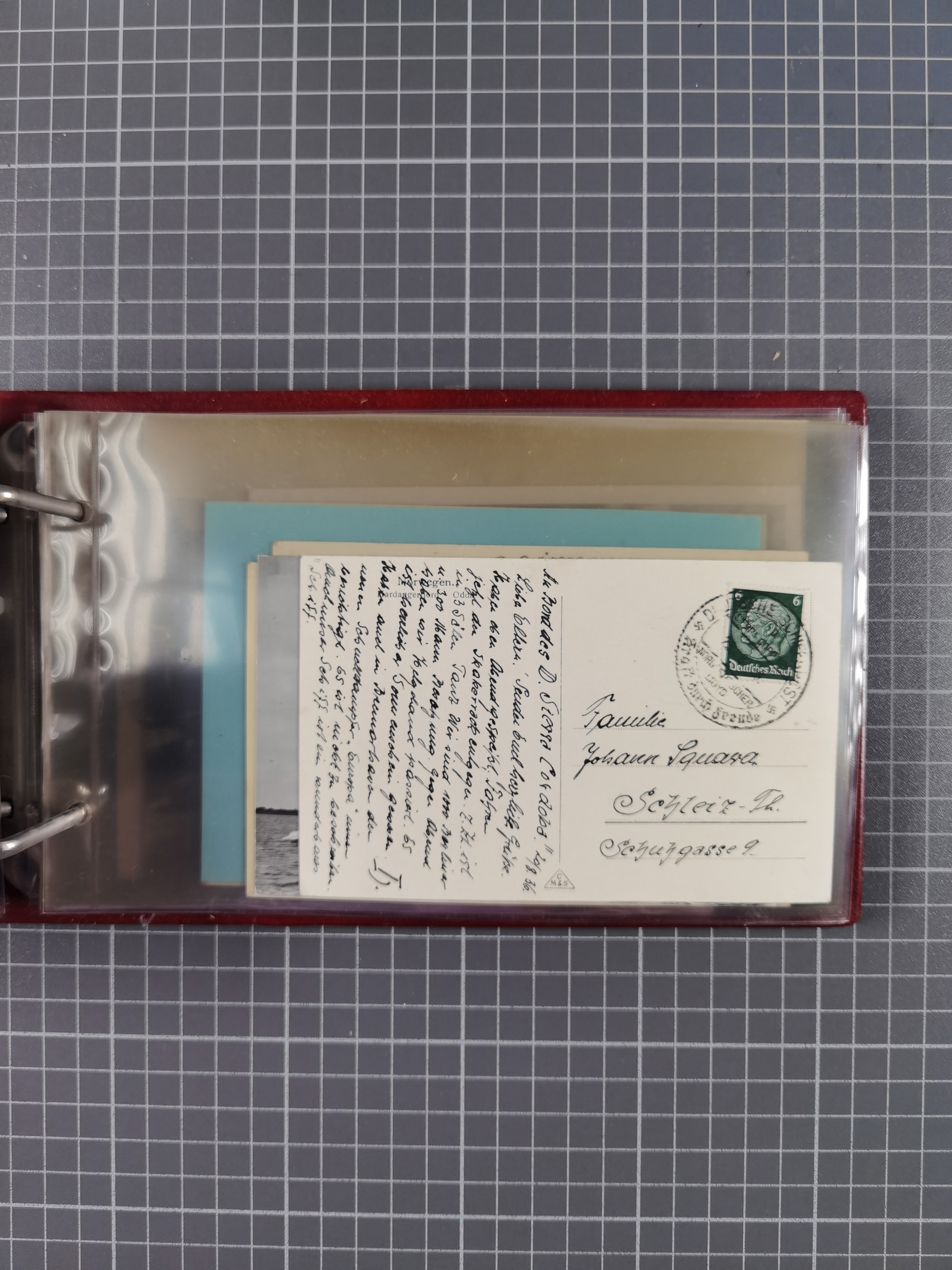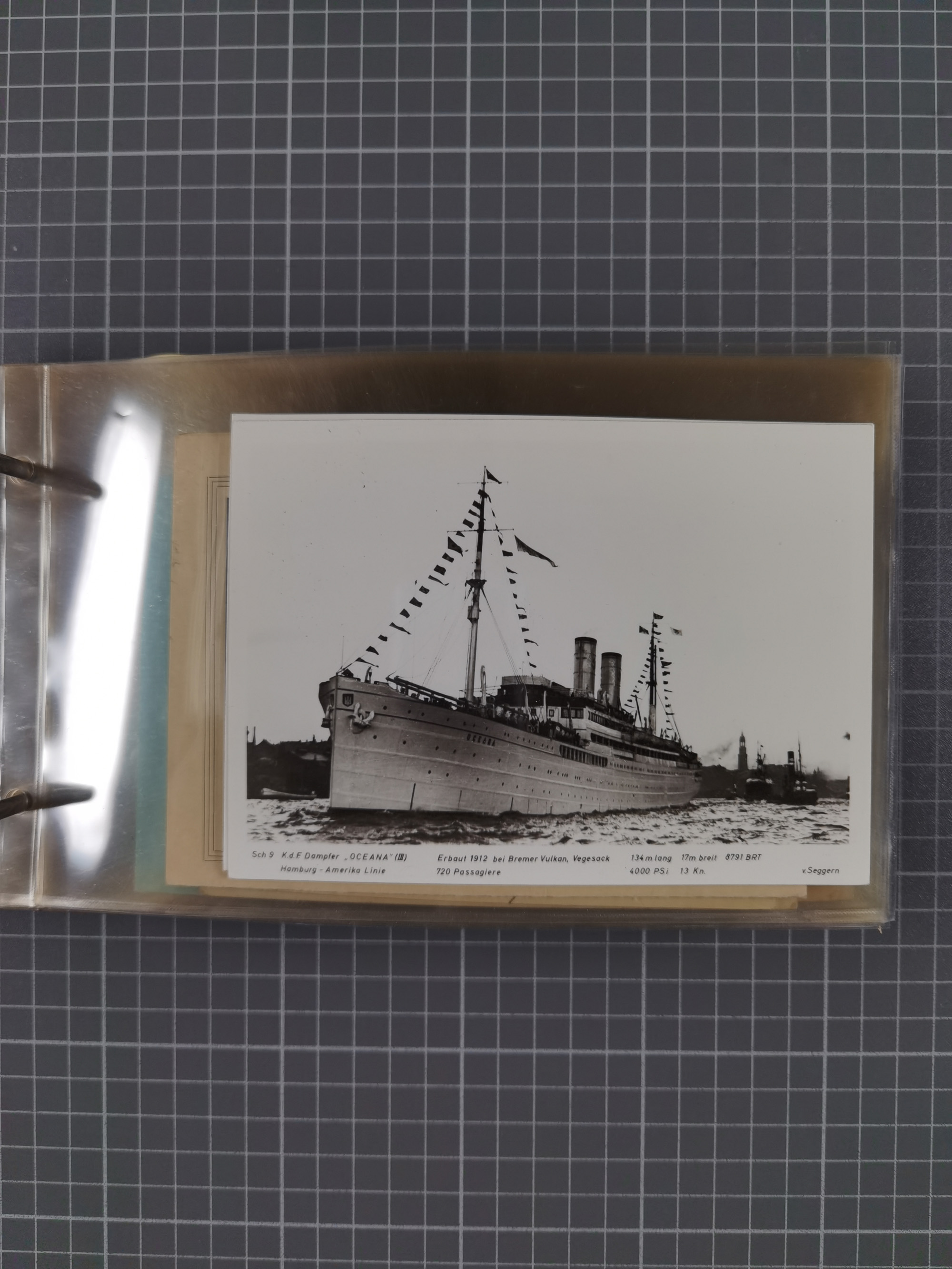 1934/39, Sammlung “Kraft durch Freude” mit ca. 240 Briefen, Karten und GSK inkl. Stempel des "LLOYD BREMEN", dazu Fotos, Schiffsansichtskarten, Speisekarten usw., sauber in vier Alben, ex Steinmeyer