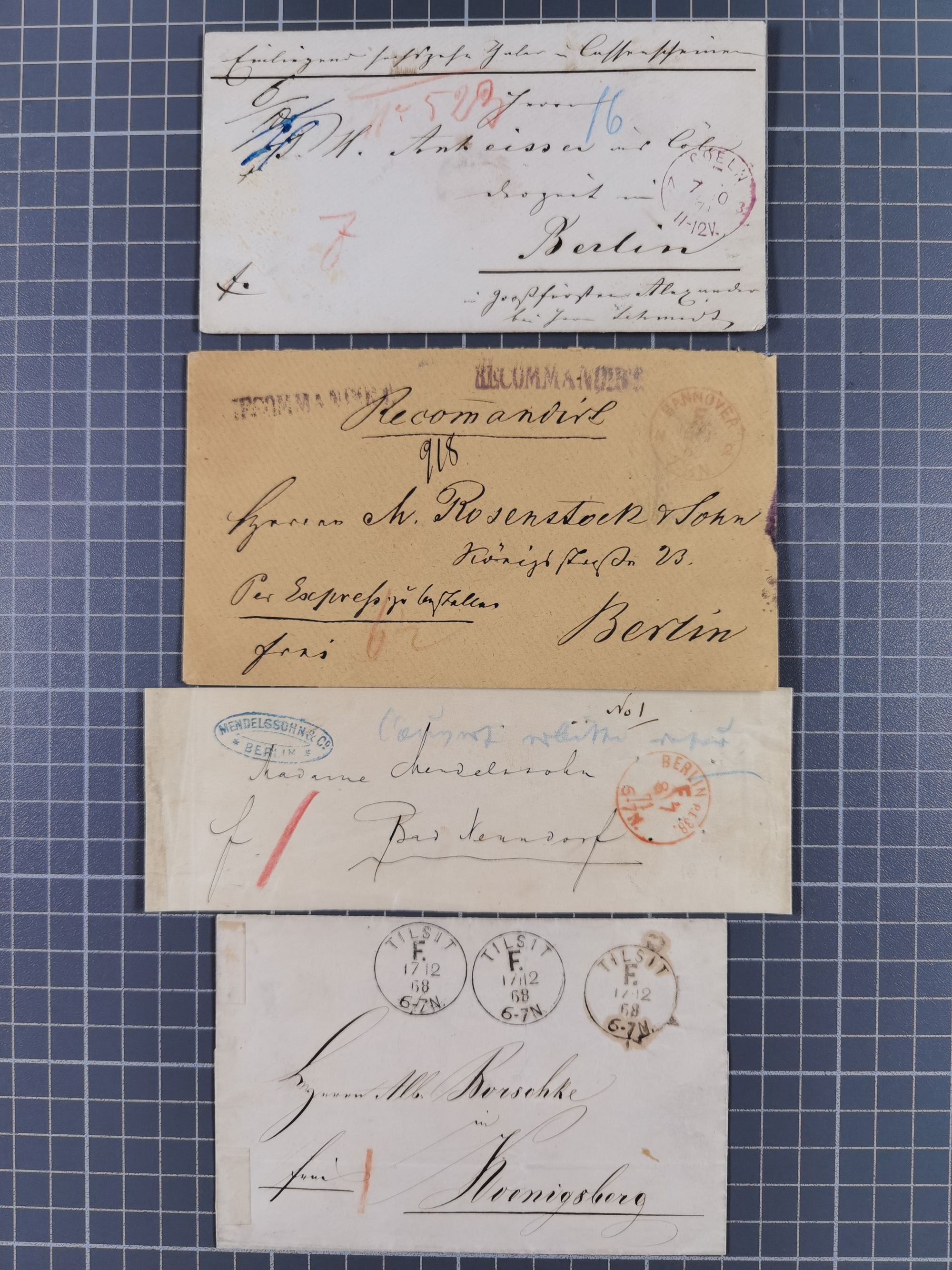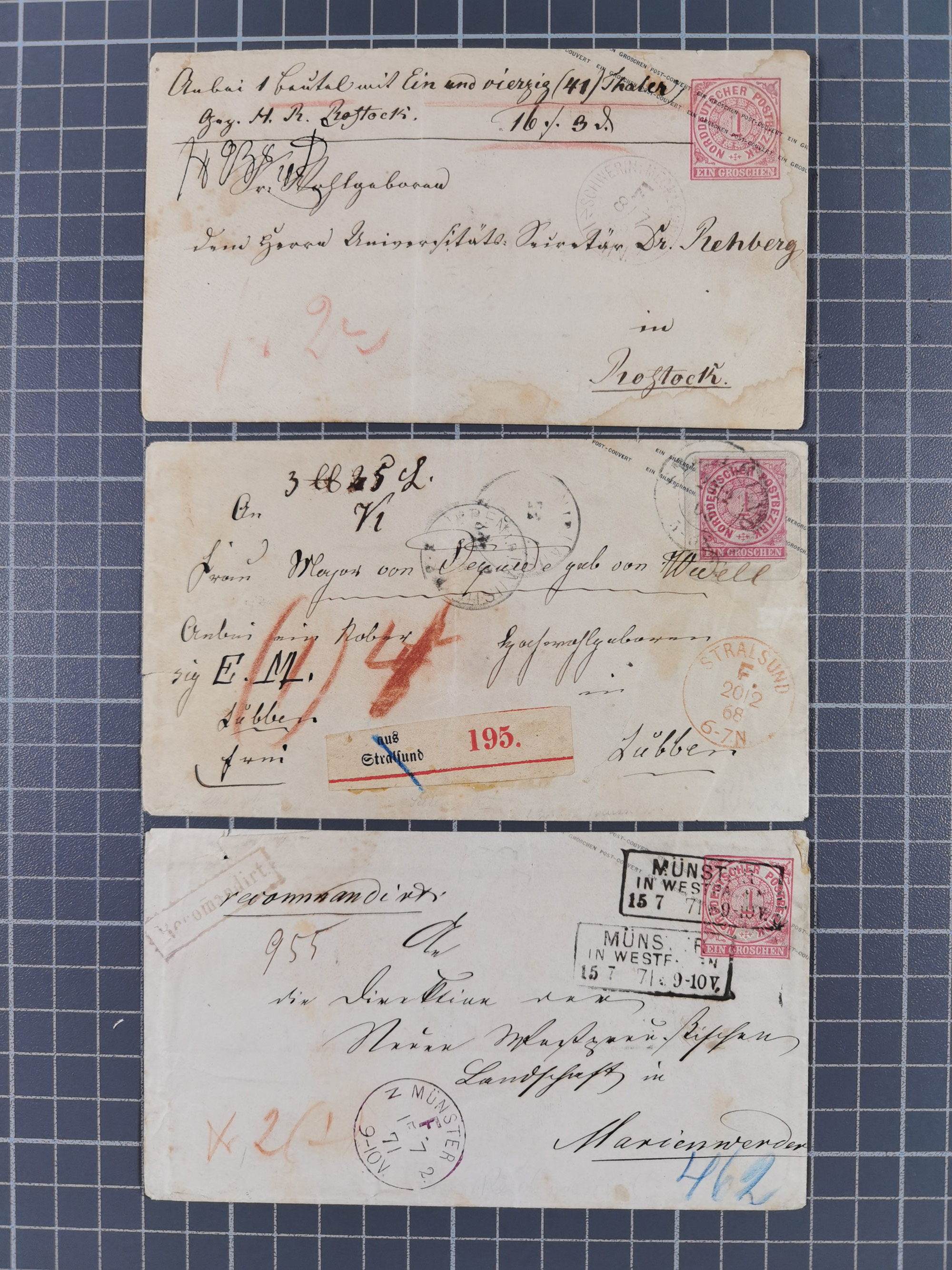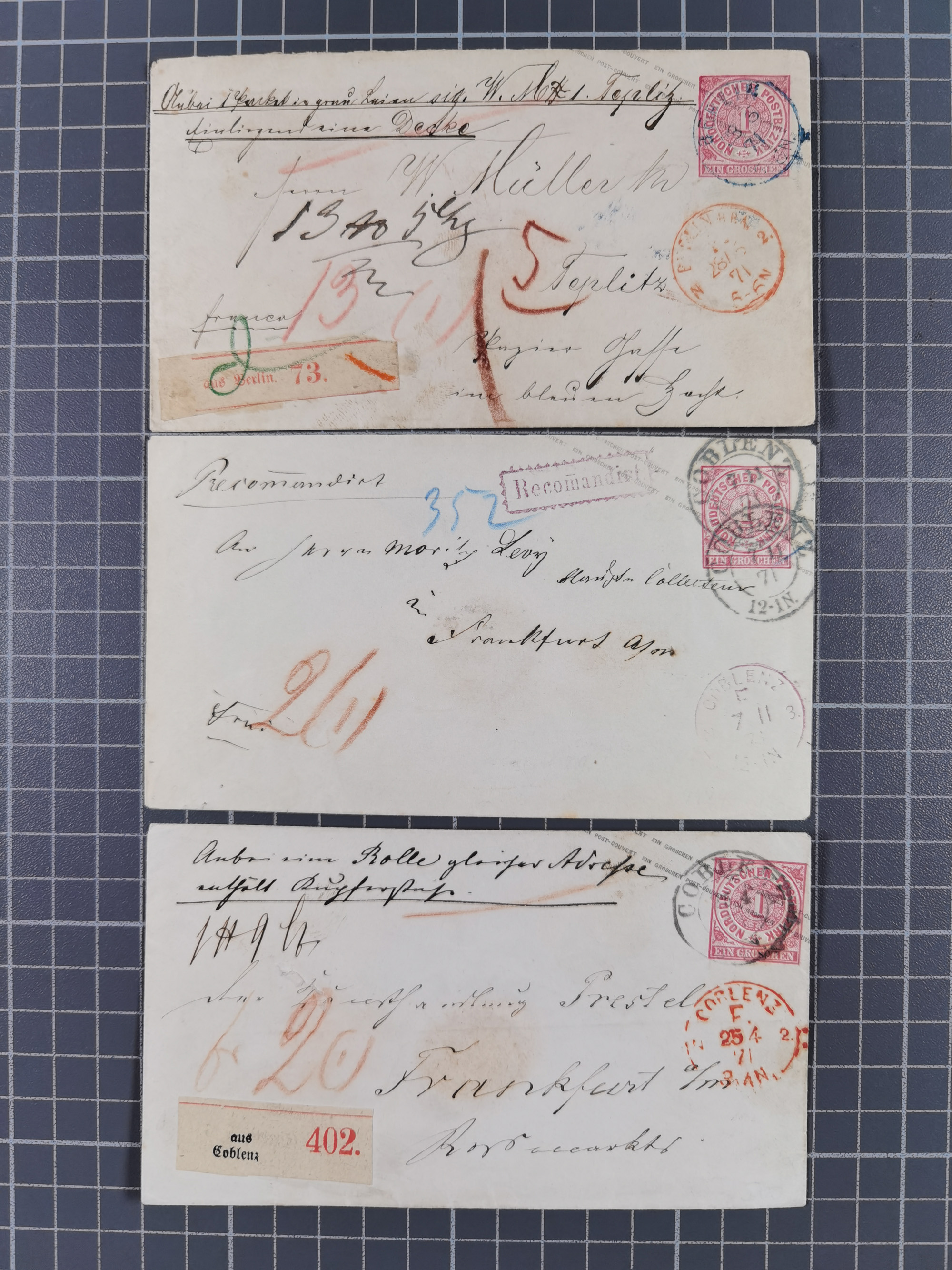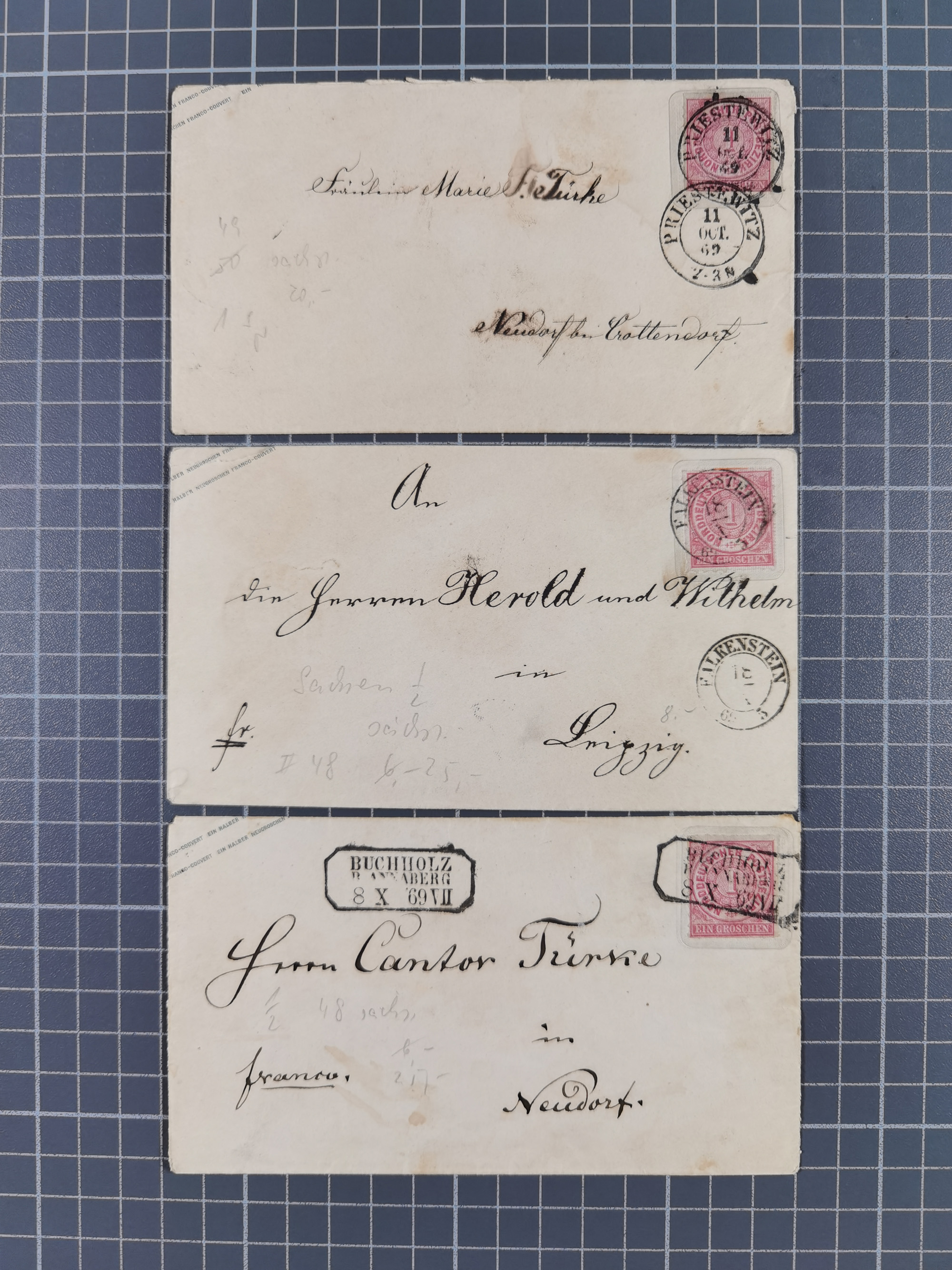1868/71, 15 Briefe mit Franco-Stempeln, dabei Express-Brief und 11 Kombinationen mit 1 Gr.-Umschlägen
