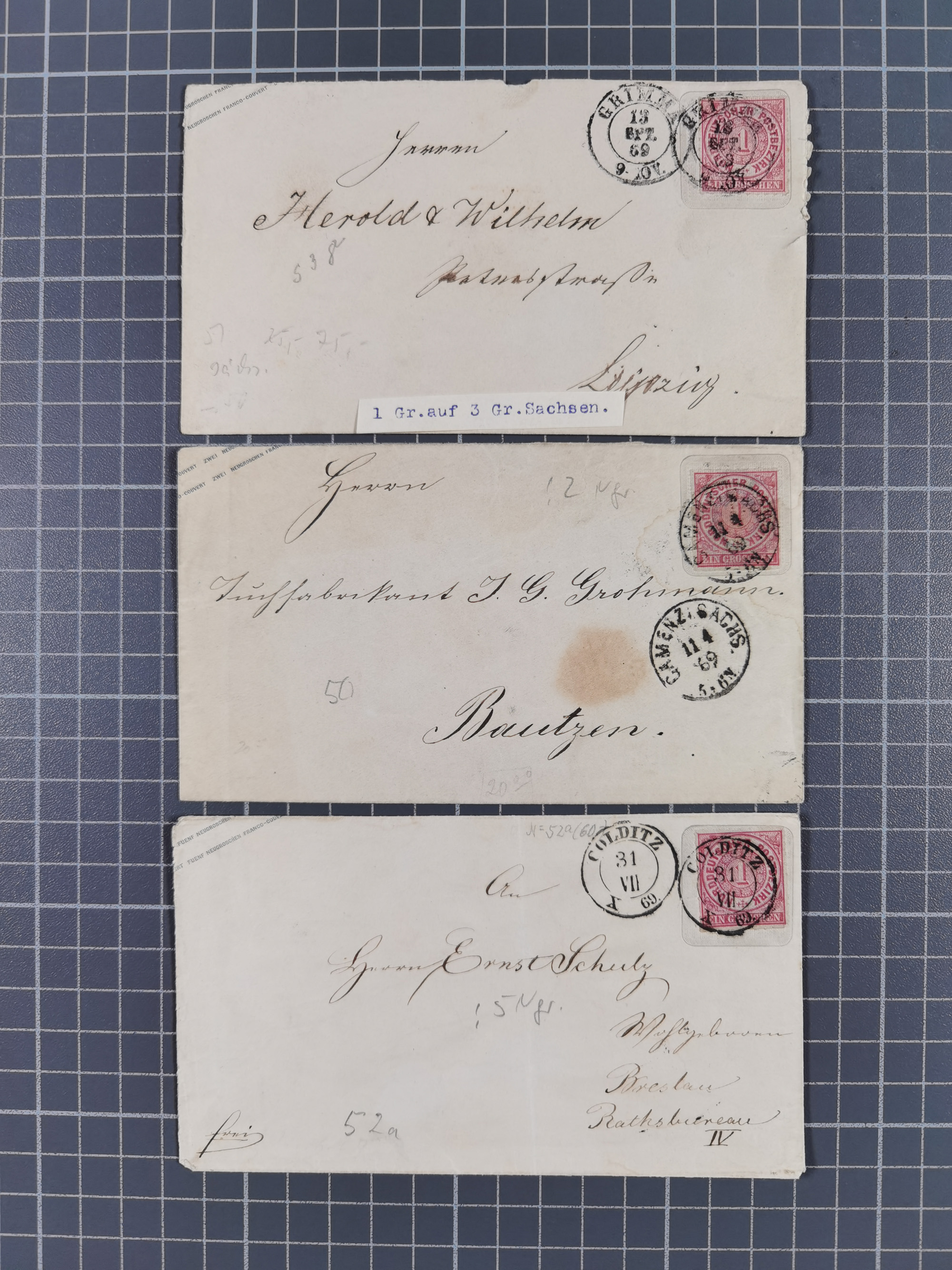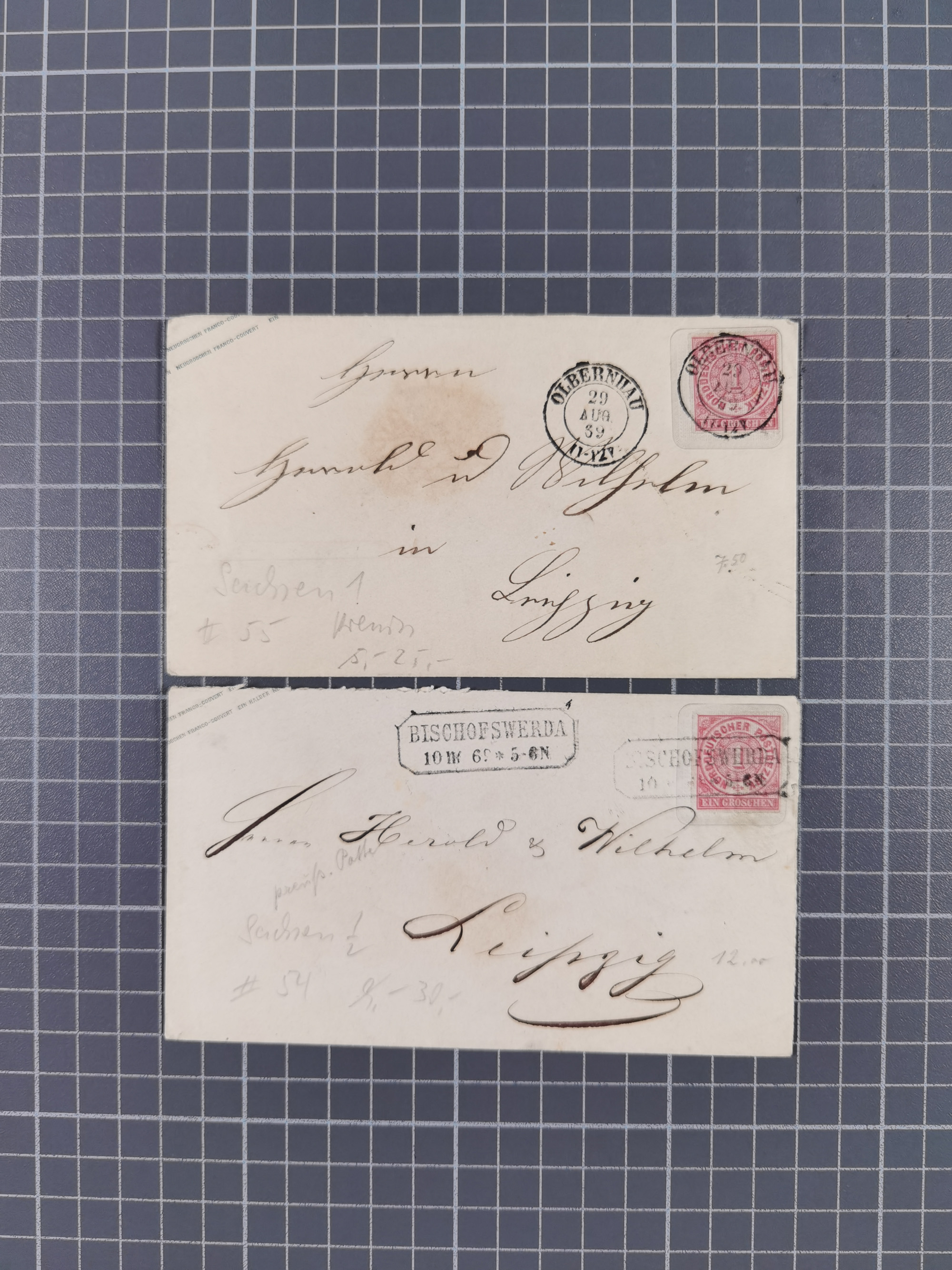 1868, Aufbrauchsumschläge Sachsen, 17 ungebrauchte und 10 gebrauchte Umschläge, fast alle verschieden; wenige etwas fehlerhaft.