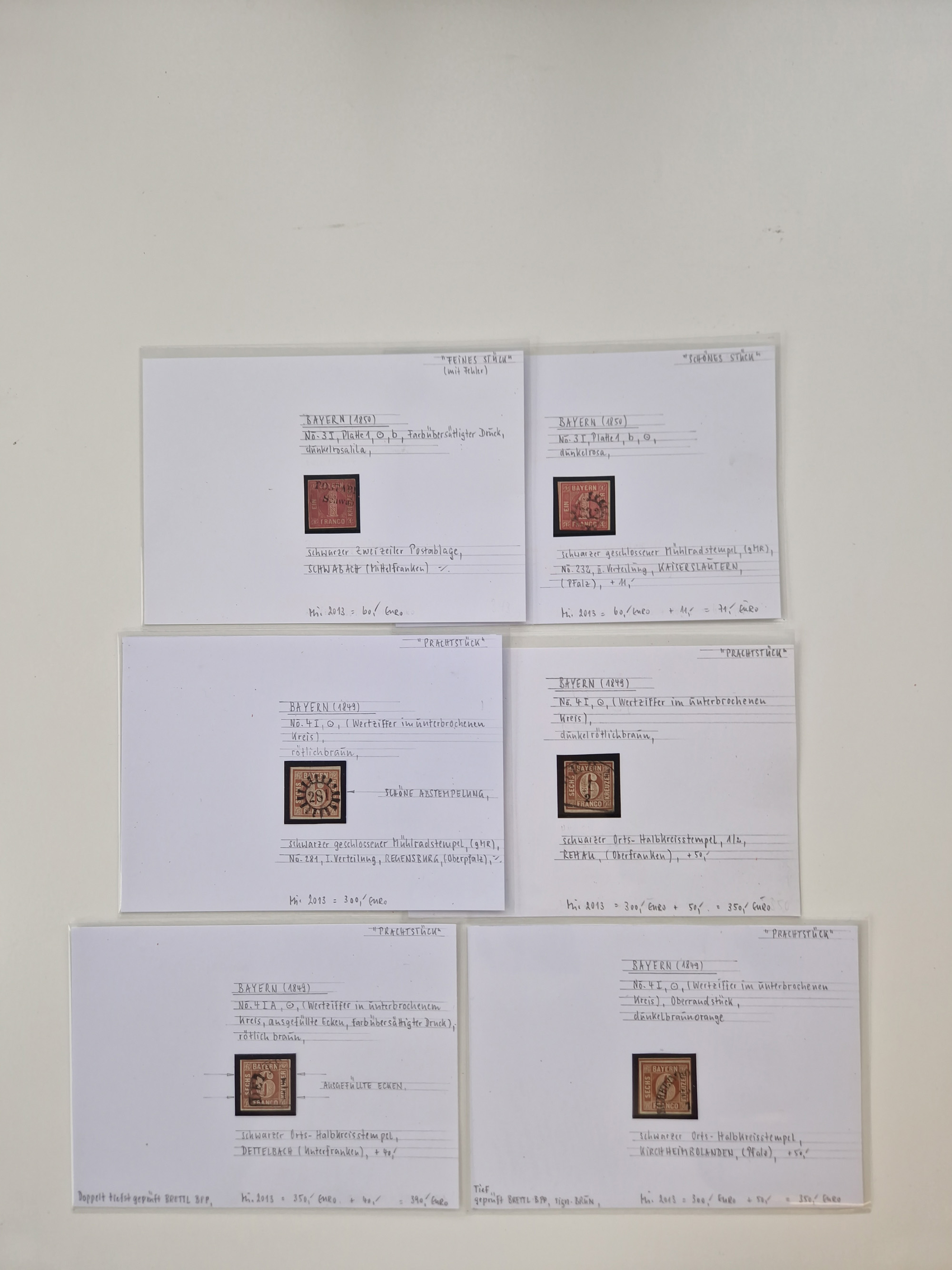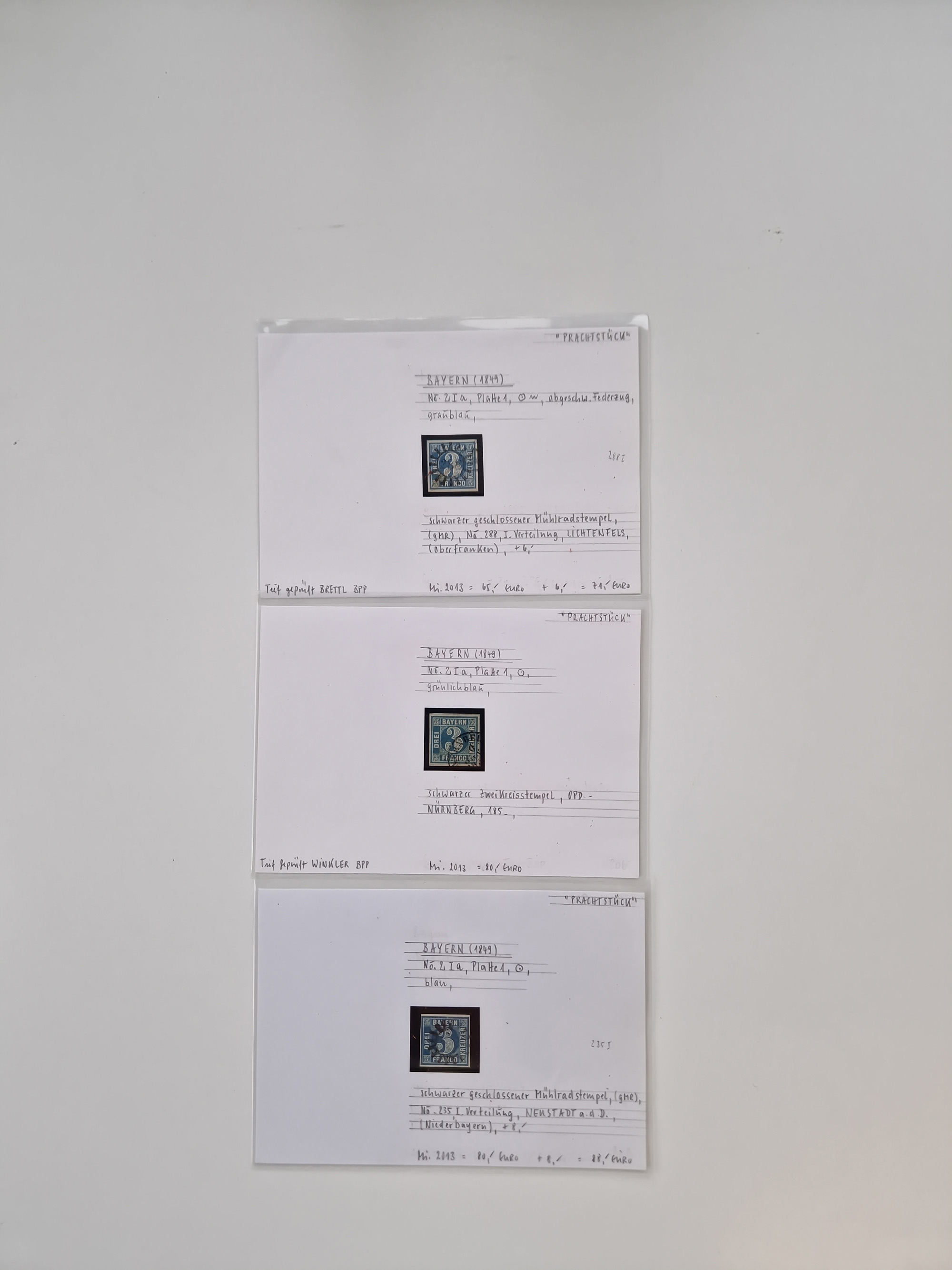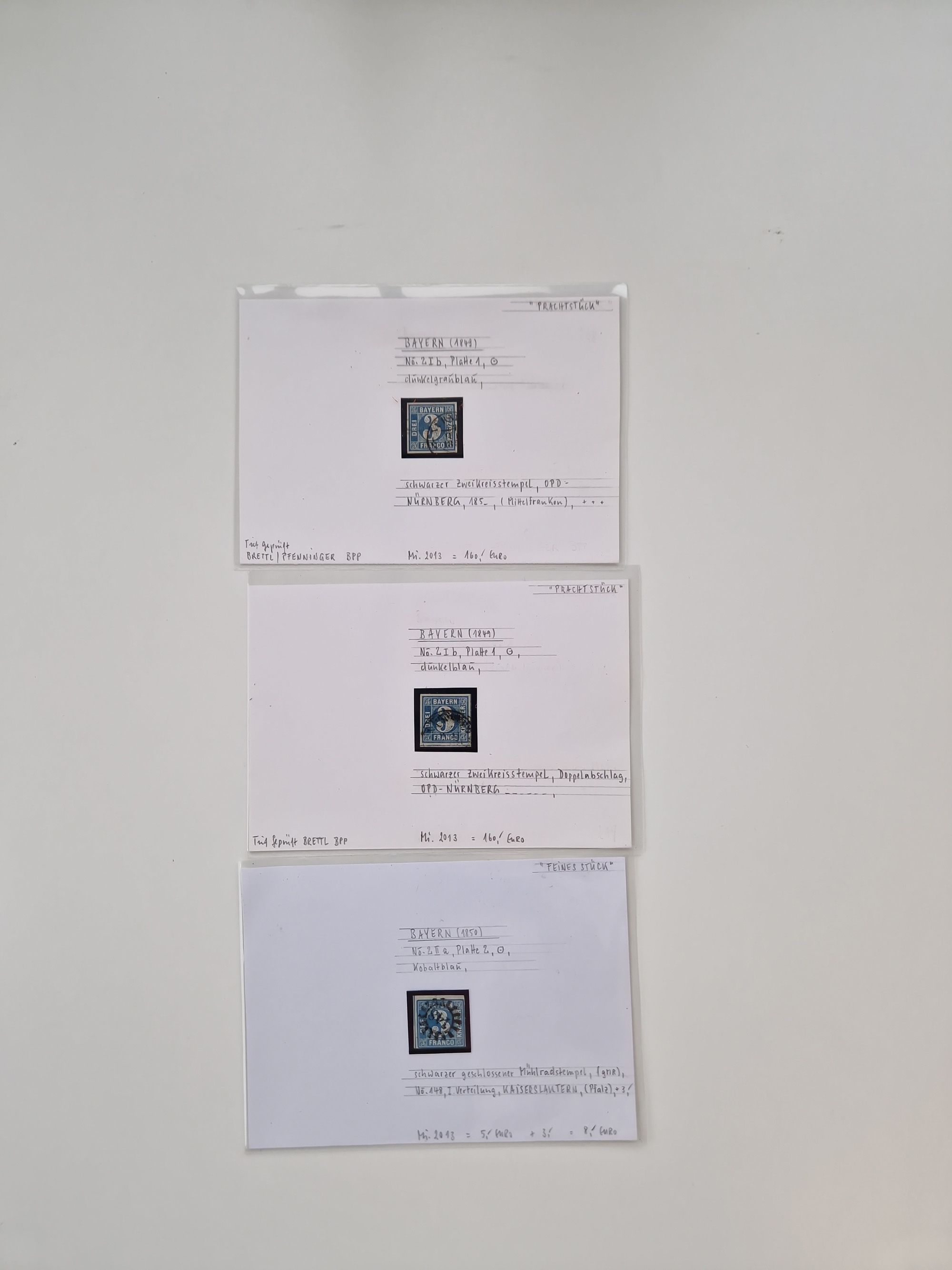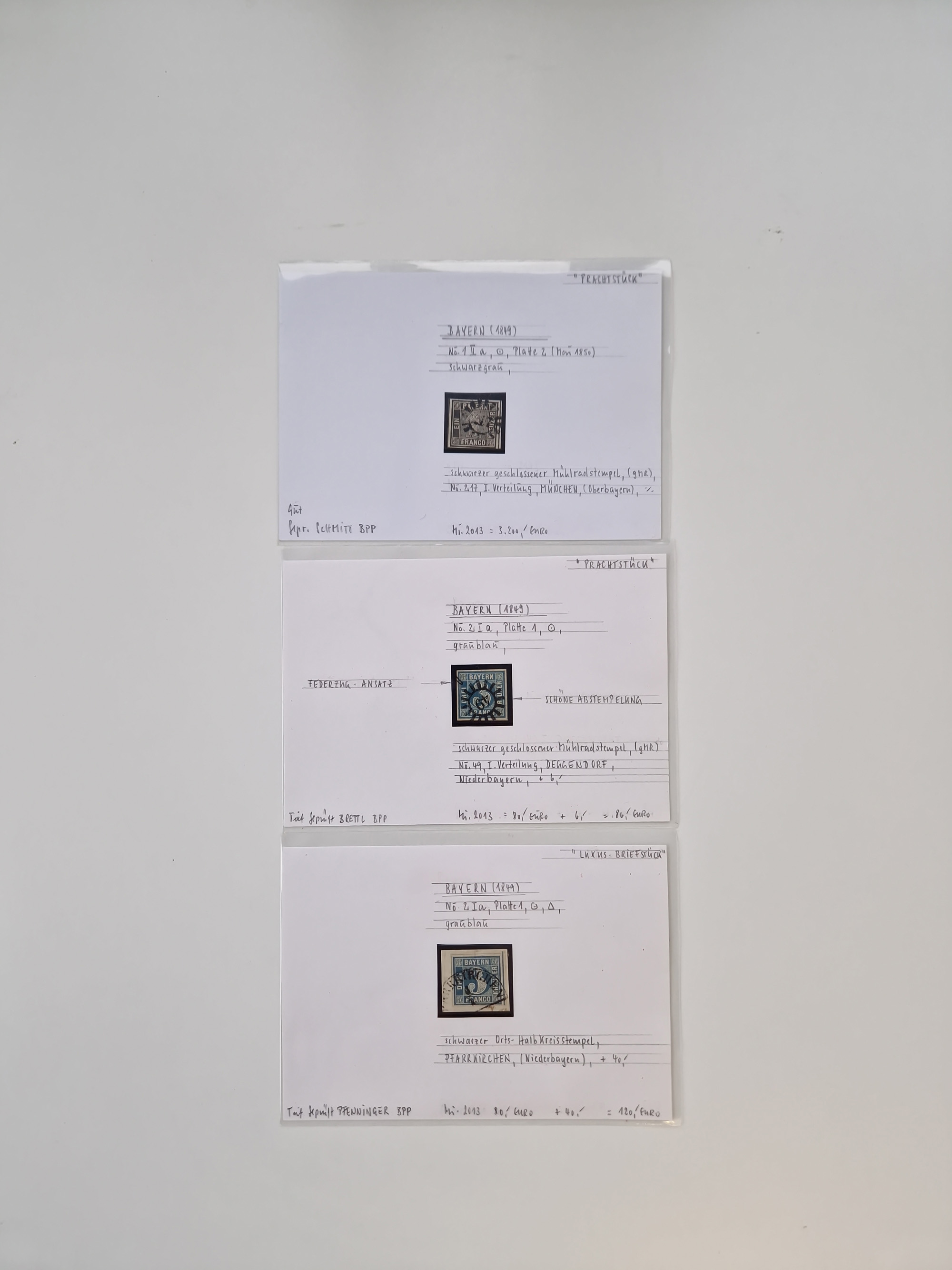 1849/70 (ca.), meist gestempelte kleine Partie im Ordner, überwiegend Bayern mit u.a. 1 IIa, 4 I/III, 8II, Wappen-Brief in die USA, 26X,etc. praktisch alles signiert, diverse Kurzbefunde und Atteste BPP