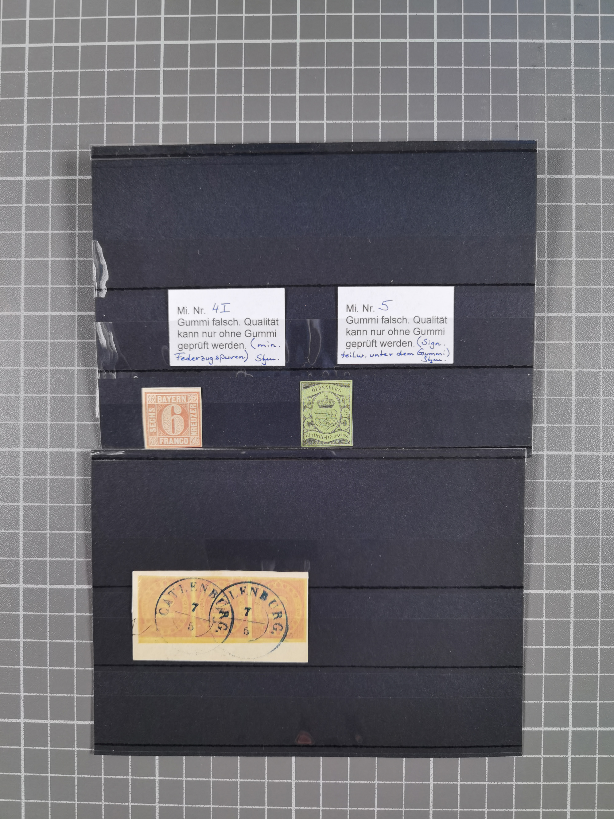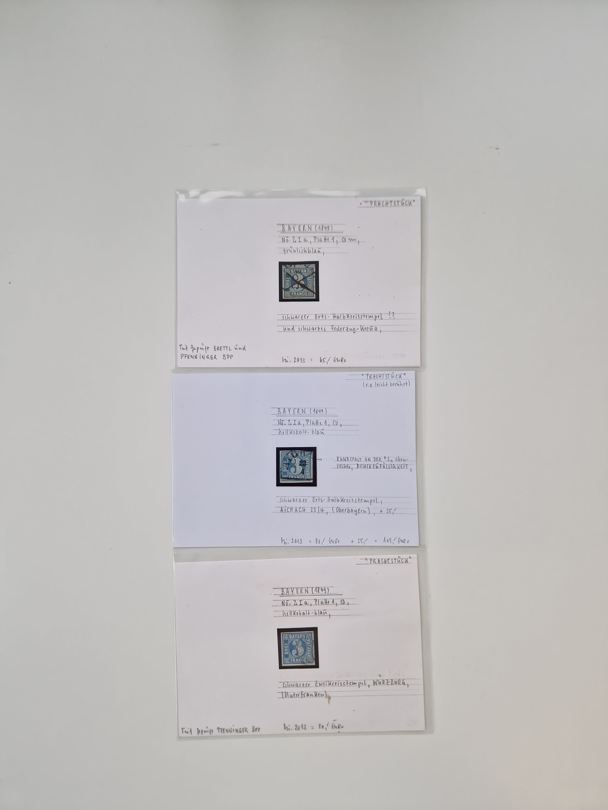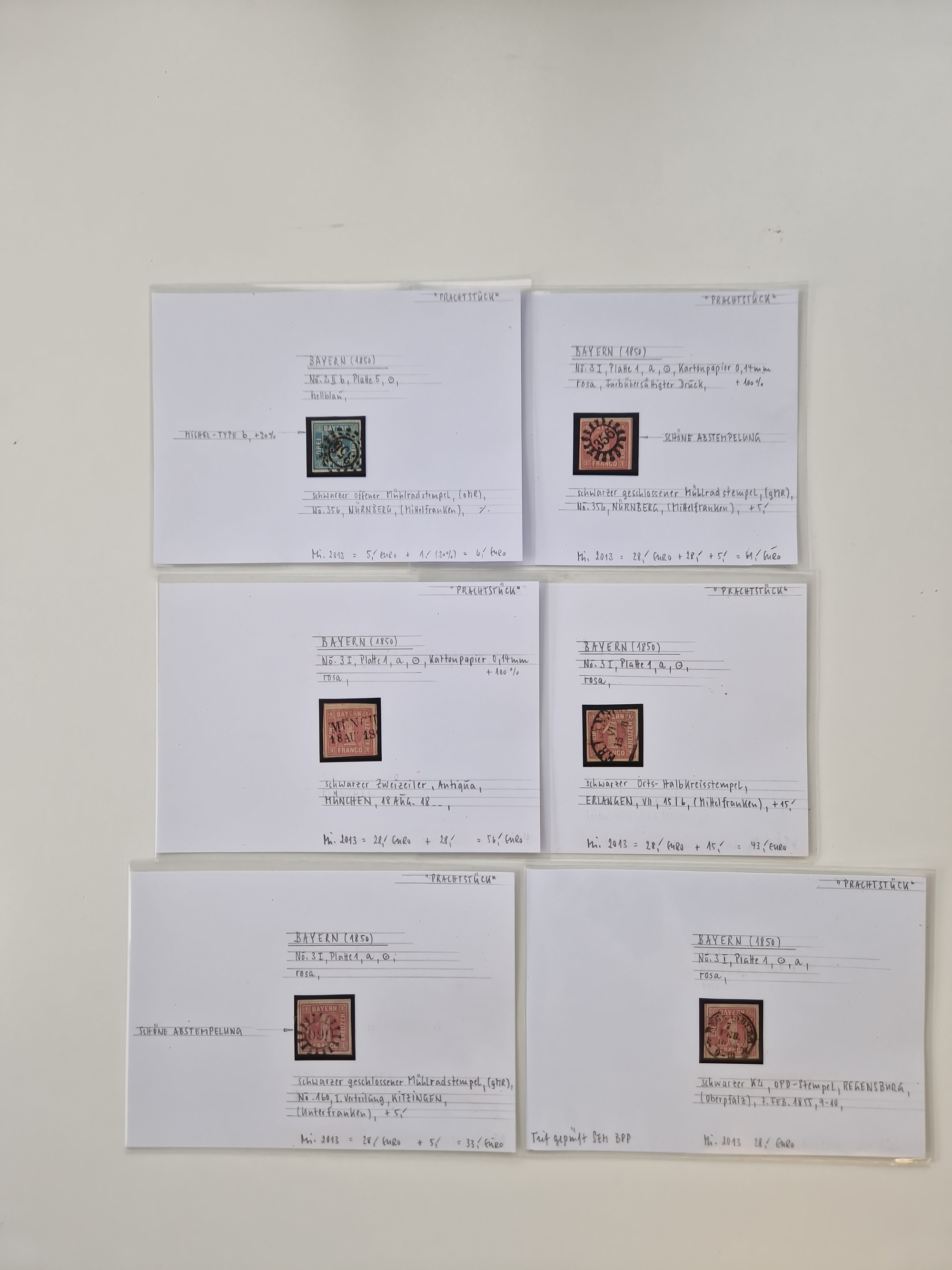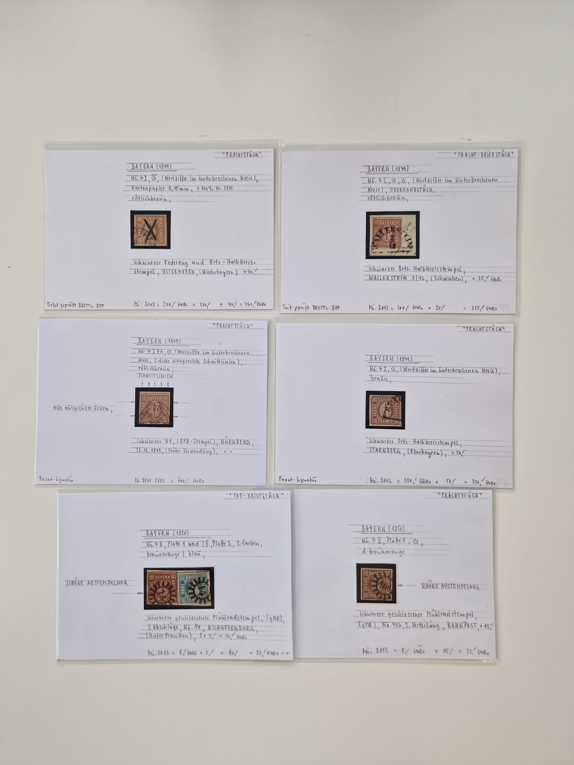 1849/70 (ca.), meist gestempelte kleine Partie im Ordner, überwiegend Bayern mit u.a. 1 IIa, 4 I/III, 8II, Wappen-Brief in die USA, 26X,etc. praktisch alles signiert, diverse Kurzbefunde und Atteste BPP