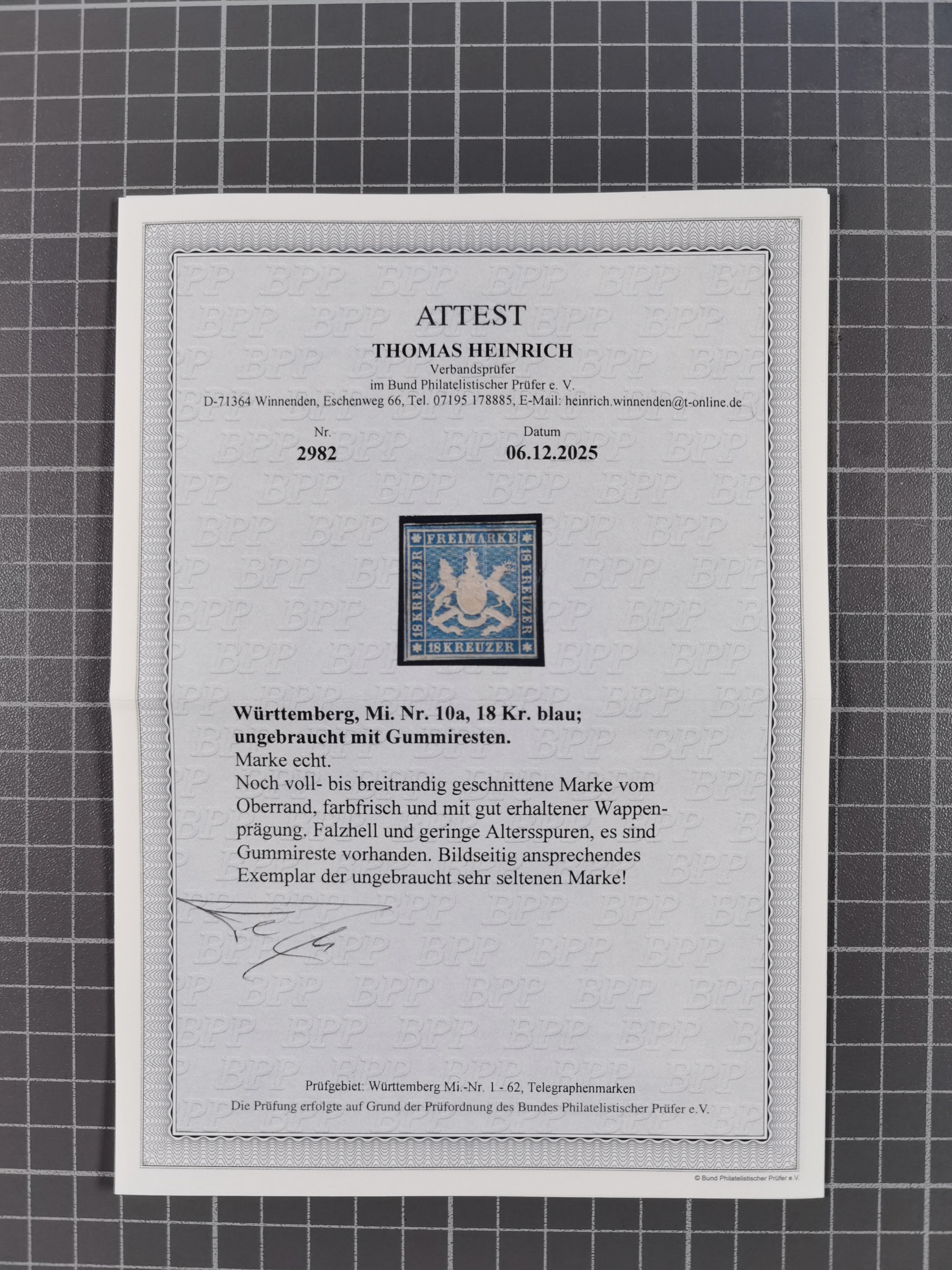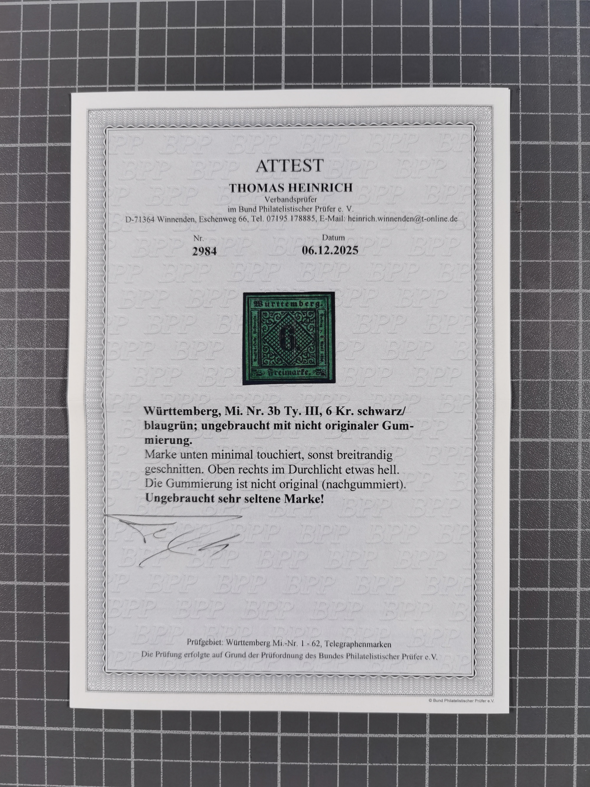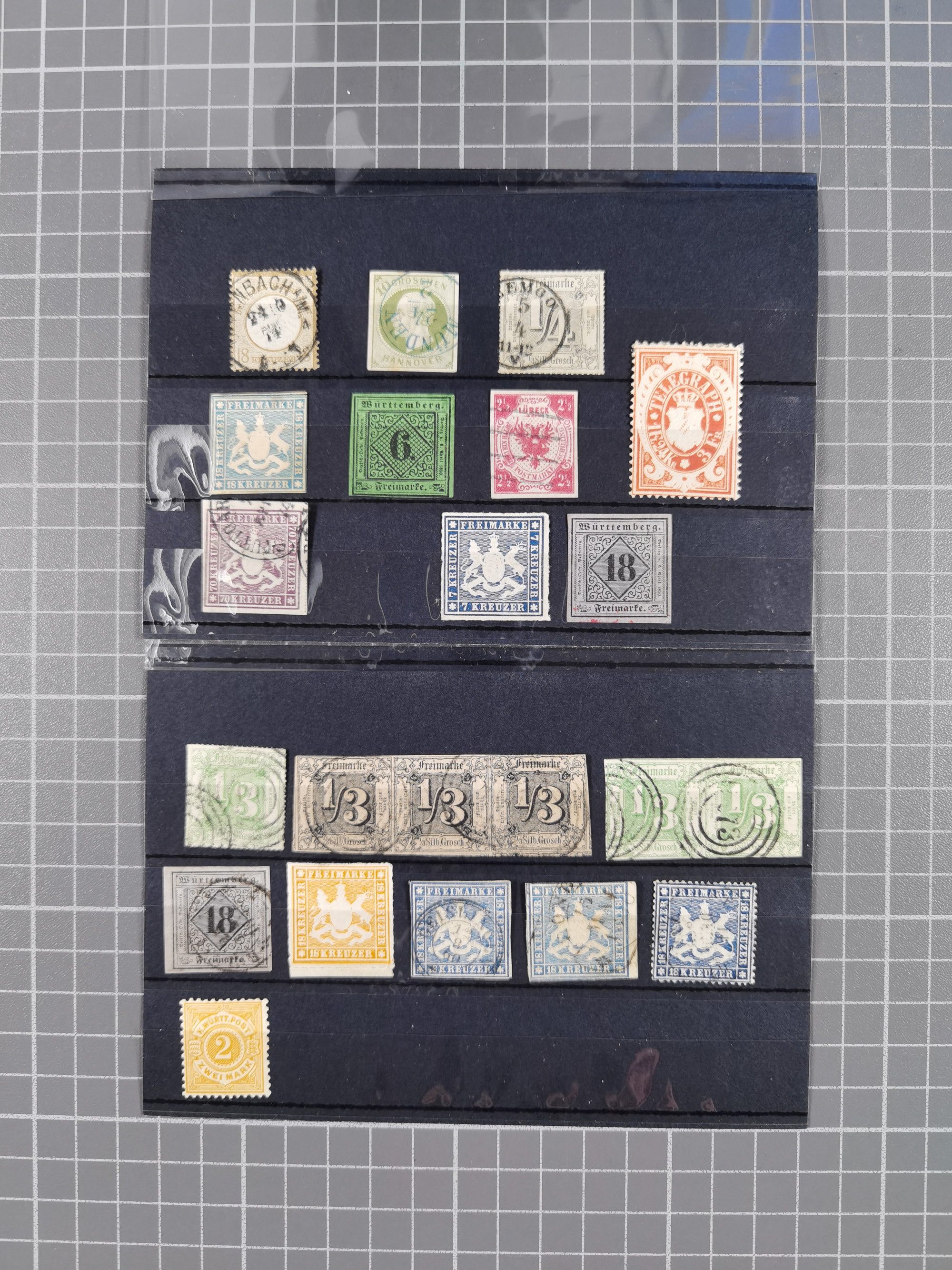 1851/67 (ca.), ungebrauchte und gestempelte kleine Partie besserer Werte, dabei Württemberg Mi. 3b, 5 und 10 a je ungebraucht sowie 42 a gestempelt, Hannover 18 gestempelt, Oldenburg 5, etc., dazu DR 28 (repariert, signiert Georg Bühler). 5 Atteste und ein Befund Heinrich bzw. Jäschke-L. BPP (alle 2026)