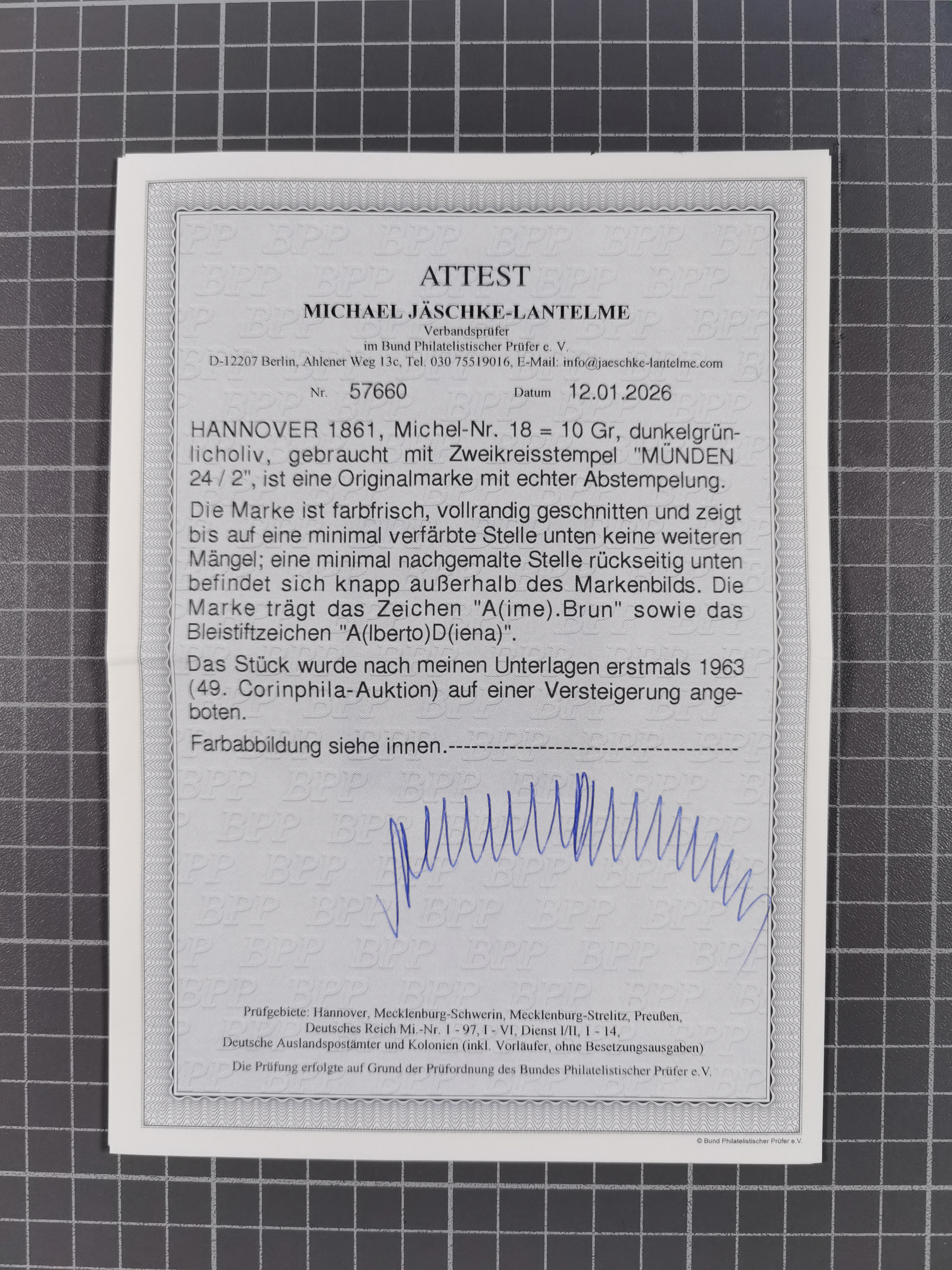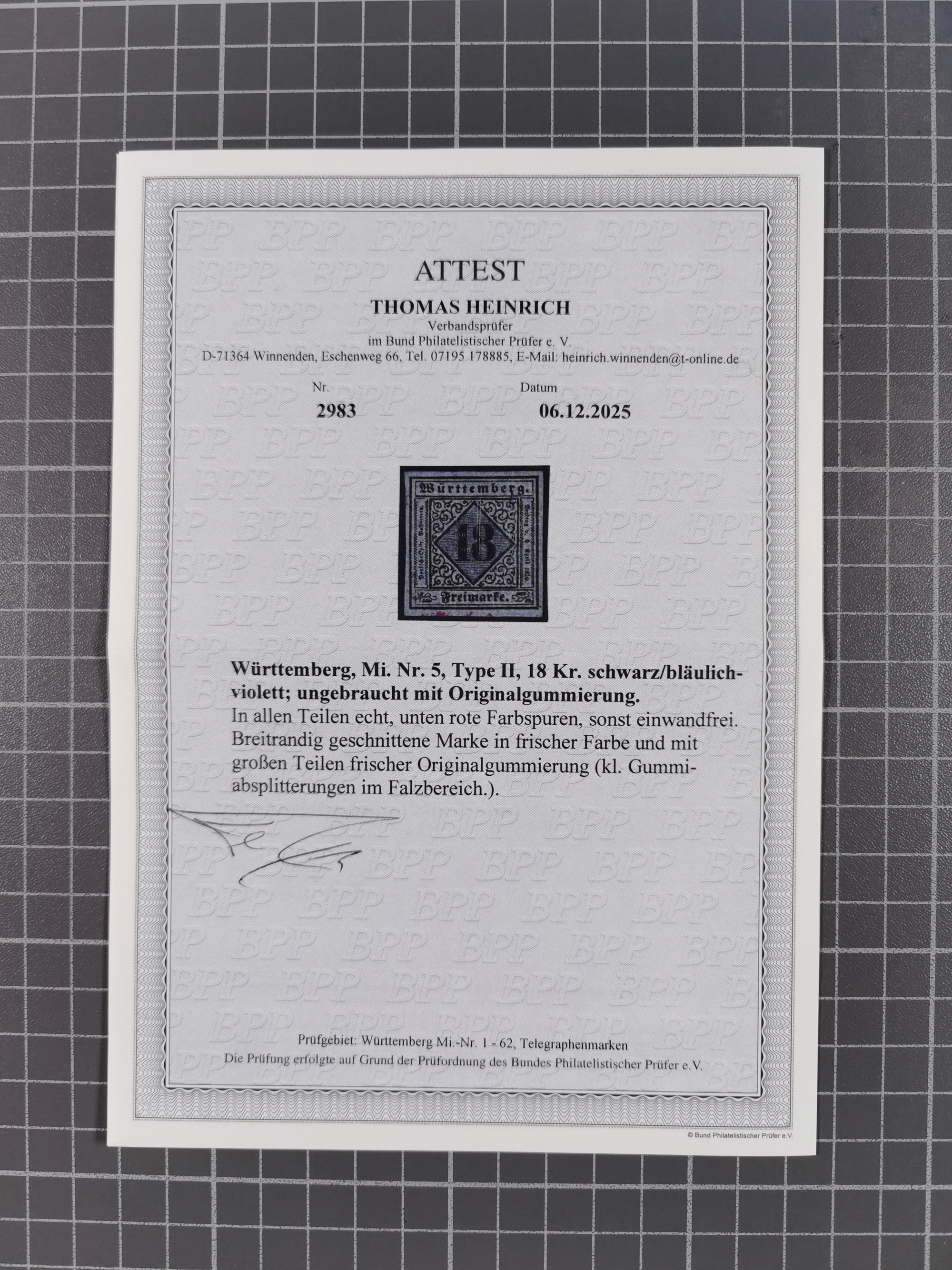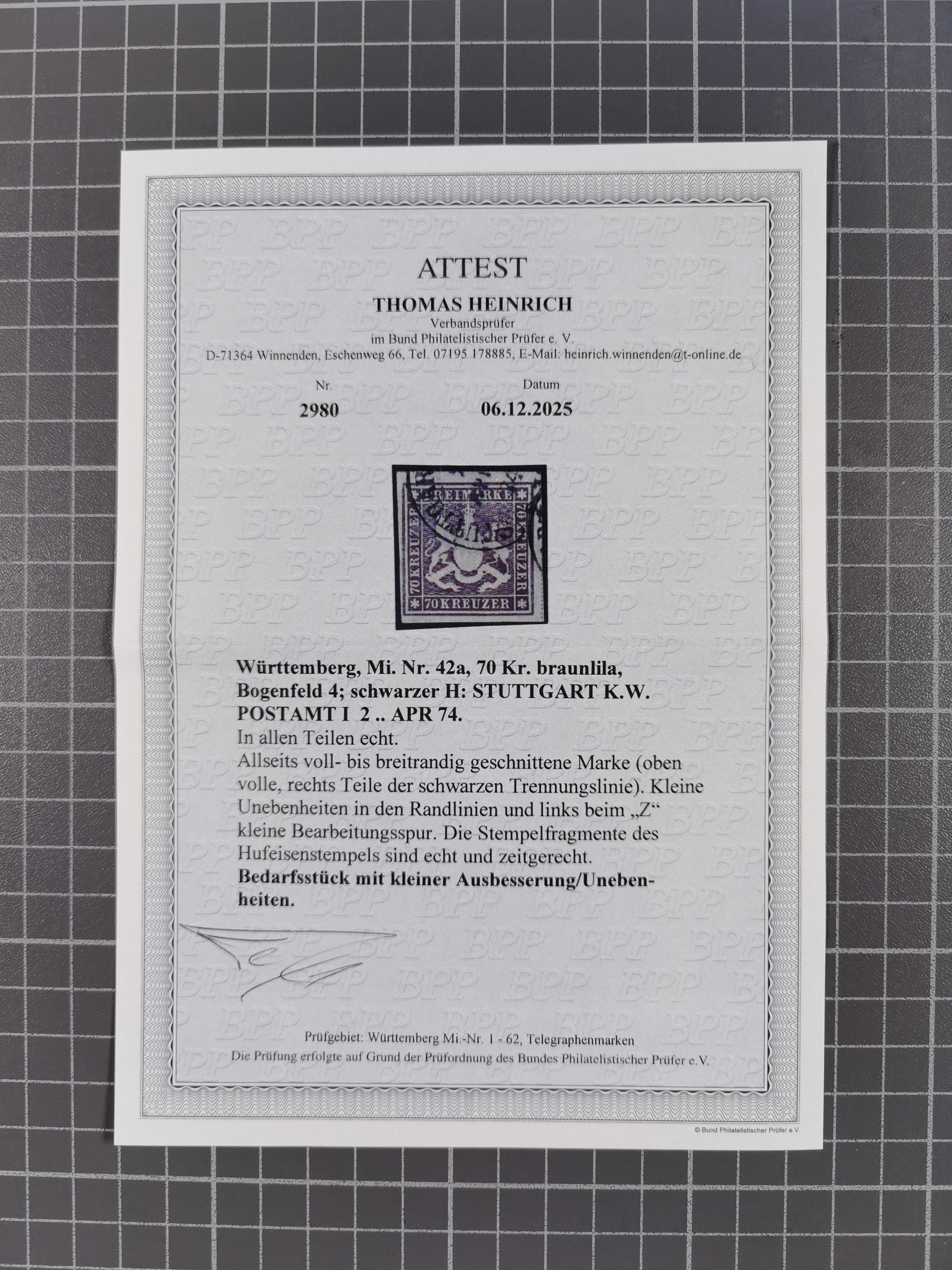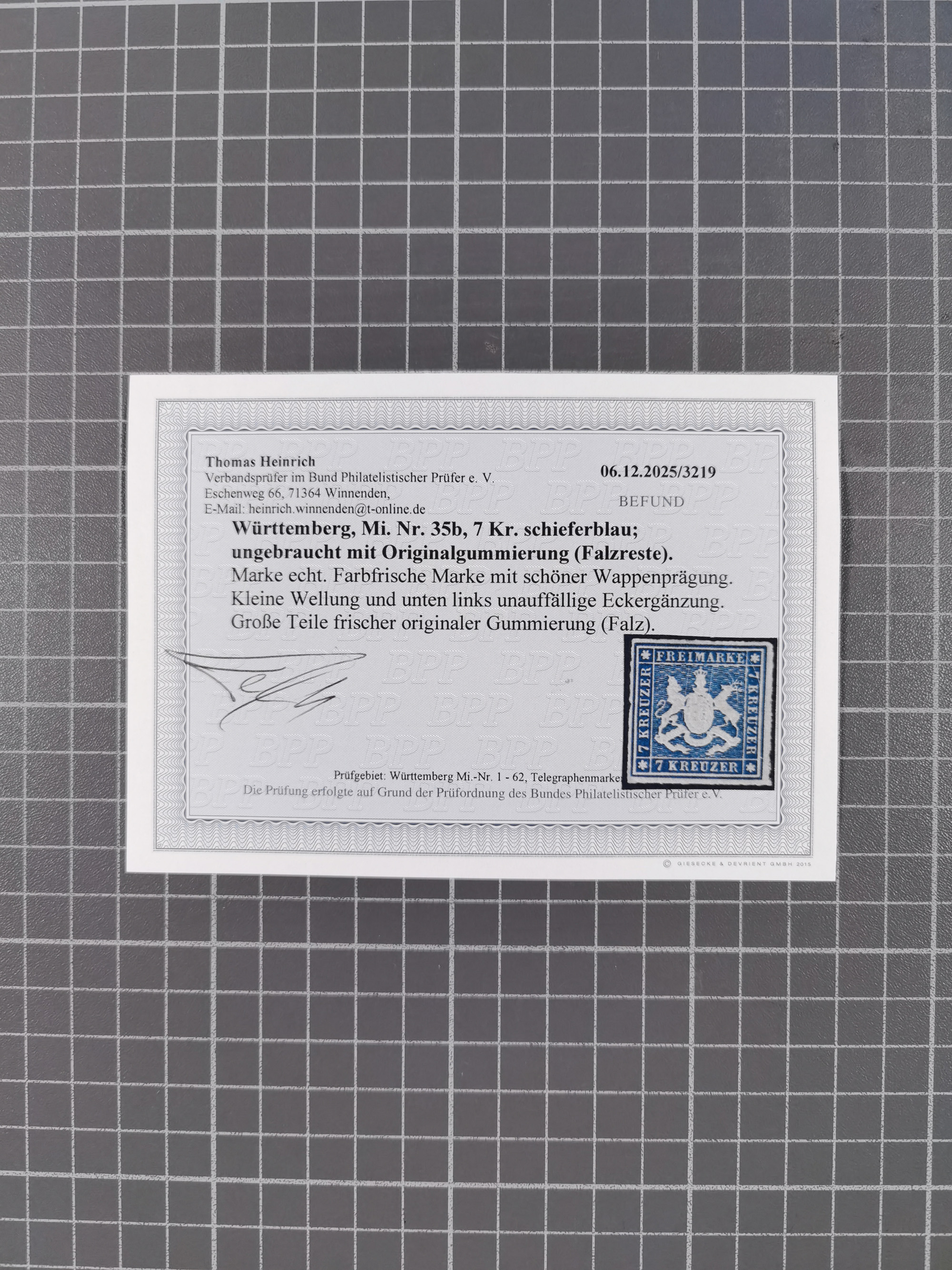 1851/67 (ca.), ungebrauchte und gestempelte kleine Partie besserer Werte, dabei Württemberg Mi. 3b, 5 und 10 a je ungebraucht sowie 42 a gestempelt, Hannover 18 gestempelt, Oldenburg 5, etc., dazu DR 28 (repariert, signiert Georg Bühler). 5 Atteste und ein Befund Heinrich bzw. Jäschke-L. BPP (alle 2026)