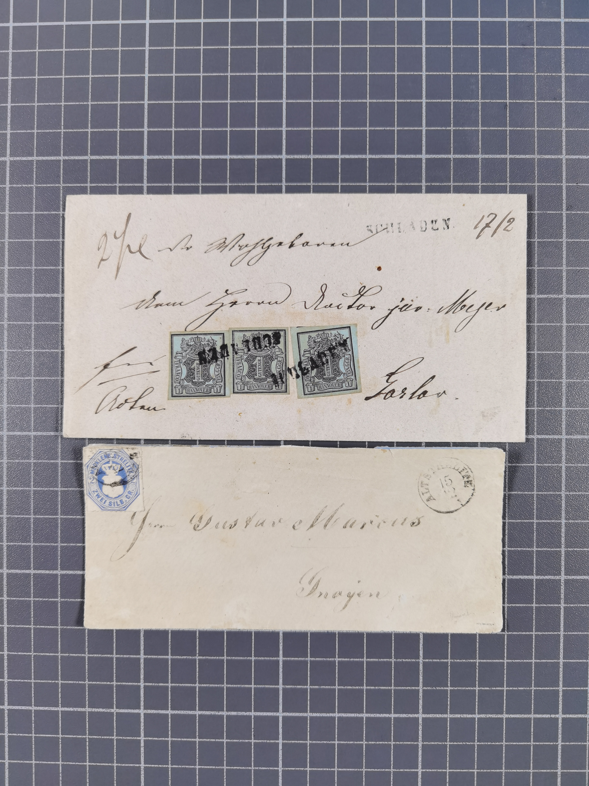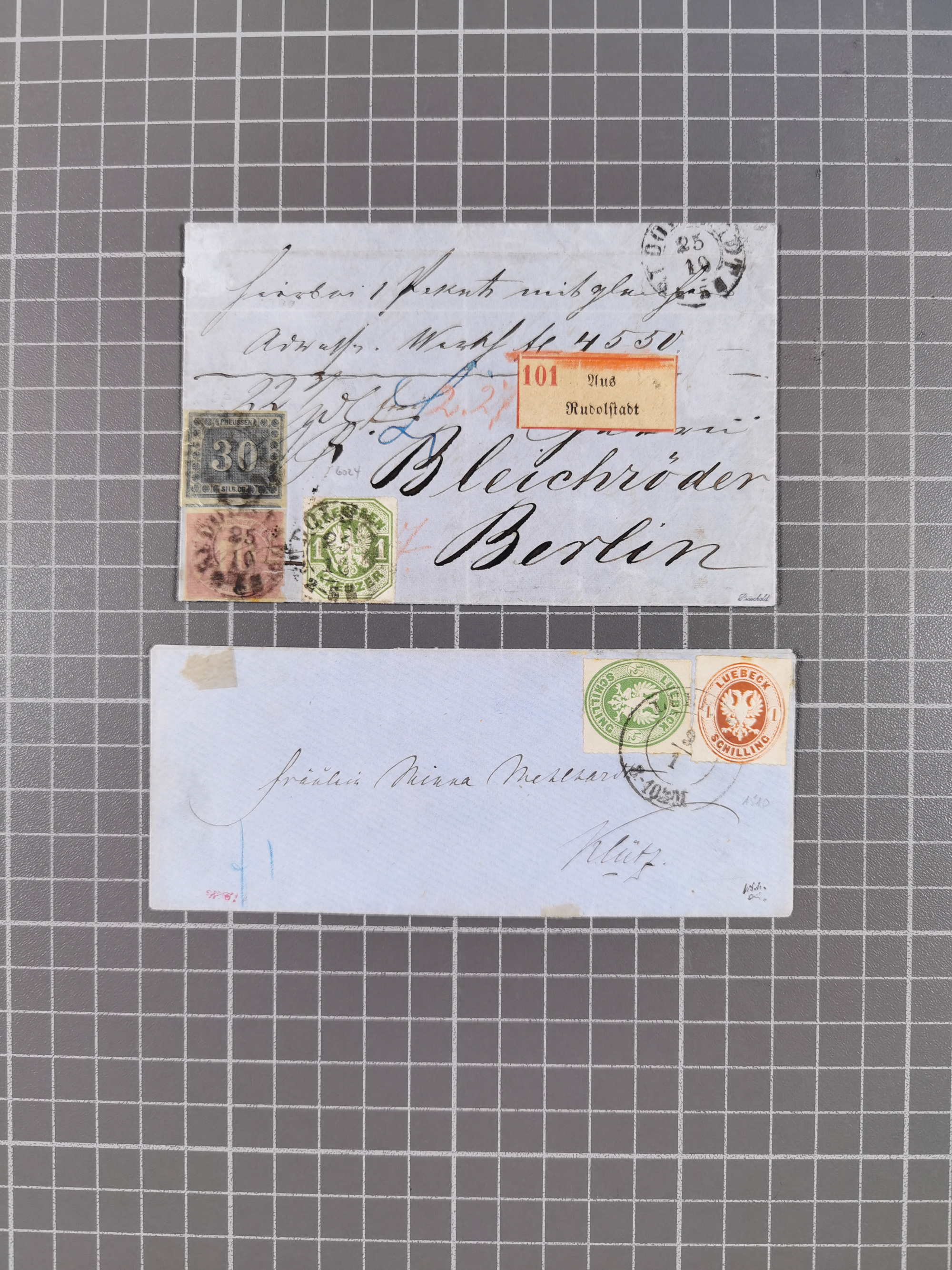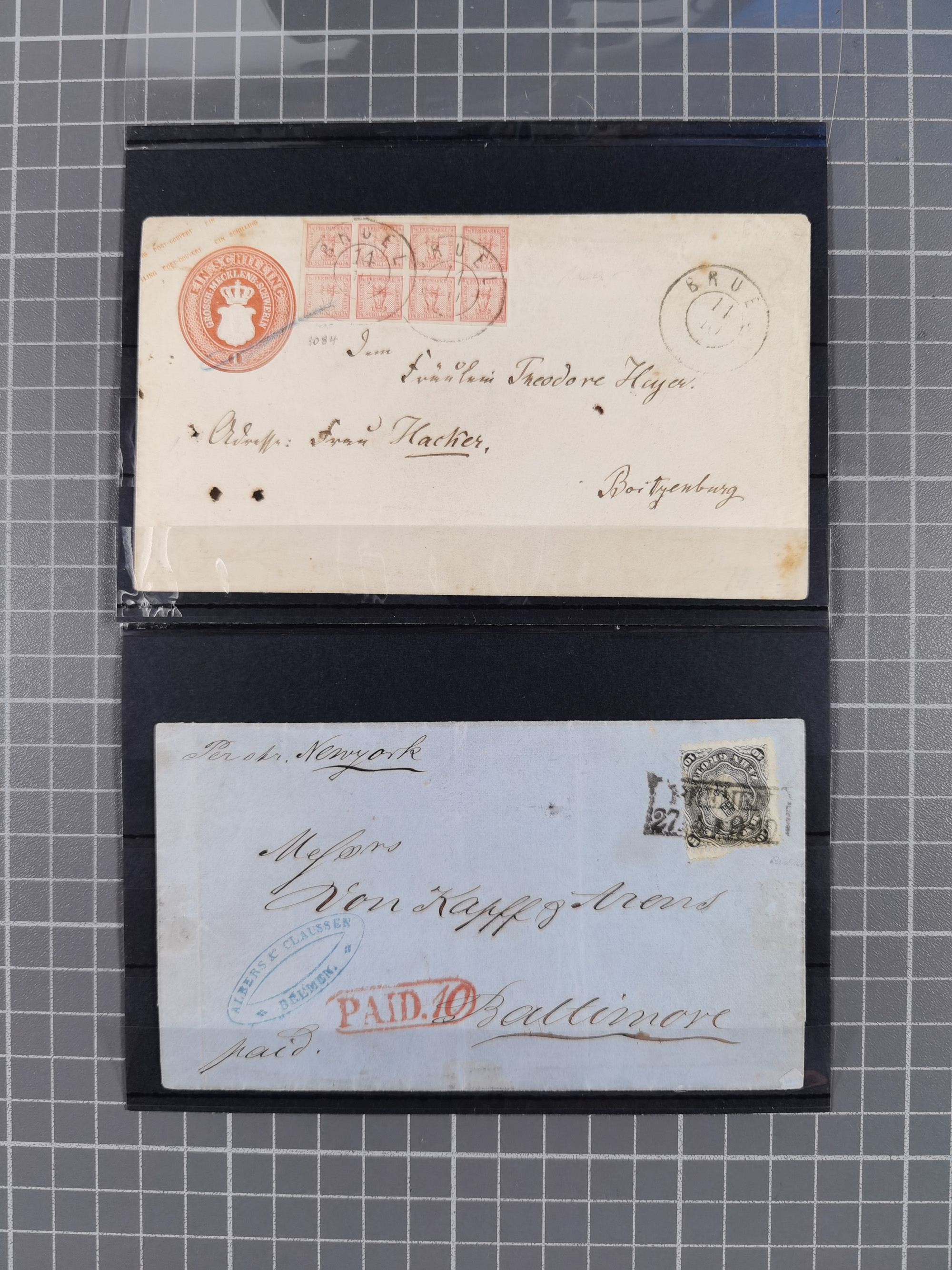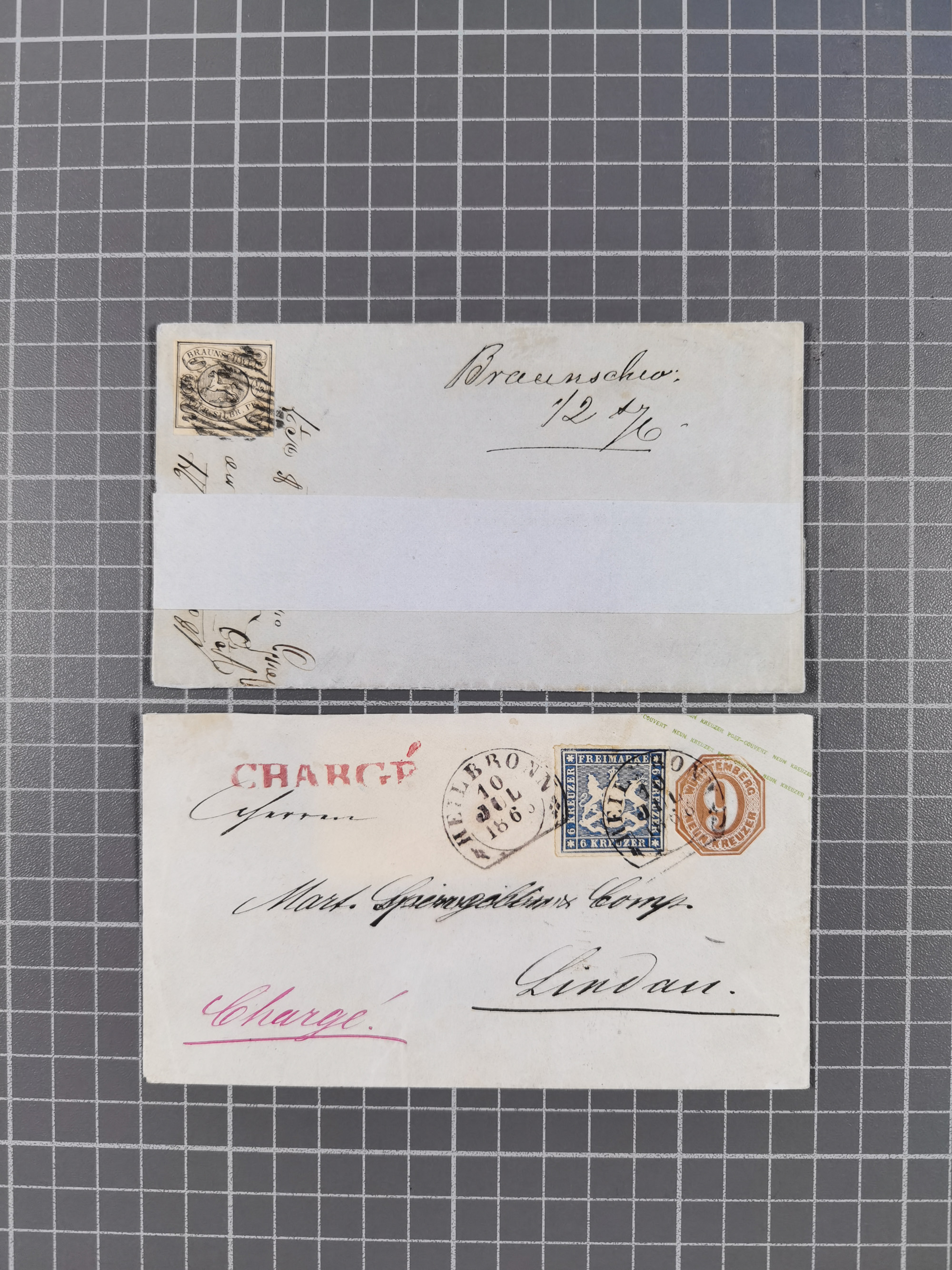 1850/72, 10 frankierte Briefe und Ganzsachen, dabei Braunschweig Mi. 5 auf Drucksache, Bremen Mi. 14, Preußen Mi. 20-21 in Mischfrankatur mit 1 Kr., etc. Etwas unterschiedlich Erhaltung