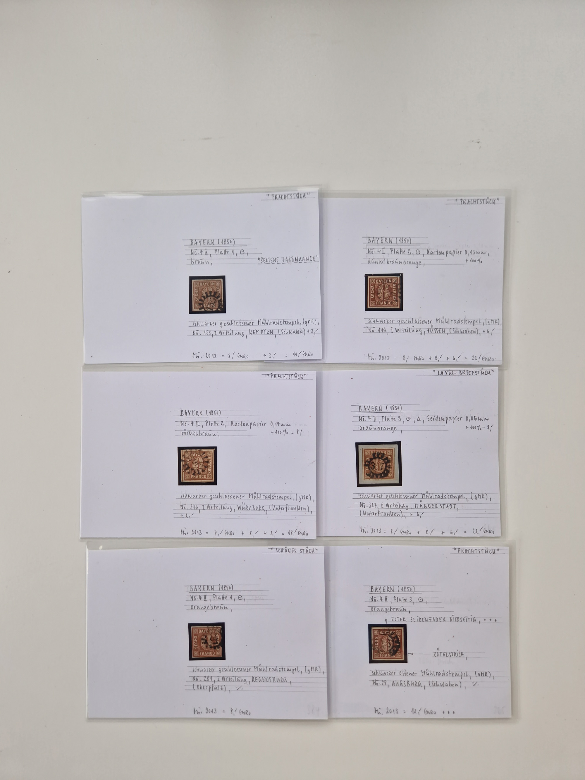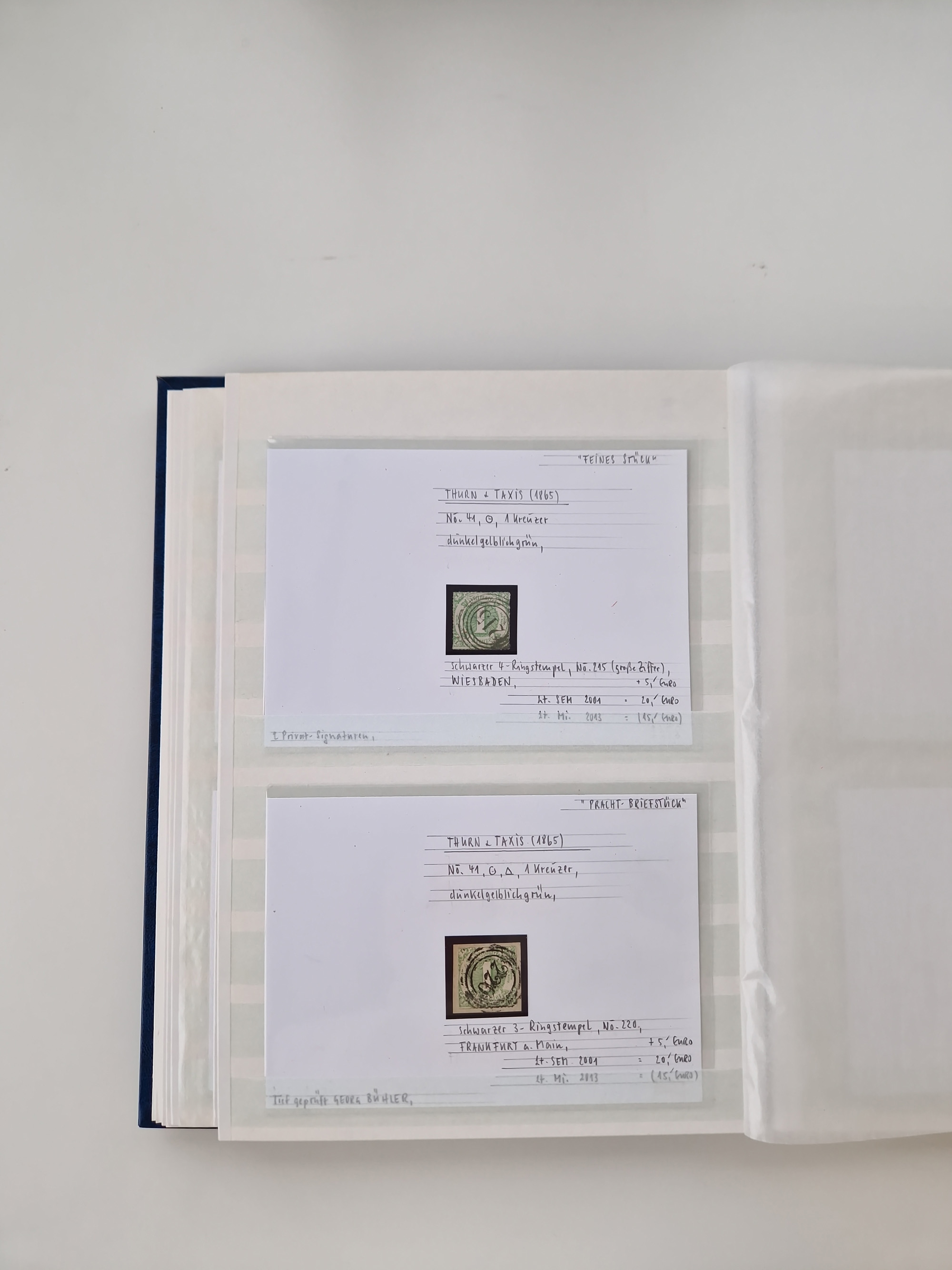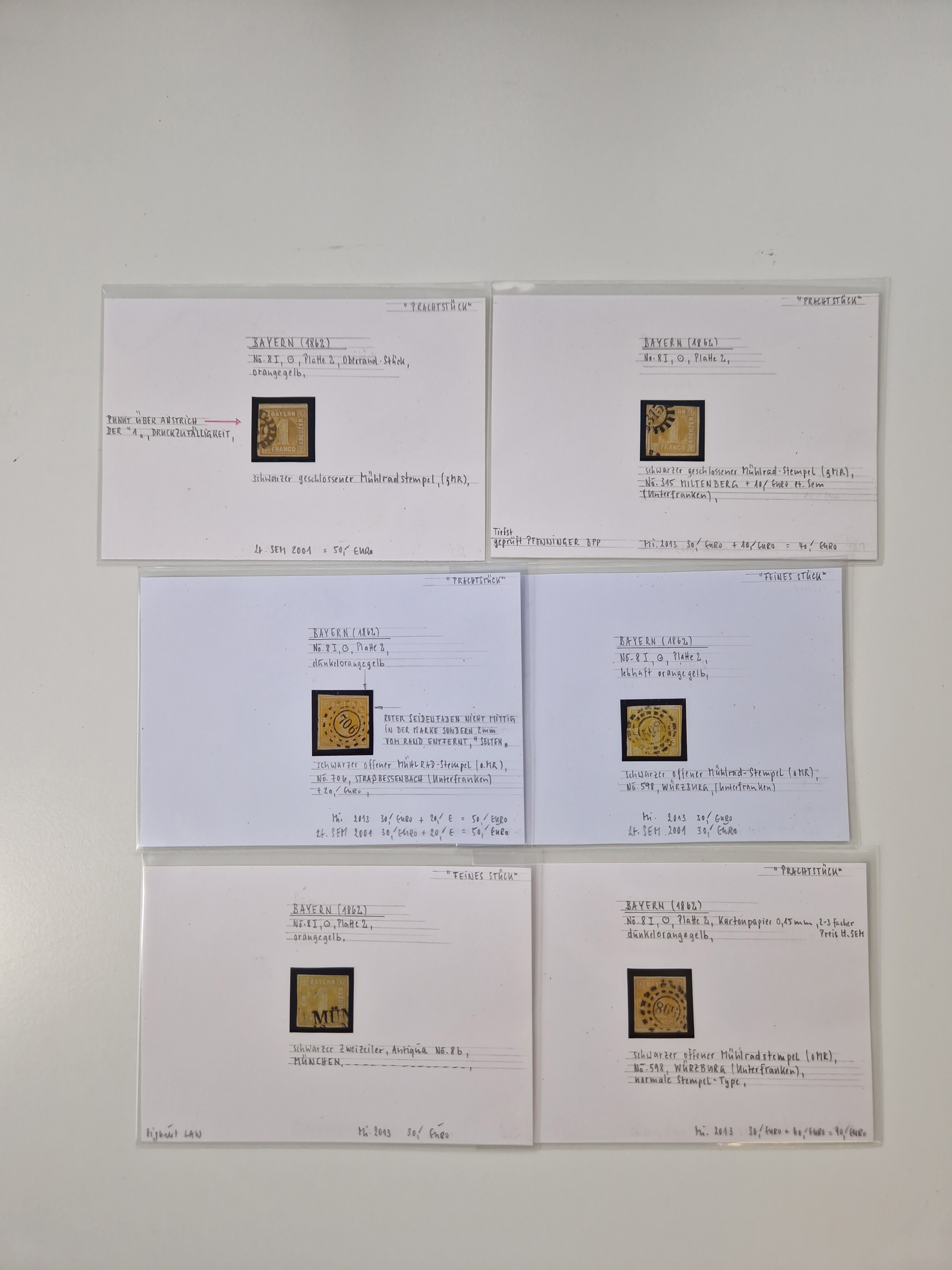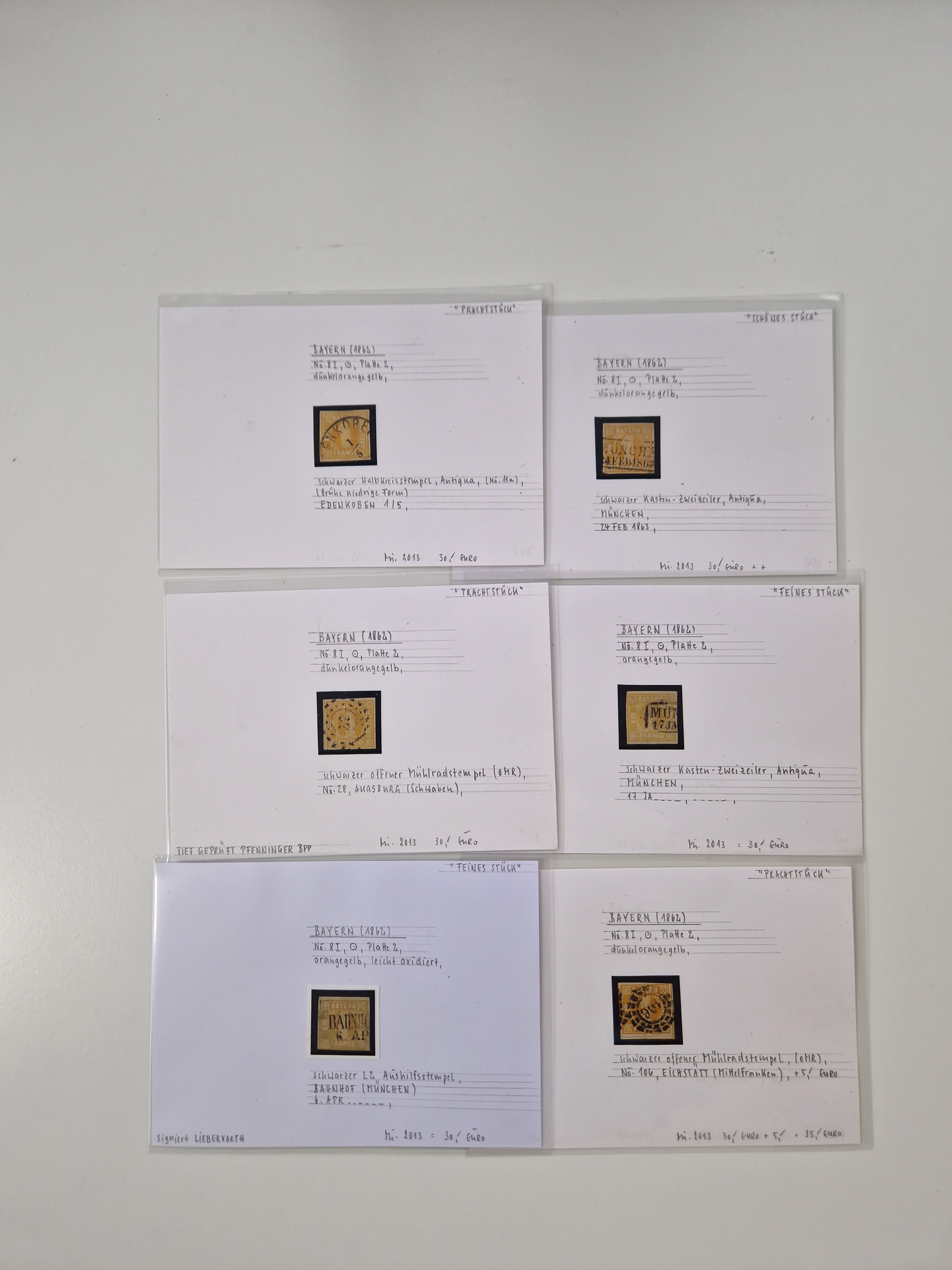 1851/68, gestempelte Sammlung inkl. Landpost-Portomarken und etlichen Farben. Dabei u.a. Mi.-Nr. 1a (tadellos, FA Stegmüller BPP), Randstück Mi.-Nr. 1b (FA Brettl BPP), 16 (KB Stegmüller BPP), Mi.-Nr. 19Ab (FA Brettl BPP), Mi.-Nr. 21a (tadellos, FA Stegmüller BPP), Mi.-Nr. 22b (FA Englert BPP und Flemming BPP) und Landpost Mi.-Nr. 1-2x auf zwei Briefstücken (je mit KB Stegmüller BPP “einwandfrei”. Fast alle besseren Marken sind bestens signiert oder haben KB, FB und Fotoatteste