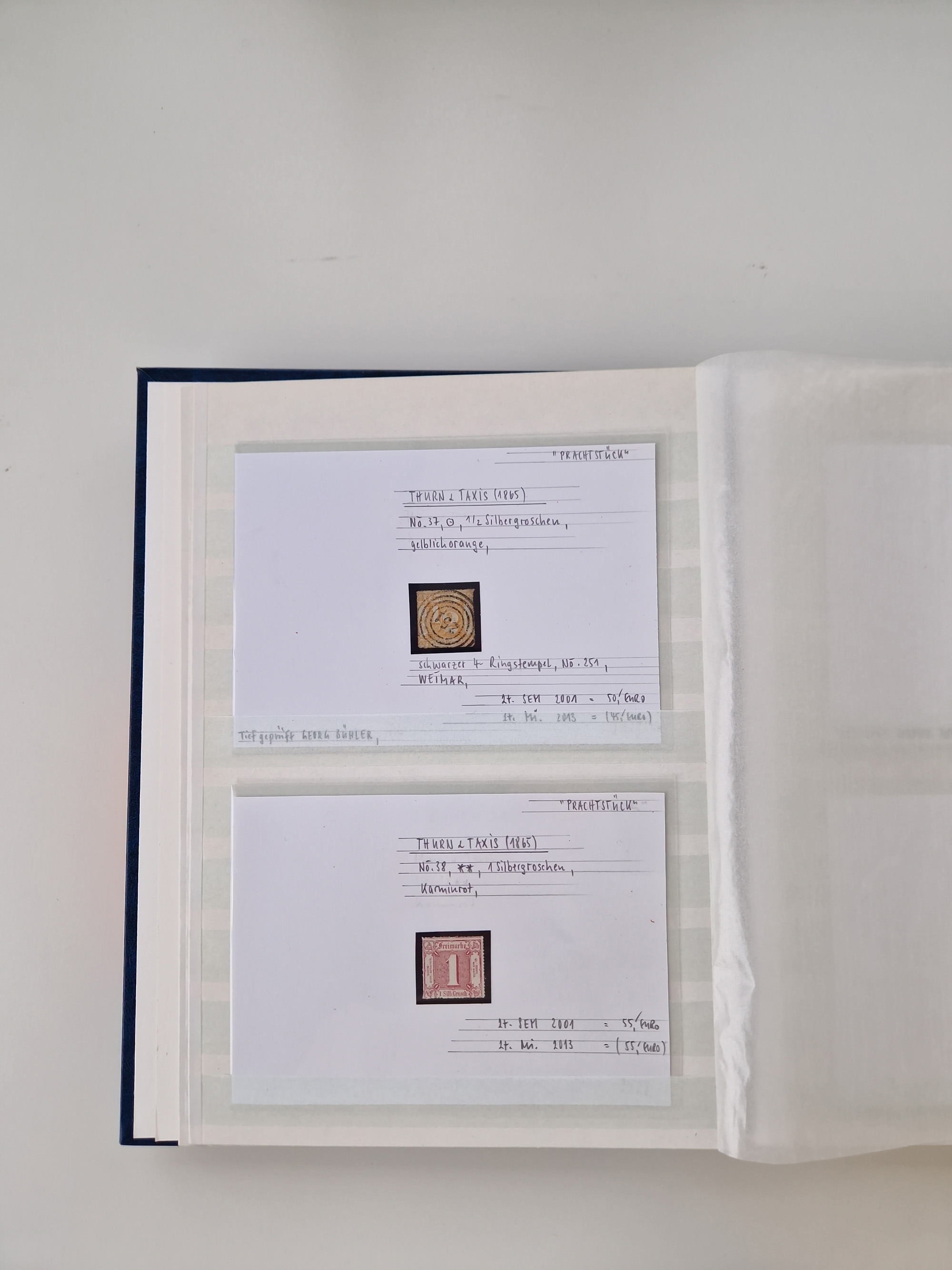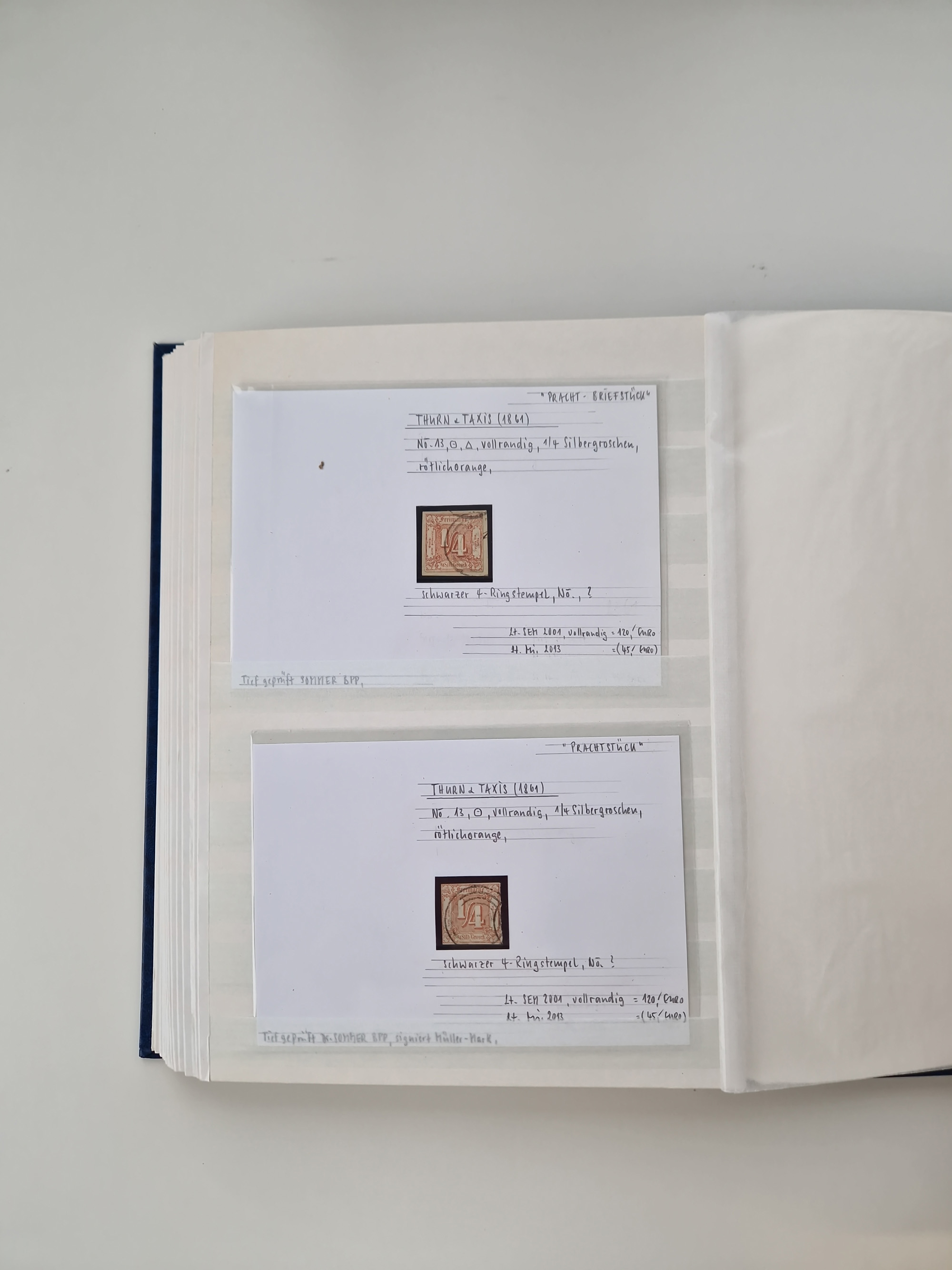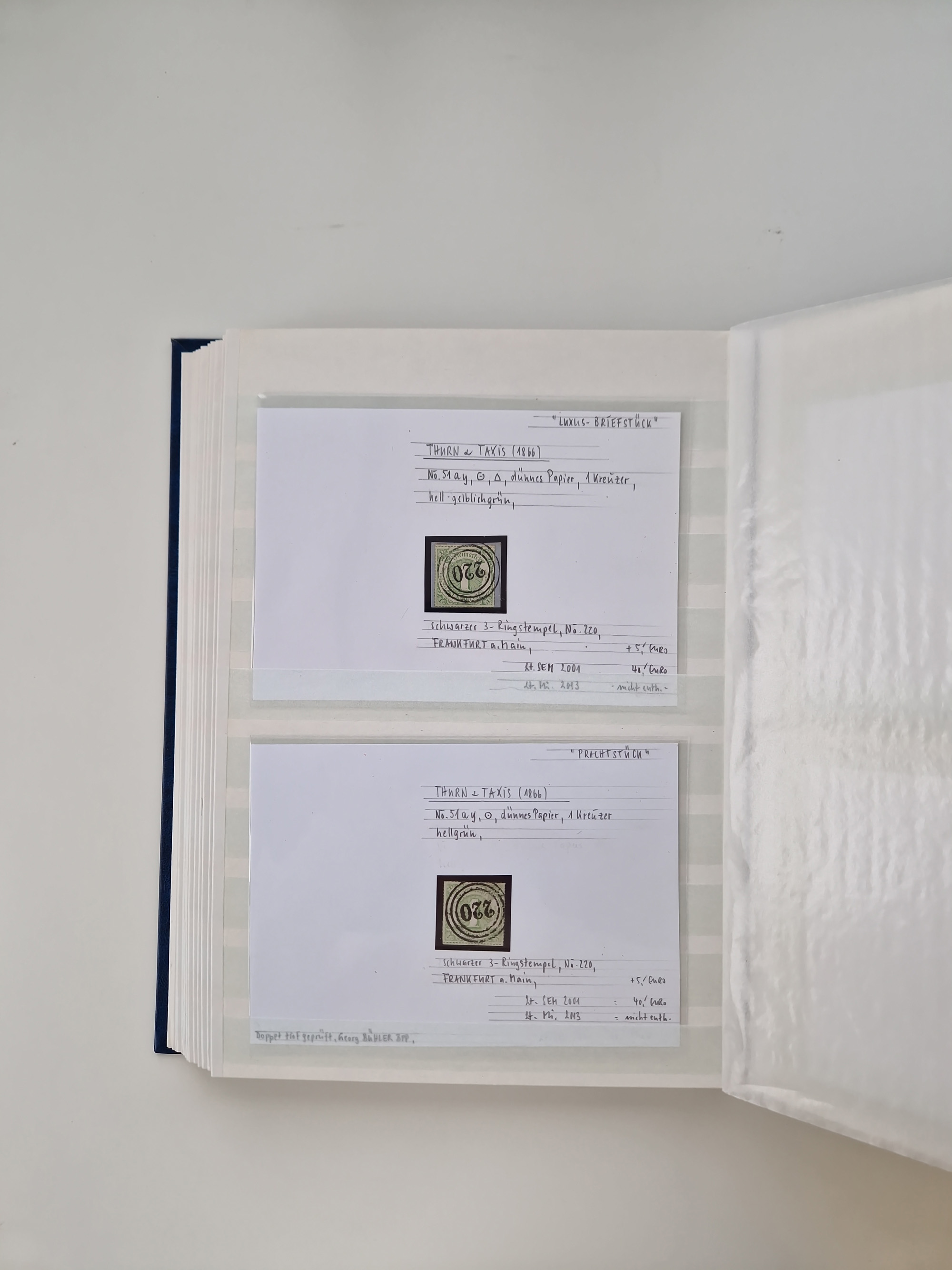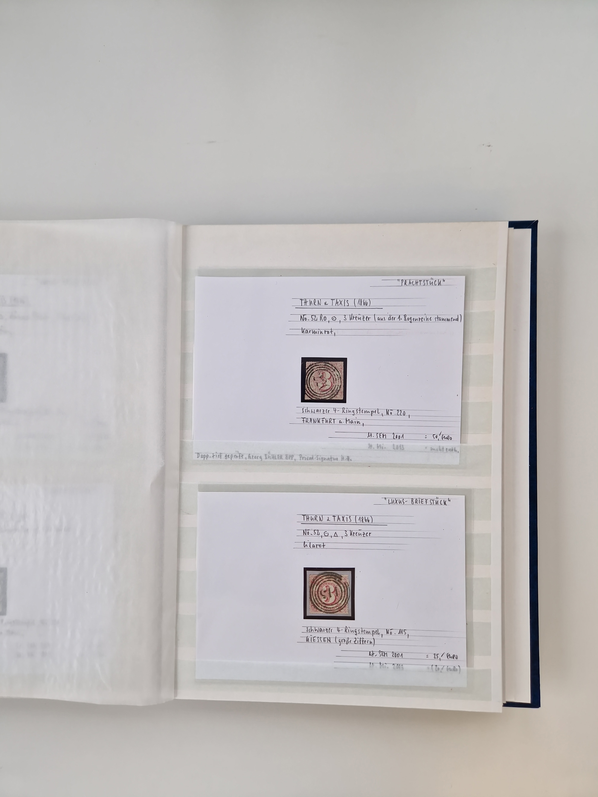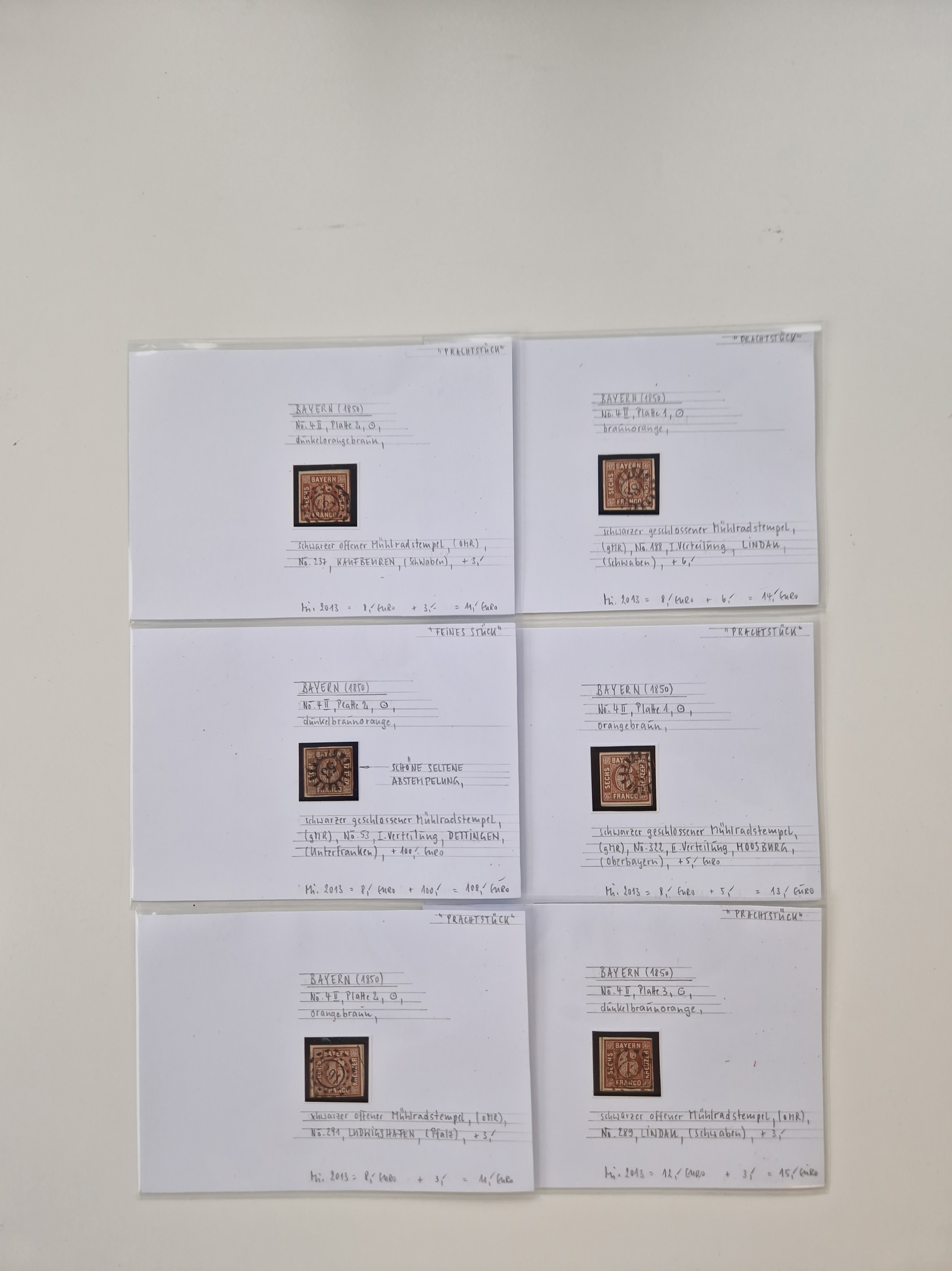 1851/68, gestempelte Sammlung inkl. Landpost-Portomarken und etlichen Farben. Dabei u.a. Mi.-Nr. 1a (tadellos, FA Stegmüller BPP), Randstück Mi.-Nr. 1b (FA Brettl BPP), 16 (KB Stegmüller BPP), Mi.-Nr. 19Ab (FA Brettl BPP), Mi.-Nr. 21a (tadellos, FA Stegmüller BPP), Mi.-Nr. 22b (FA Englert BPP und Flemming BPP) und Landpost Mi.-Nr. 1-2x auf zwei Briefstücken (je mit KB Stegmüller BPP “einwandfrei”. Fast alle besseren Marken sind bestens signiert oder haben KB, FB und Fotoatteste