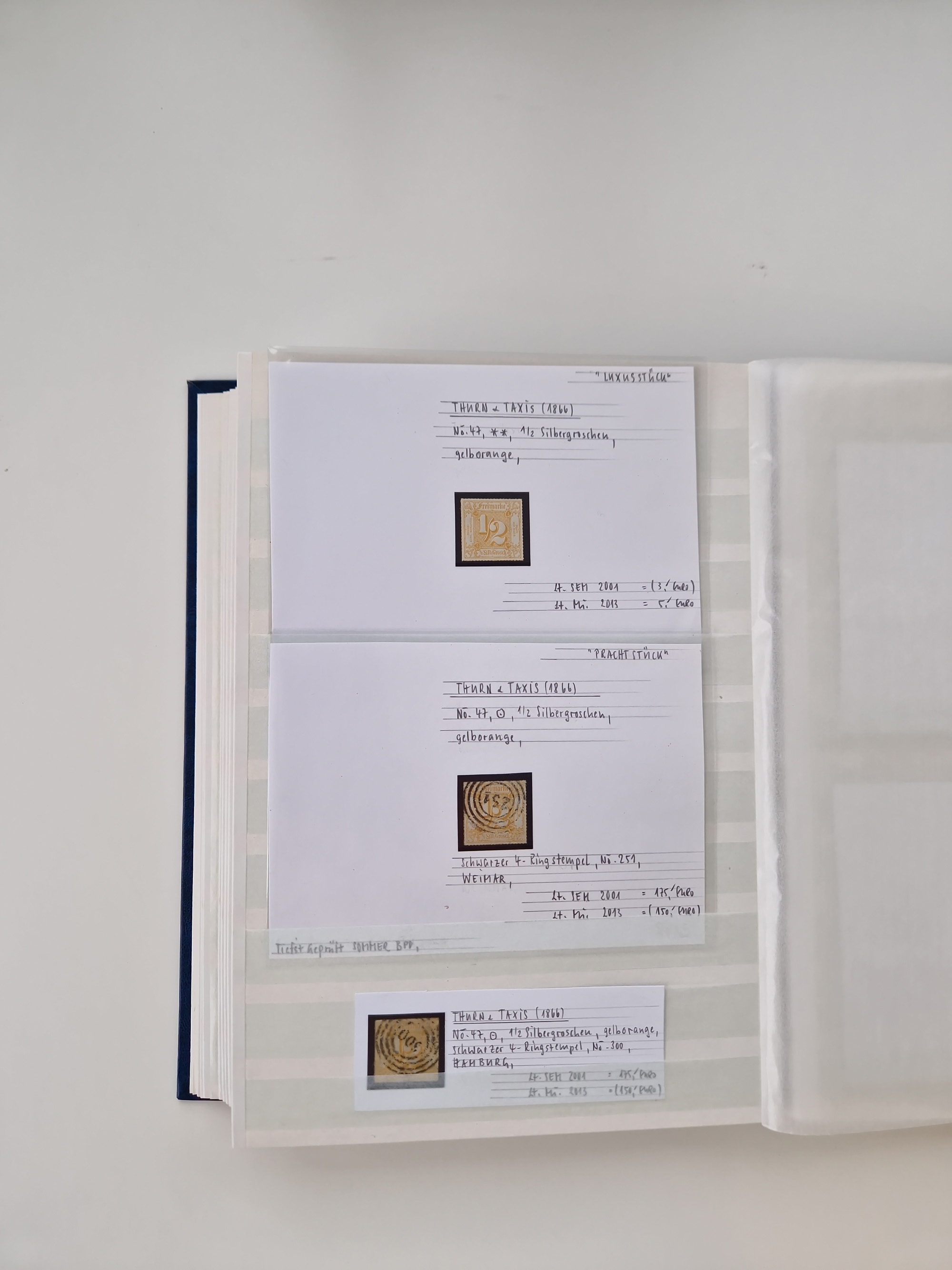 Baden bis Württemberg, gestempelter/ungebrauchter und postfrischer Sammlungsbestand, dabei u.a. Bayern Mi.-Nr. 1Ia ungebraucht vollrandig und einwandfrei (FA Sem BPP), Hannover Mi.-Nr. 17y gestempelt breitrandig und einwandfrei (FA Berger BPP), Thurn u. Taxis Mi.-Nr. 7 und 8 auf Faltbrief mit EKr. “MAINZ”, 45 gestempelt (repariert und dopp. sign. Pfenniger), sowie einige - meist signierte Werte, ferner Dubletten sowie einige Briefe, 9 Kurz-/Befunde BPP, in drei Steckalben