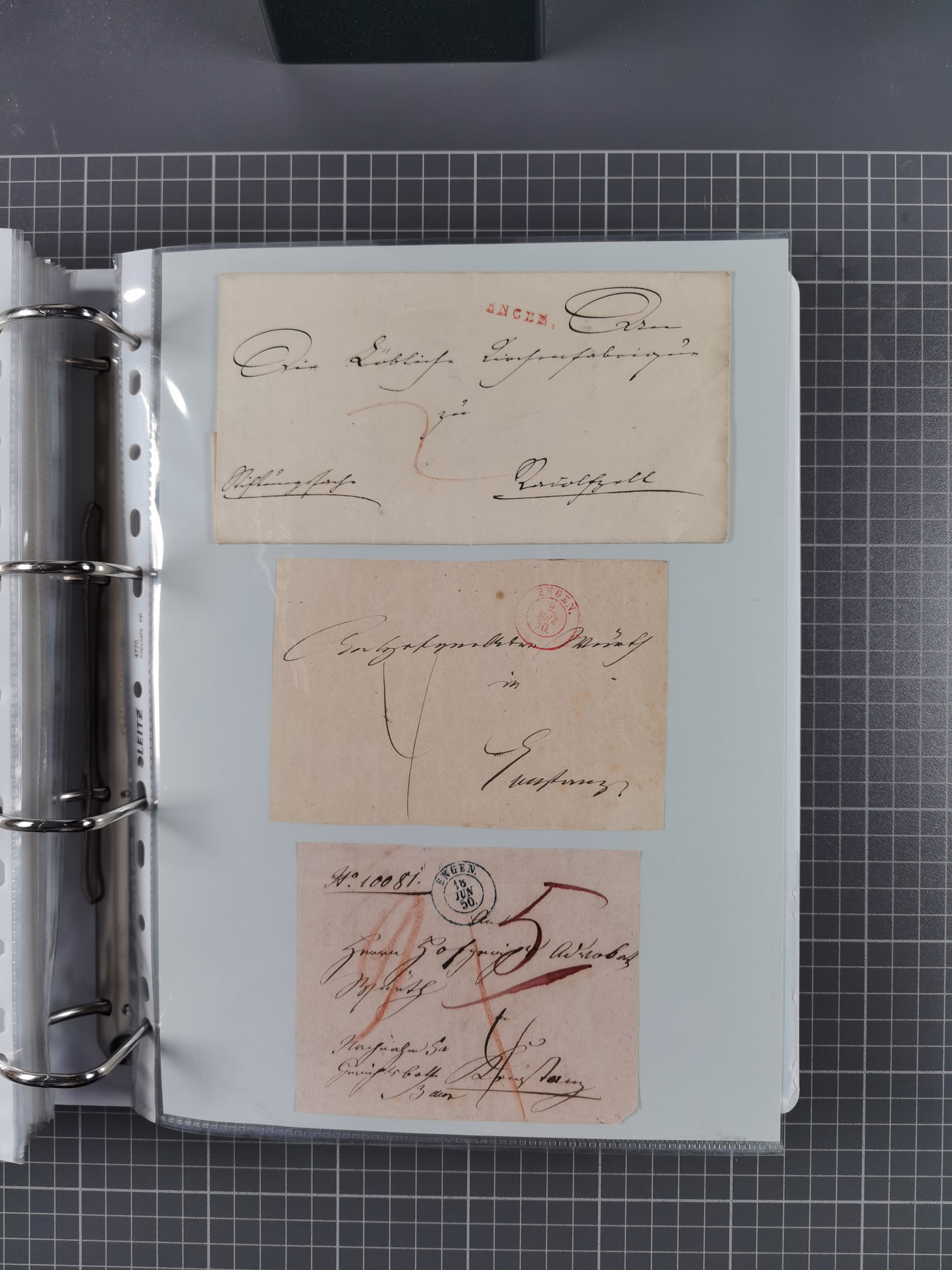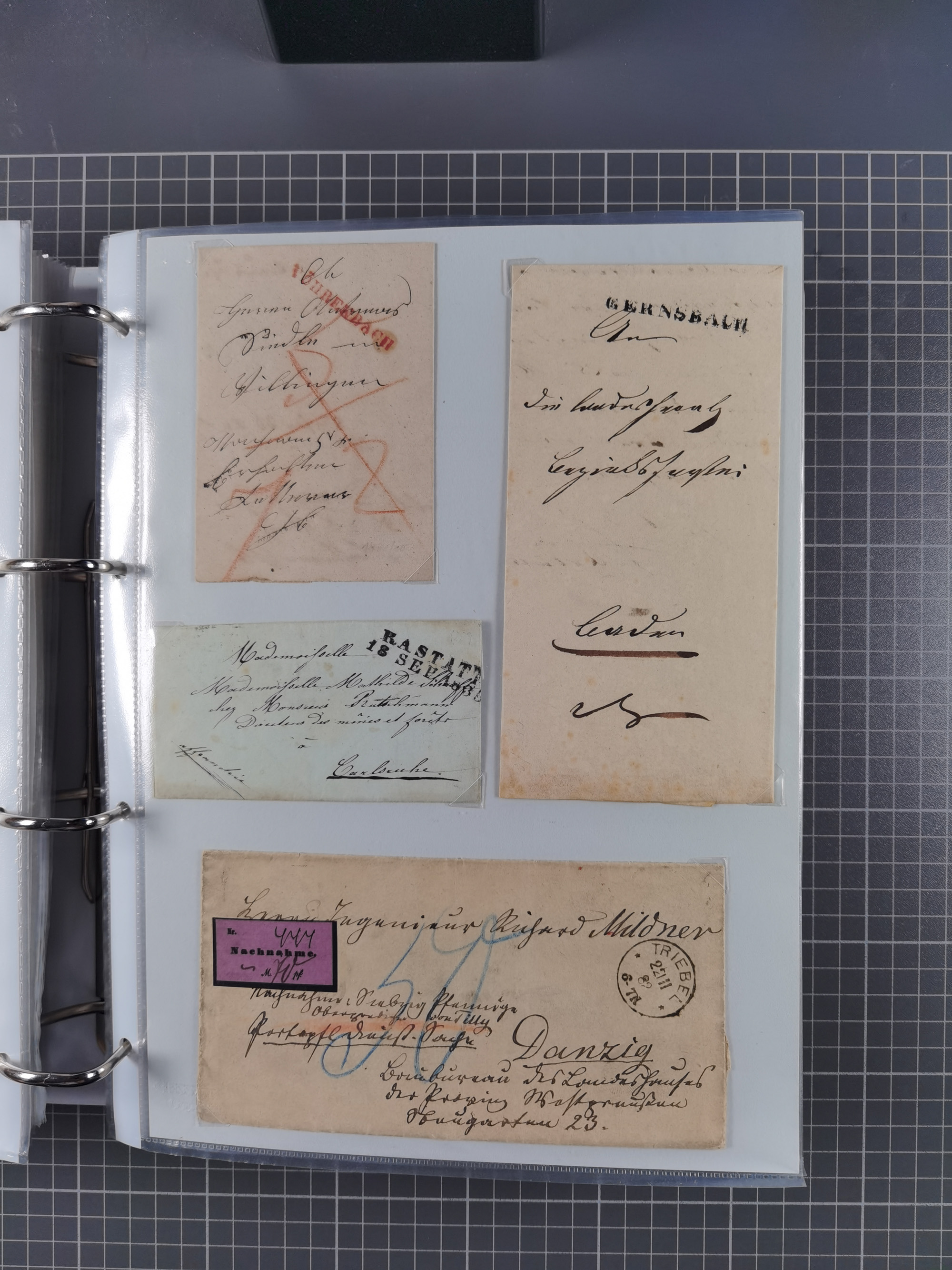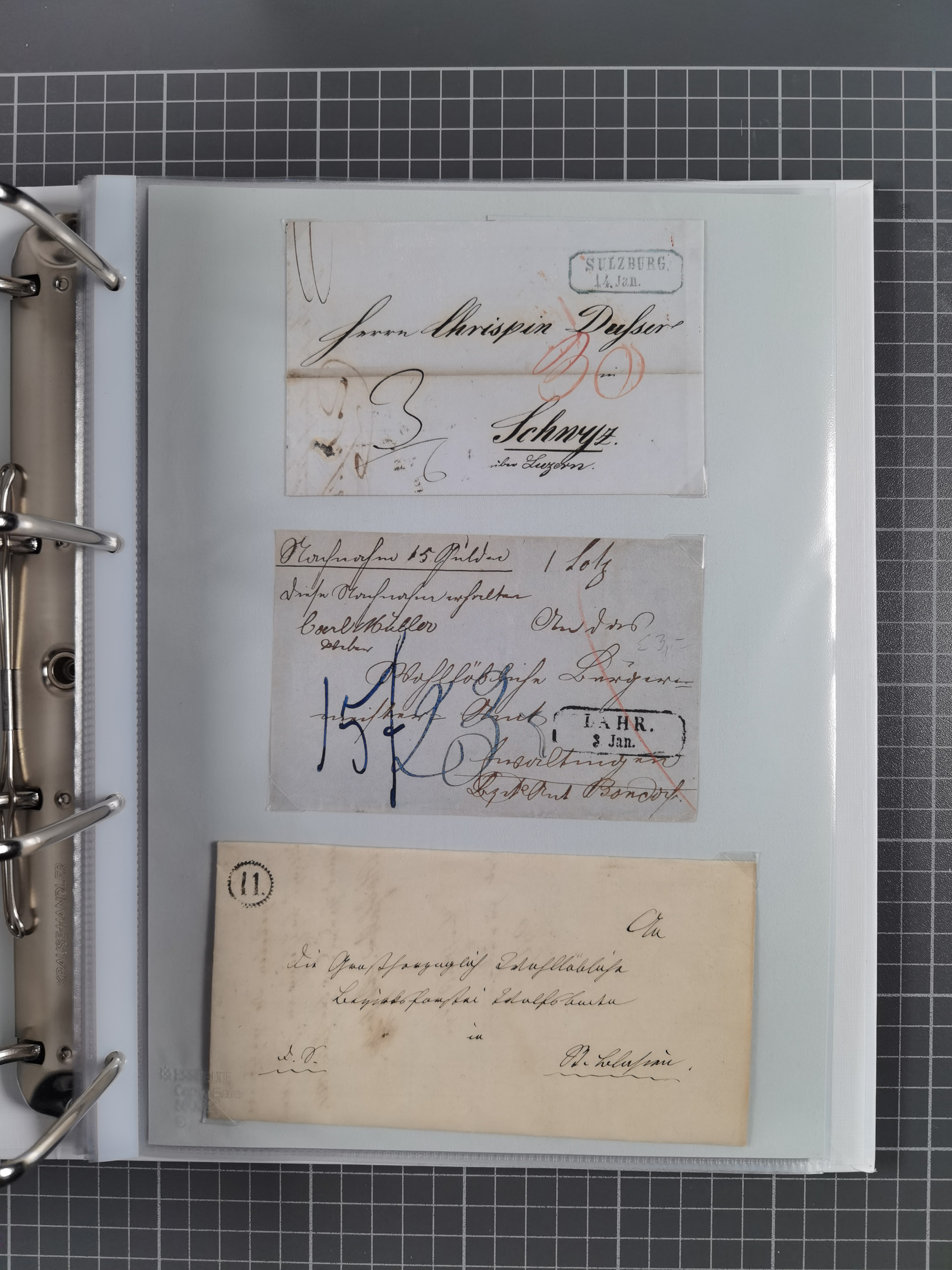 1750/1850 (ca.), kleine aufgezogene Sammlung mit 35 Briefen/Briefhüllen, dabei Express- und Charge-Briefe, Transitpost, etc.