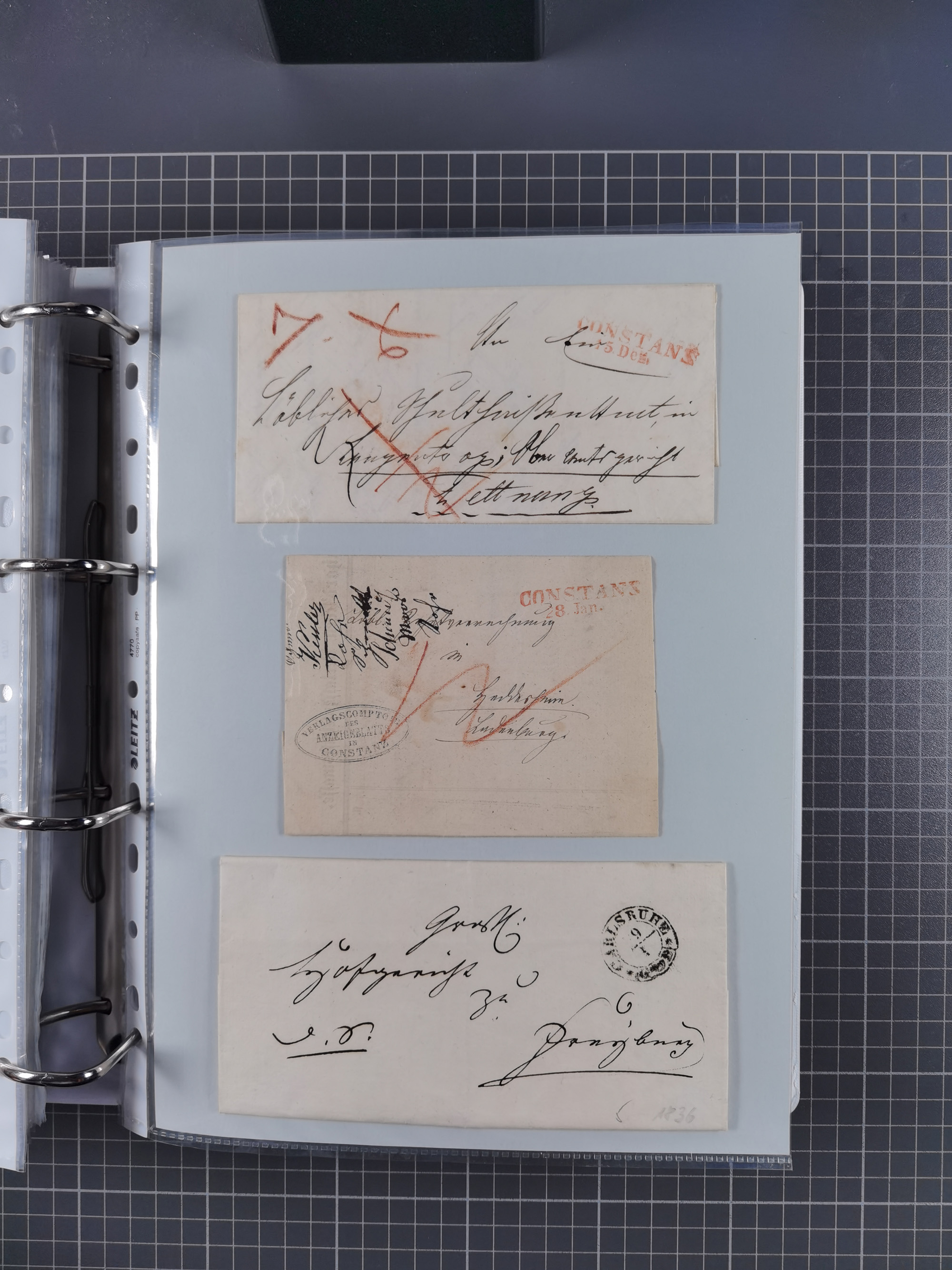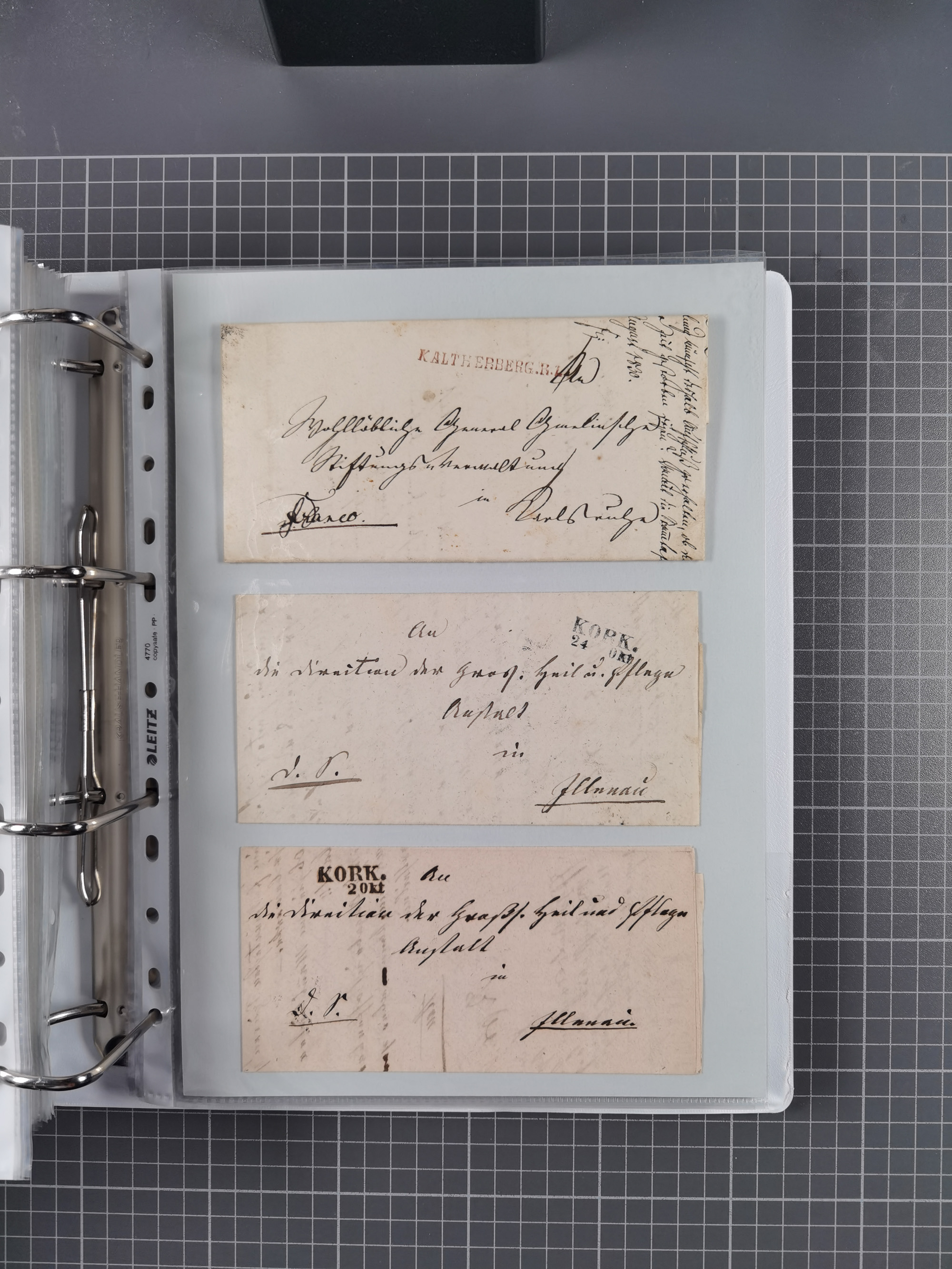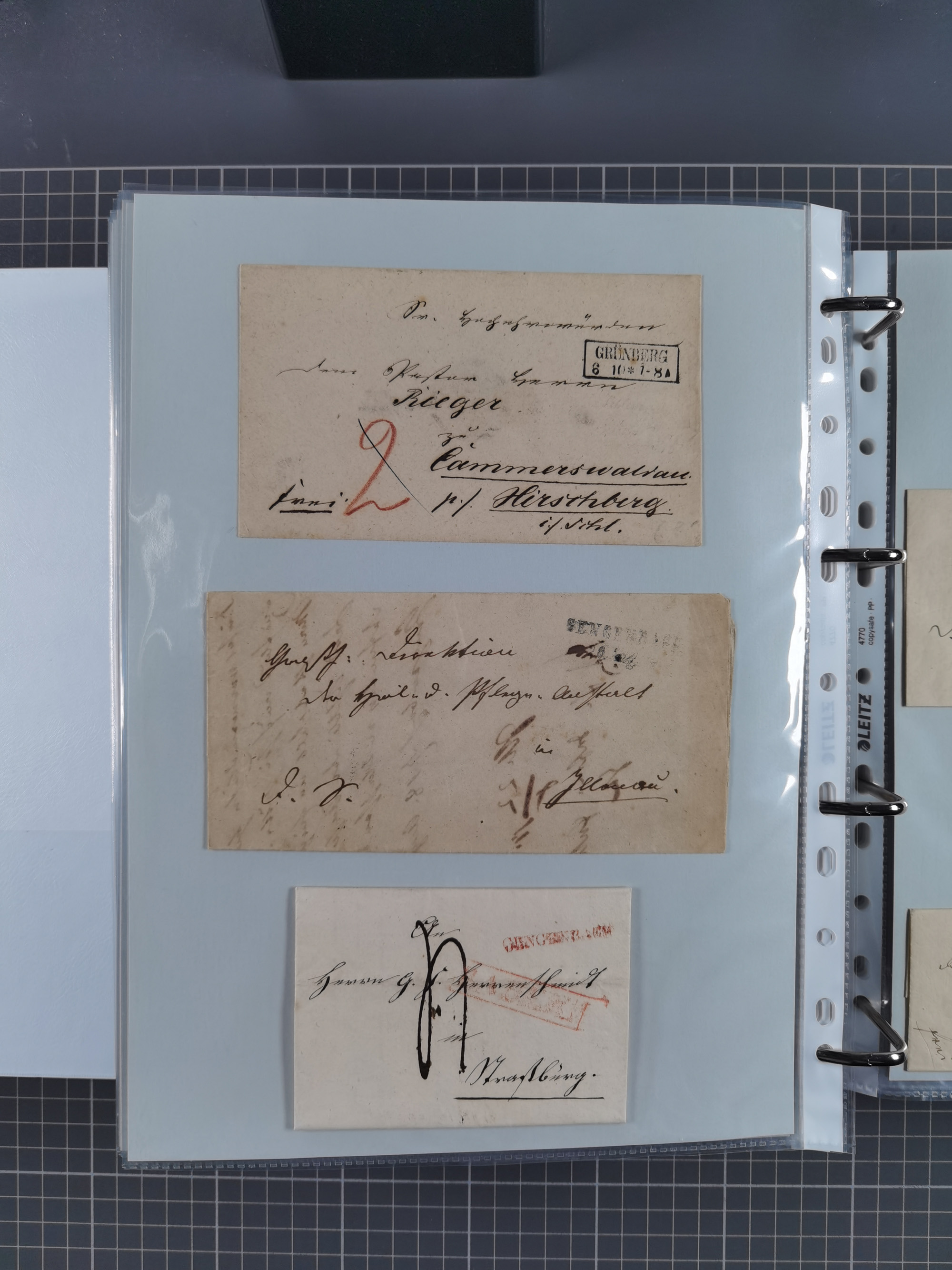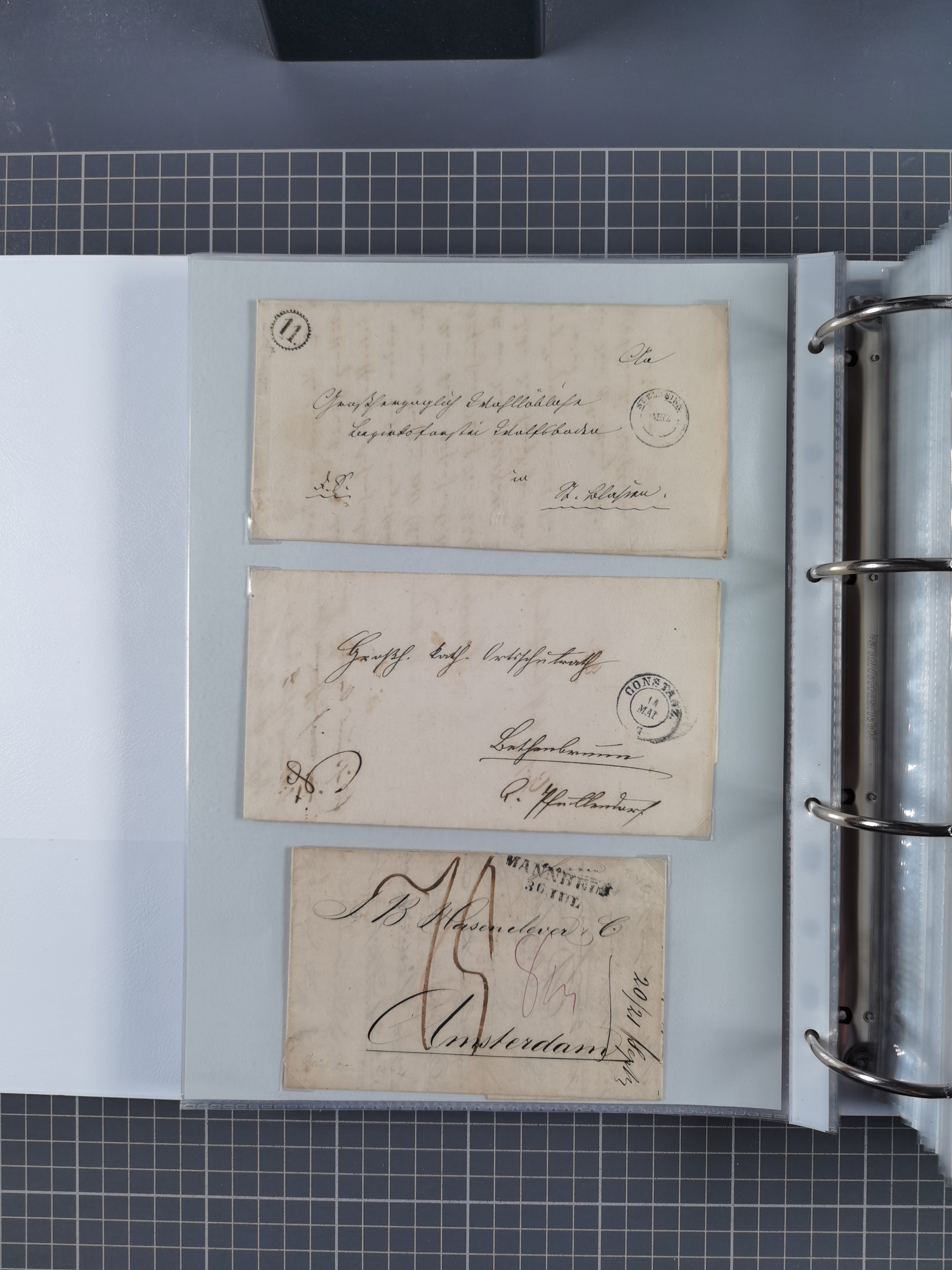 1750/1850 (ca.), kleine aufgezogene Sammlung mit 35 Briefen/Briefhüllen, dabei Express- und Charge-Briefe, Transitpost, etc.