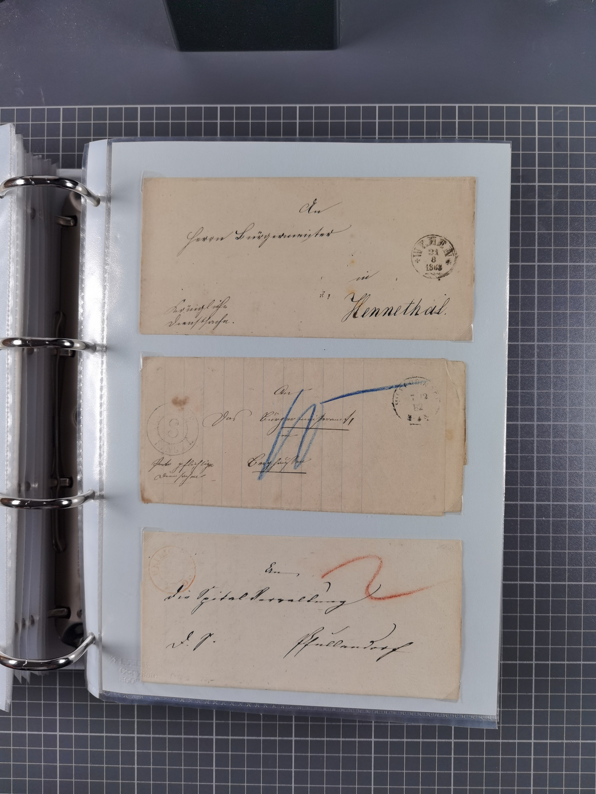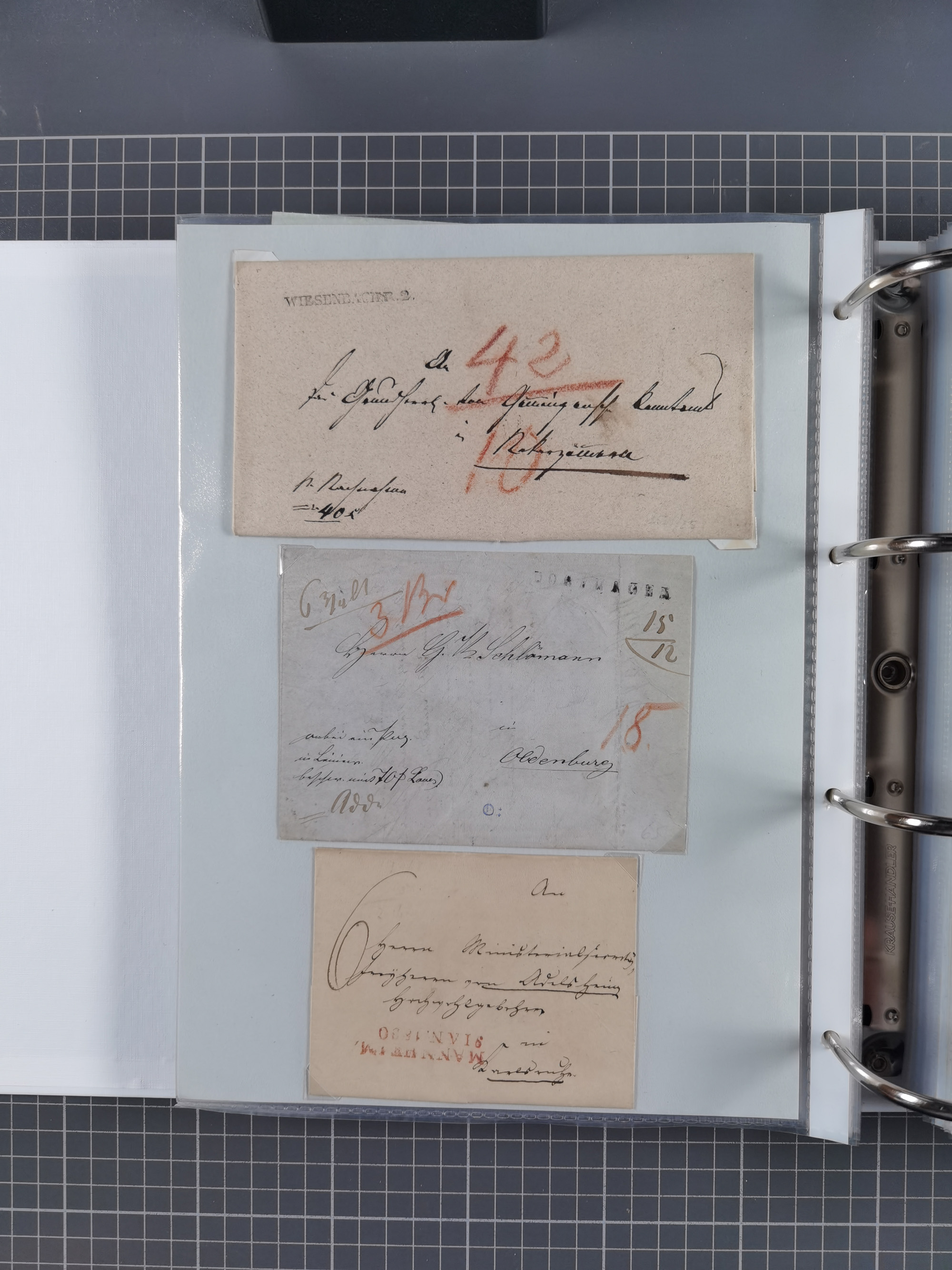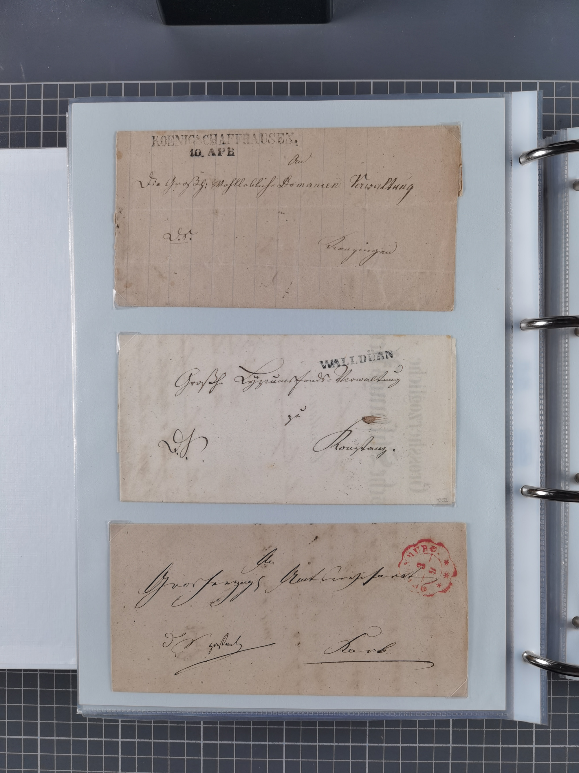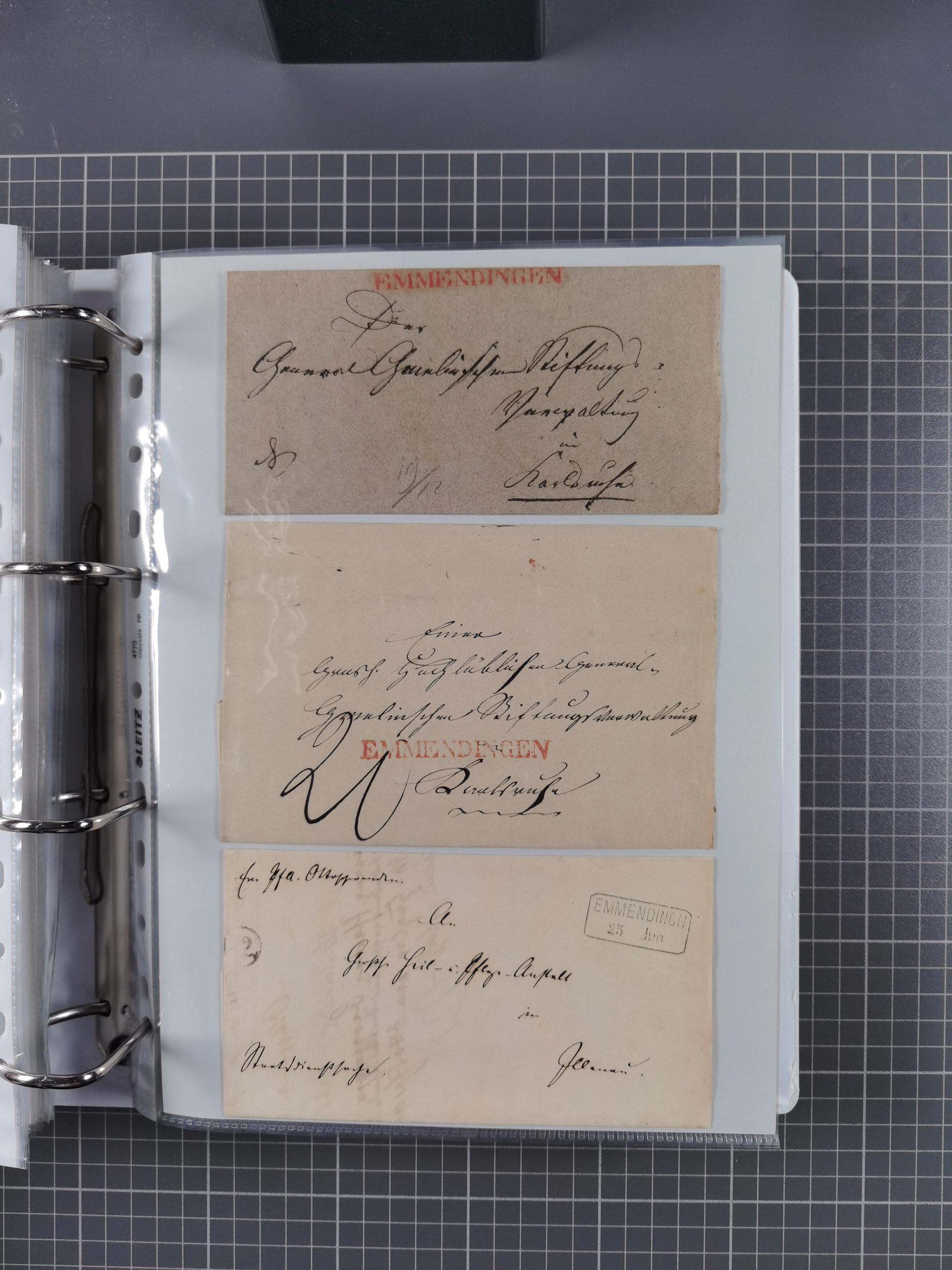 1820/60 (ca.), über 600 Vorphila- und Dienstbriefe, dabei rote und blaue Stempel, viele verschiedene Orte