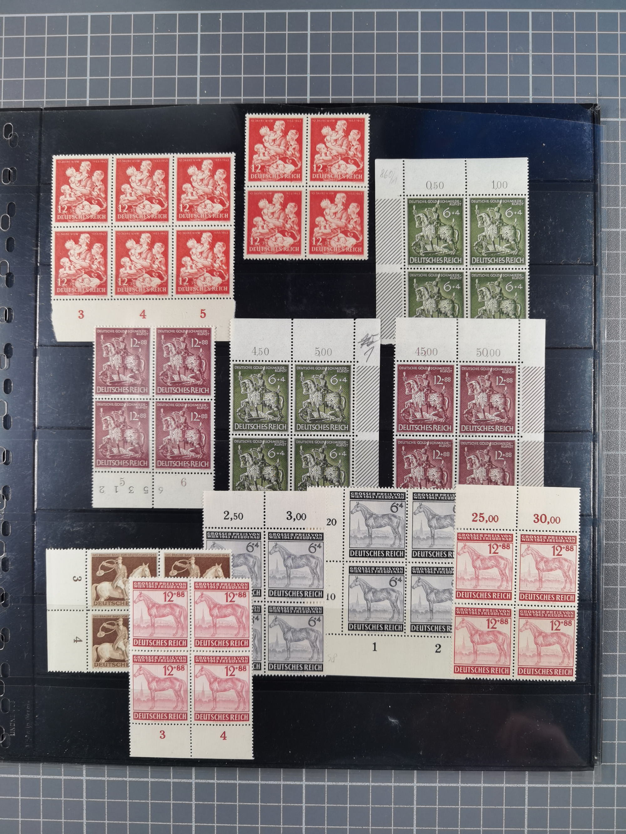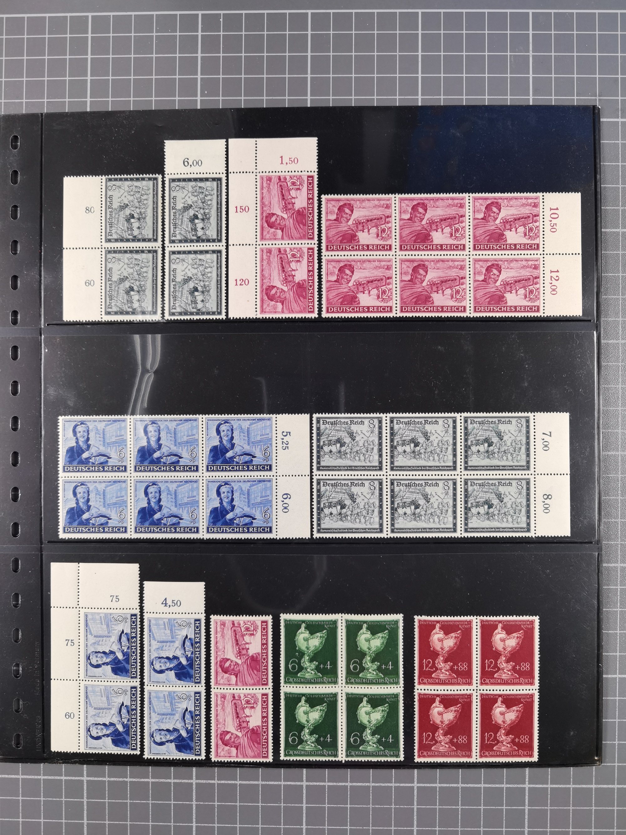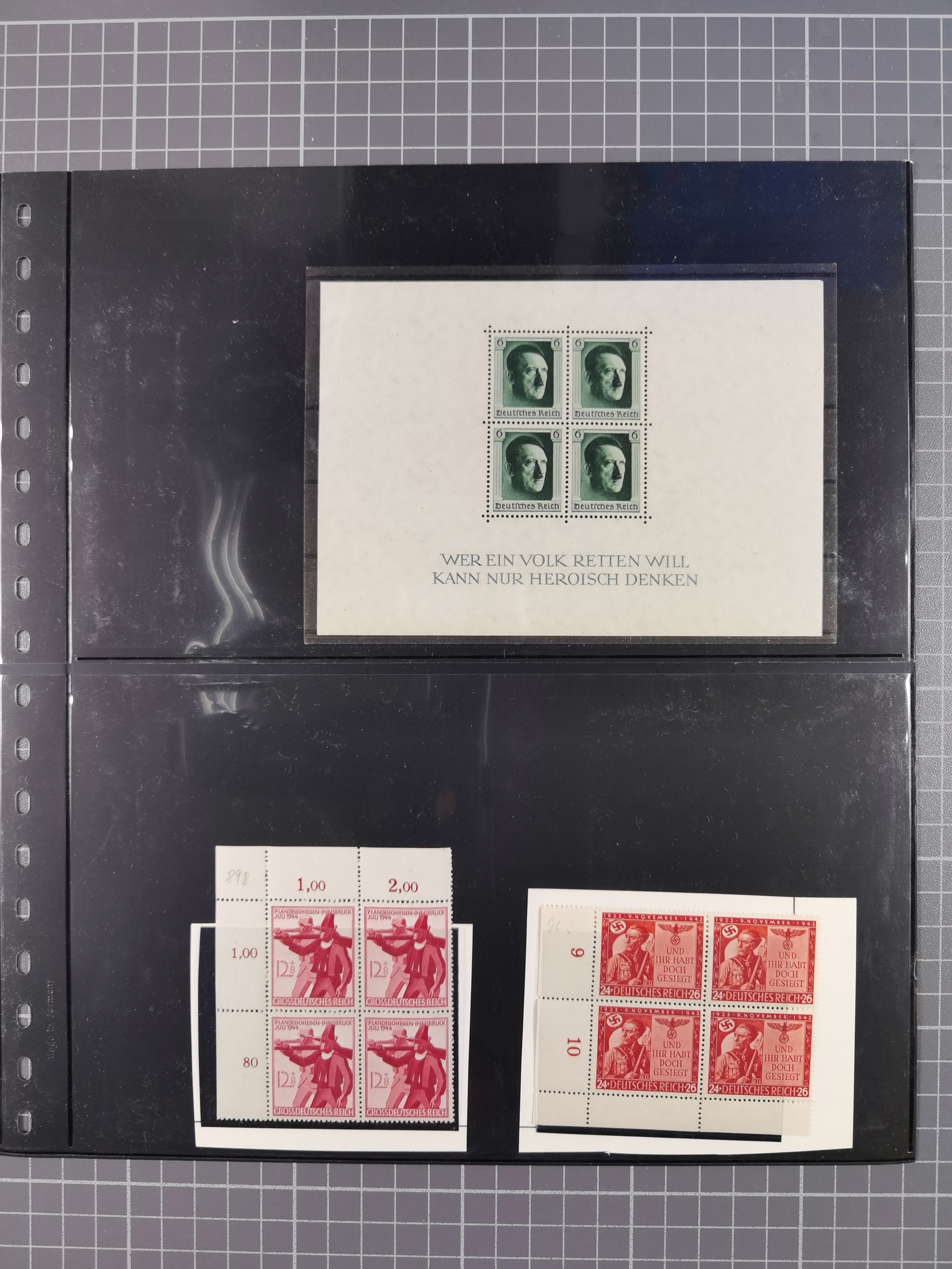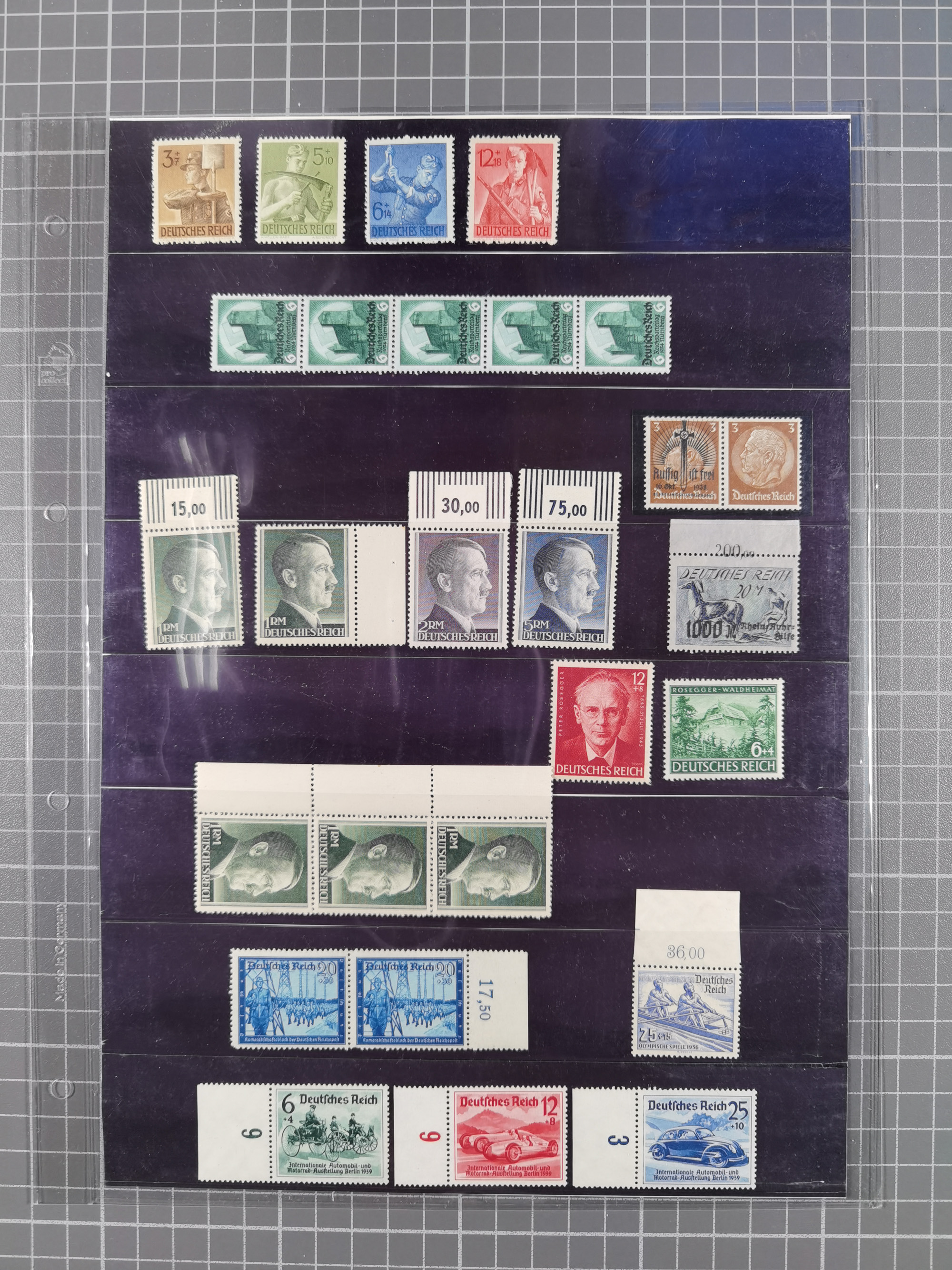 1933/45, meist postfrische Sammlung im Lindner-Falzlosalbum komplett mit vielen Besonderheiten. Mi. 482-495 postfrisch, Höchstwerte sign. A. Schlegel BPP, Mi. 496-98 ungebraucht, Mi. 507 postfrisch, Befund Schlegel BPP, Block 2 postfrisch (1 mm erhöht sign. Schlegel BPP), Mi. 529-539 x und Viererblock 539 y je postfrisch mit Attest Schlegel BPP, Bl. 3 Attest A. Schlegel BPP, Mi. 586 Y ungebraucht, Attest Oechsner BPP, Mi. 587 U ungebraucht, Attest H.-D. Schlegel BPP, Block 6z postfrisch, sign. Schlegel BPP, Mi. 641 x postfrisch, sign. D. Schlegel BPP, Mi. 659 x postfrisch, Befund Oechsner BPP, Mi. 671 x und 672 y sign., Mi. 814 Phasenabzug und Abzug vom Urstempel je postfrisch, viele Plattenfehler wie 909 I und 910 I und II je sign. A. Schlegel BPP.