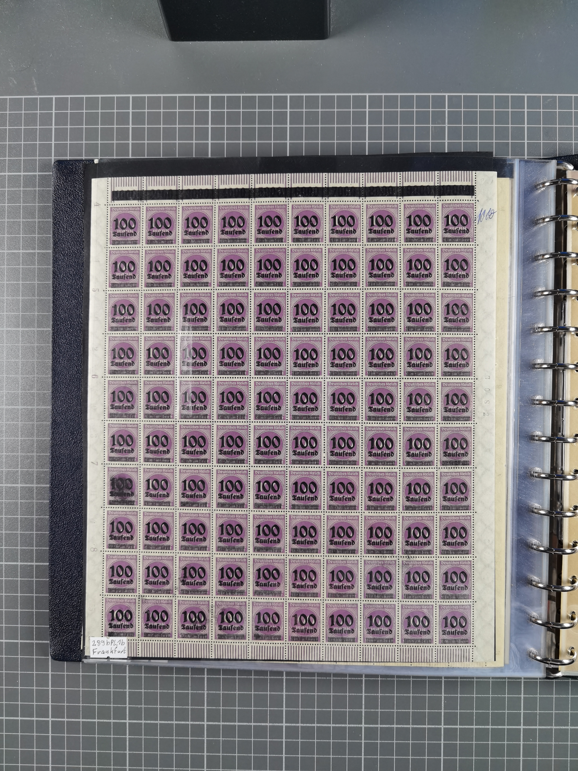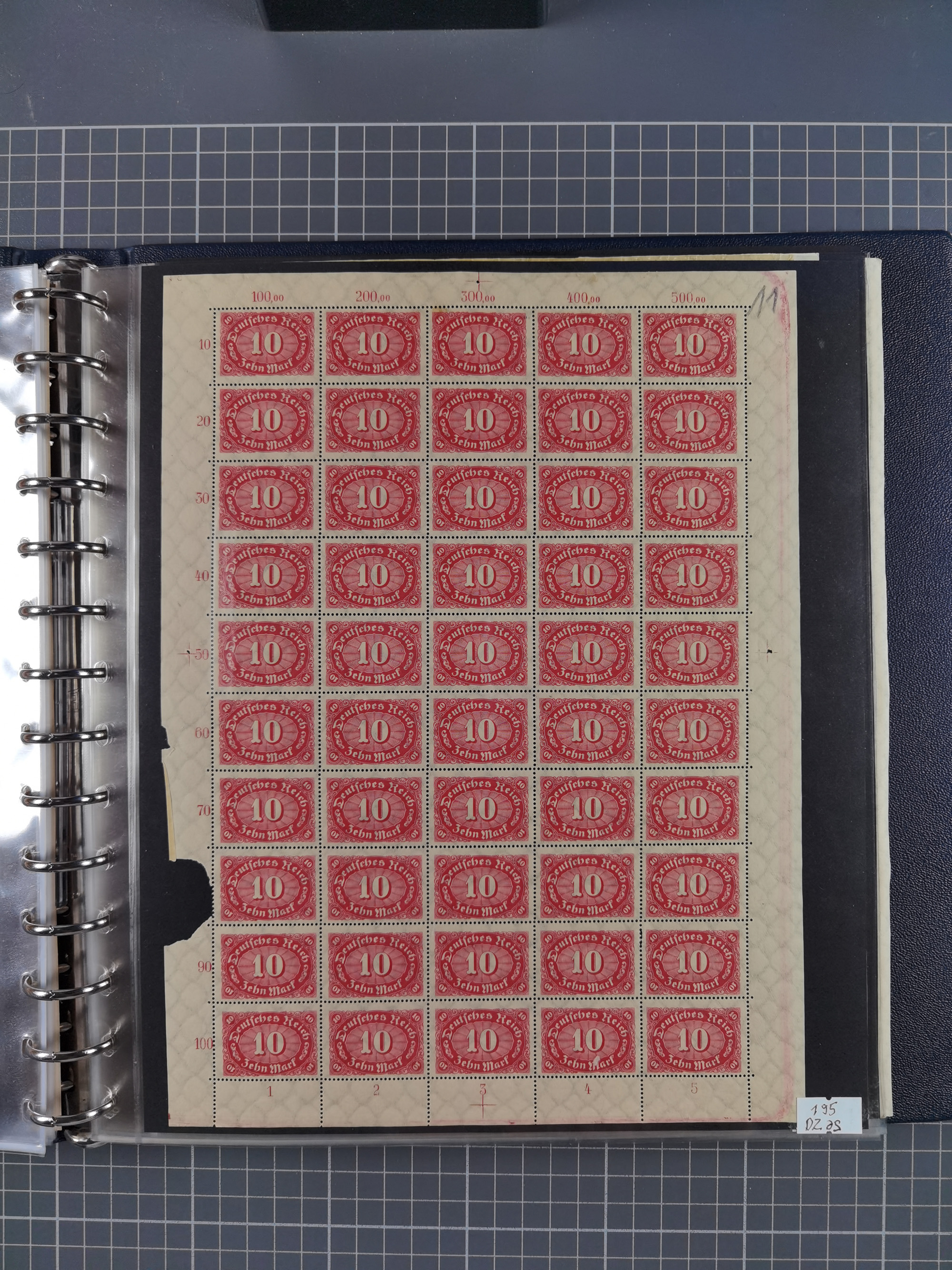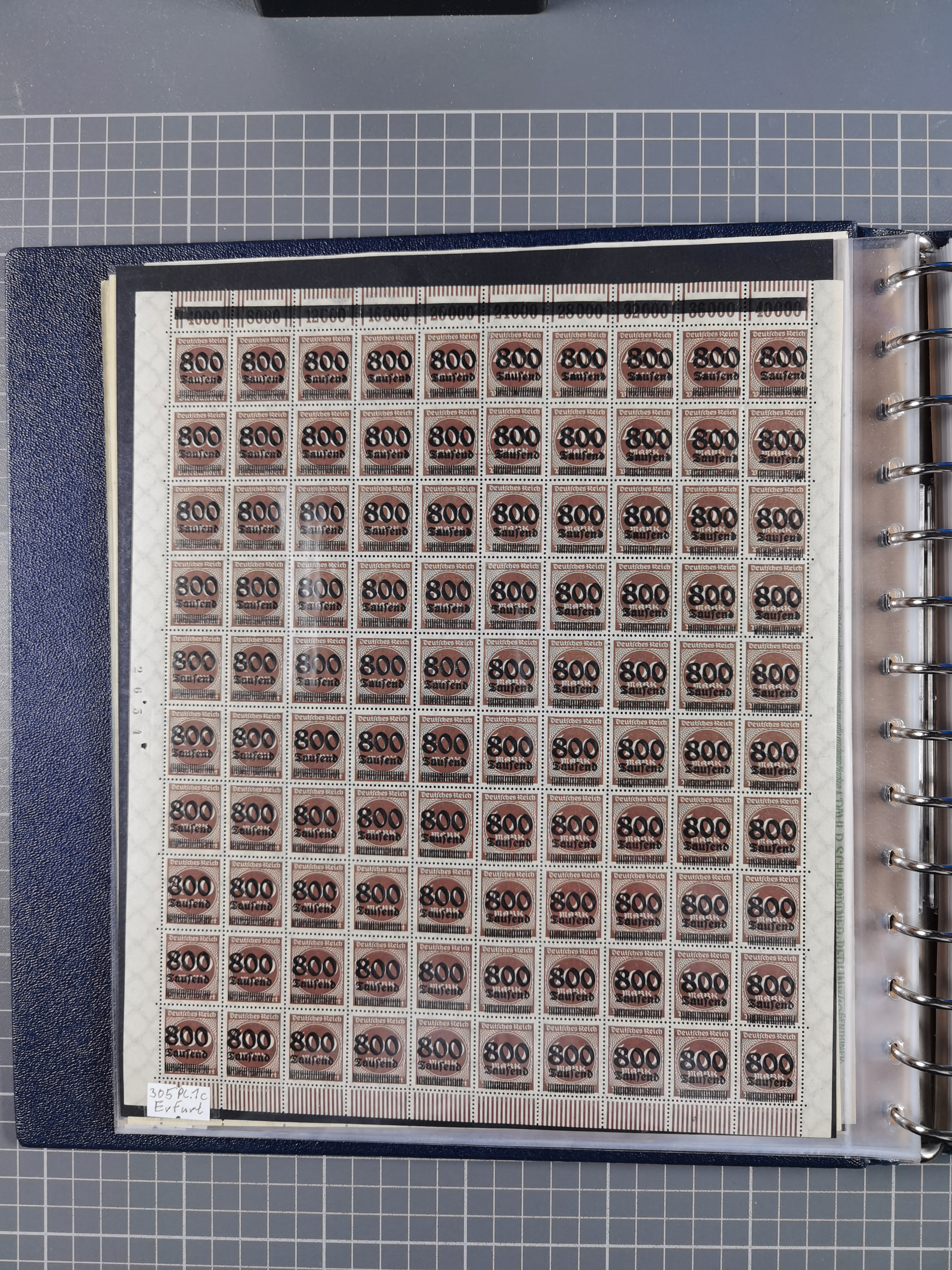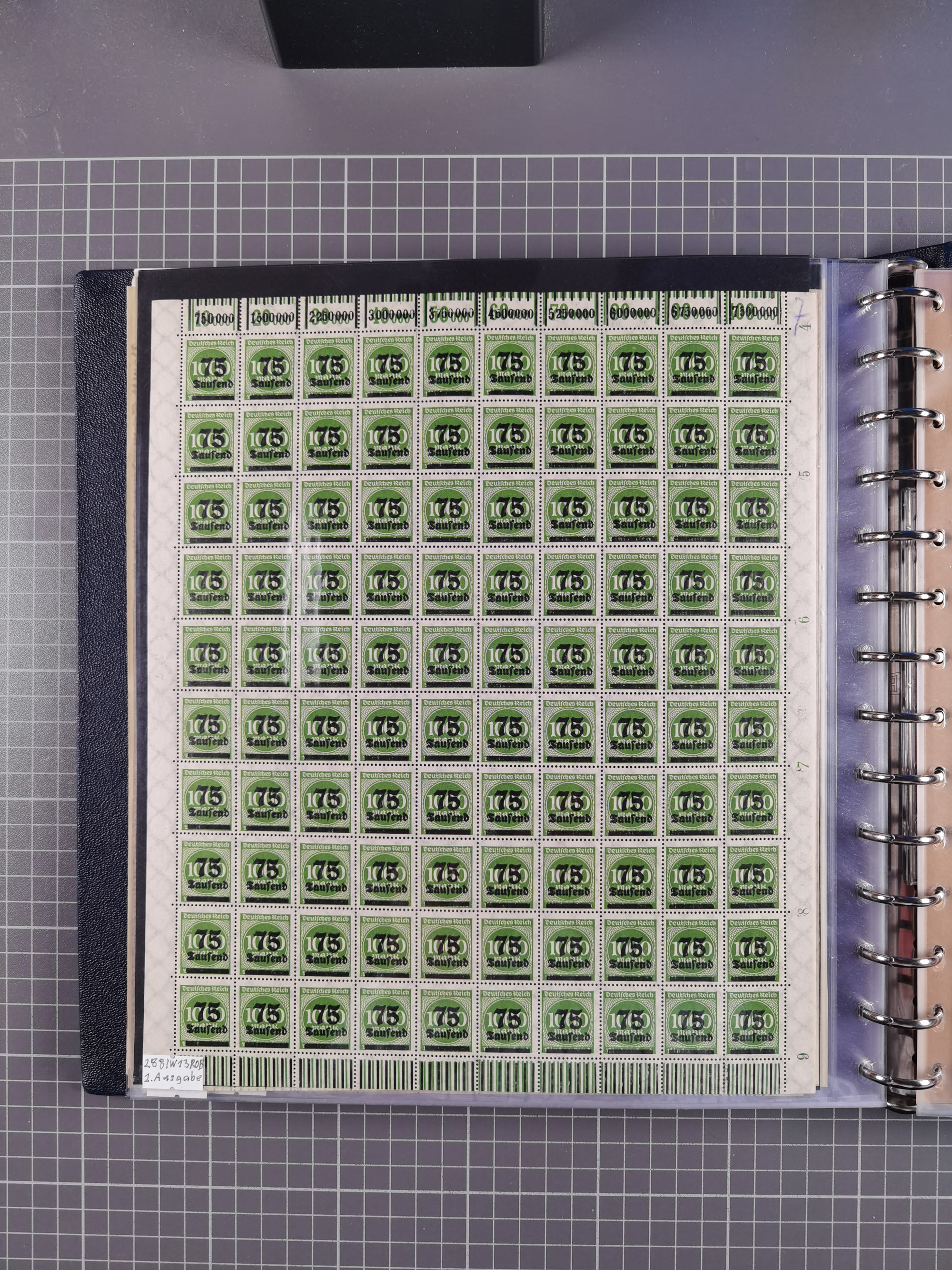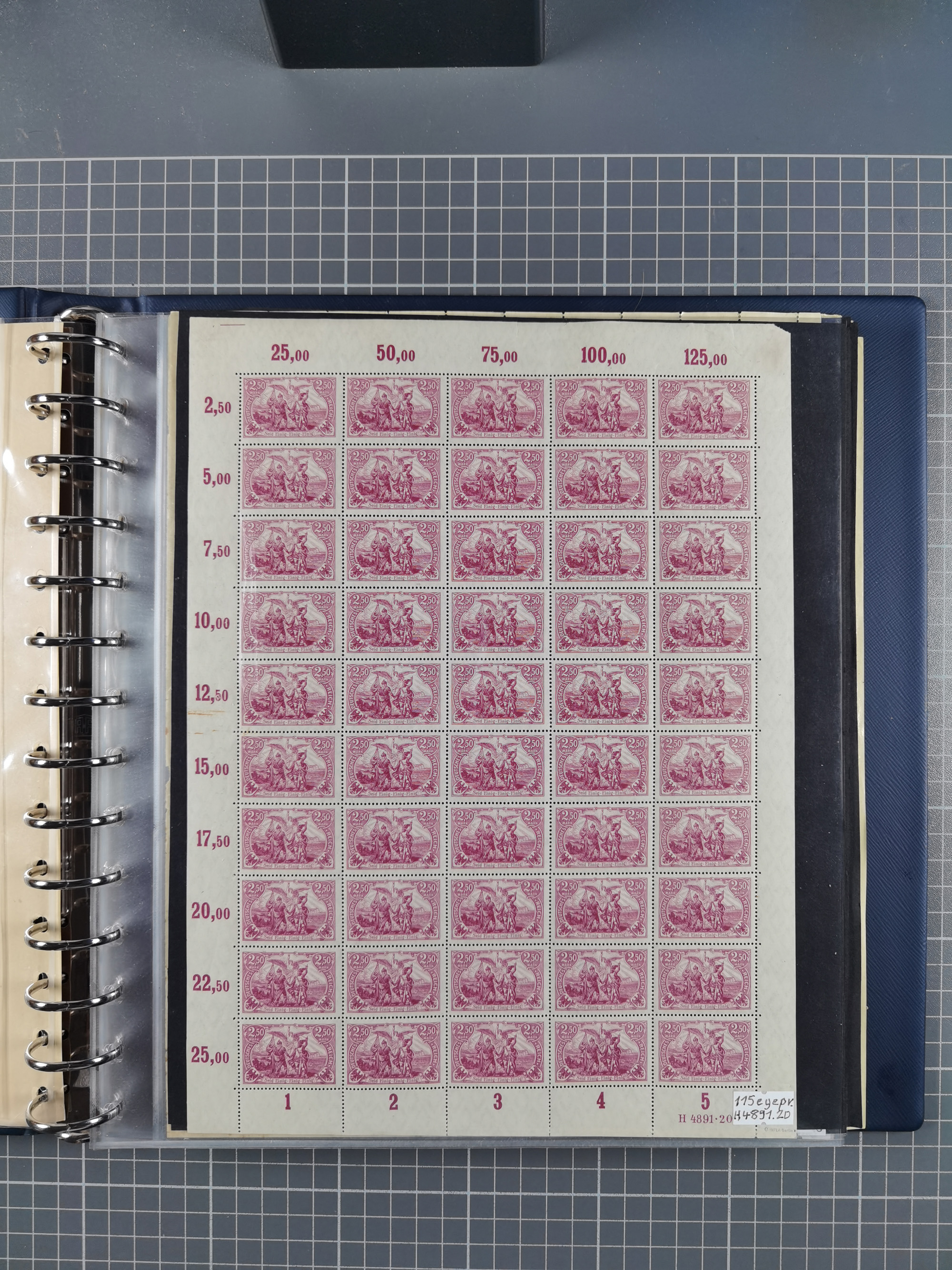 1920, meist postfrischer Bestand mit Mi.-Nr. 115 in 12 verschiedenen Bogen mit HAN “4891.20” mit geschlossener “4”, Plattenfehler XI, XV-XVII, unterschiedliche Farben, ein Bogen sign. Infla Berlin f, ein Bogen mit leichten Anhaftungen, einige leicht fleckig bzw. Randfehler