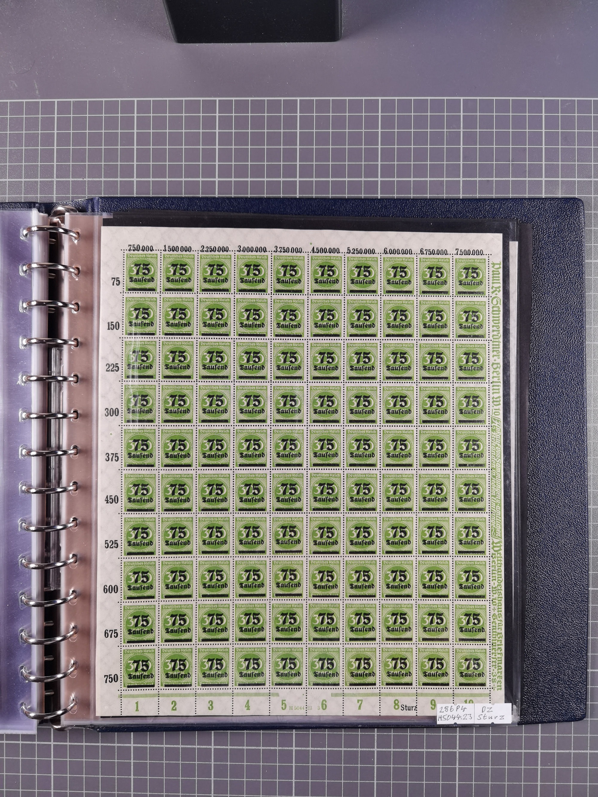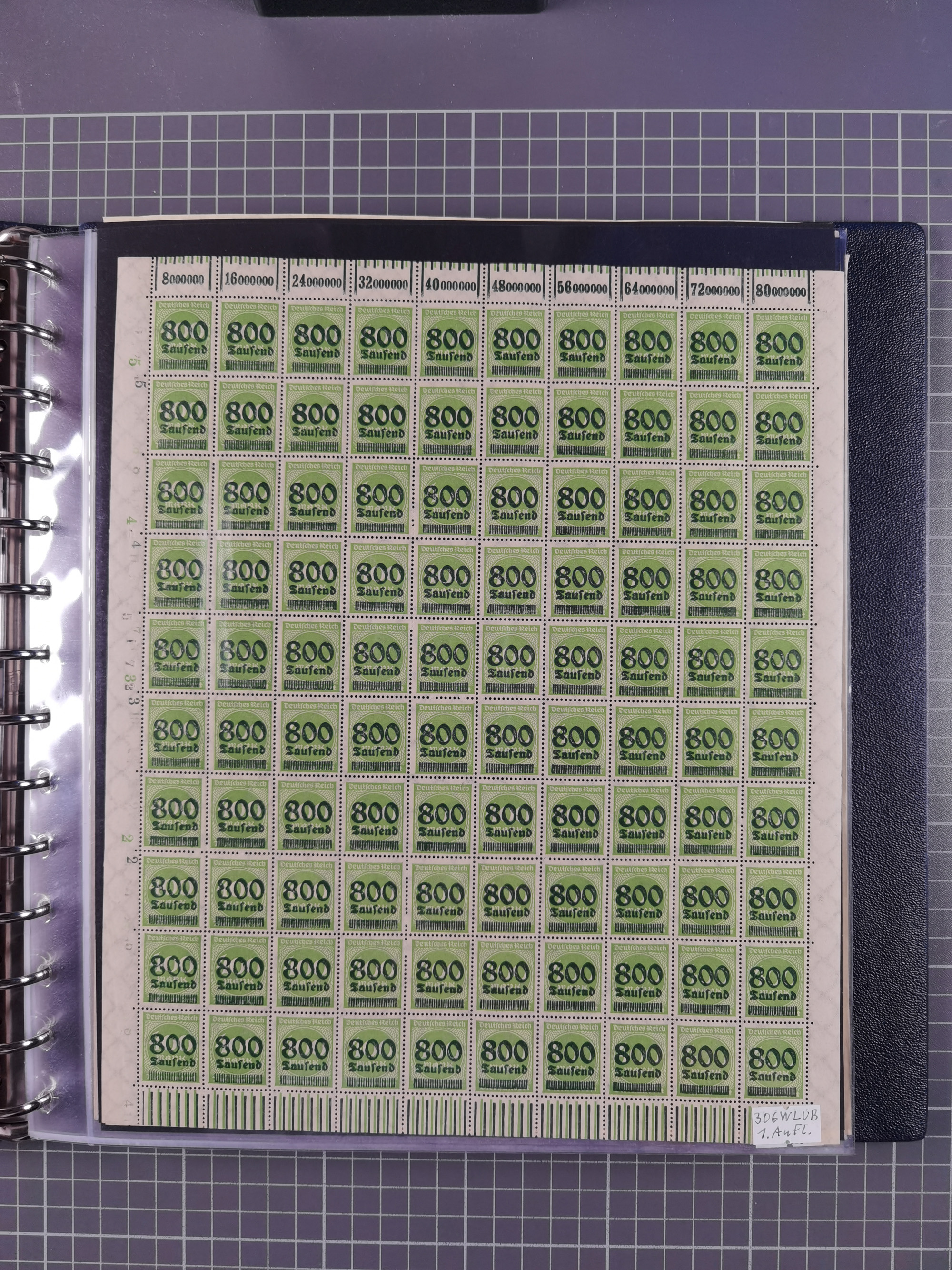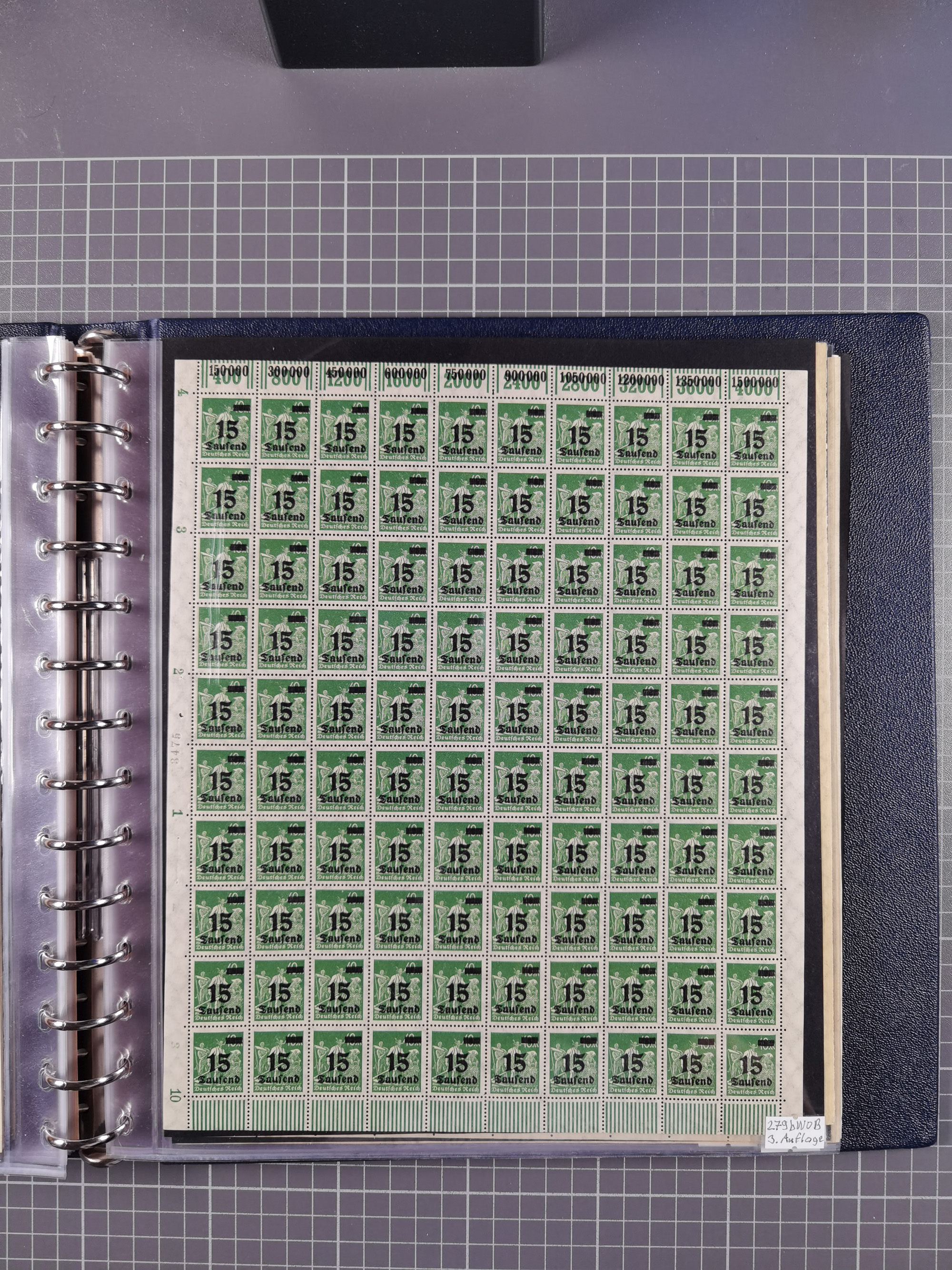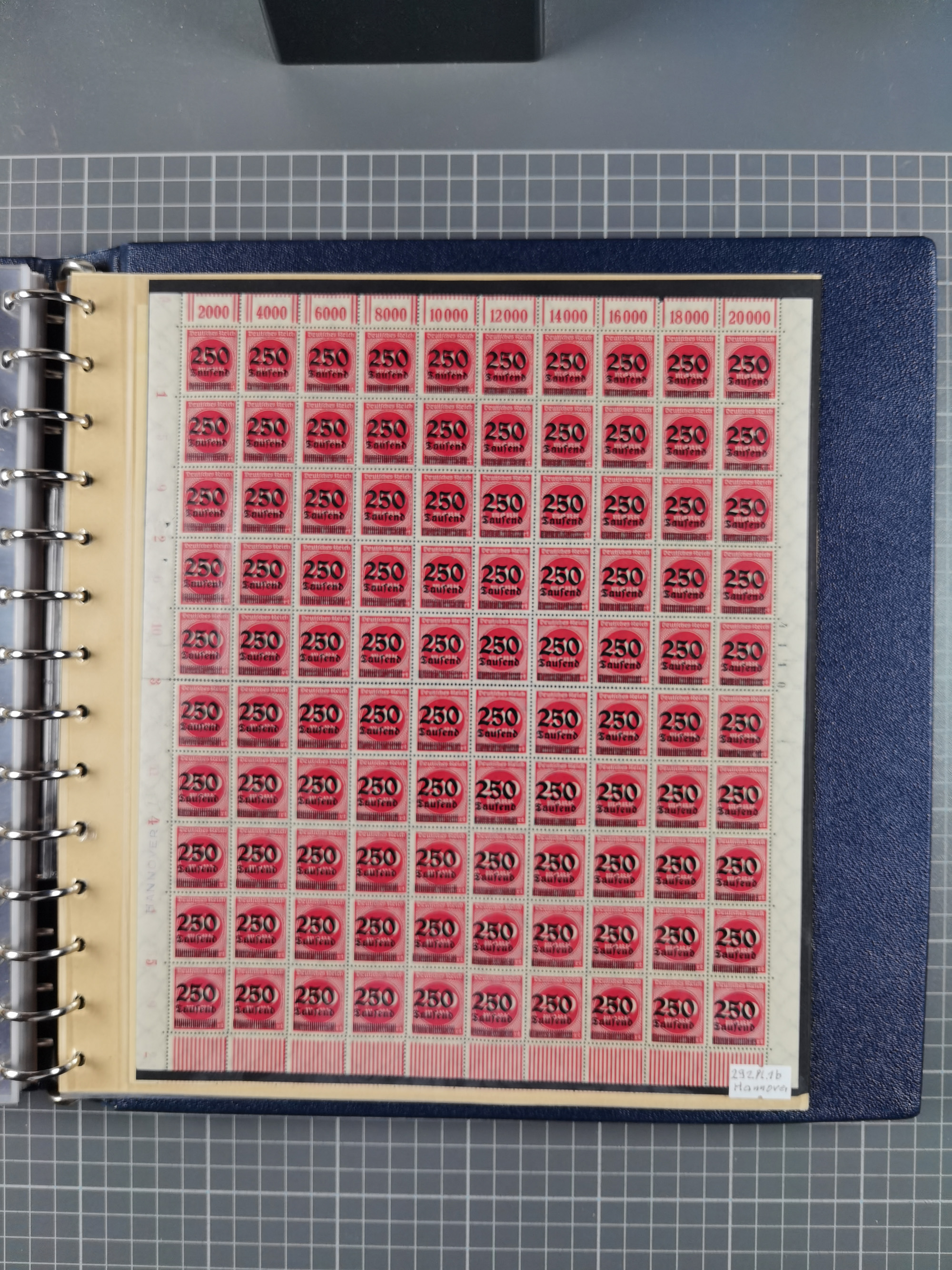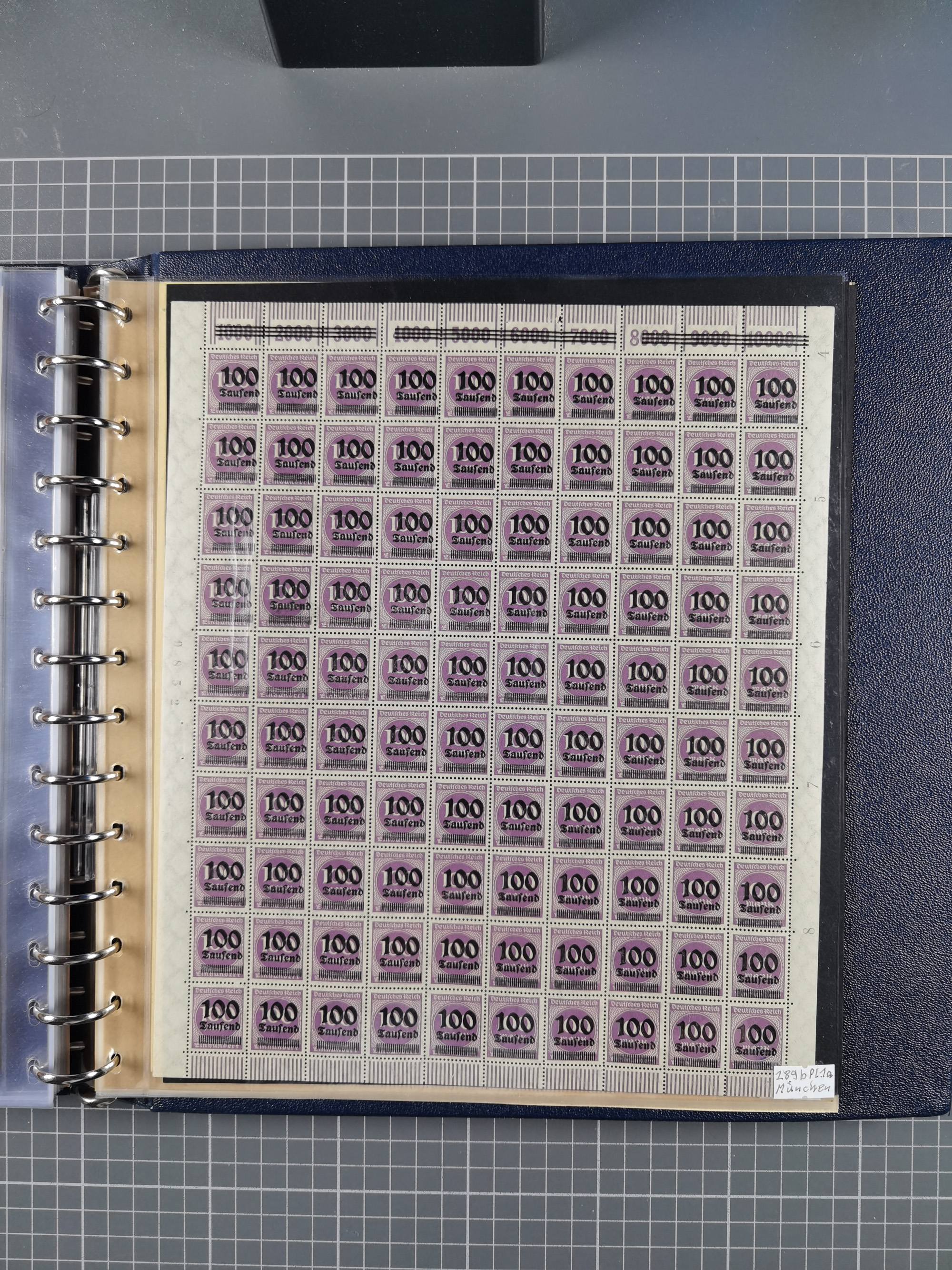 1920, meist postfrischer Bestand mit Mi.-Nr. 115 in 12 verschiedenen Bogen mit HAN “4891.20” mit geschlossener “4”, Plattenfehler XI, XV-XVII, unterschiedliche Farben, ein Bogen sign. Infla Berlin f, ein Bogen mit leichten Anhaftungen, einige leicht fleckig bzw. Randfehler