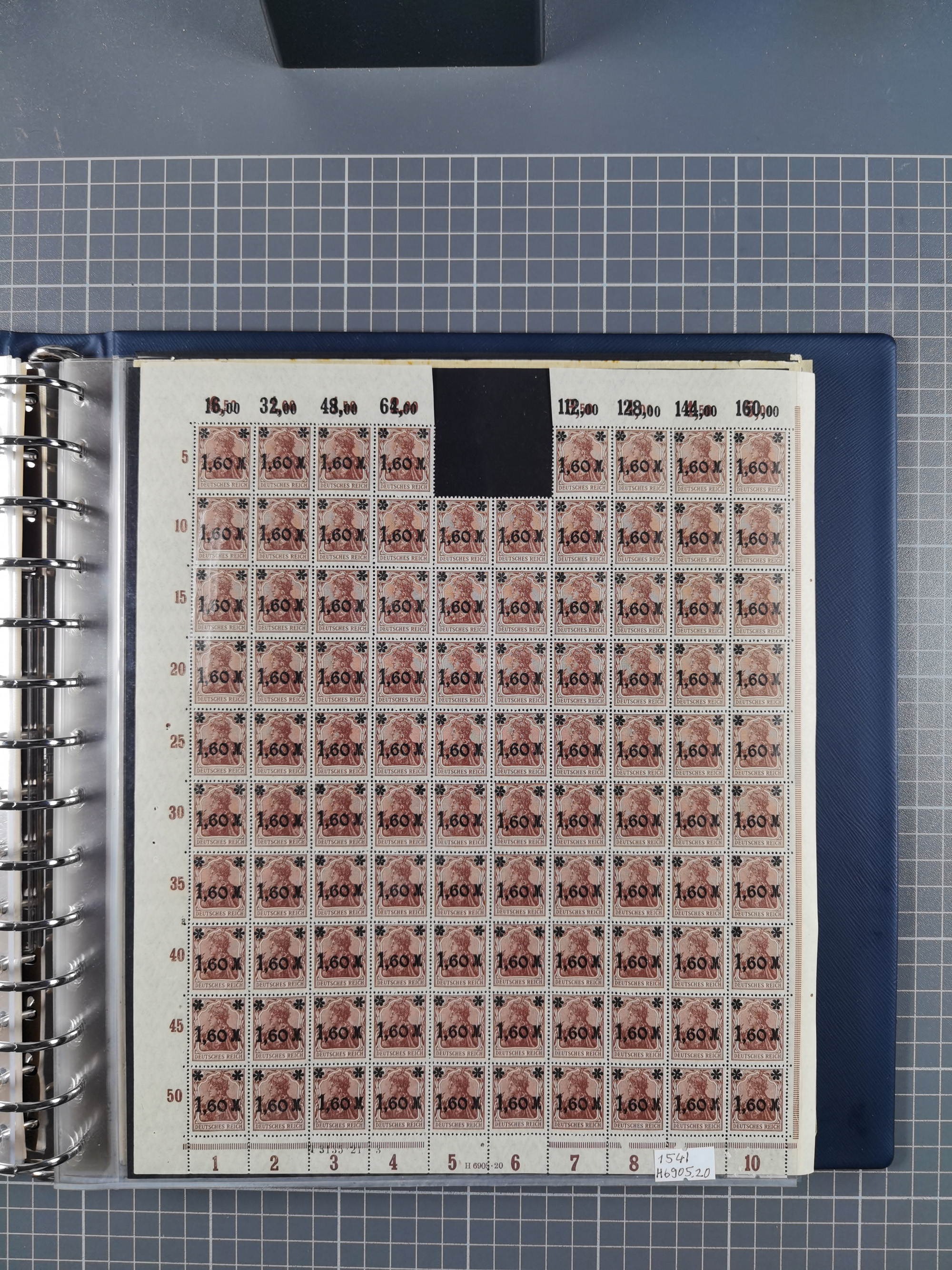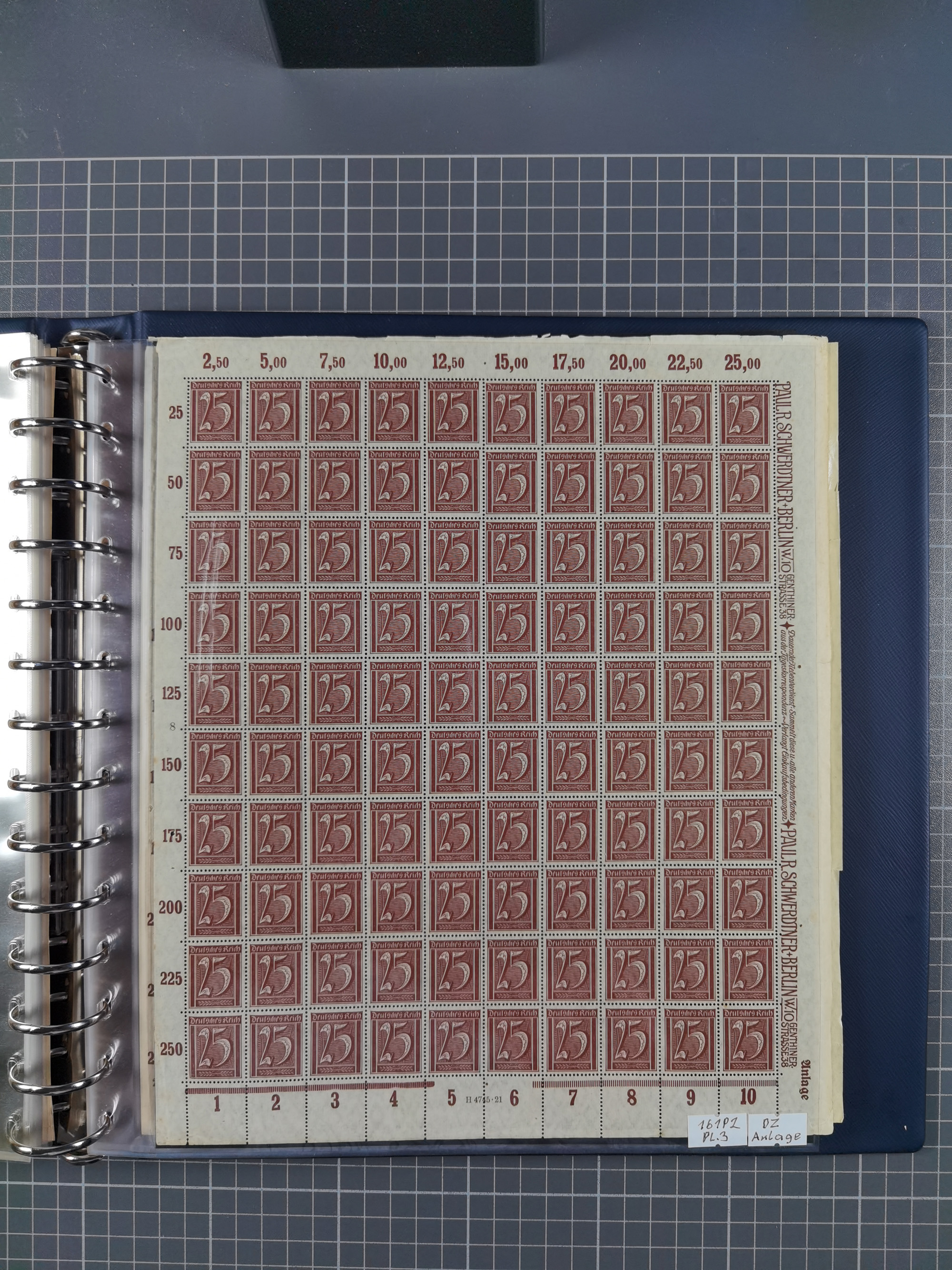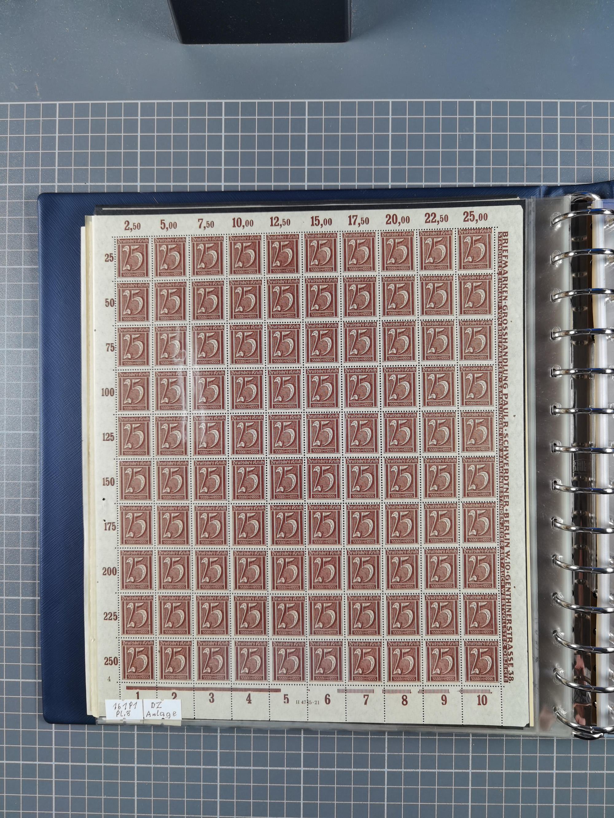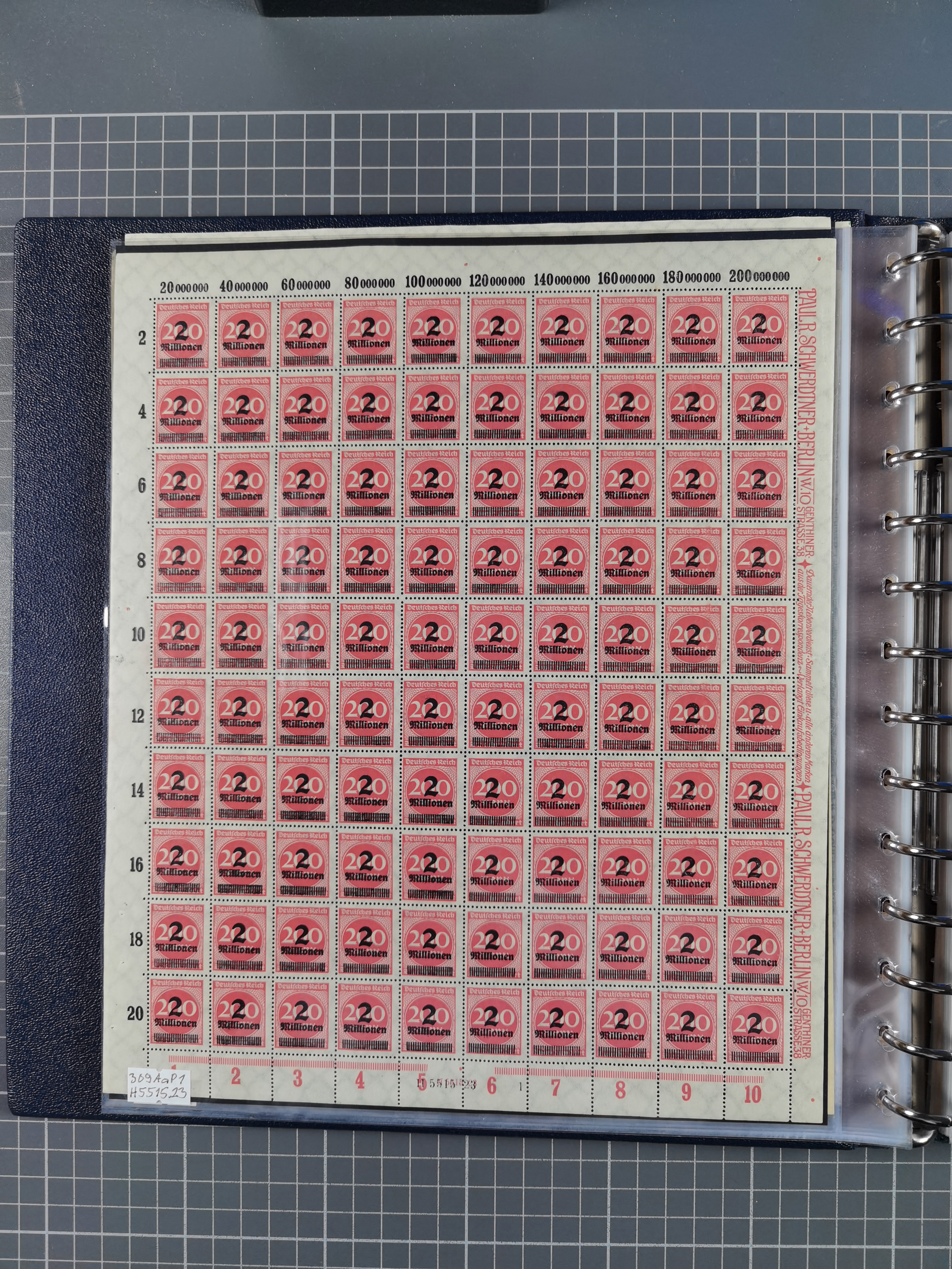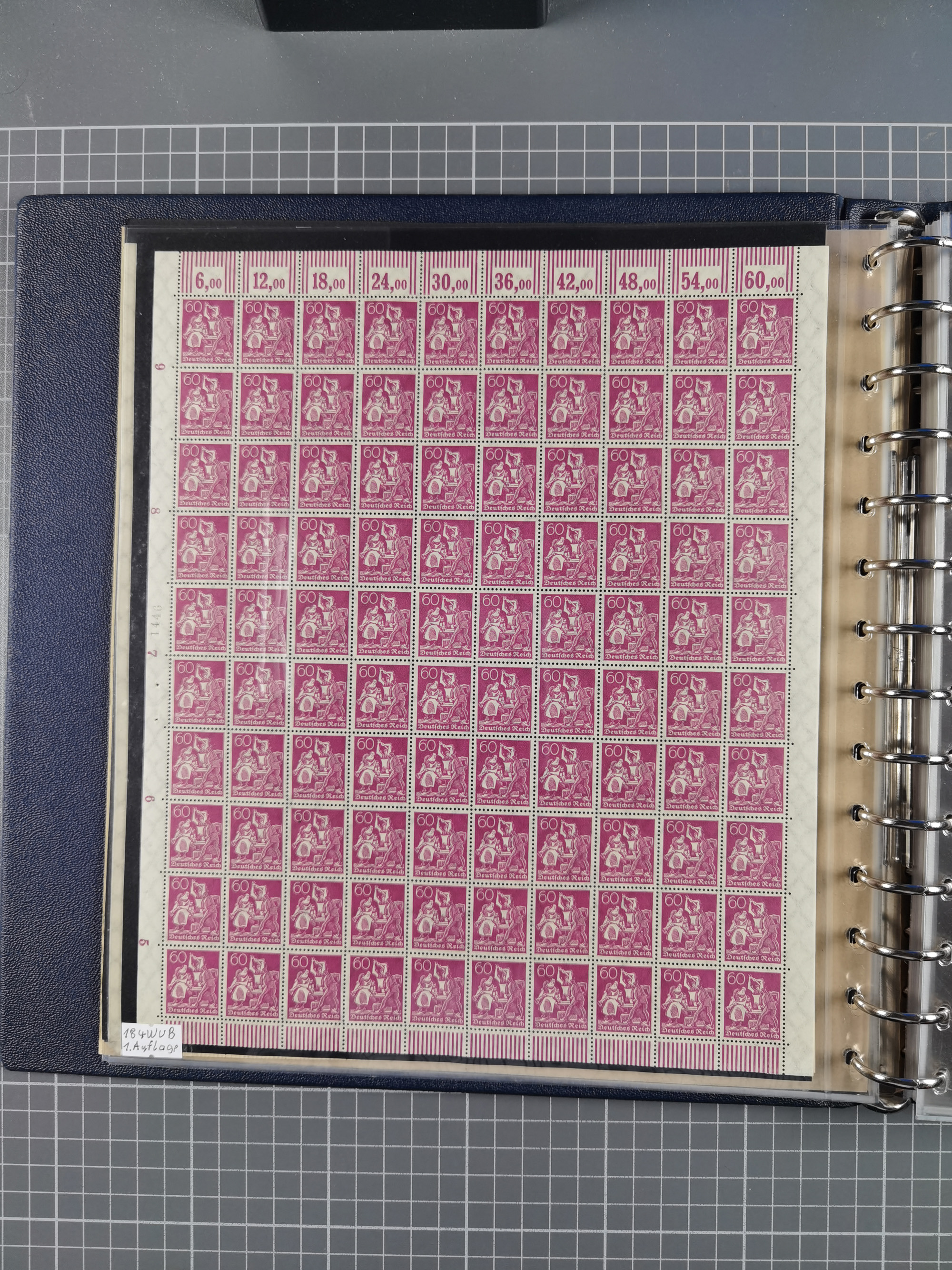1920, meist postfrischer Bestand mit Mi.-Nr. 115 in 12 verschiedenen Bogen mit HAN “4891.20” mit geschlossener “4”, Plattenfehler XI, XV-XVII, unterschiedliche Farben, ein Bogen sign. Infla Berlin f, ein Bogen mit leichten Anhaftungen, einige leicht fleckig bzw. Randfehler