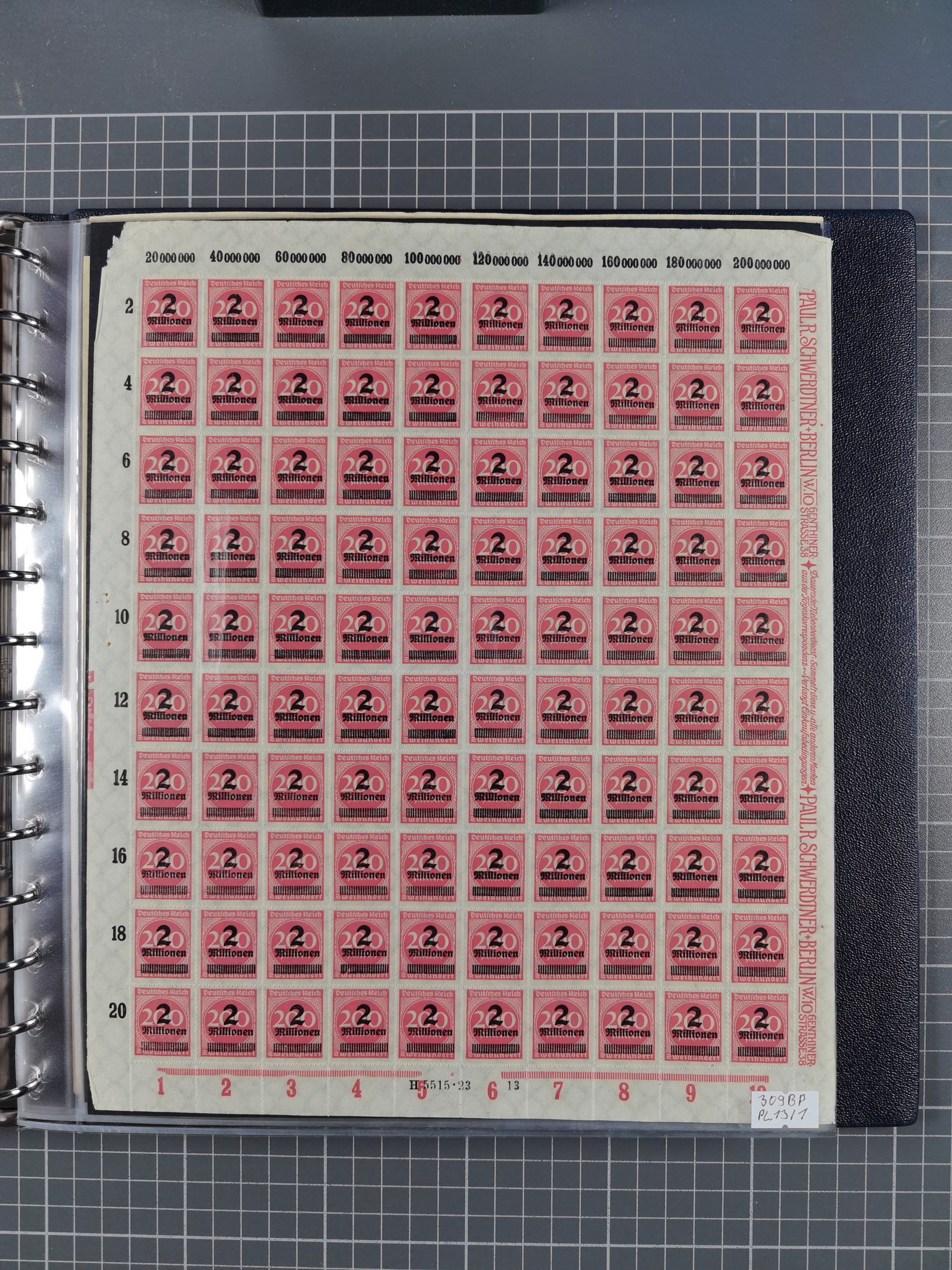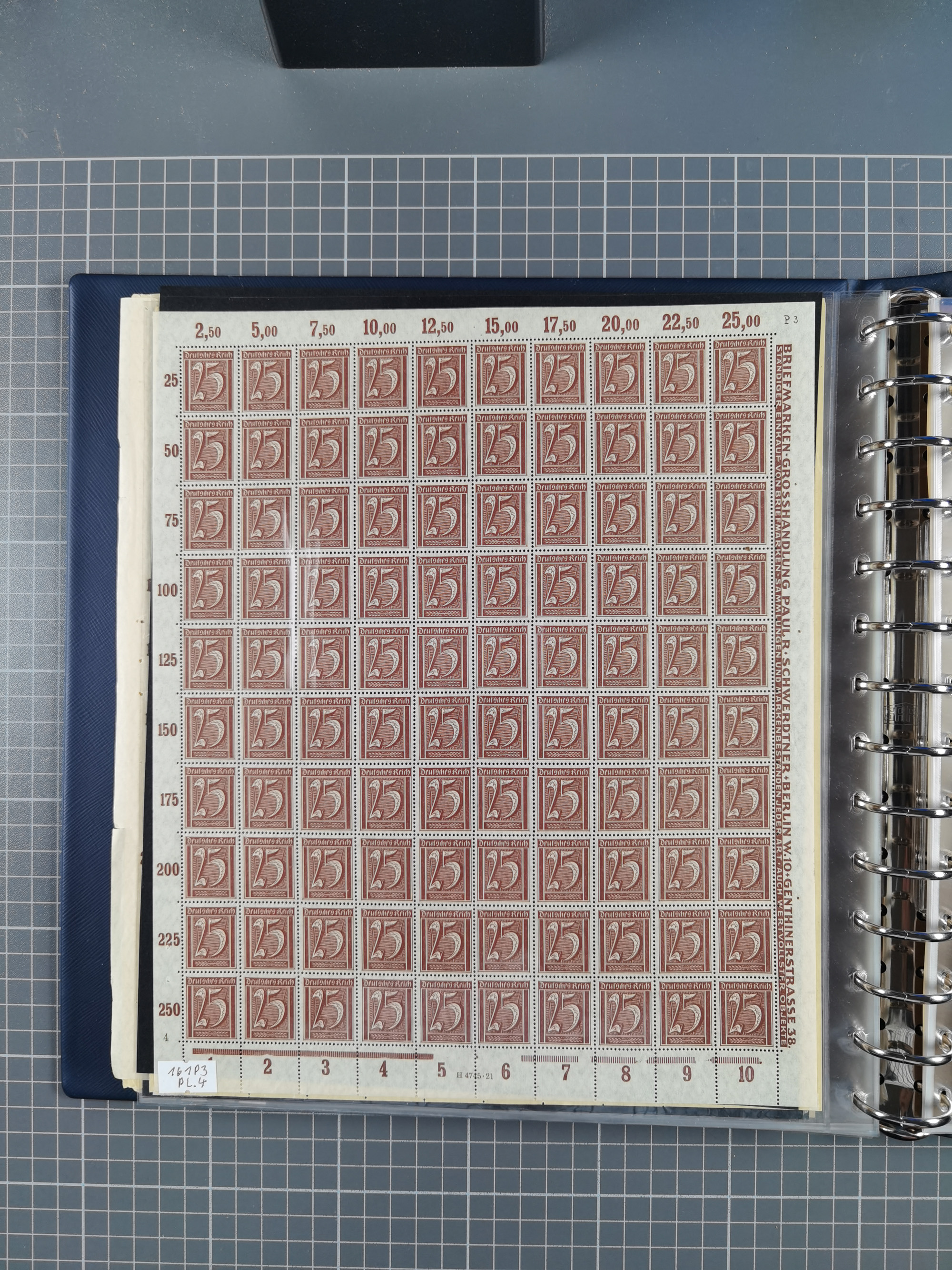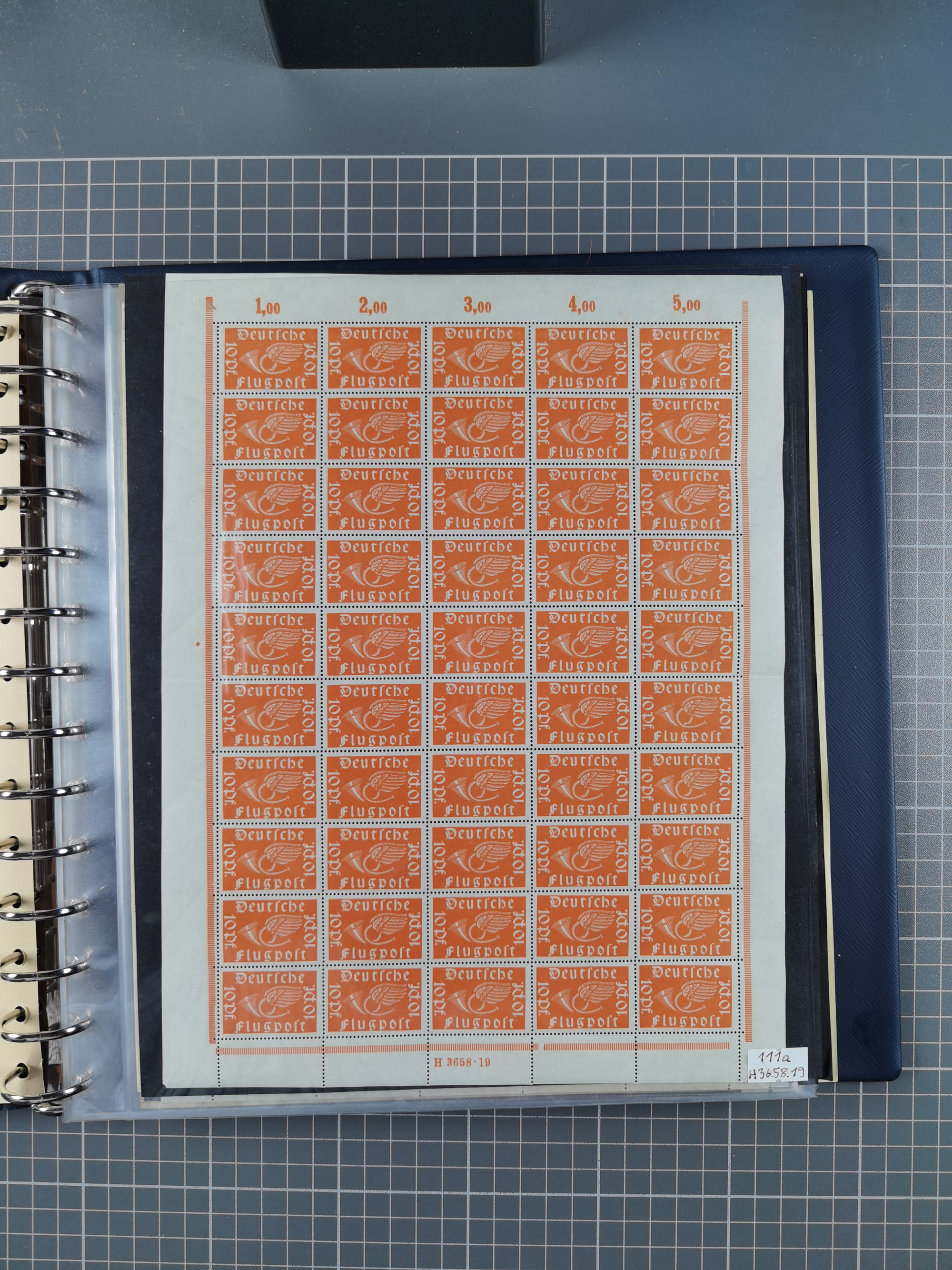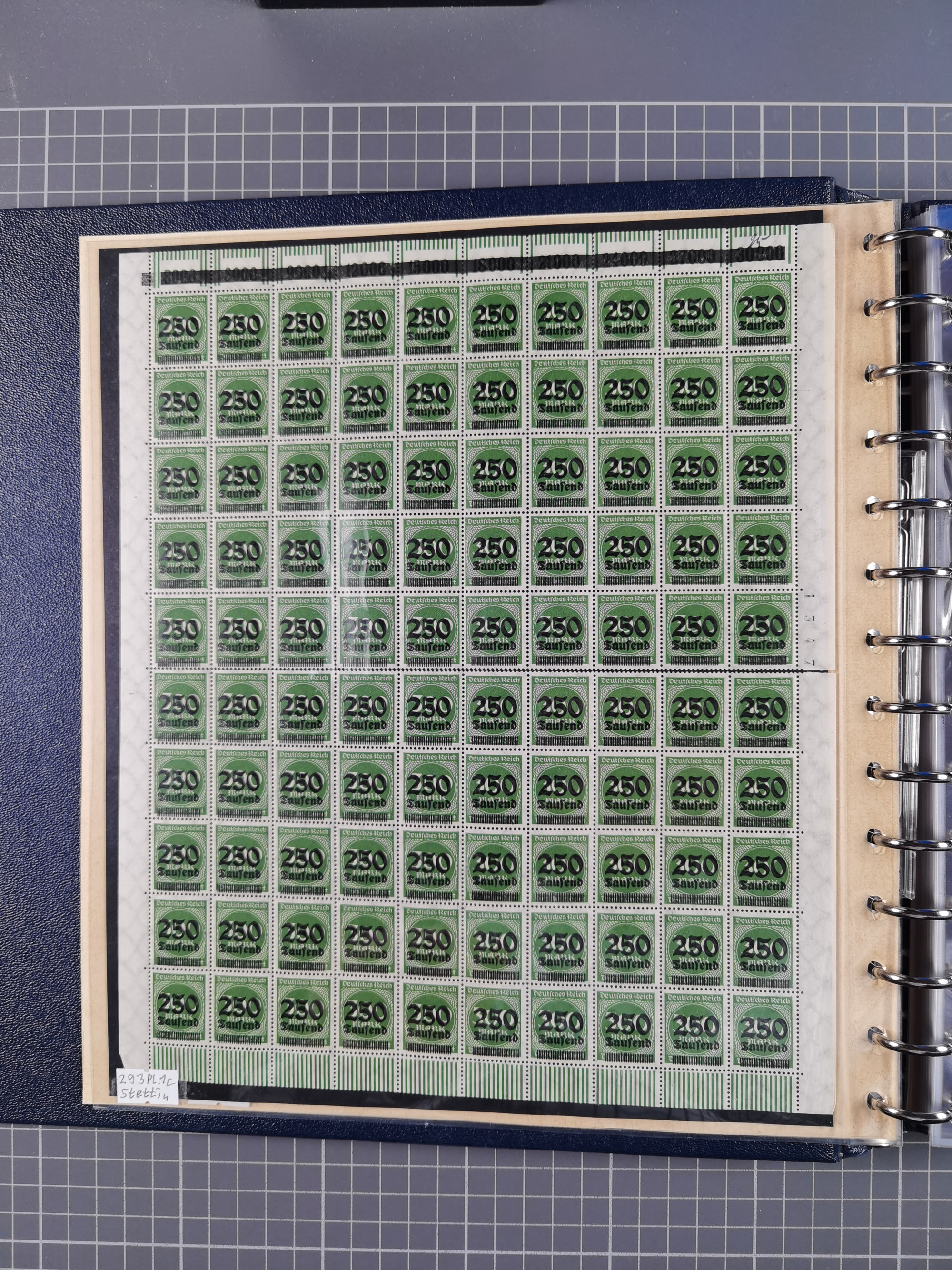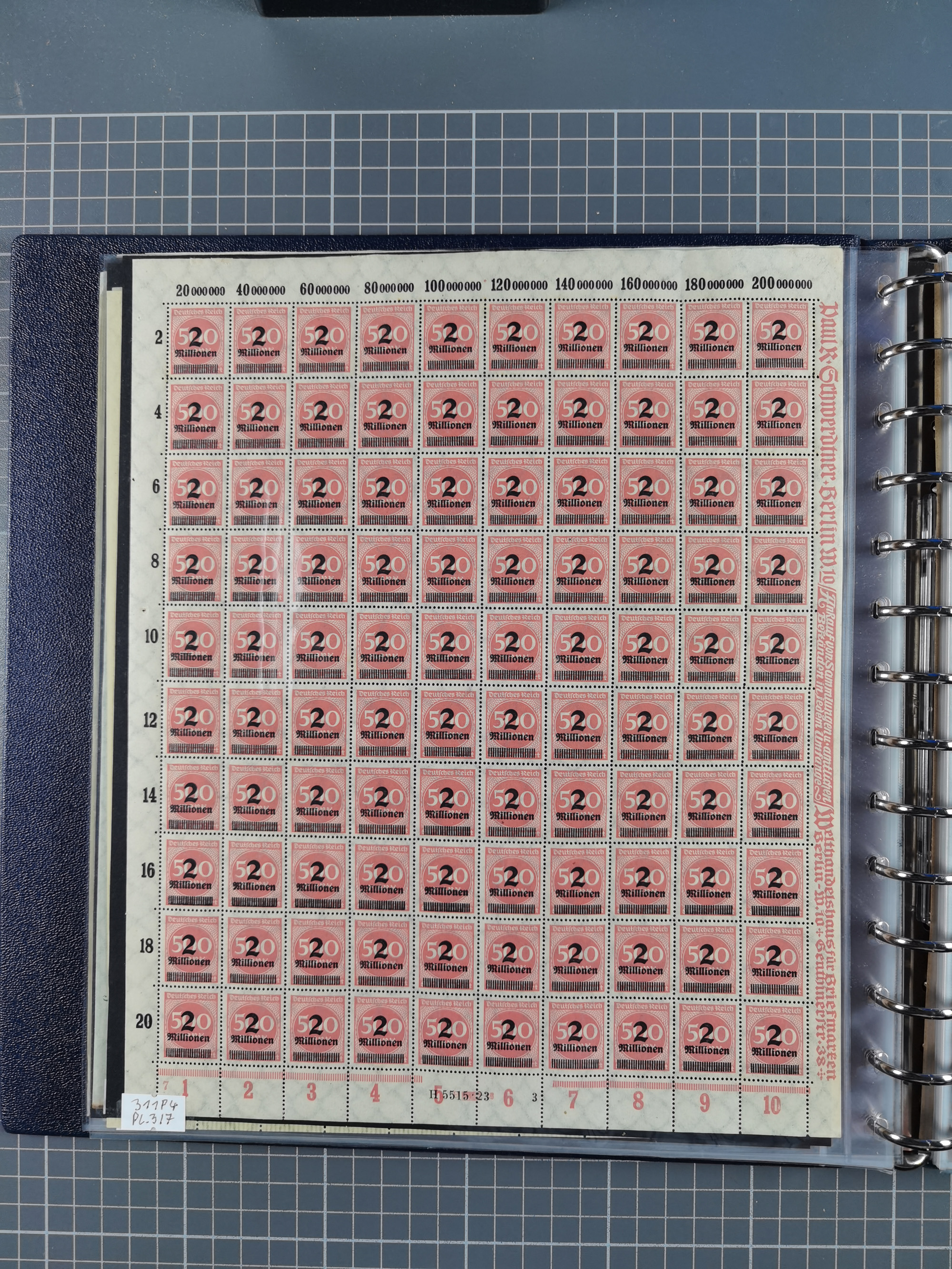 1920, meist postfrischer Bestand mit Mi.-Nr. 115 in 12 verschiedenen Bogen mit HAN “4891.20” mit geschlossener “4”, Plattenfehler XI, XV-XVII, unterschiedliche Farben, ein Bogen sign. Infla Berlin f, ein Bogen mit leichten Anhaftungen, einige leicht fleckig bzw. Randfehler