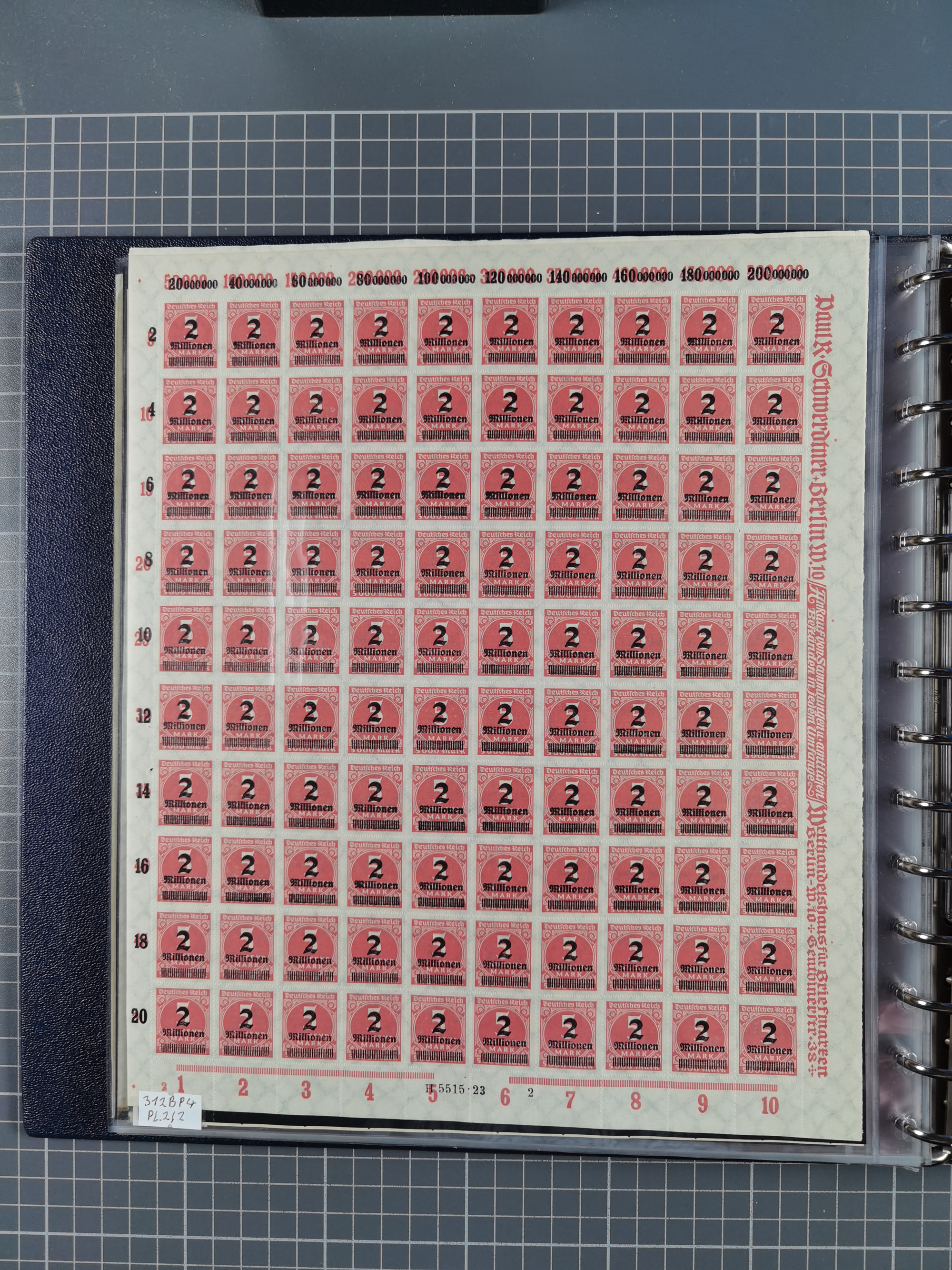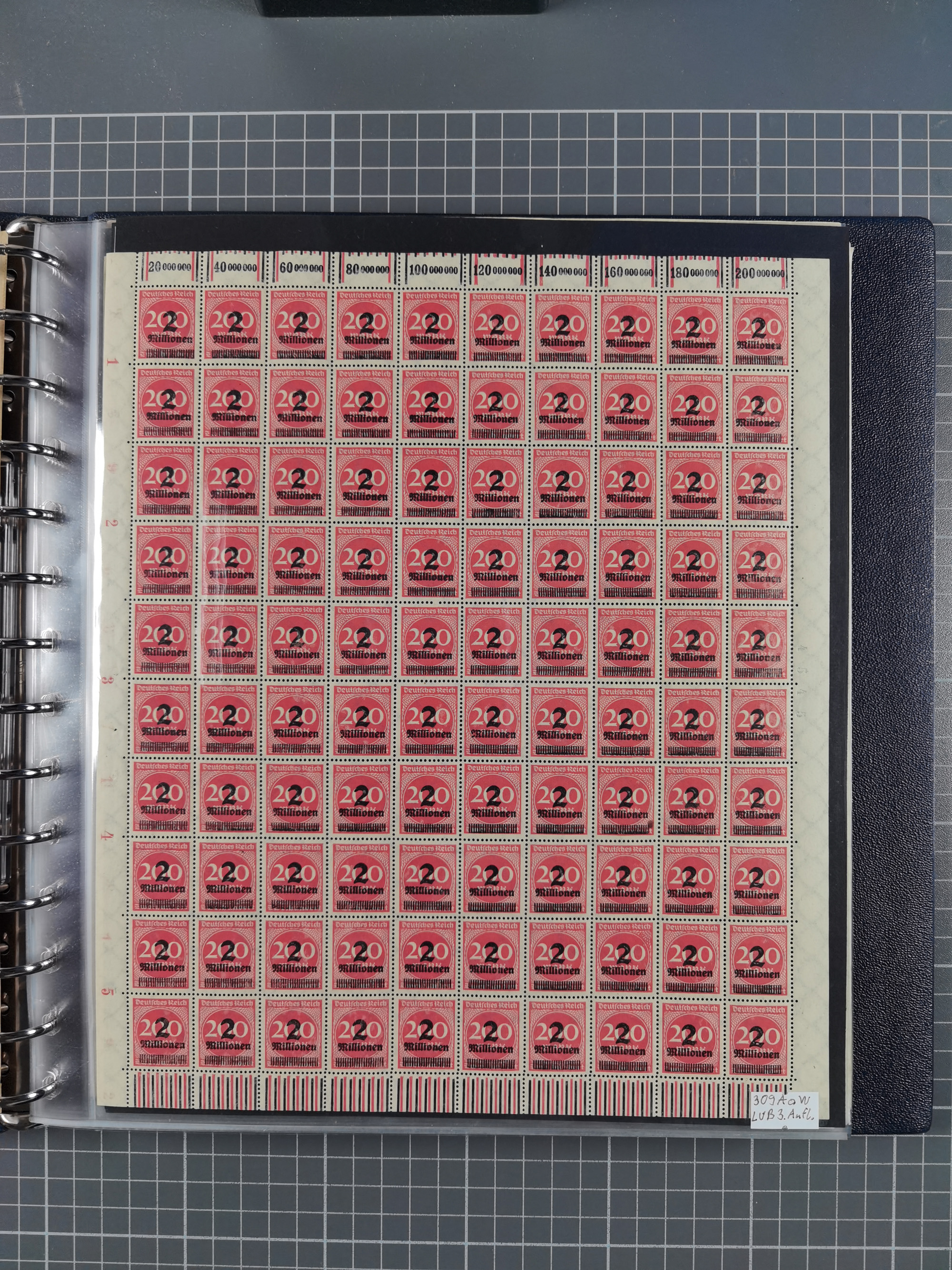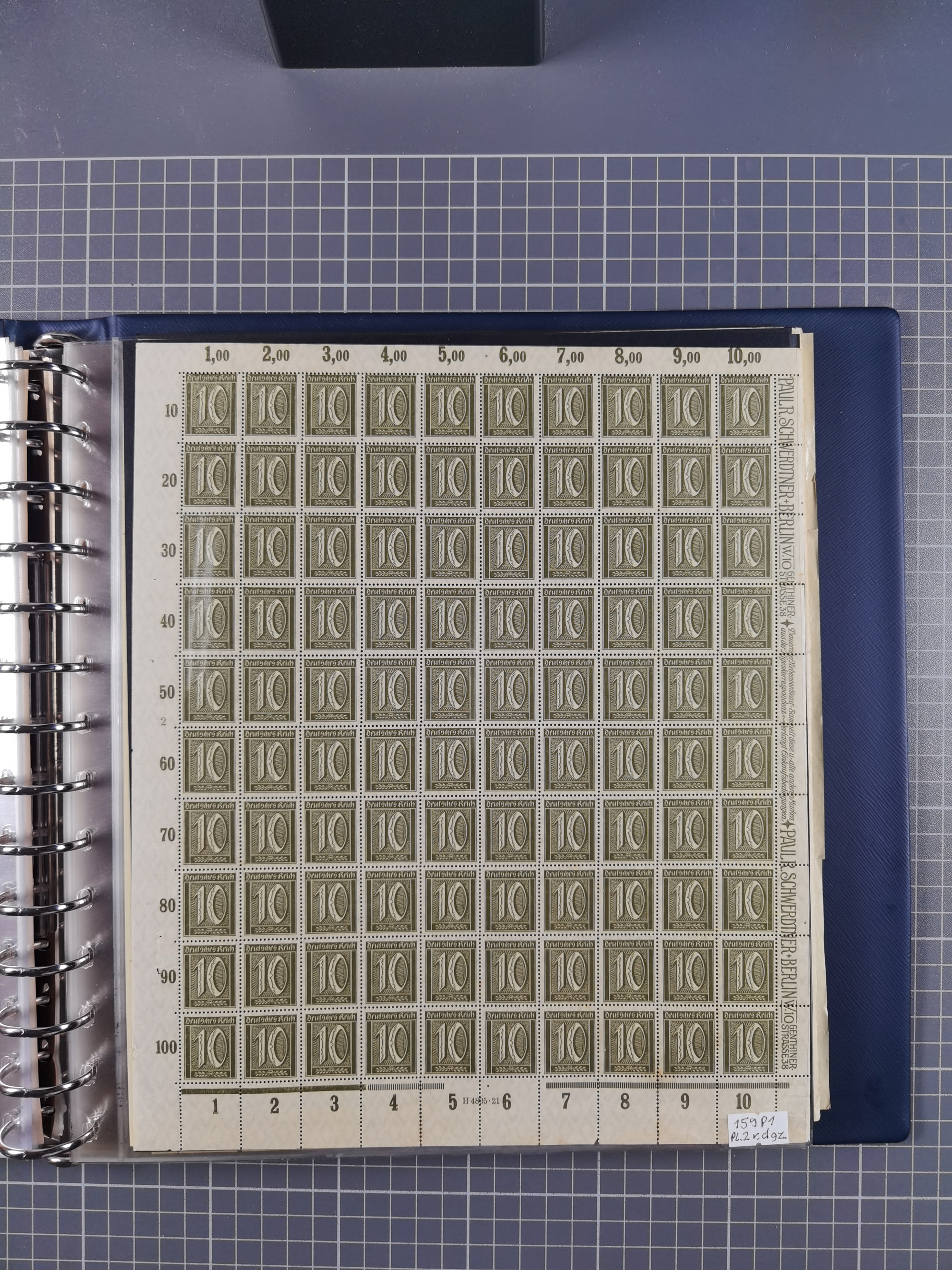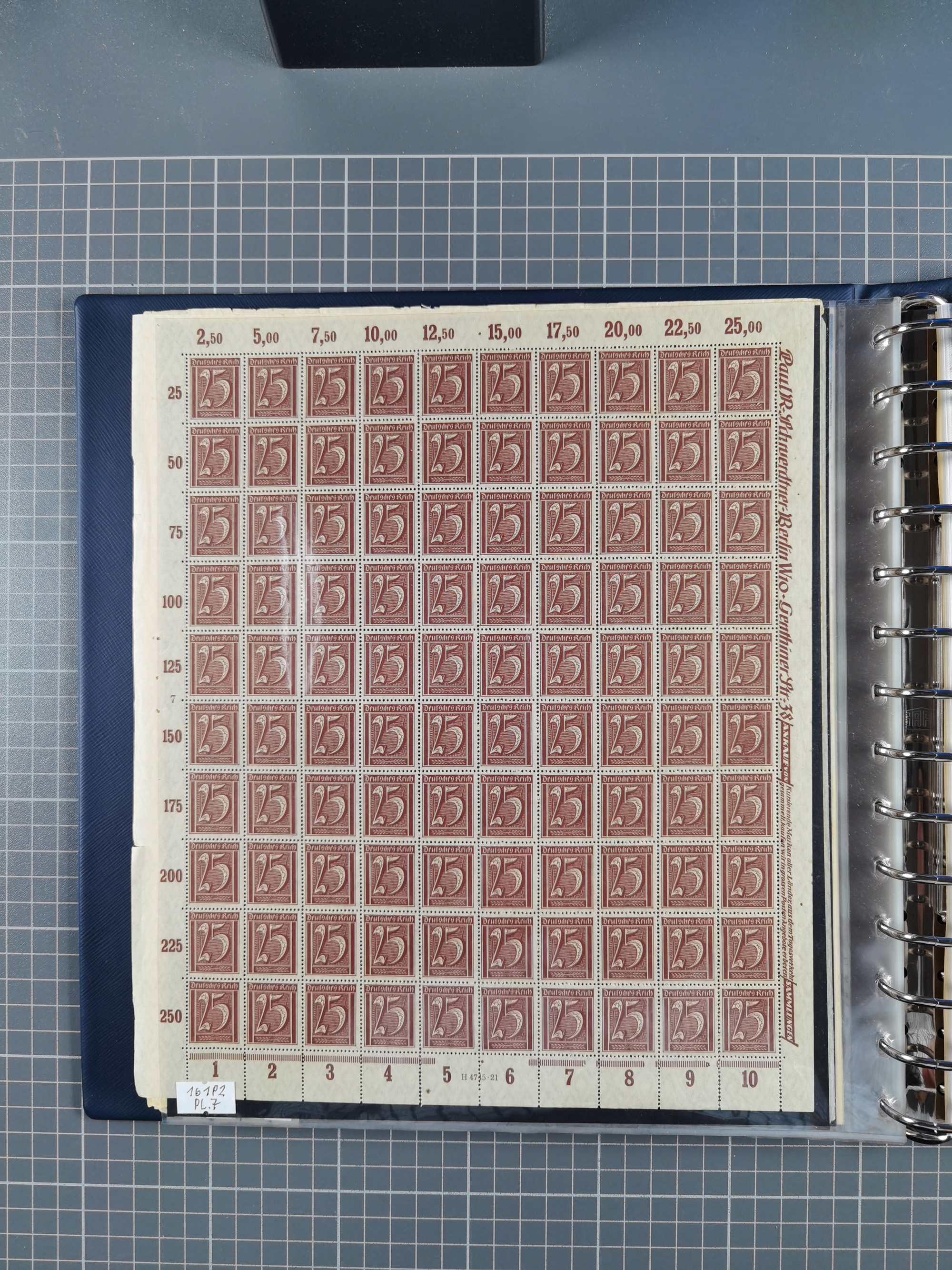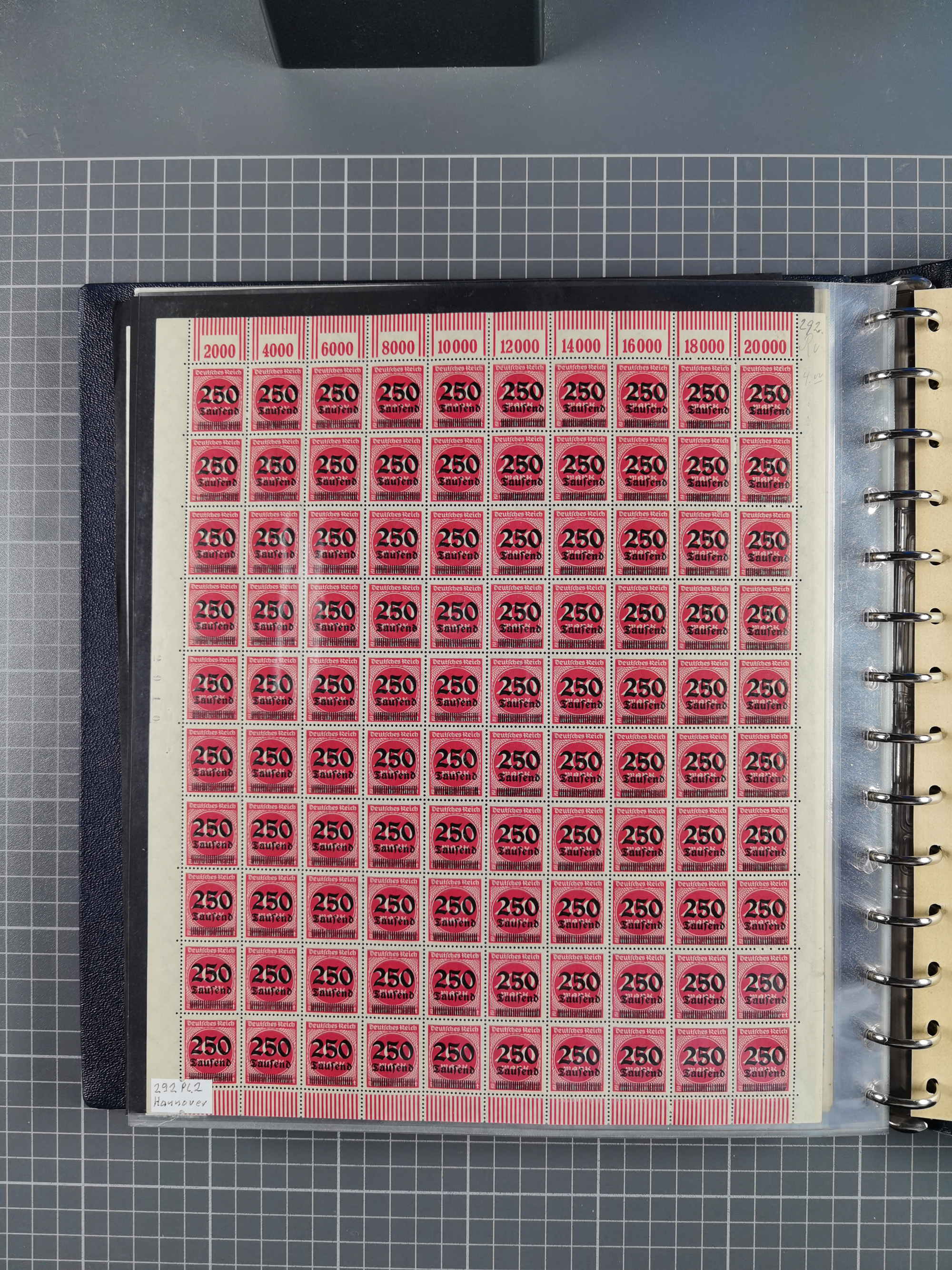 1920, meist postfrischer Bestand mit Mi.-Nr. 115 in 12 verschiedenen Bogen mit HAN “4891.20” mit geschlossener “4”, Plattenfehler XI, XV-XVII, unterschiedliche Farben, ein Bogen sign. Infla Berlin f, ein Bogen mit leichten Anhaftungen, einige leicht fleckig bzw. Randfehler